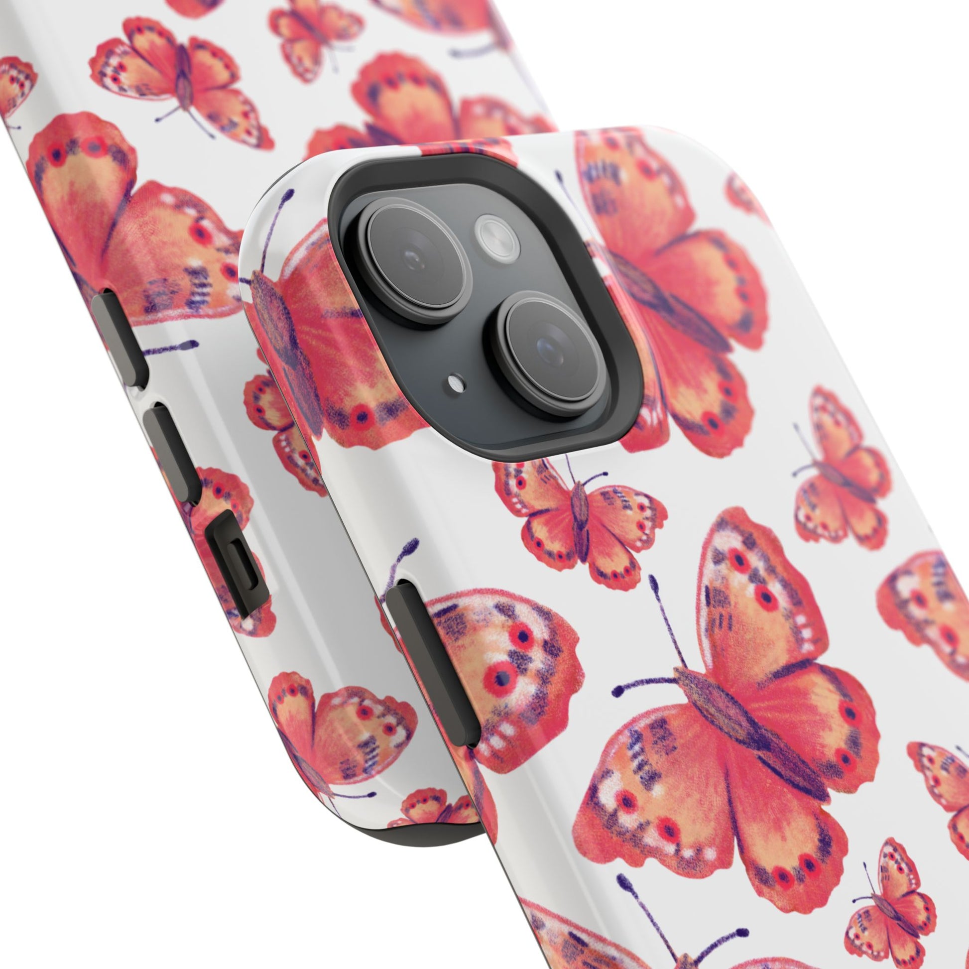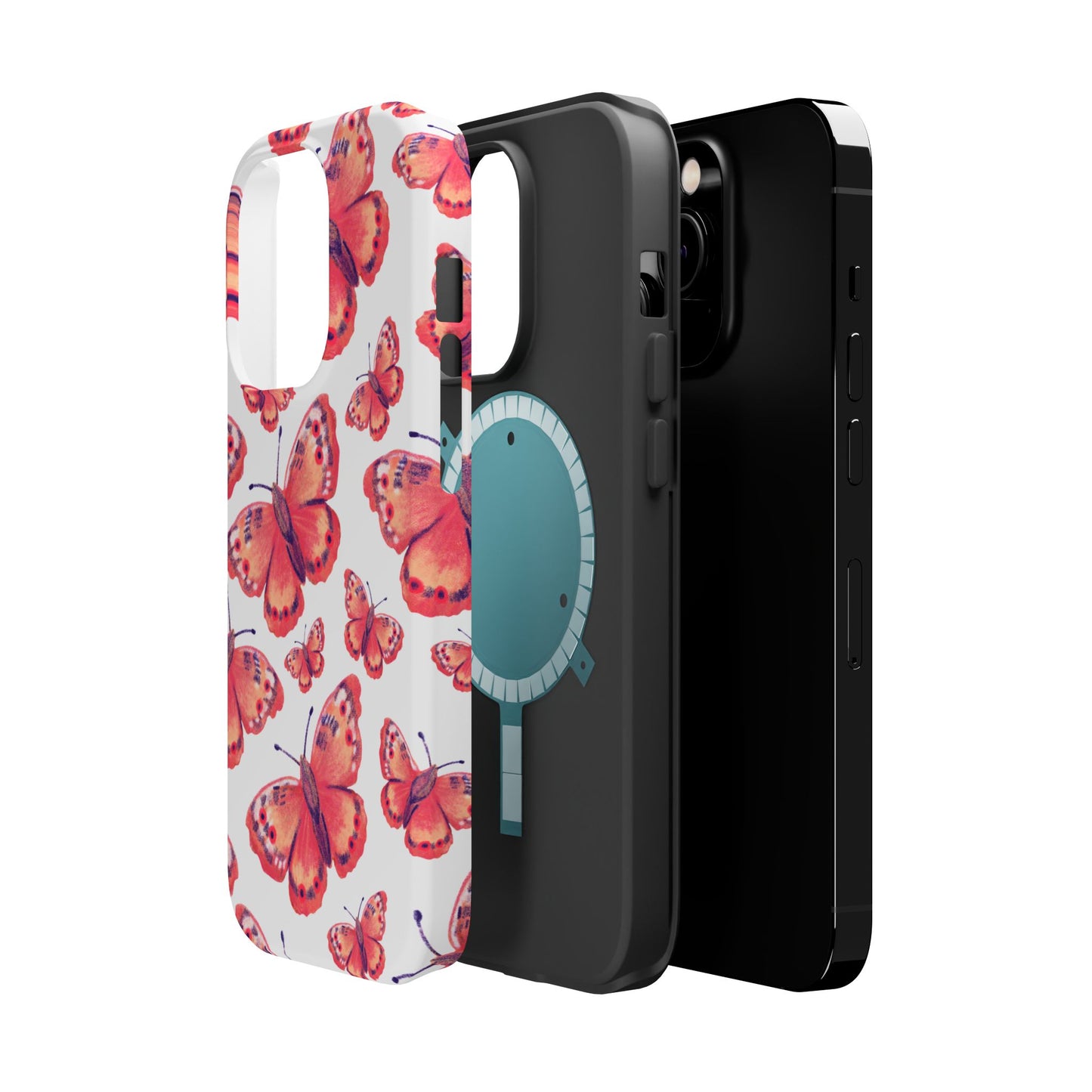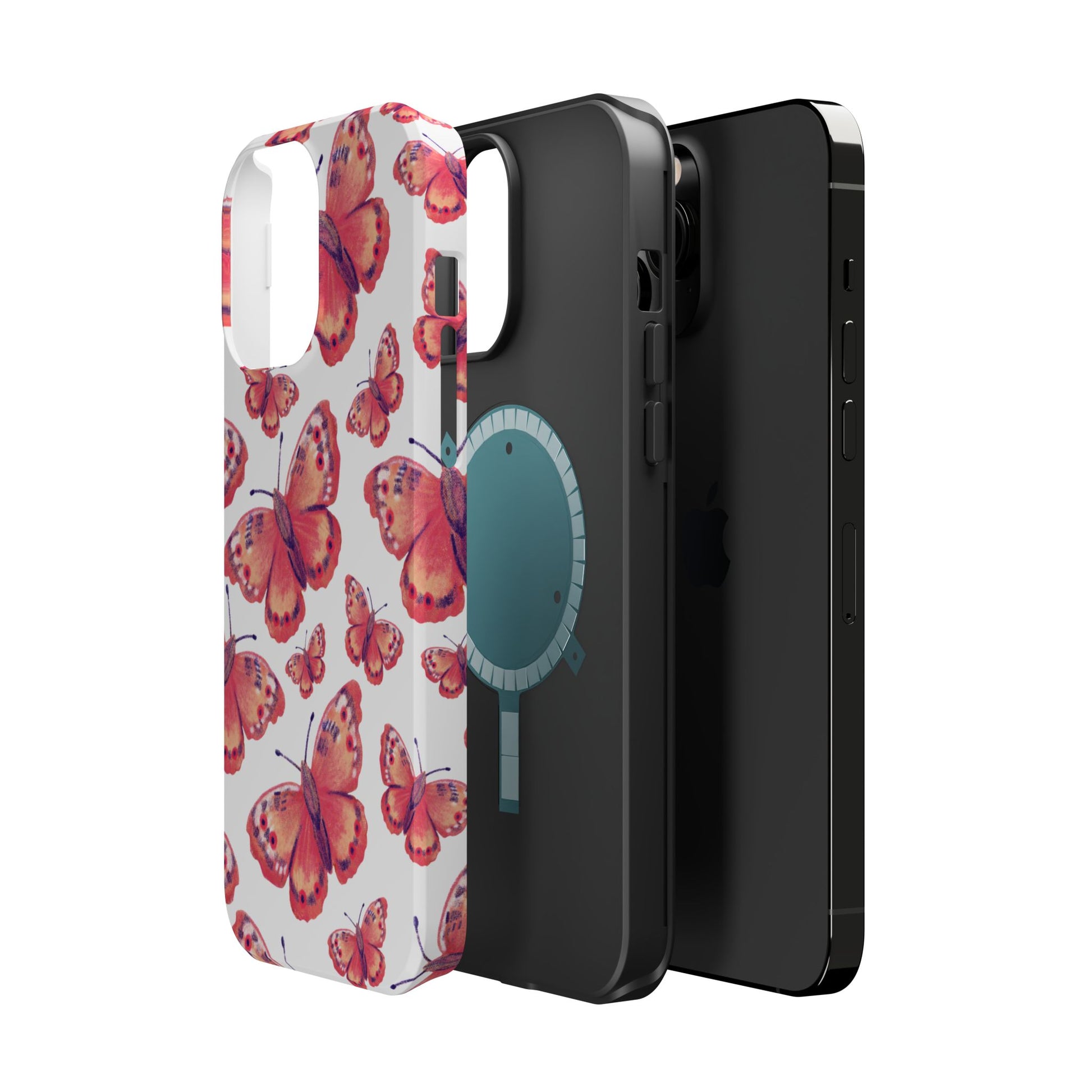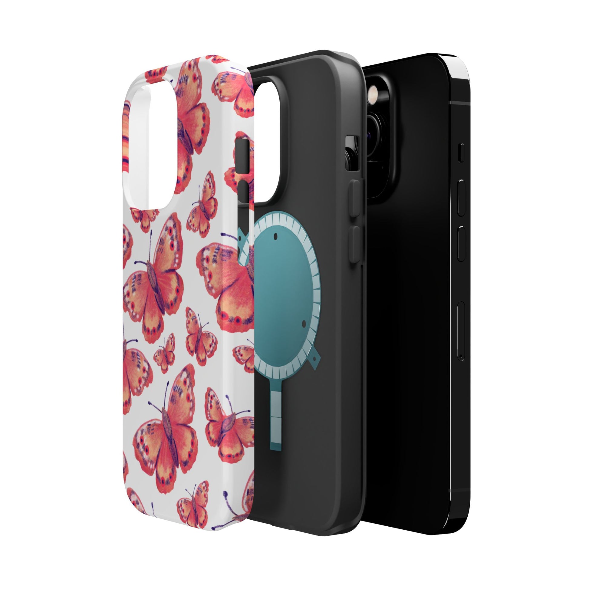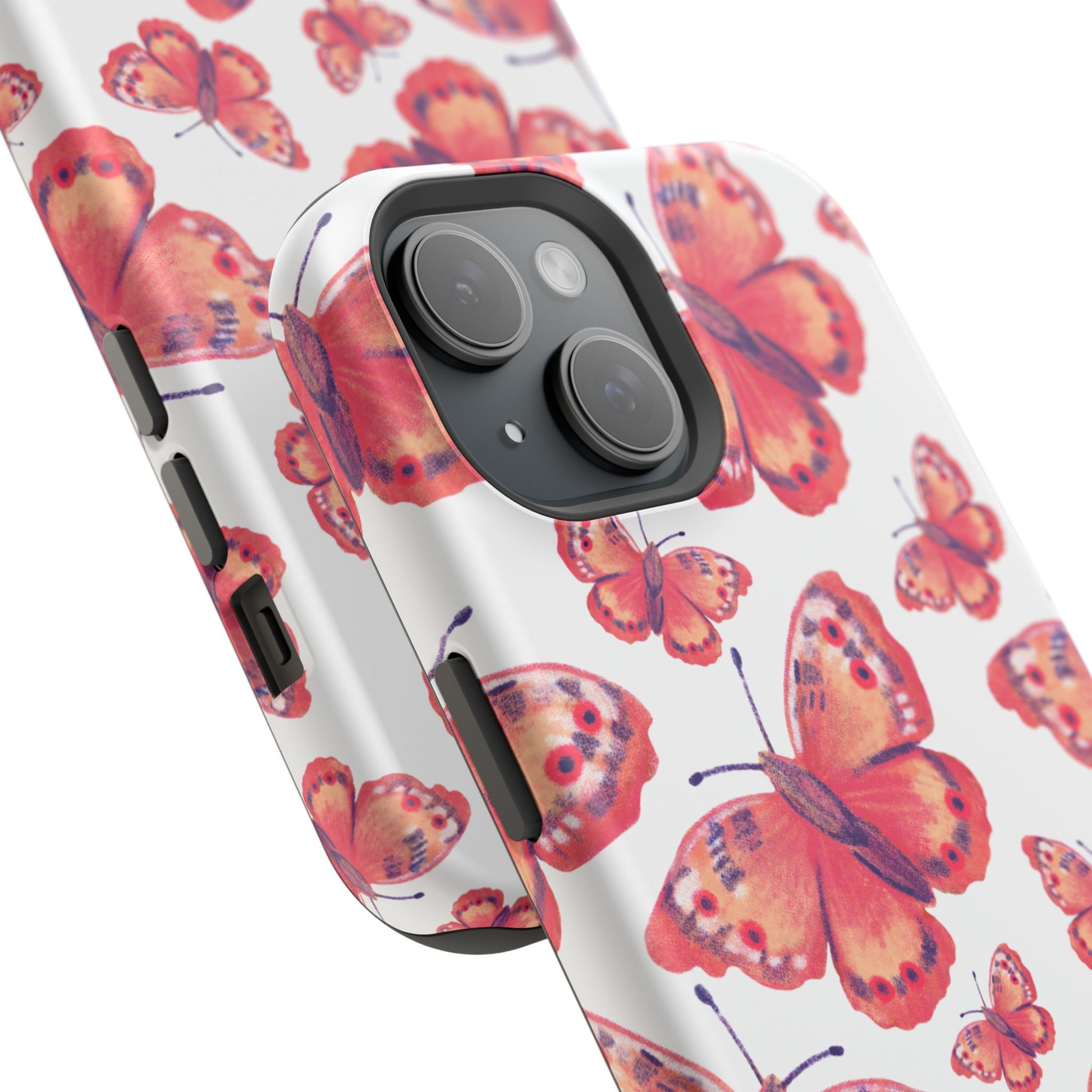 Coral Butterfly MagSafe iPhone Case – Slim, Protective Design with Bold Watercolor Print