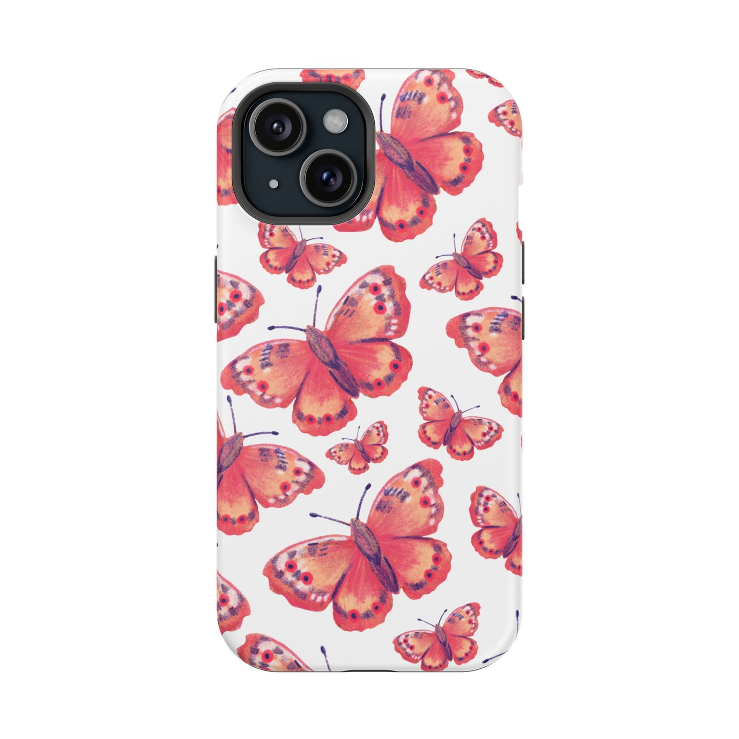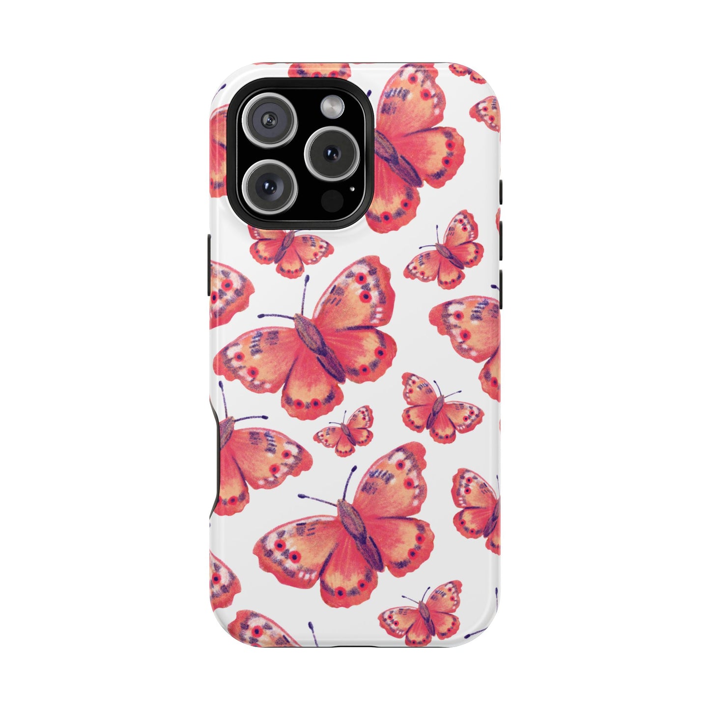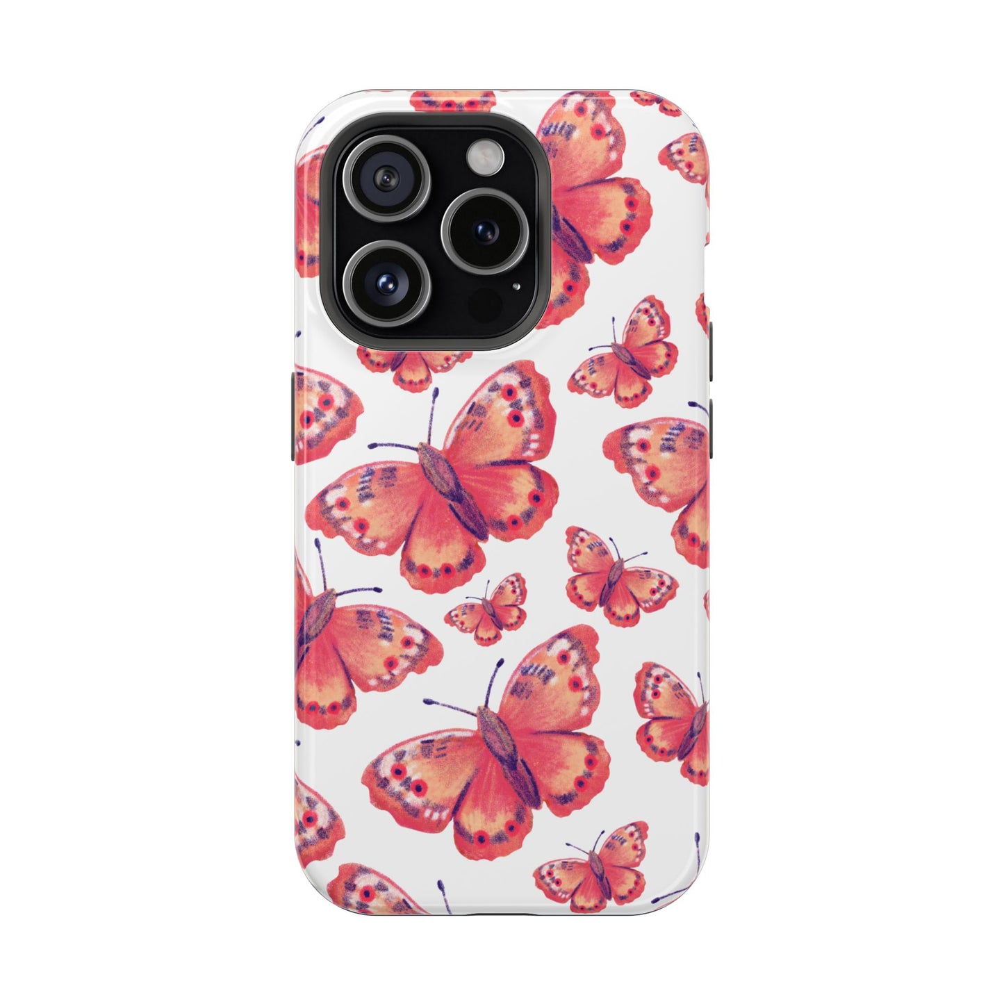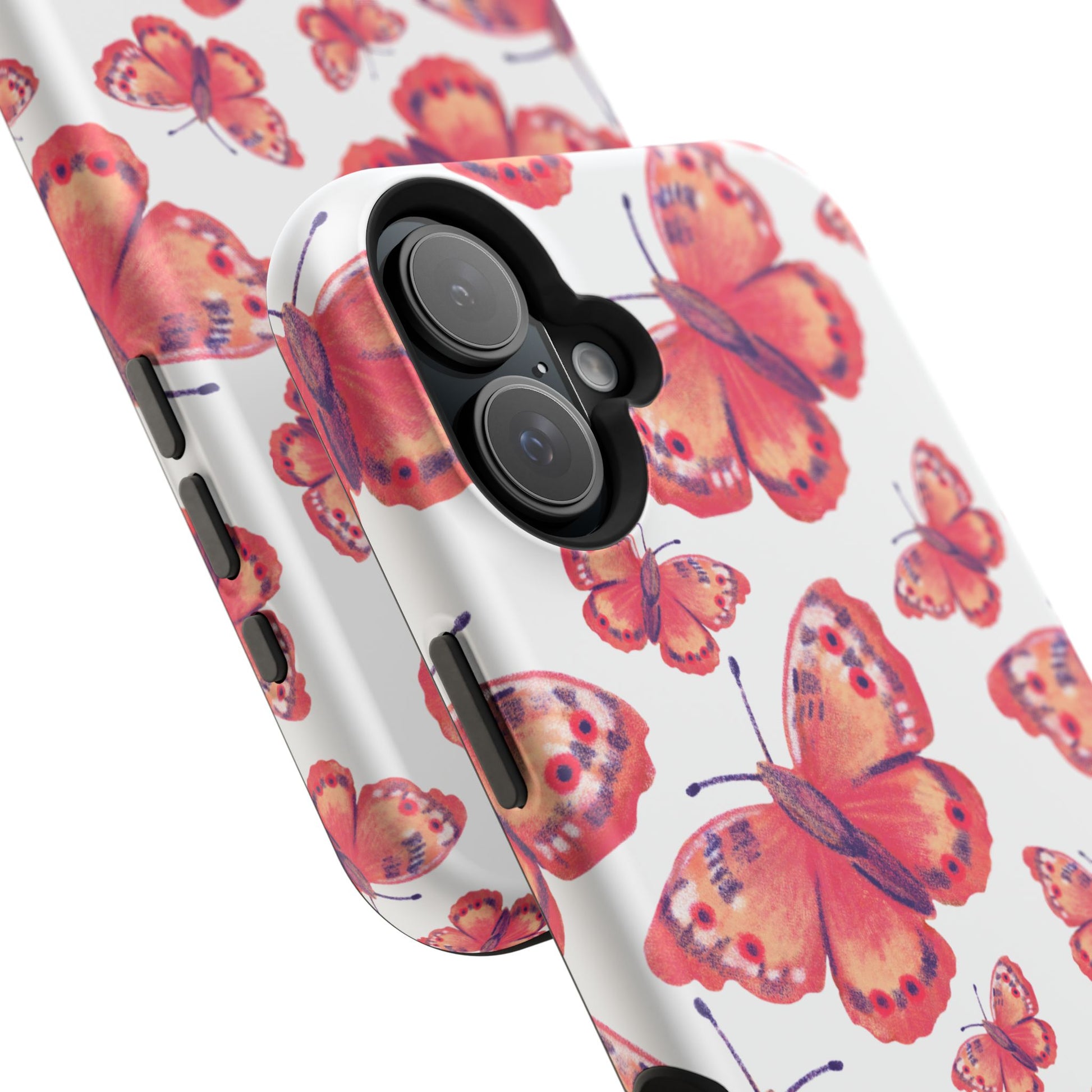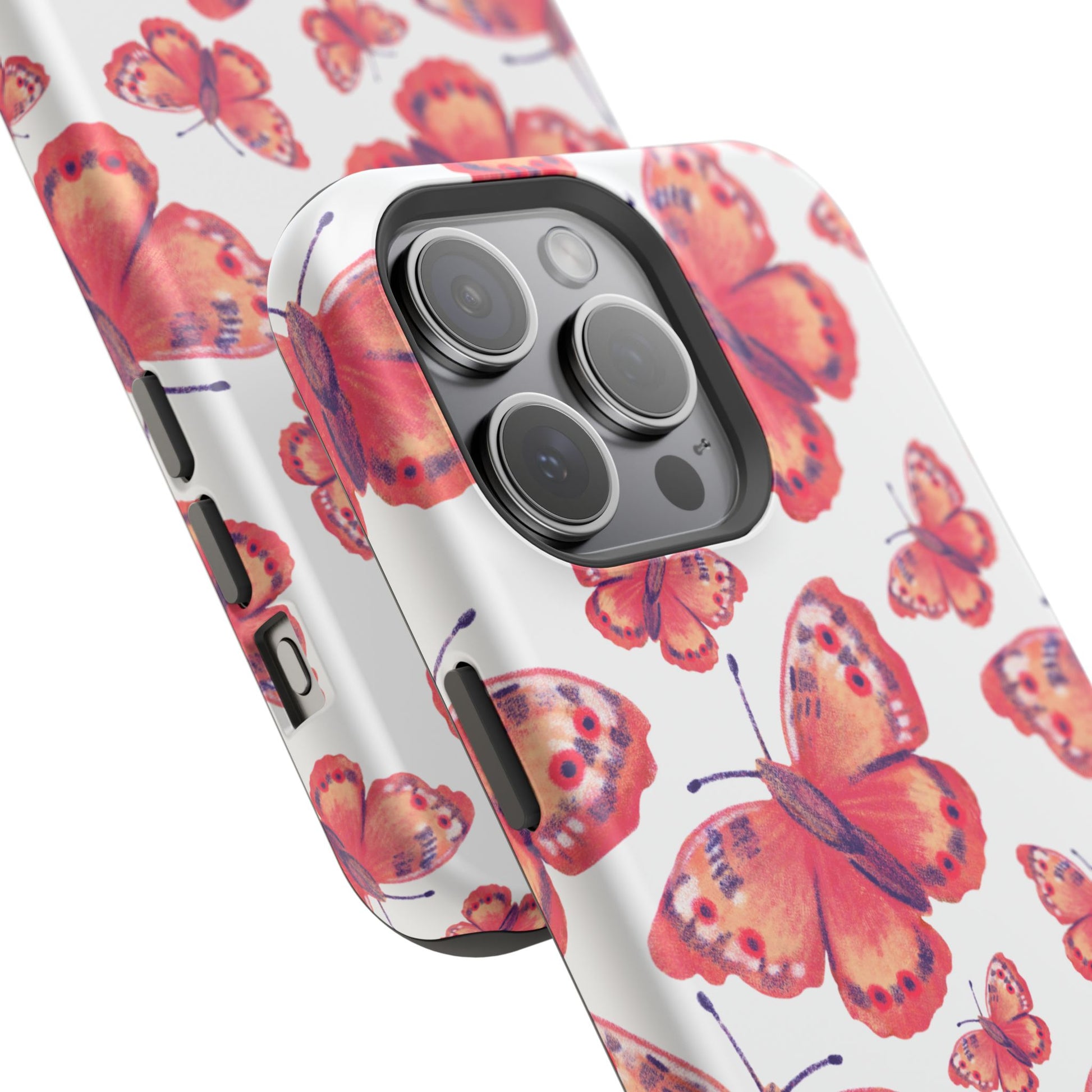 Coral Butterfly MagSafe iPhone Case – Slim, Protective Design with Bold Watercolor Print