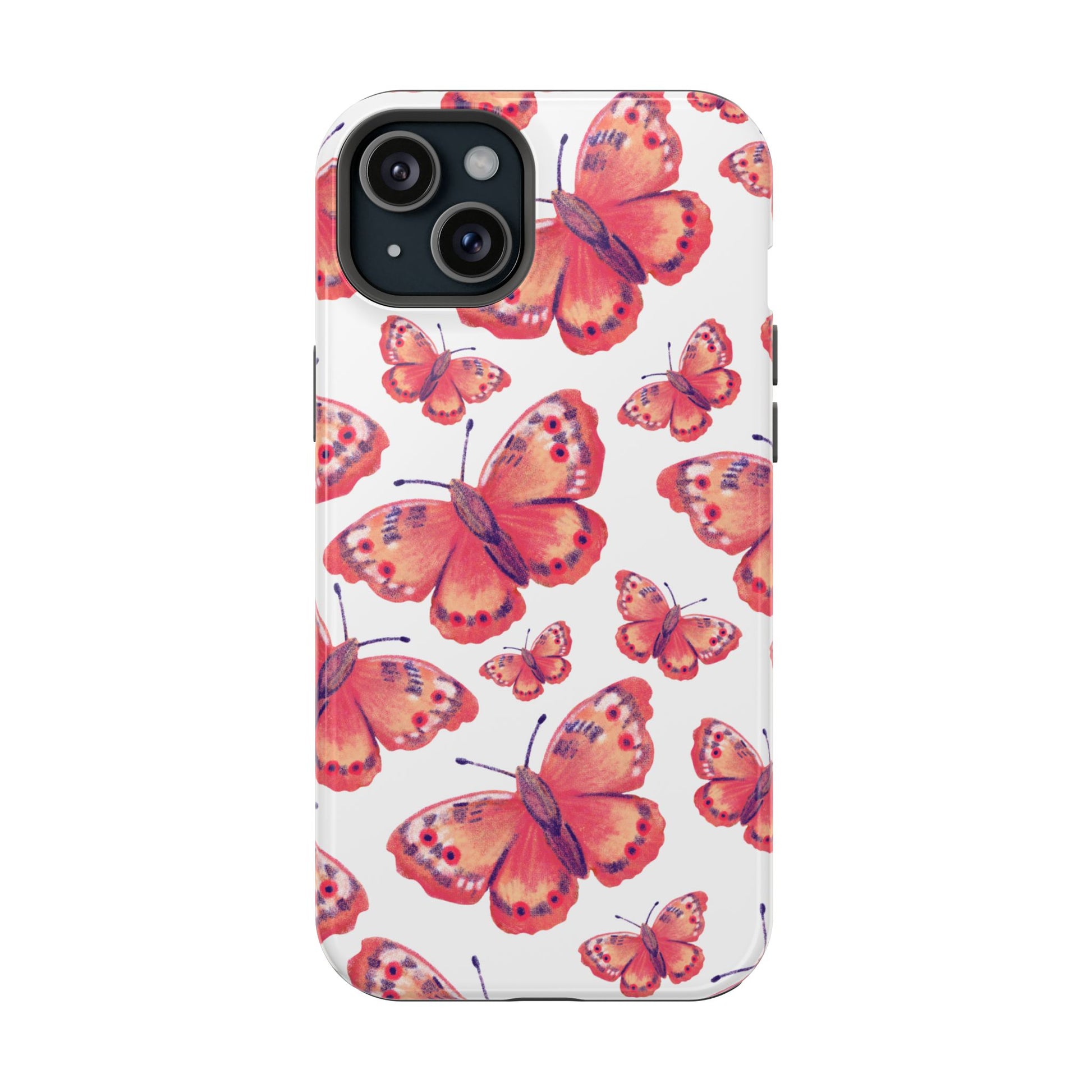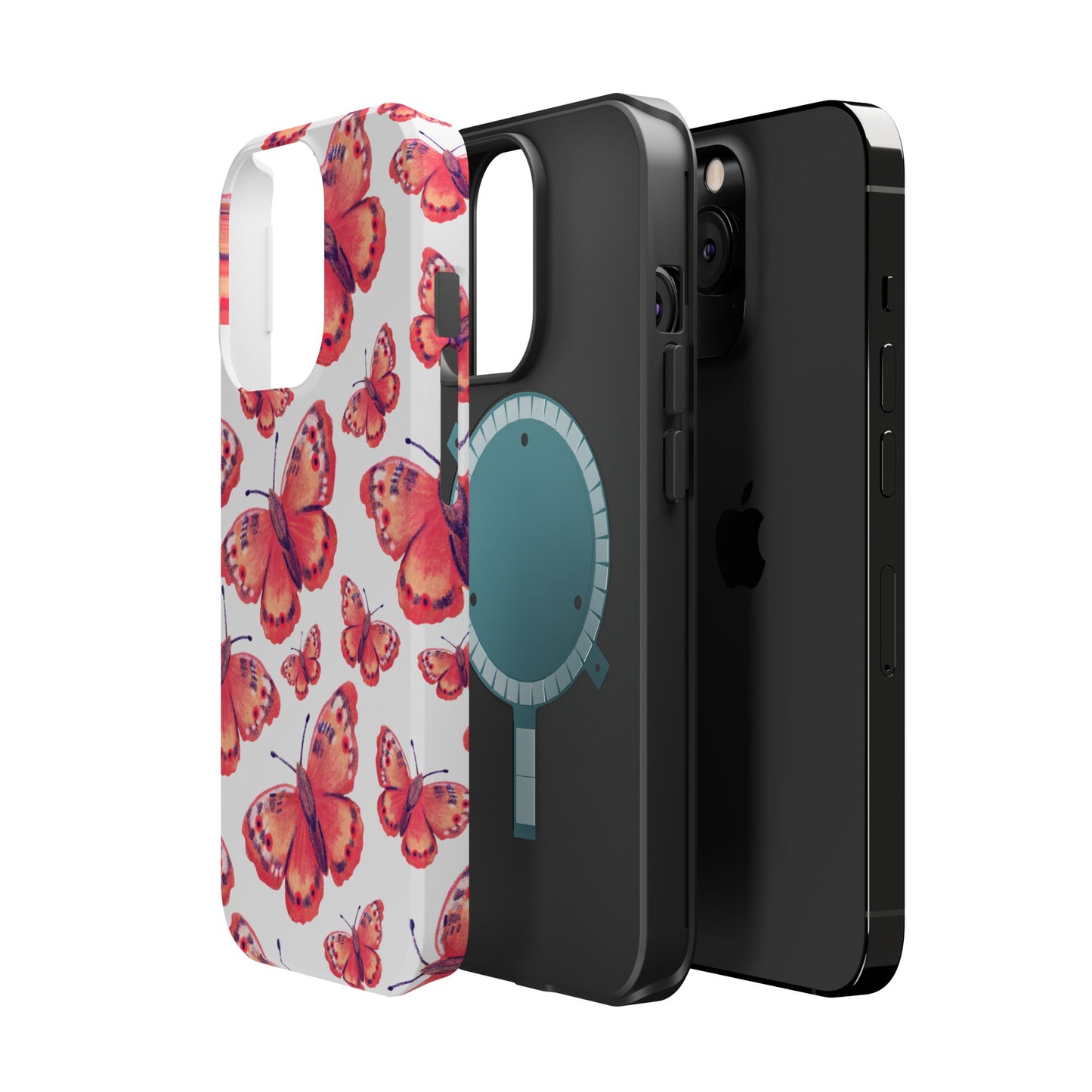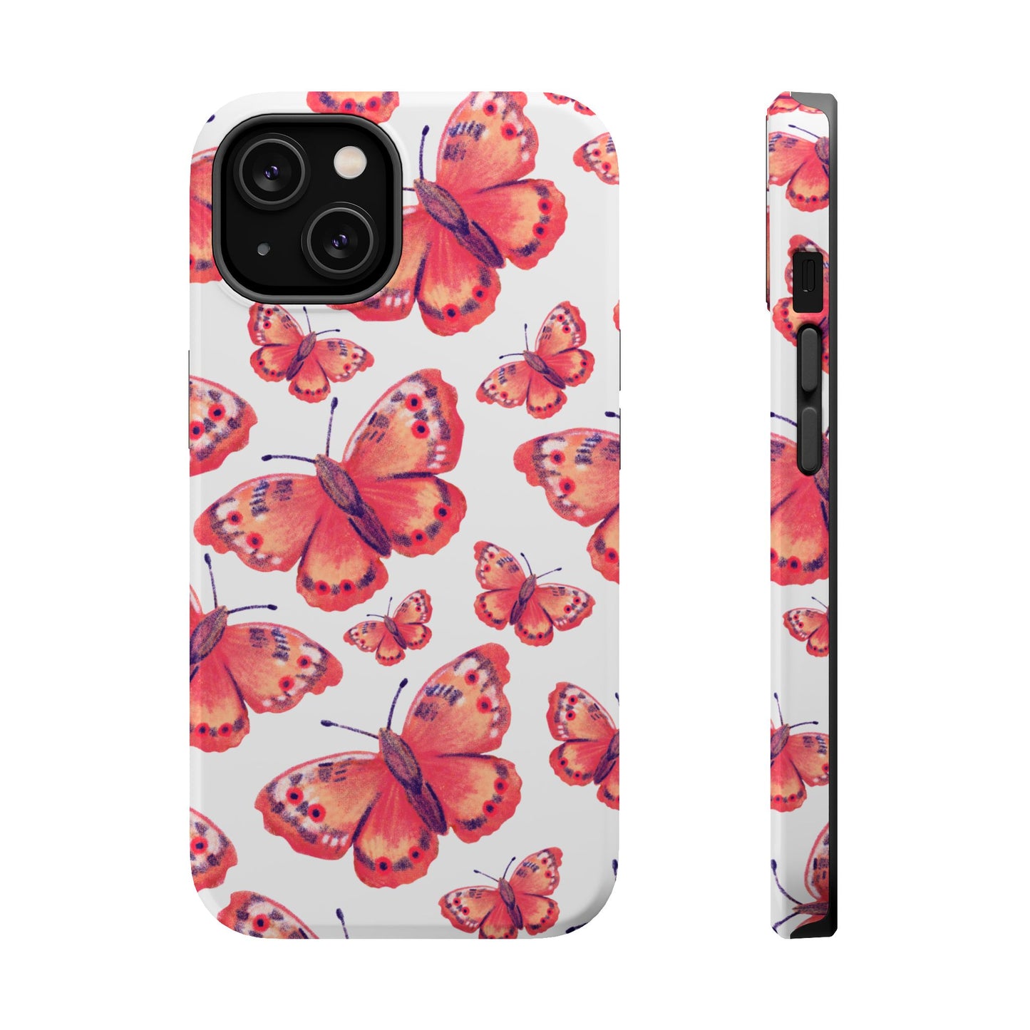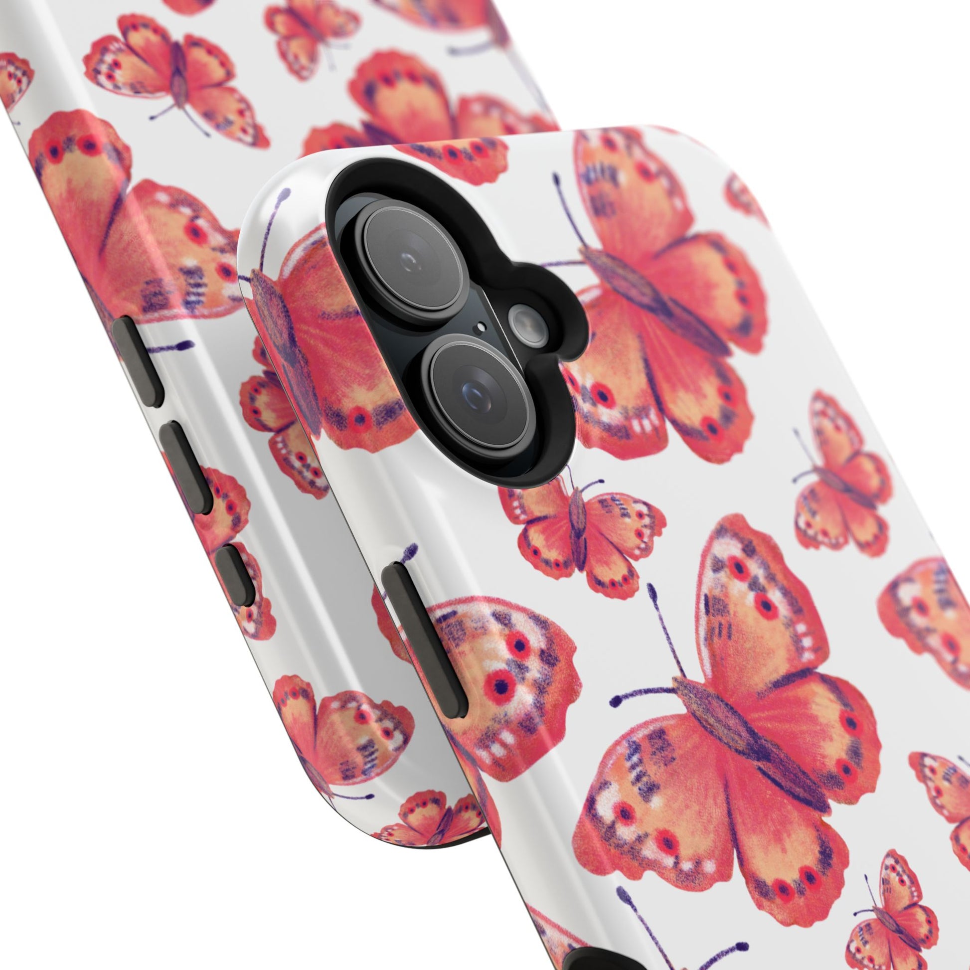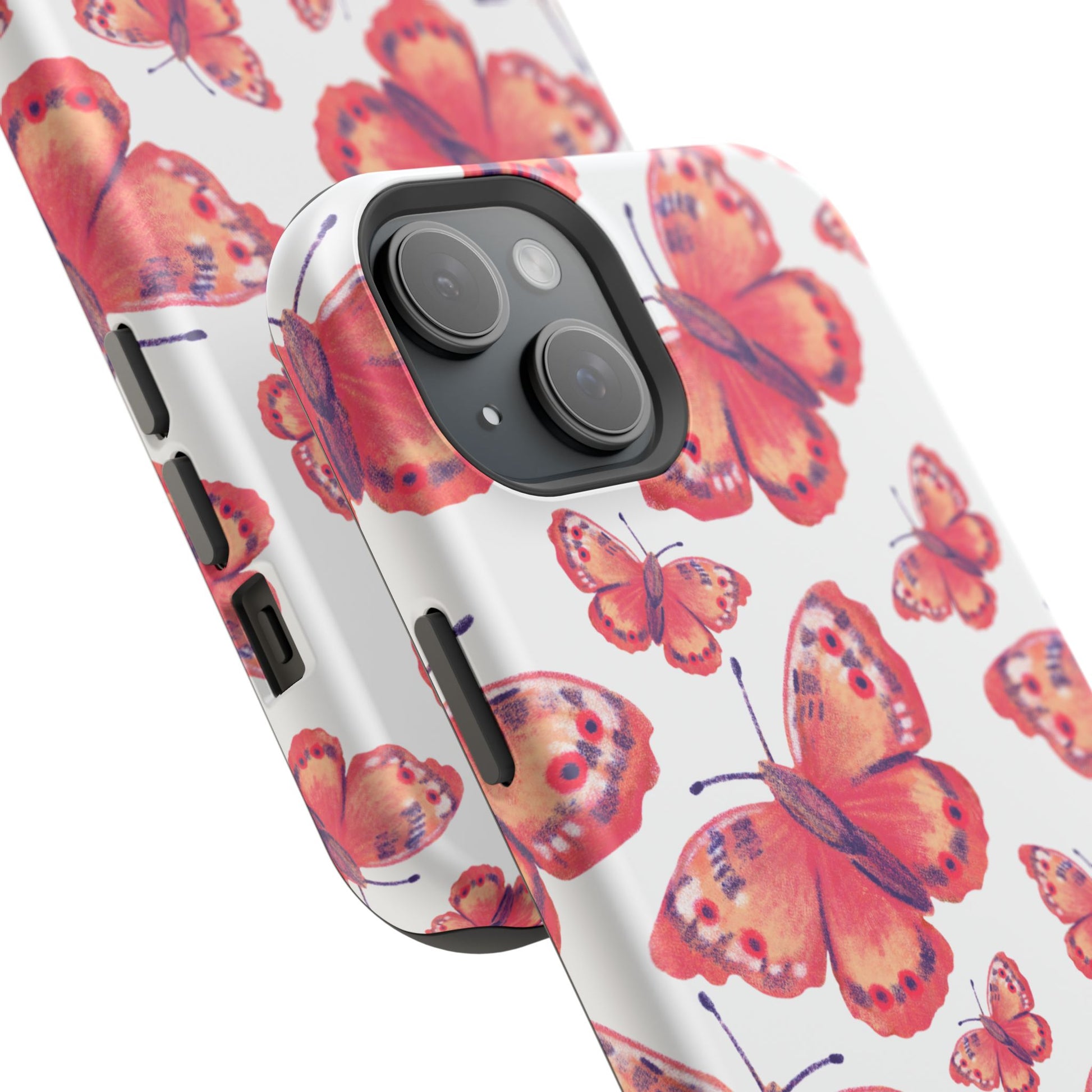 Coral Butterfly MagSafe iPhone Case – Slim, Protective Design with Bold Watercolor Print