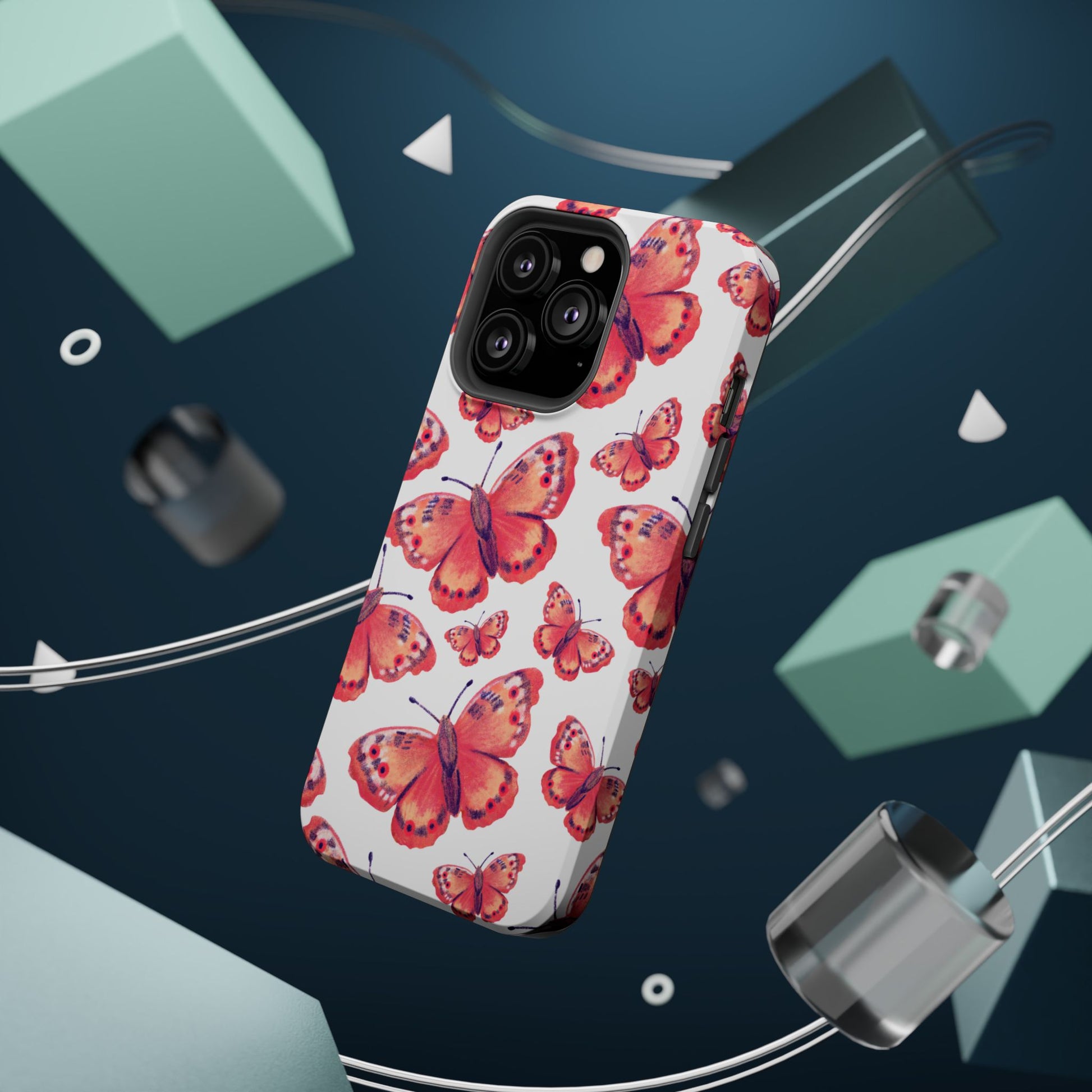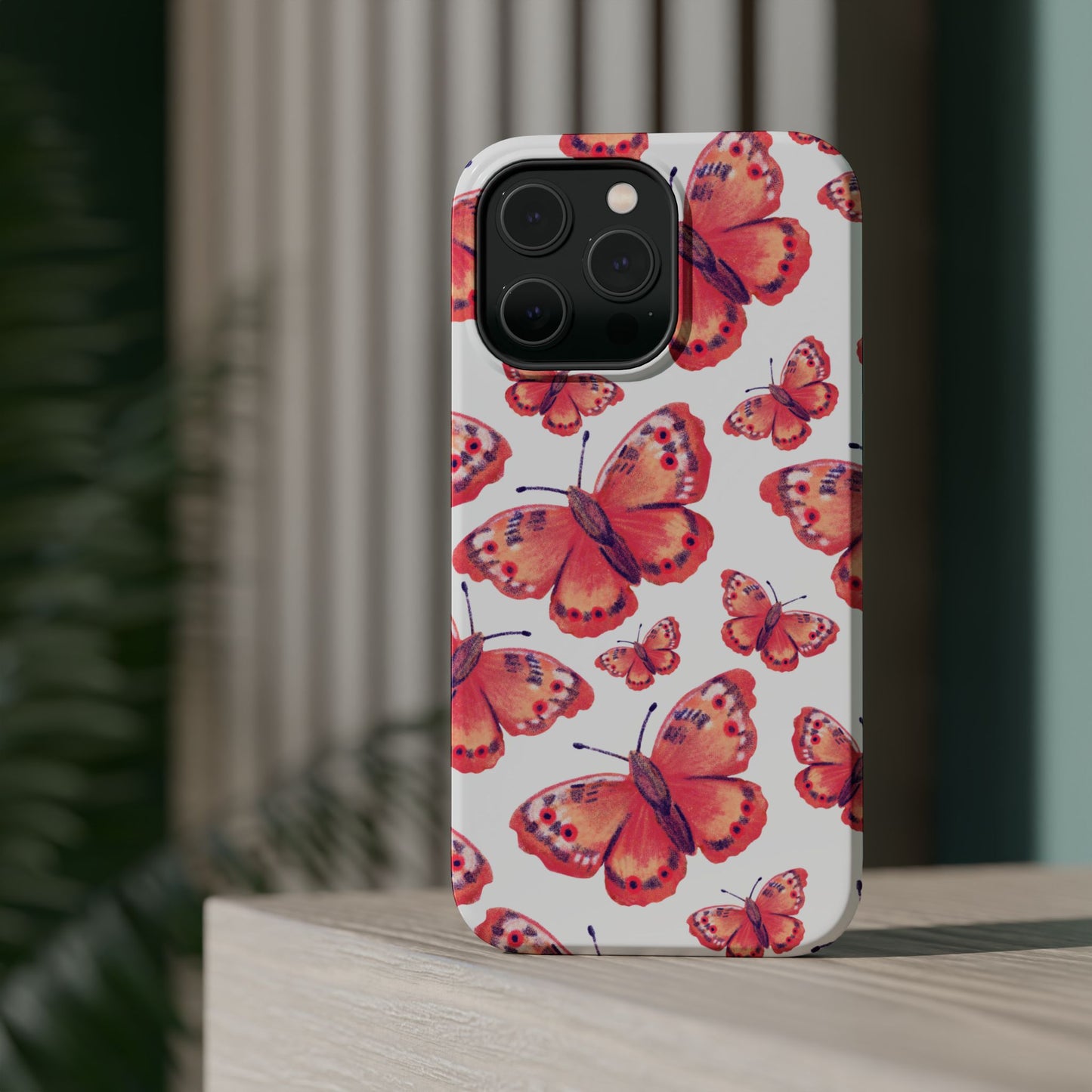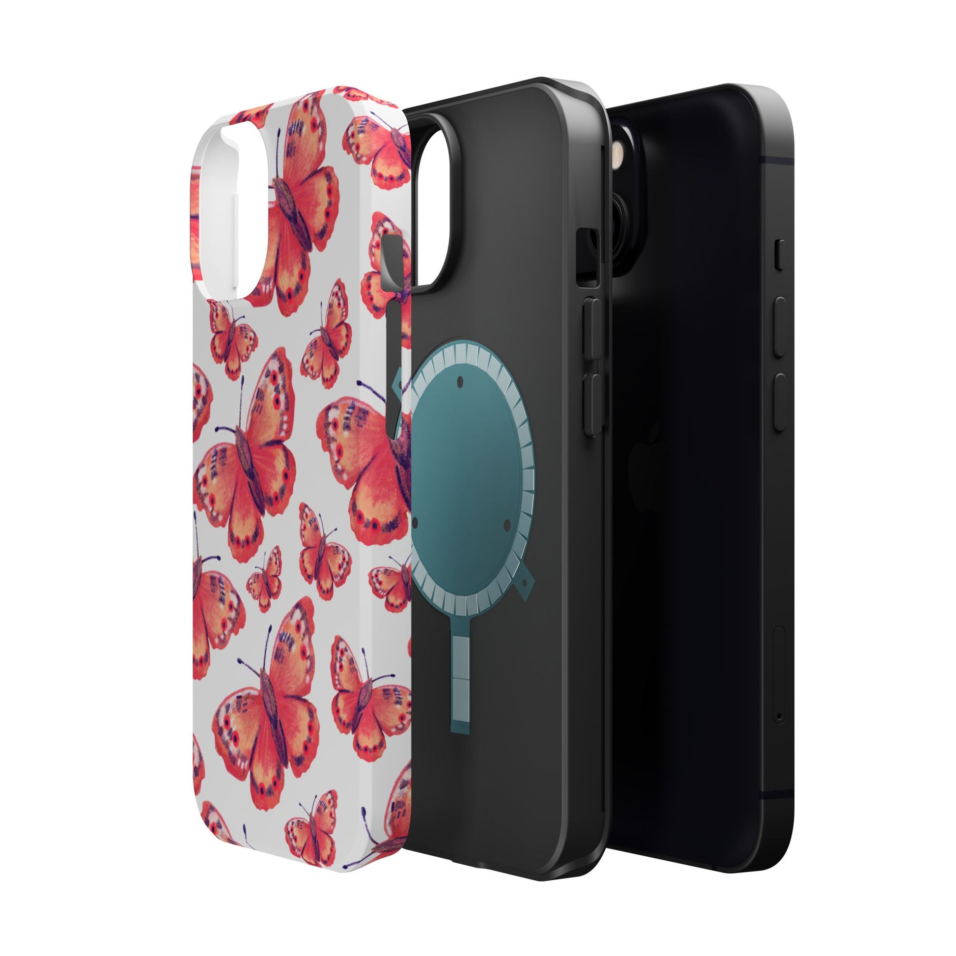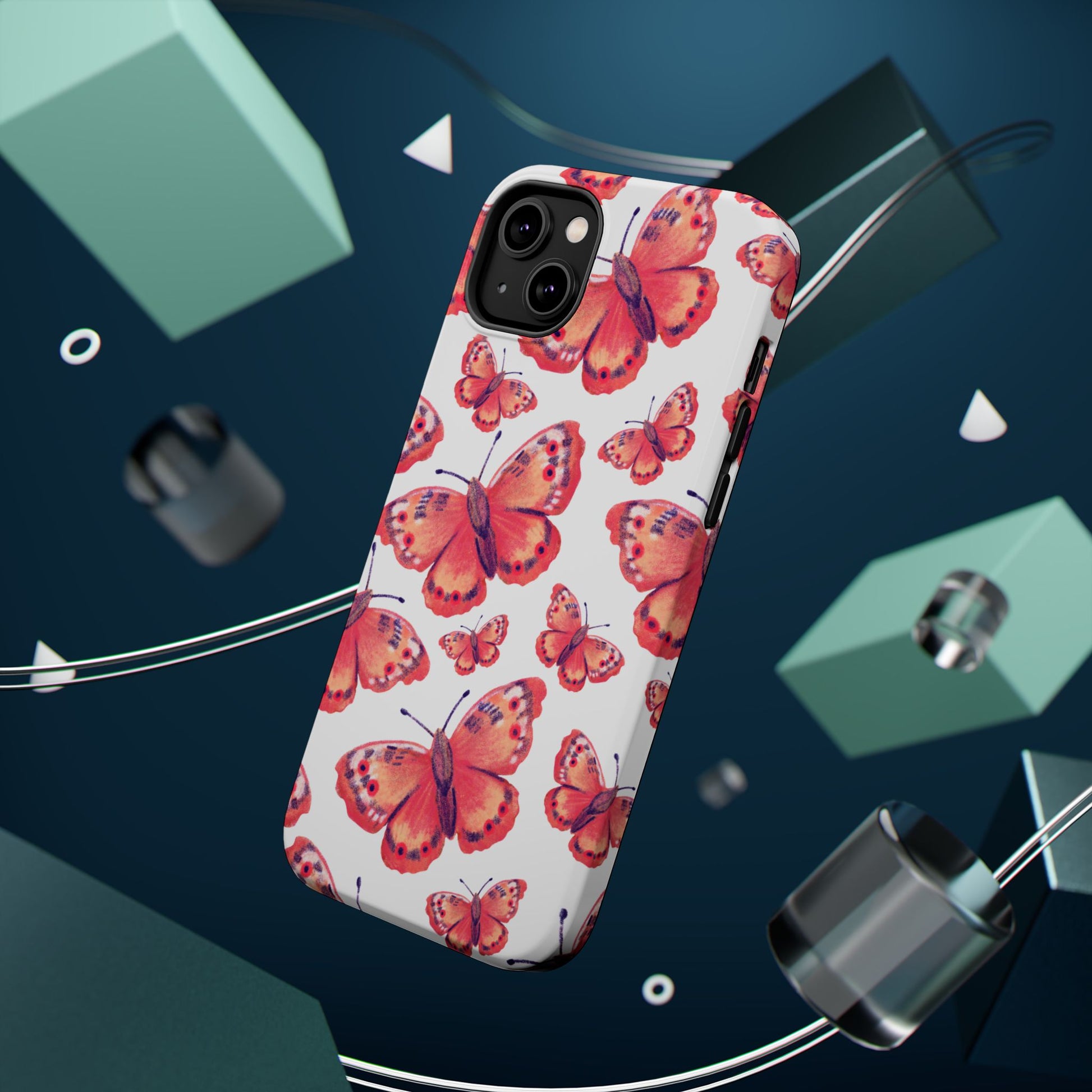 Coral Butterfly MagSafe iPhone Case – Slim, Protective Design with Bold Watercolor Print