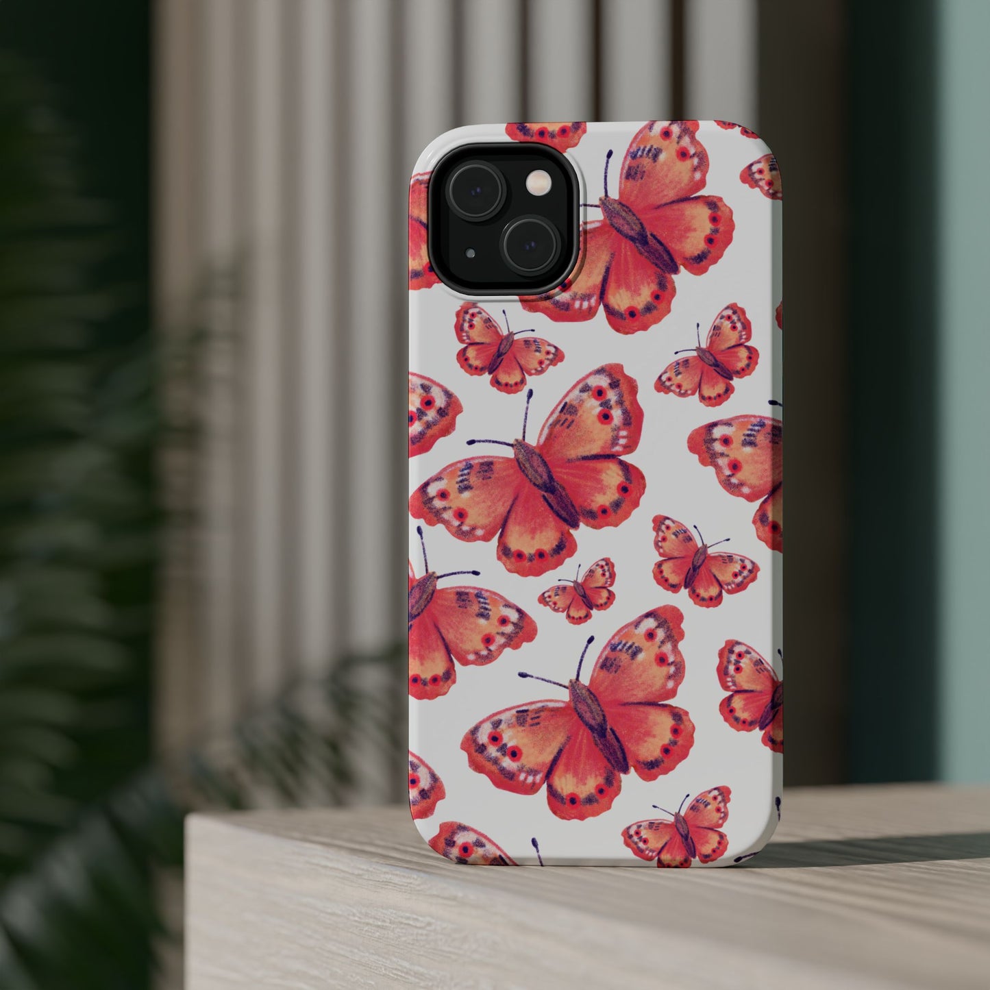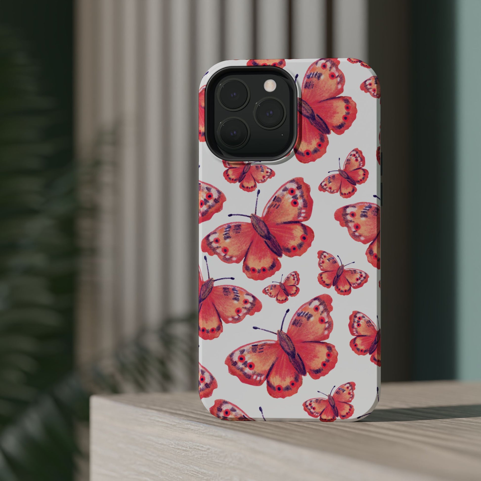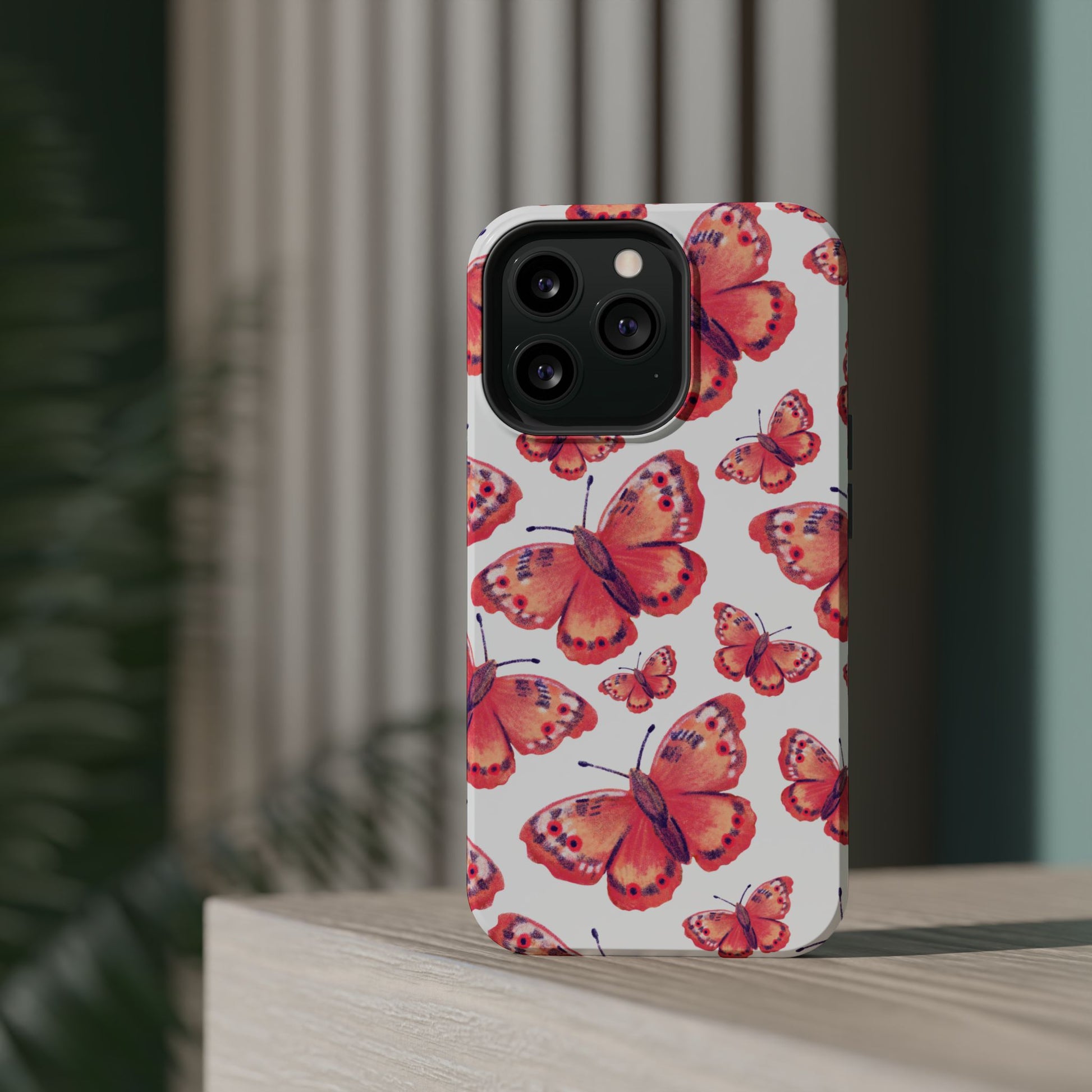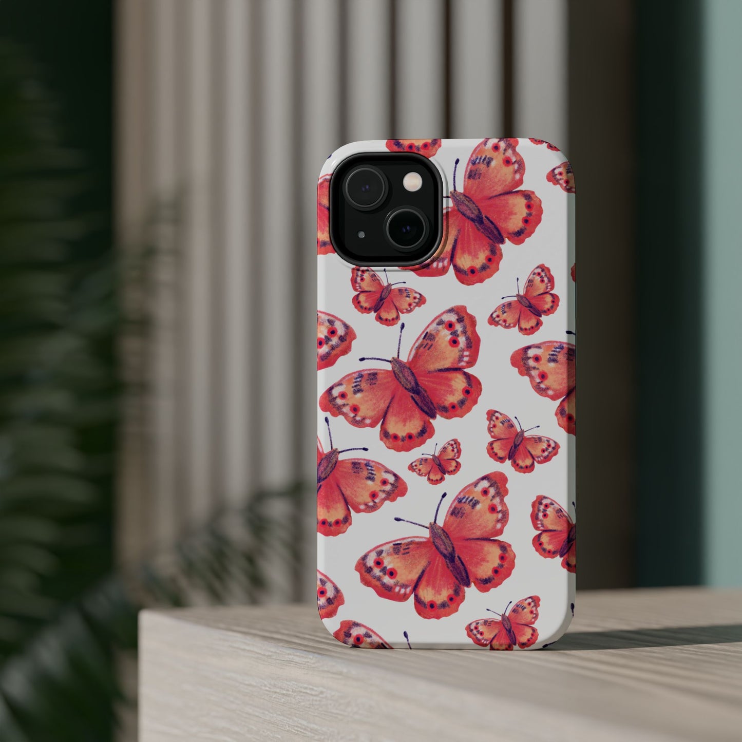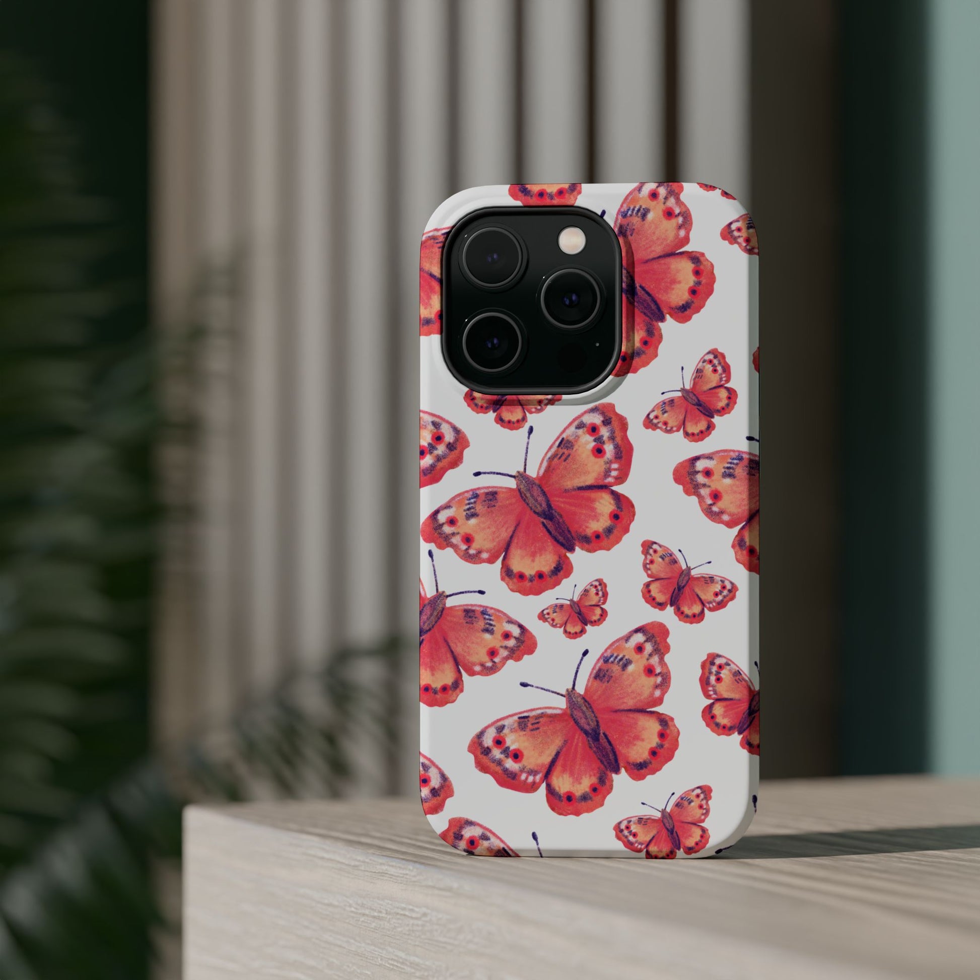 Coral Butterfly MagSafe iPhone Case – Slim, Protective Design with Bold Watercolor Print