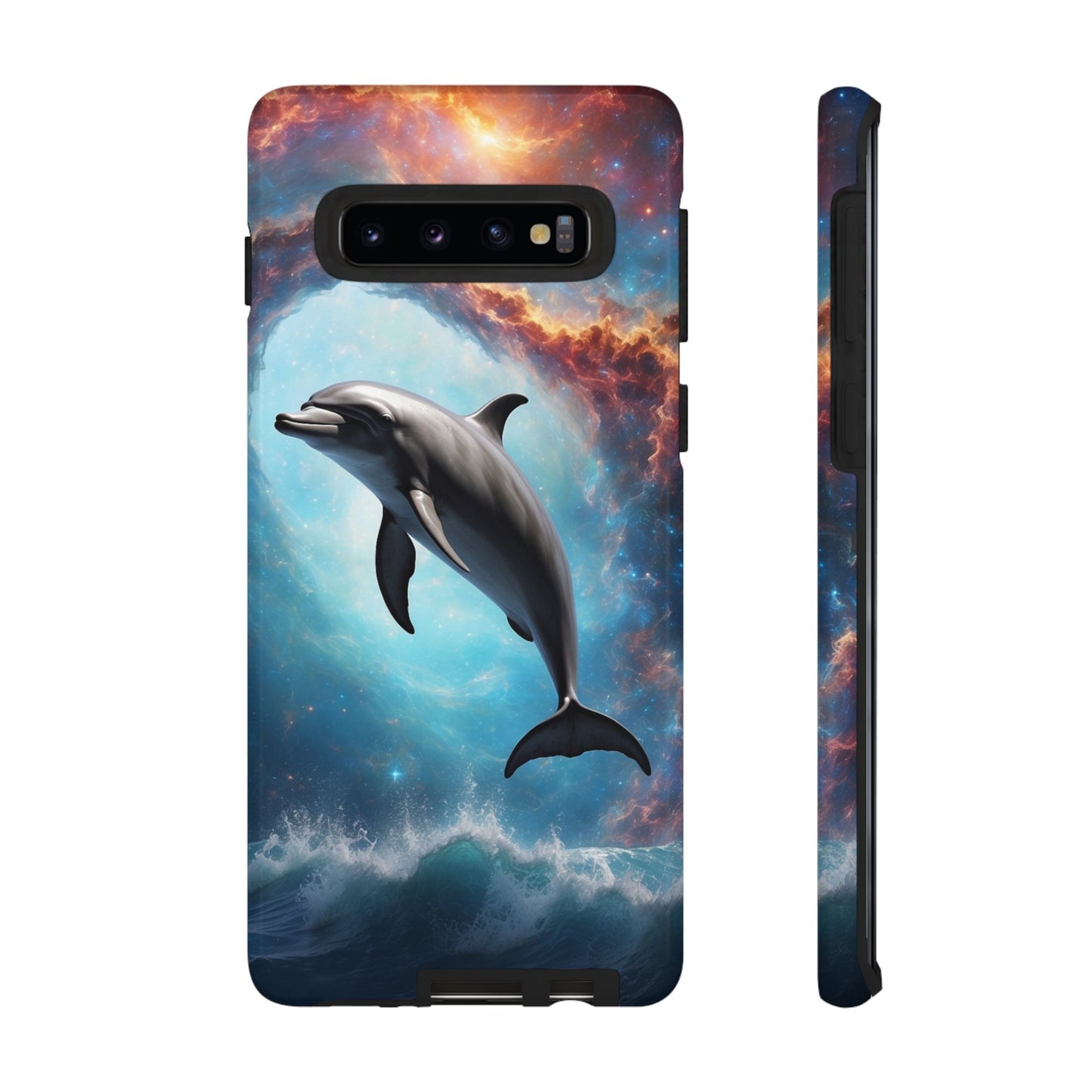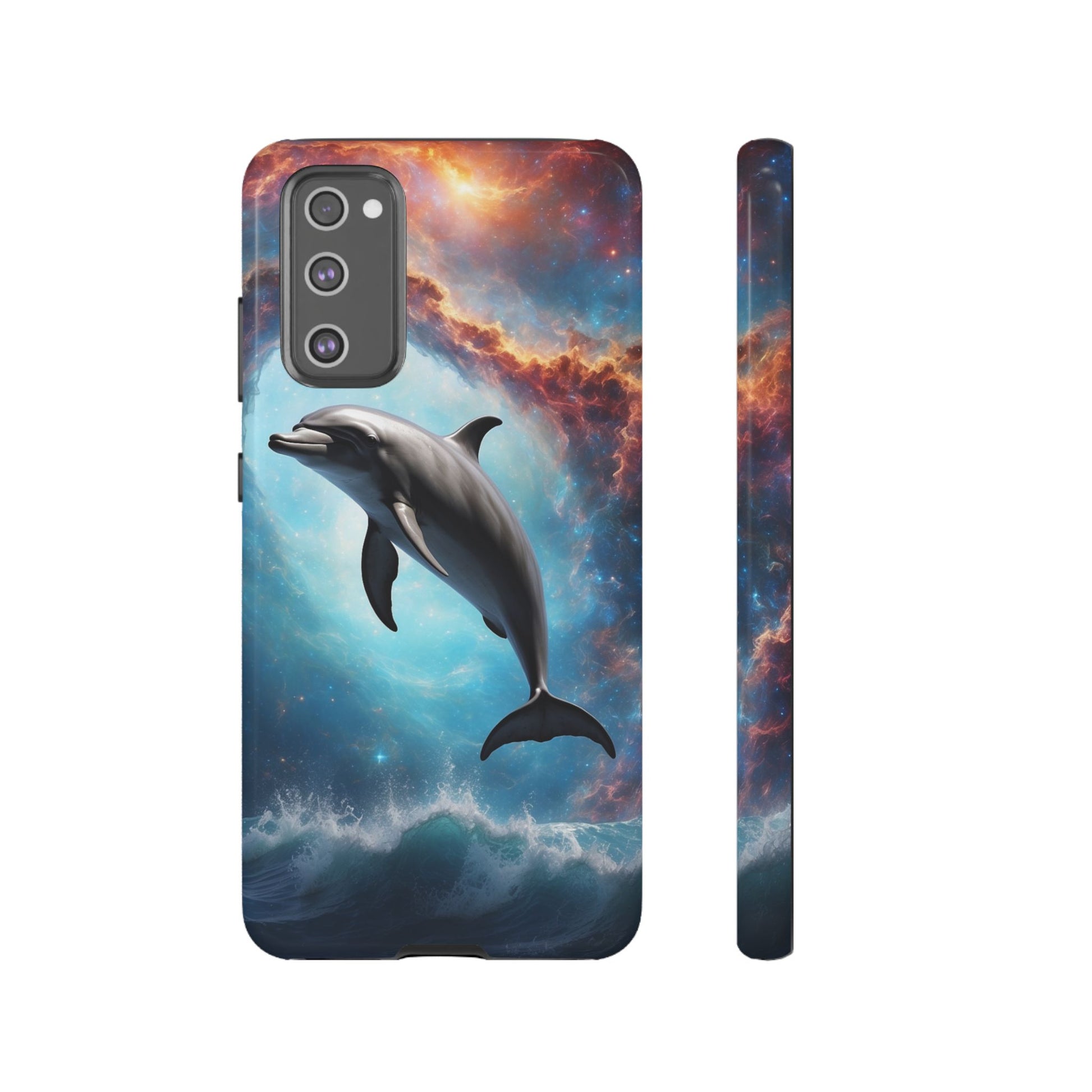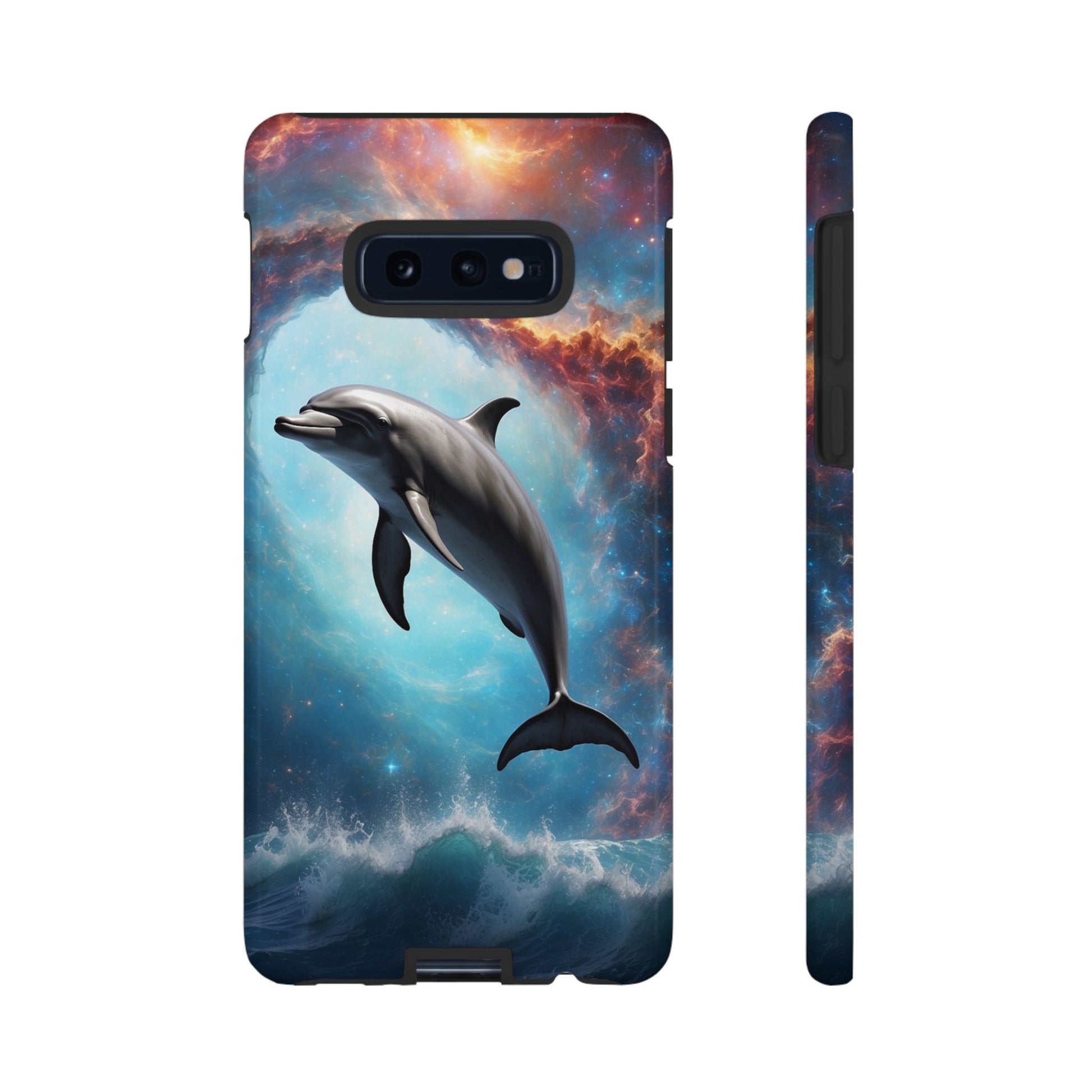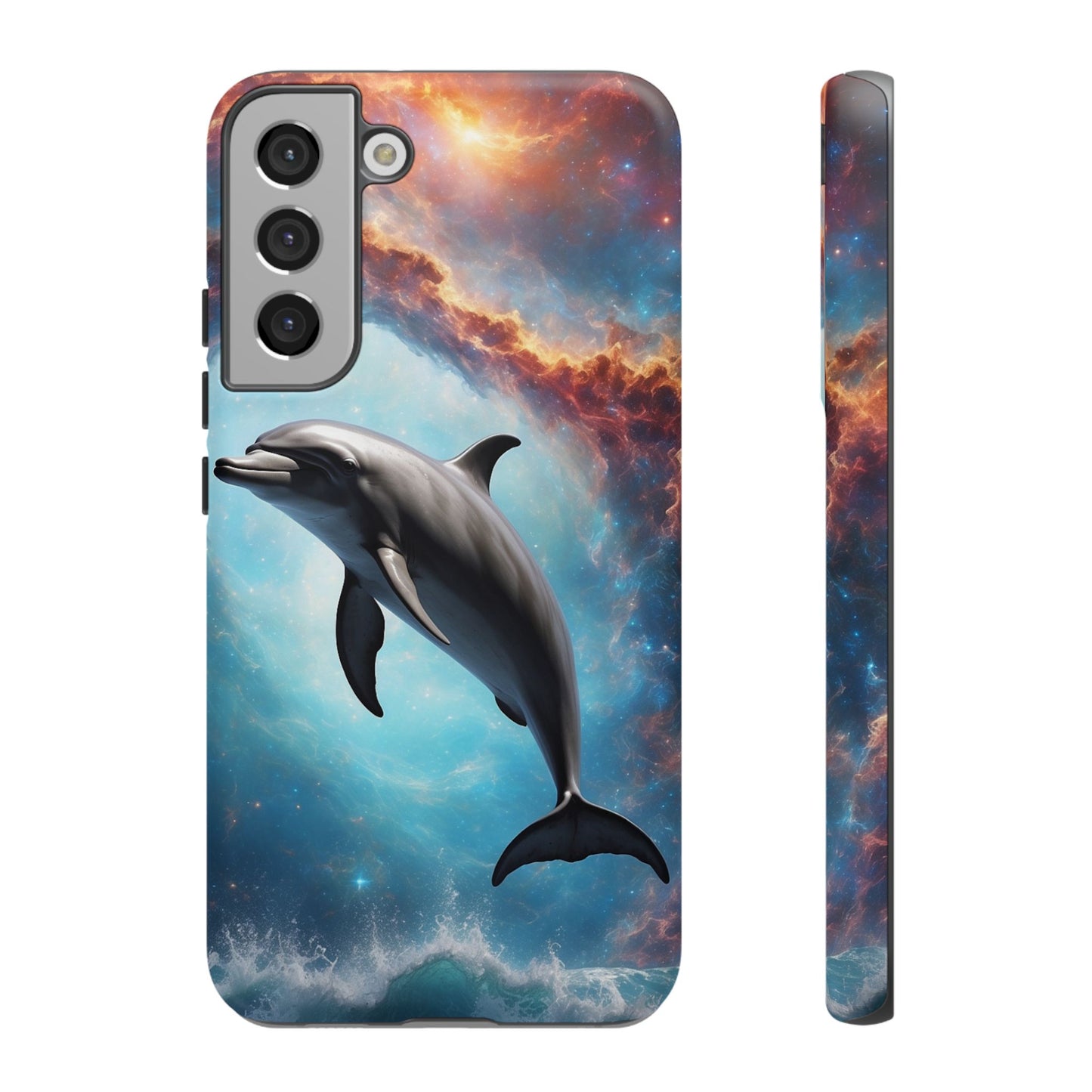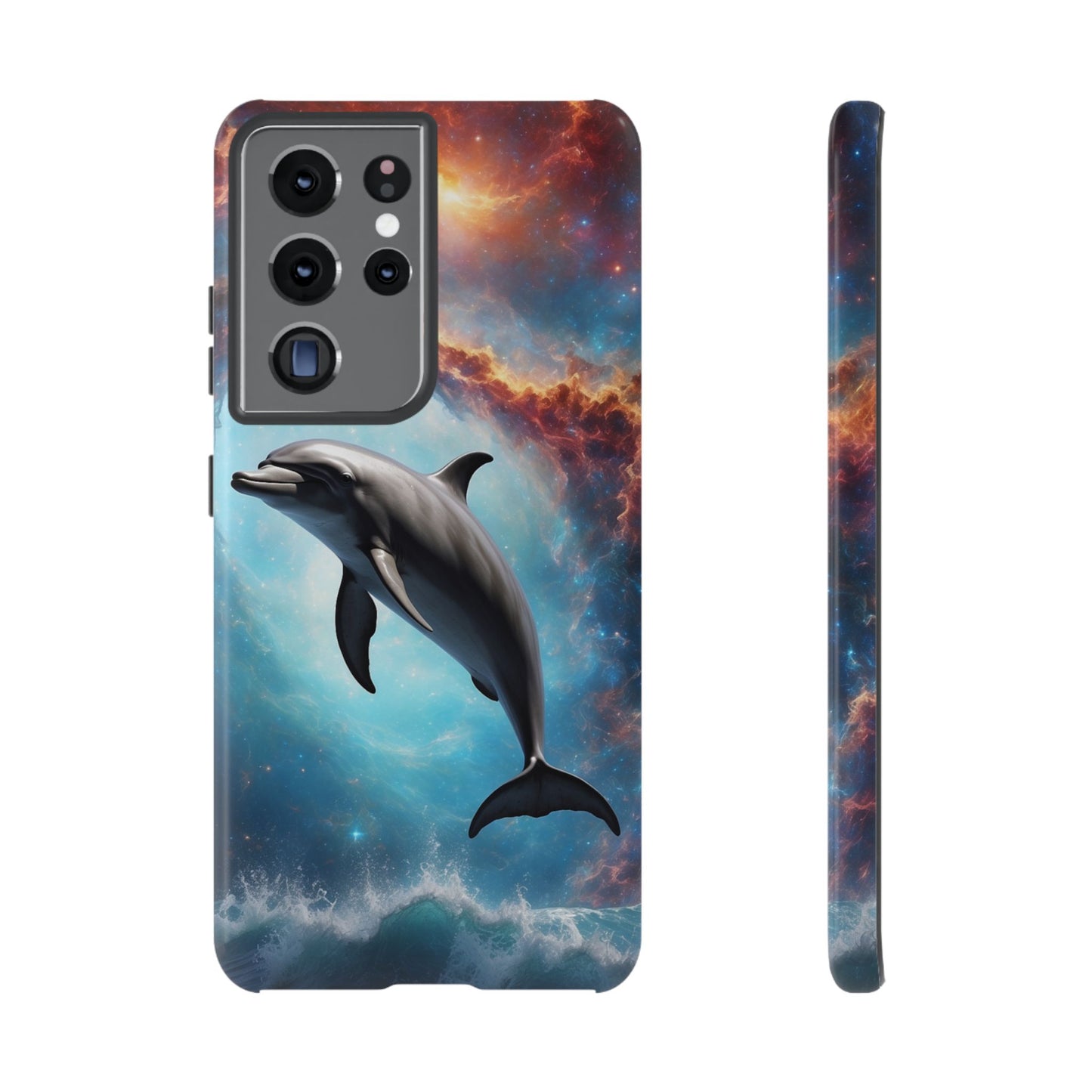 Take your Samsung Galaxy to new heights with the Cosmic Dolphin Space Vibes Case! Featuring a breathtaking design of a dolphin soaring through a galaxy of brilliant purples, fiery oranges, and cosmic blues, this case combines artistic flair with ultimate device protection. Crafted for durabili...