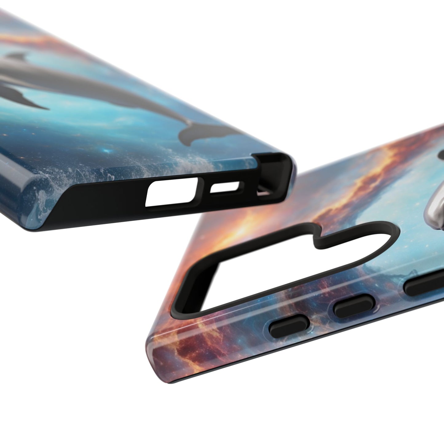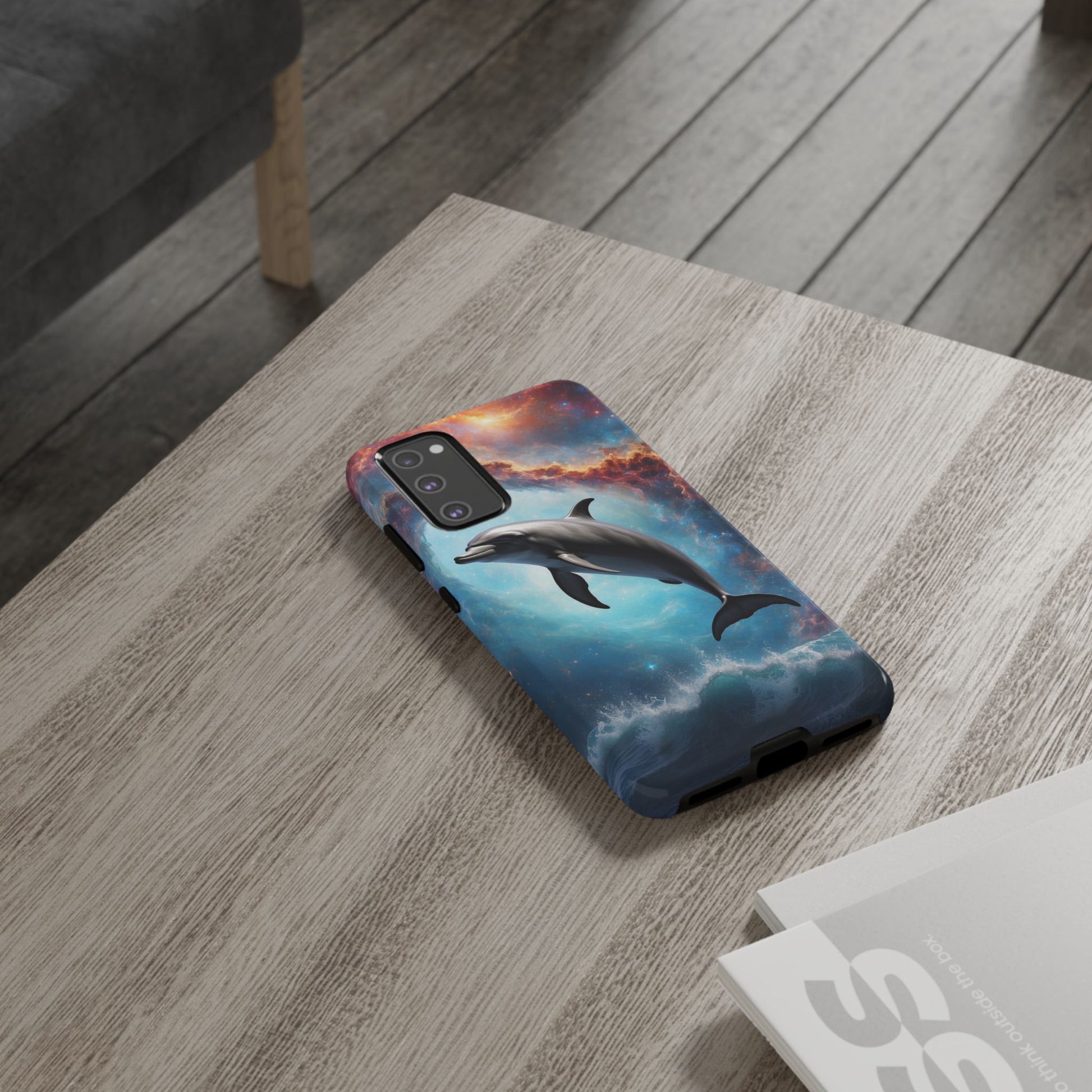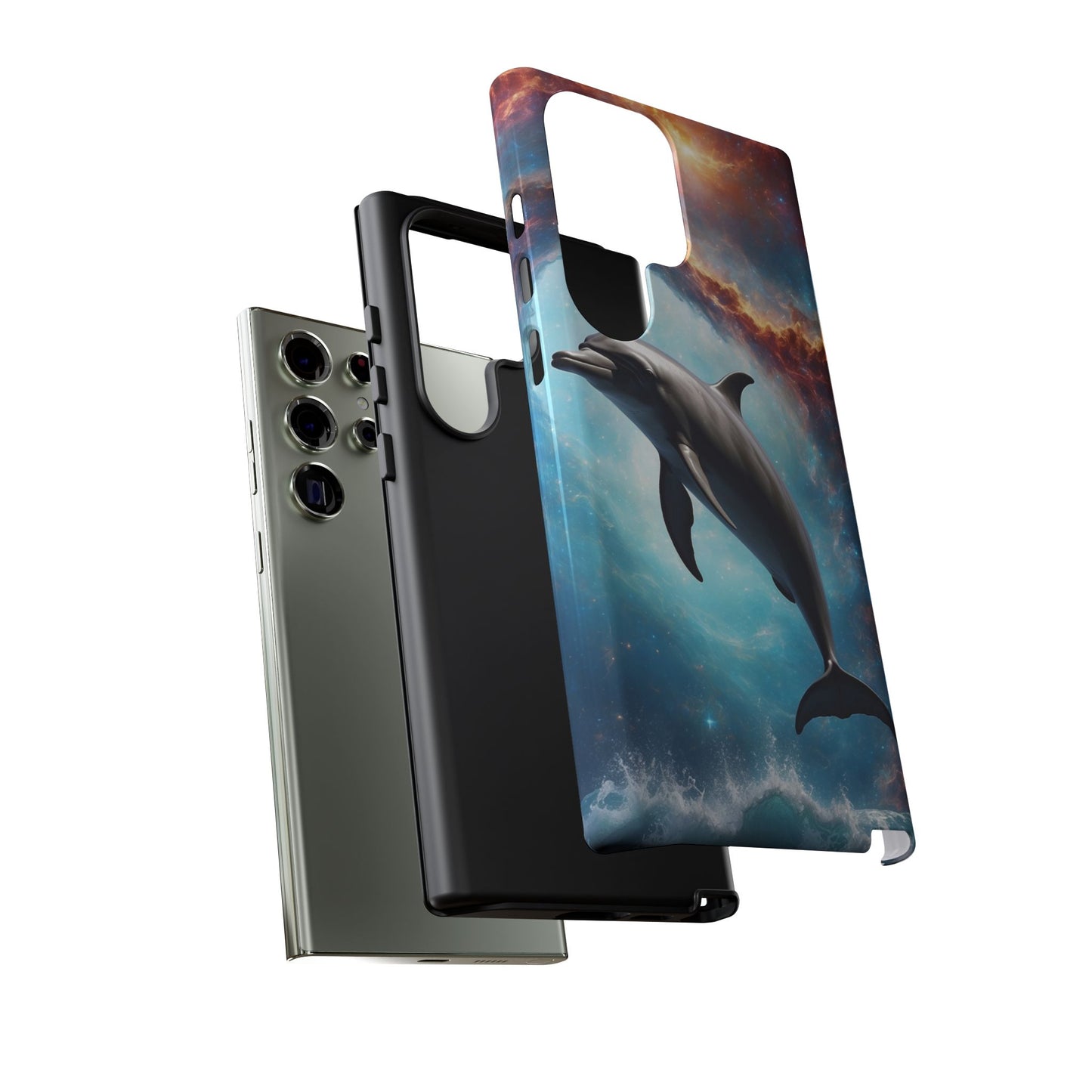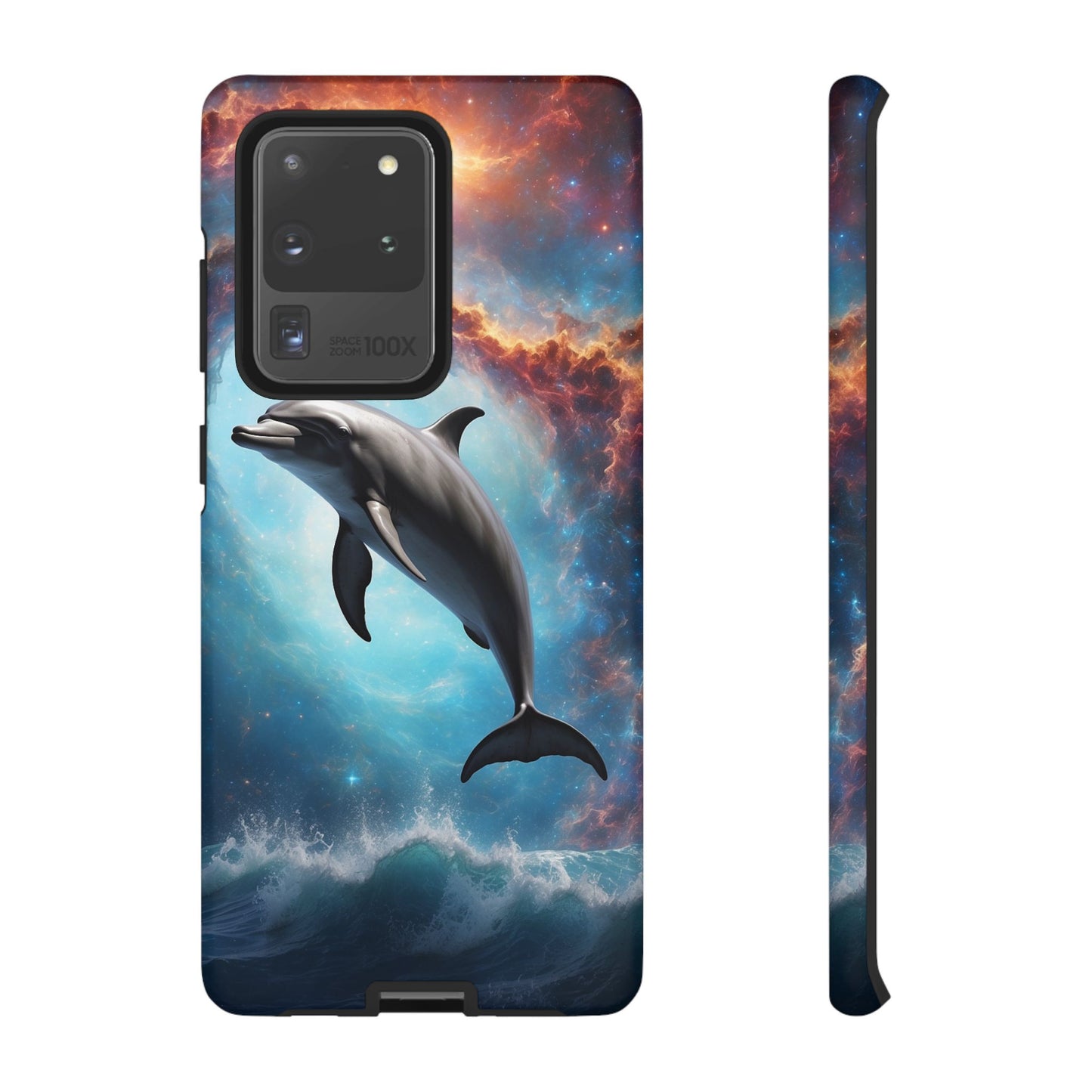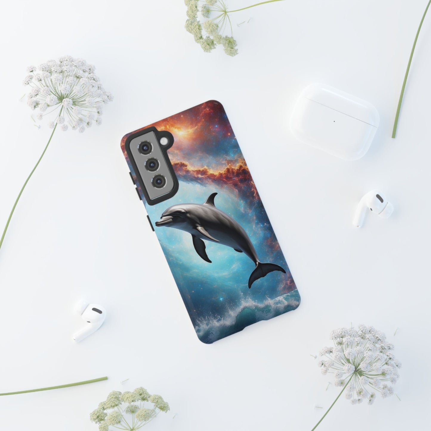 Take your Samsung Galaxy to new heights with the Cosmic Dolphin Space Vibes Case! Featuring a breathtaking design of a dolphin soaring through a galaxy of brilliant purples, fiery oranges, and cosmic blues, this case combines artistic flair with ultimate device protection. Crafted for durability and style, it guards your phone against everyday drops and scratches while adding a unique, celestial touch to your device.