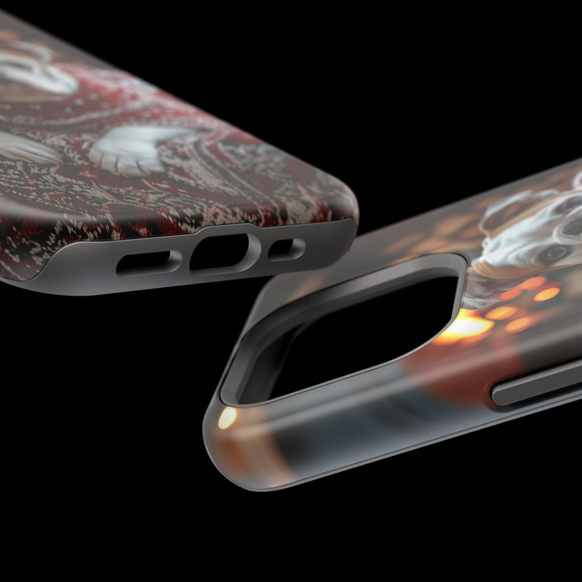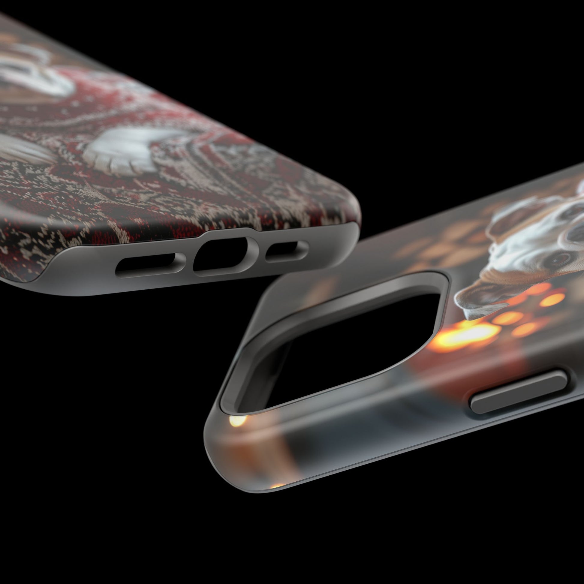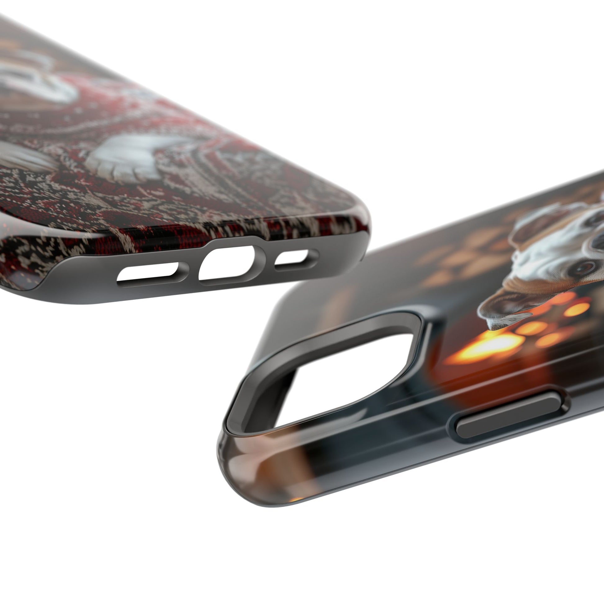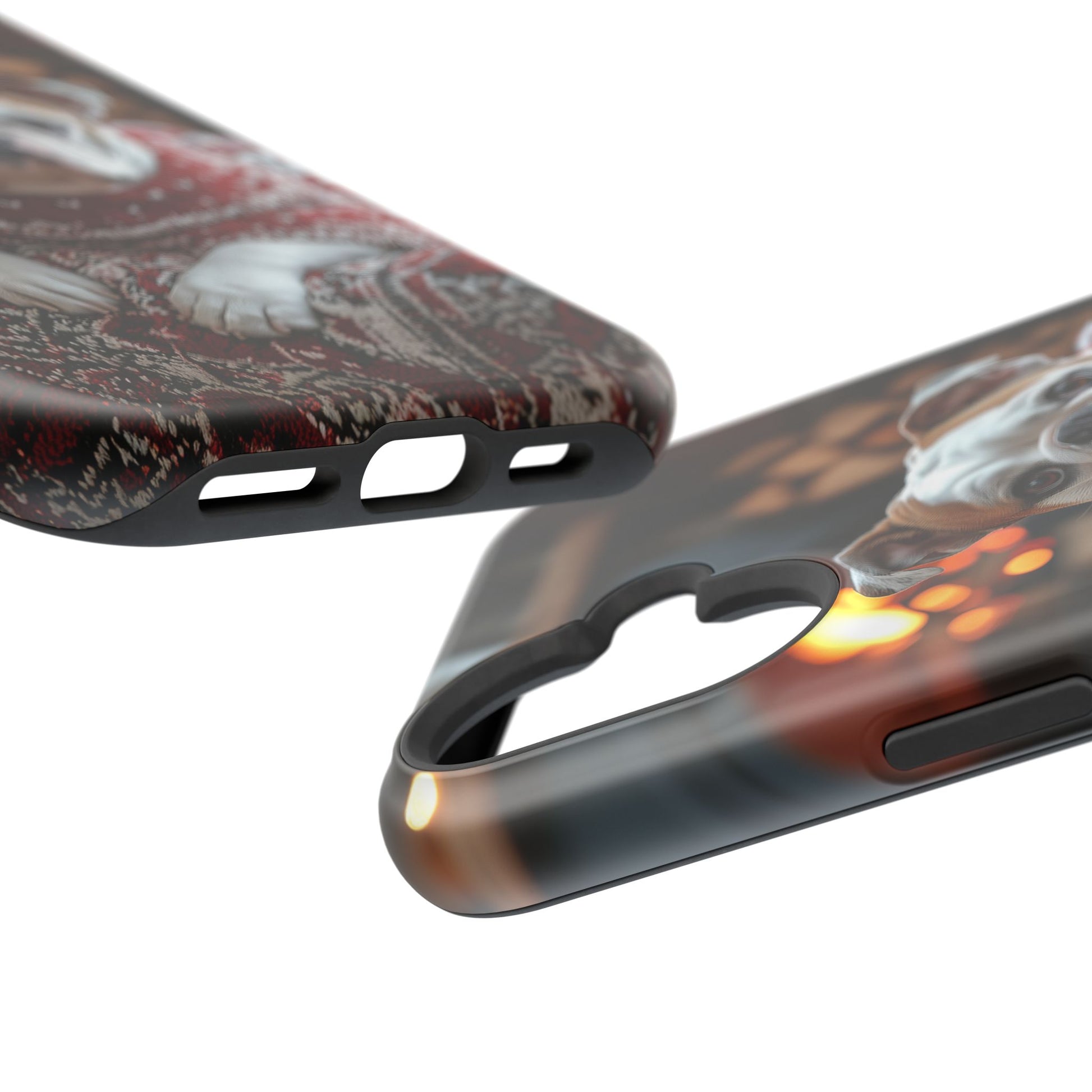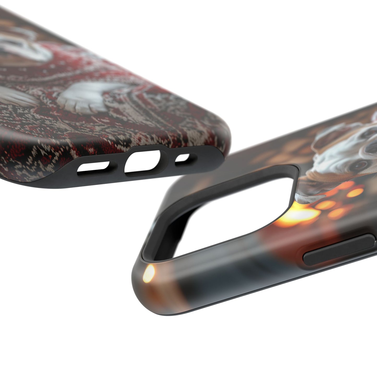 Cozy Bulldog in Sweater MagSafe iPhone Case – Festive Fireplace Protective Cover