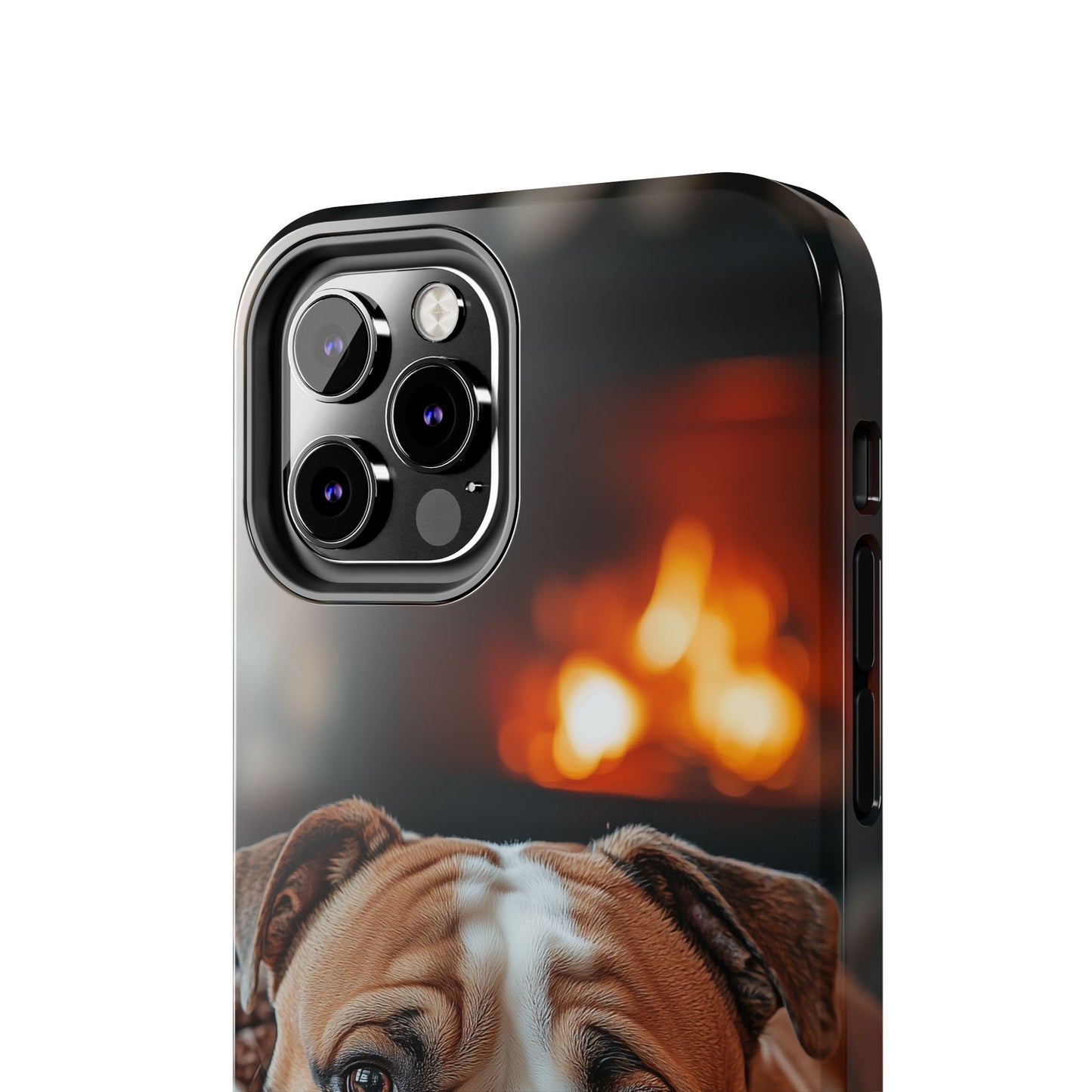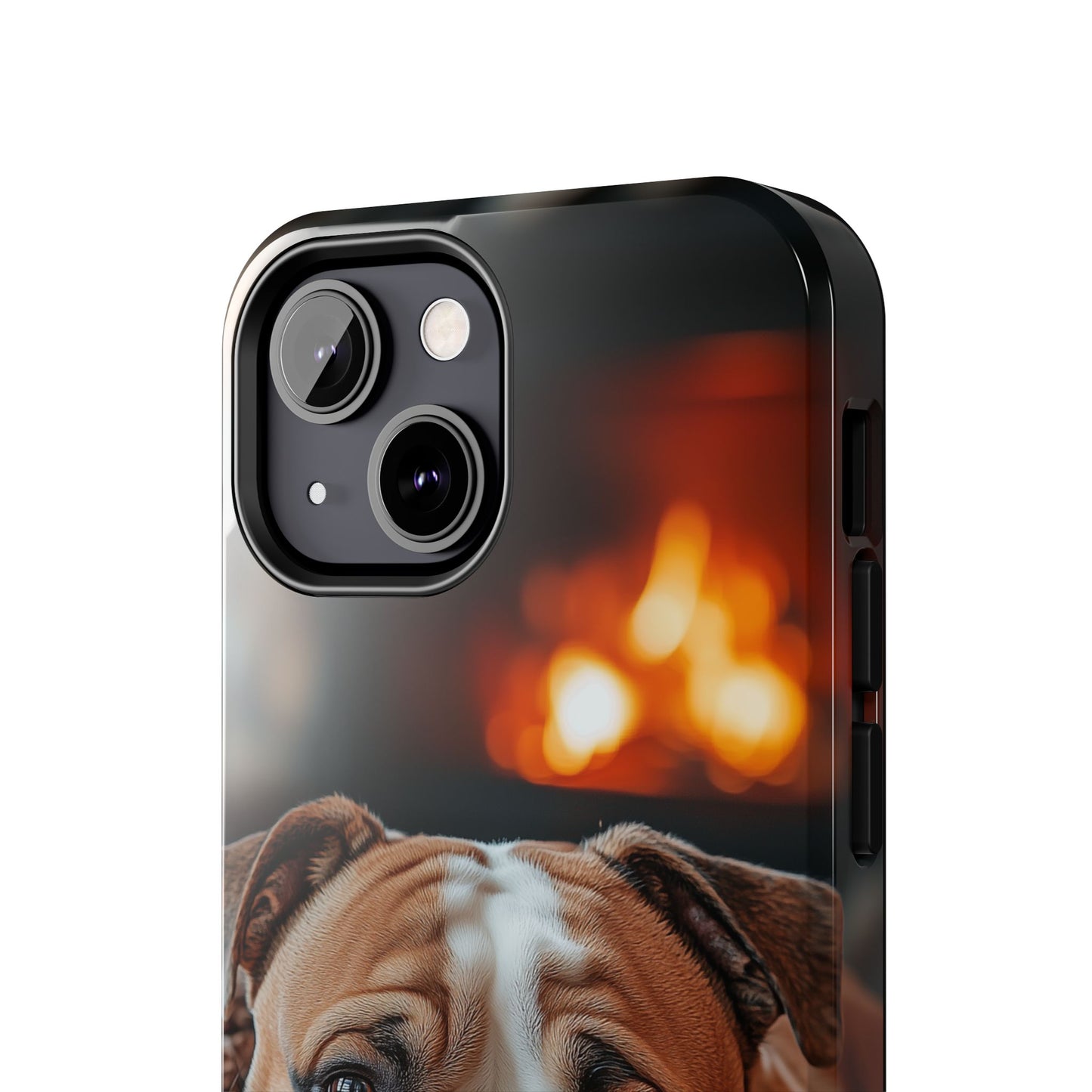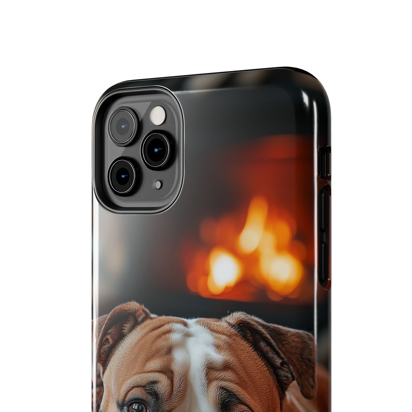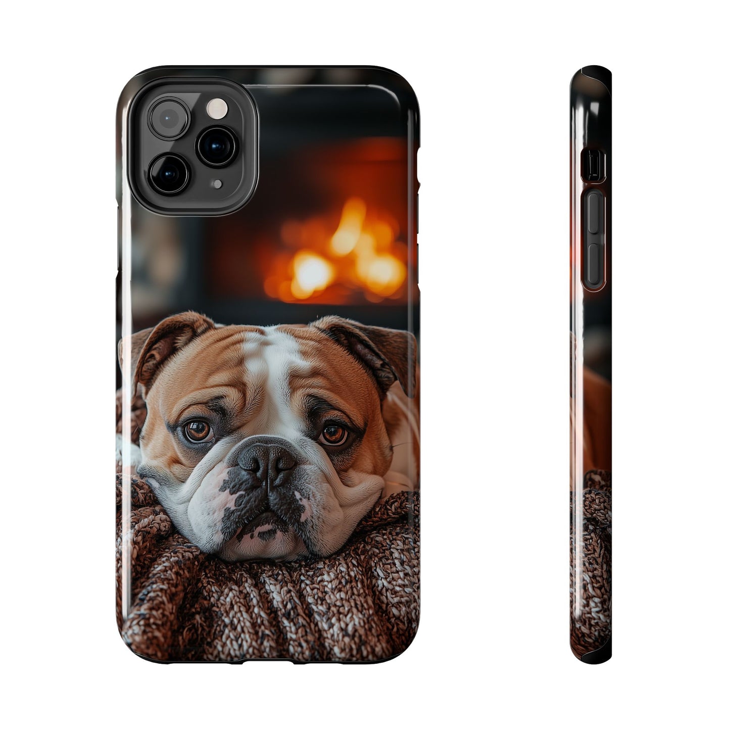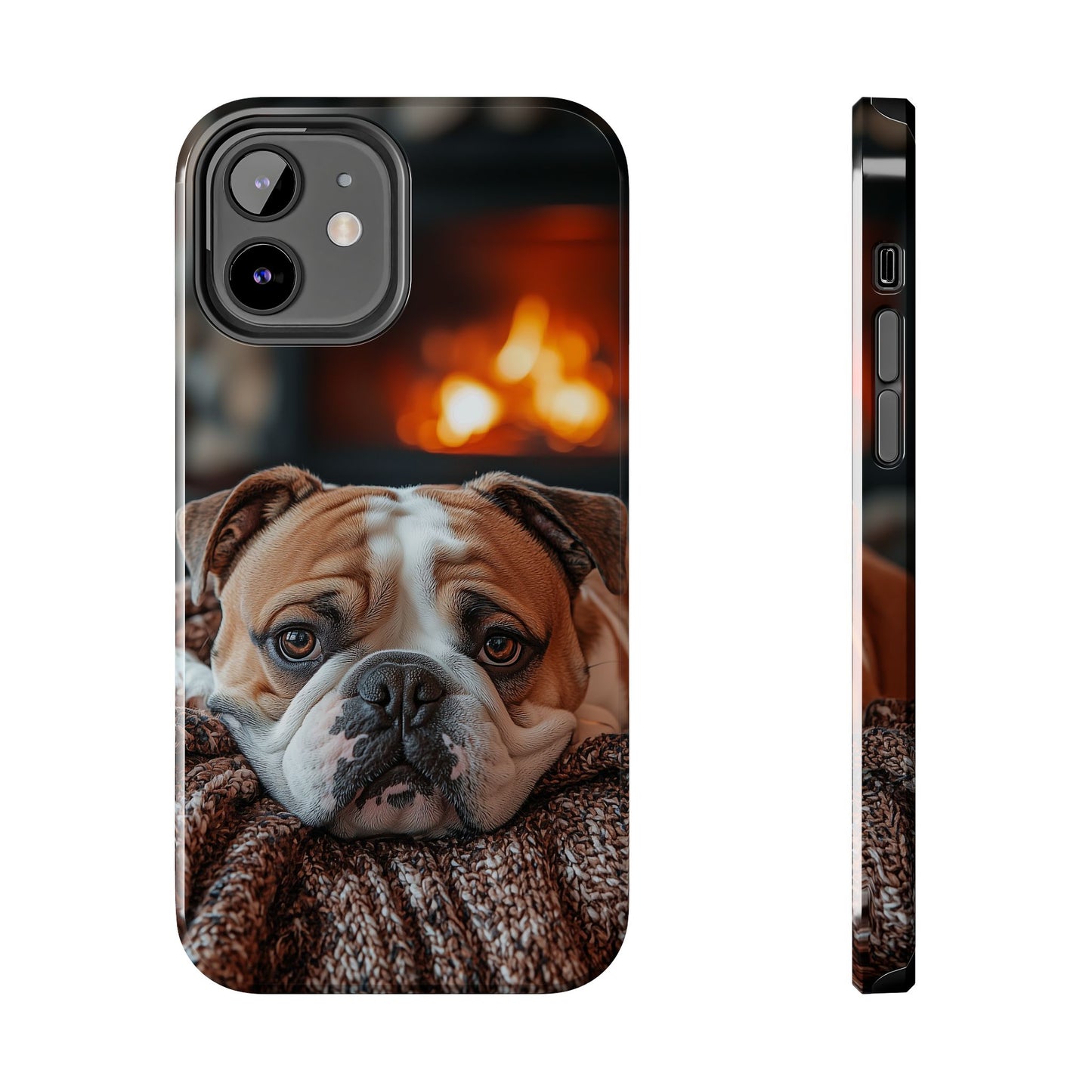 Cozy Bulldog iPhone Case – Fireside-Inspired Protective Cover Description: