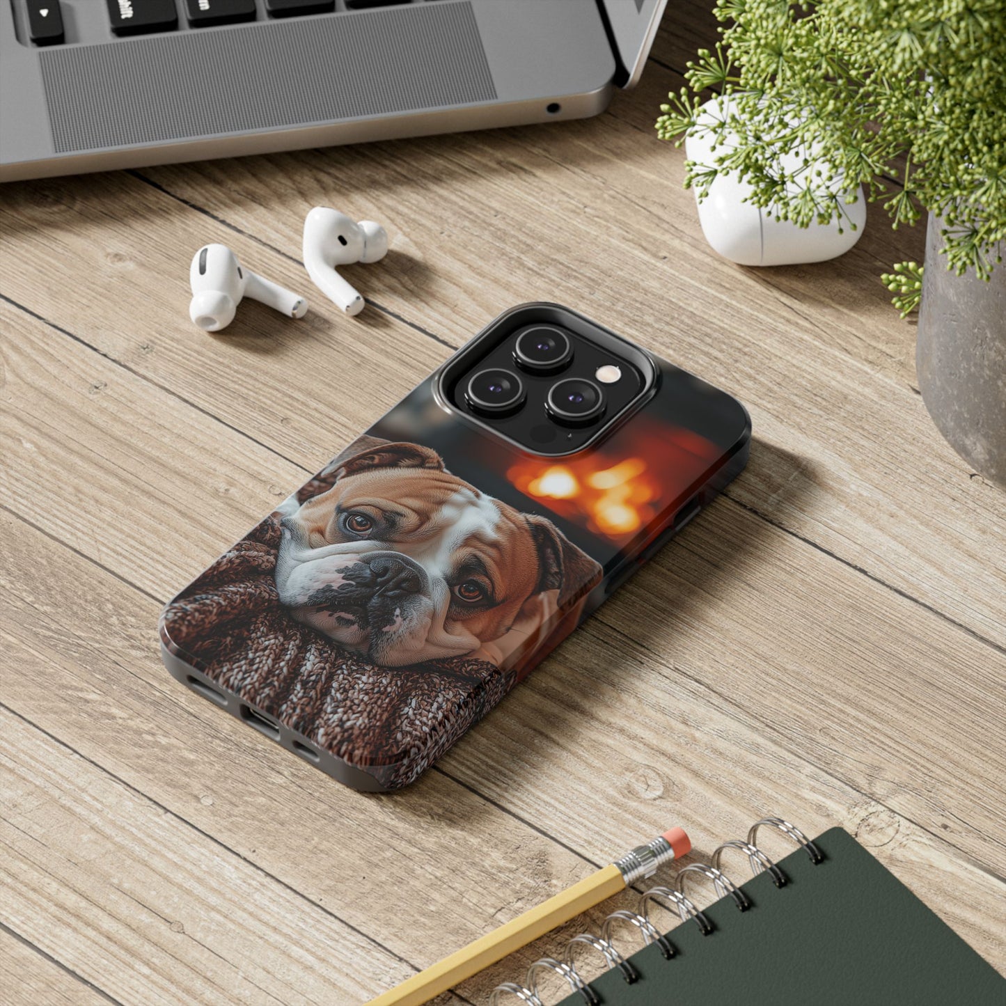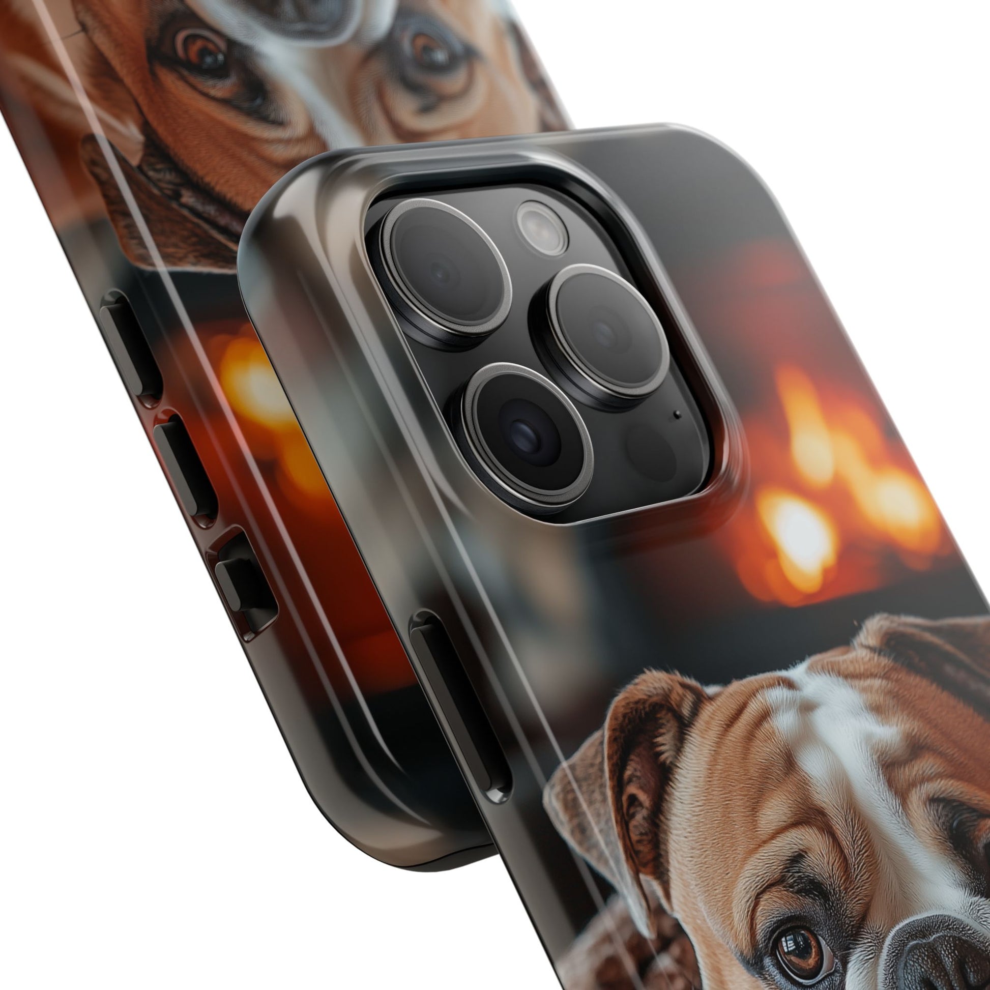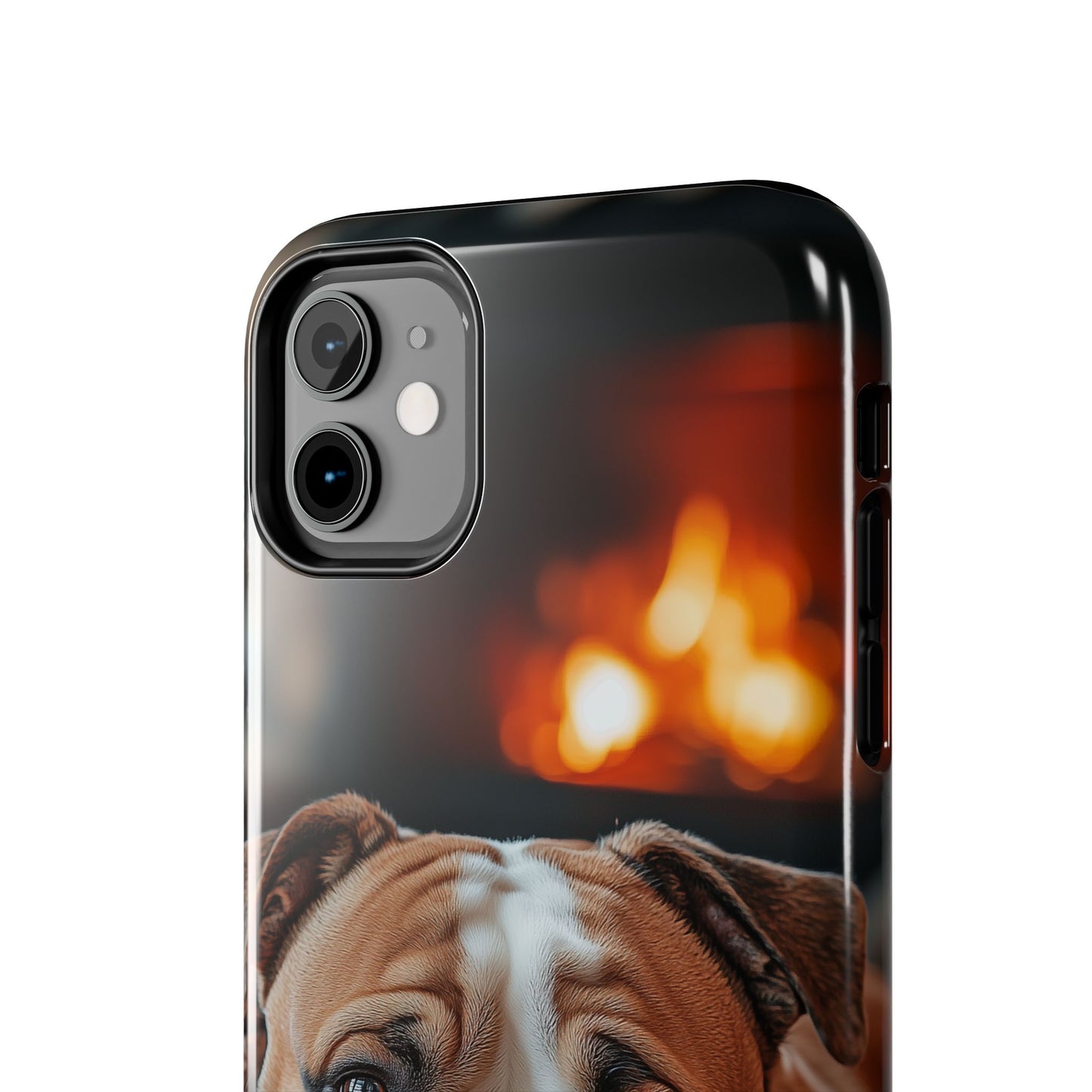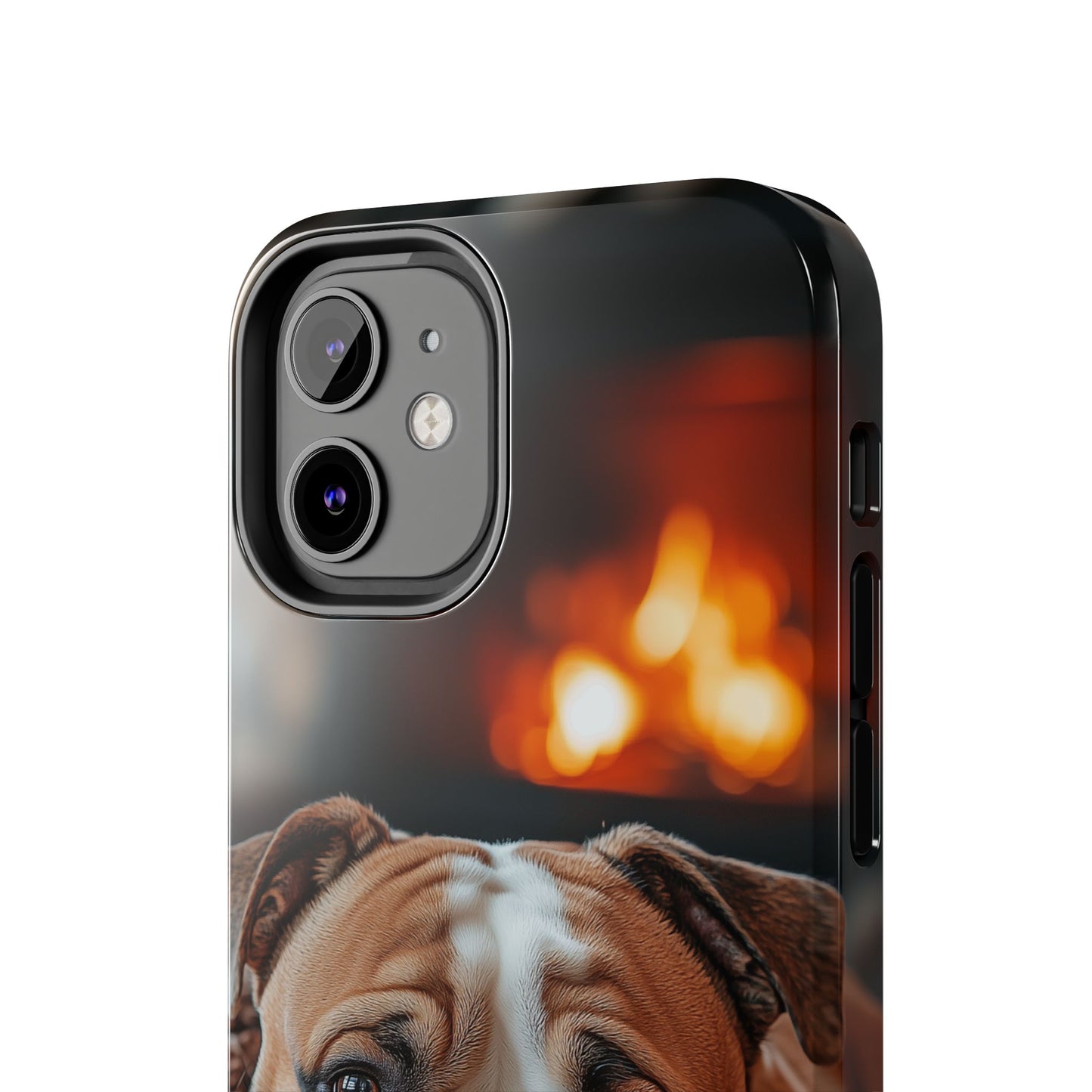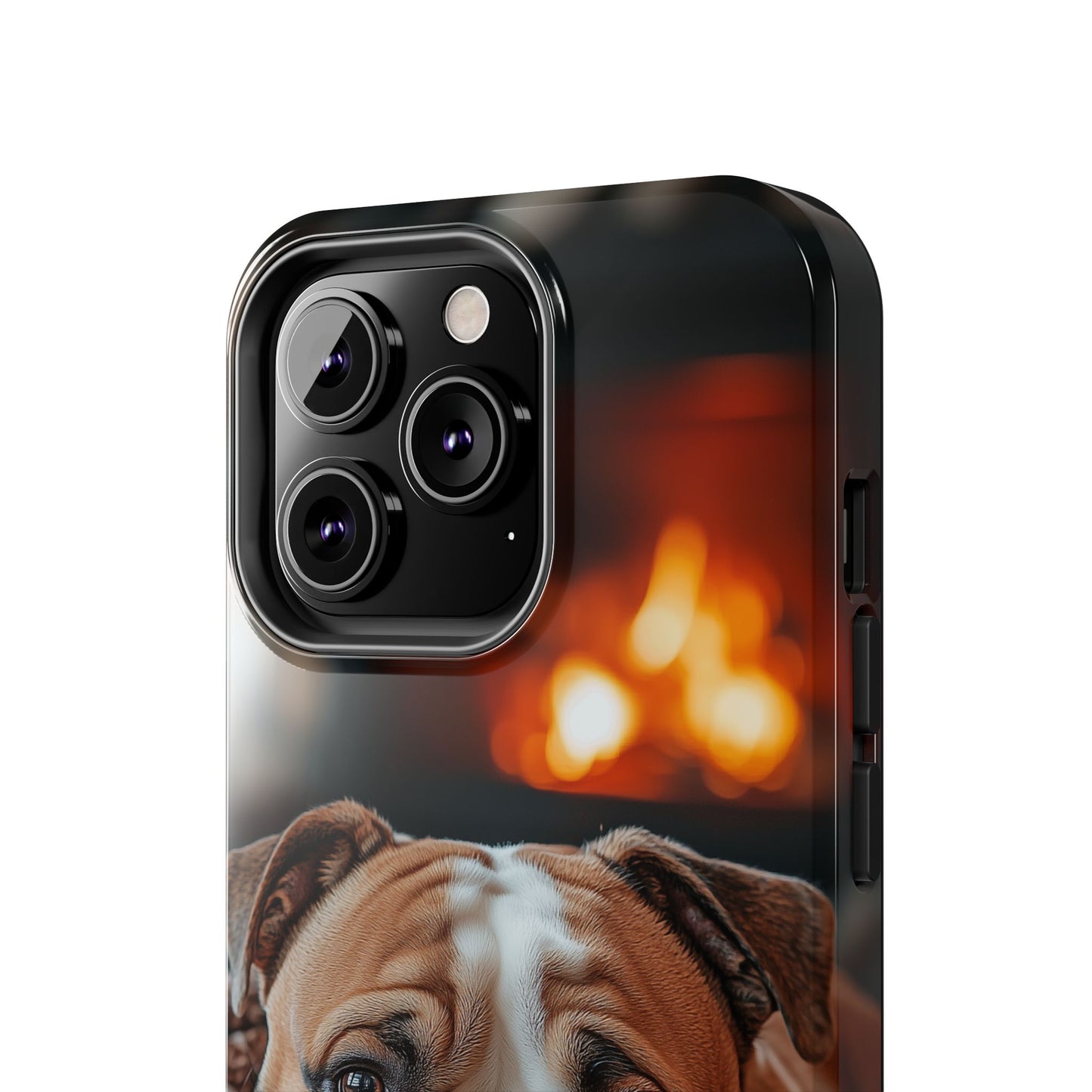 Cozy Bulldog iPhone Case – Fireside-Inspired Protective Cover Description: