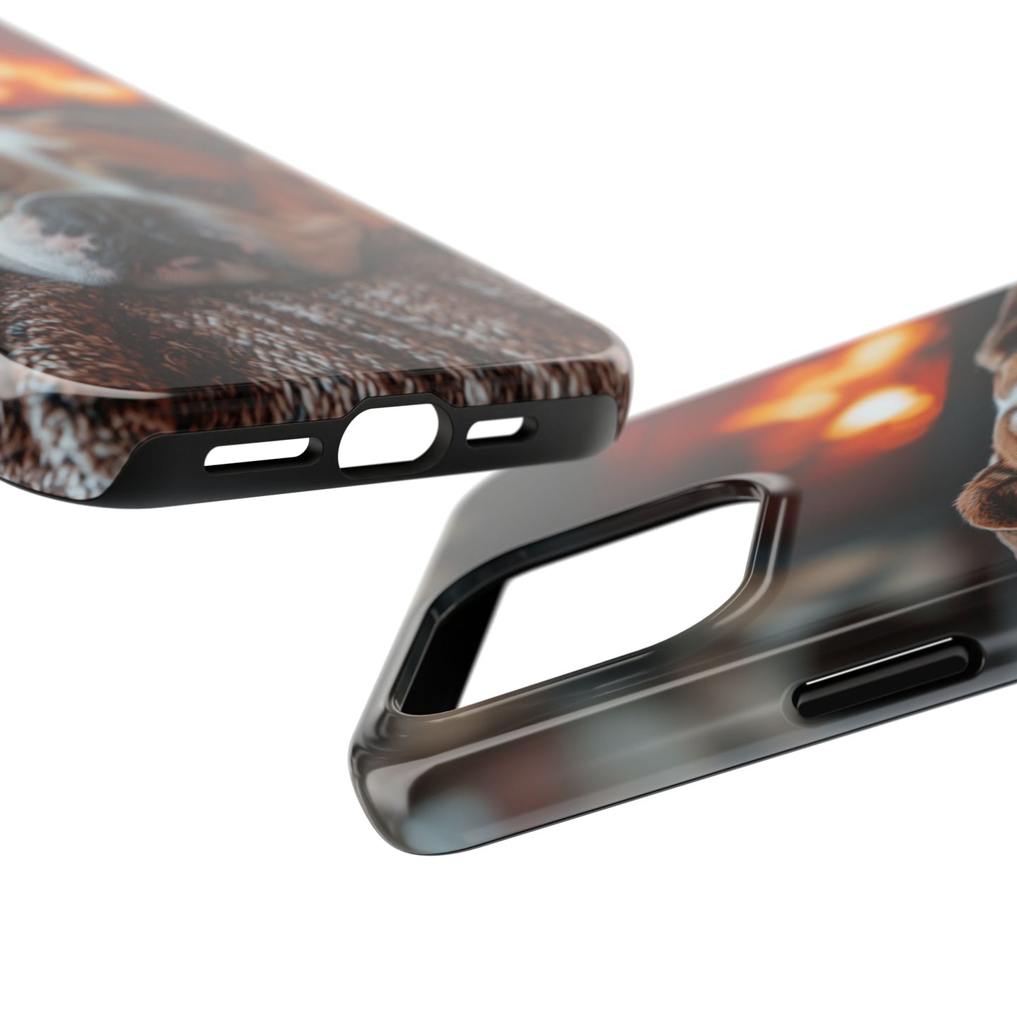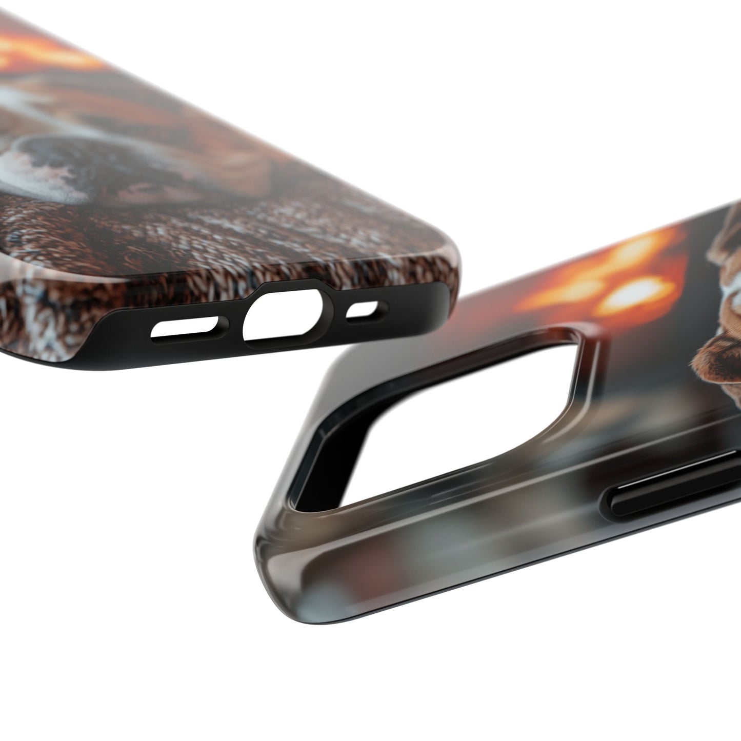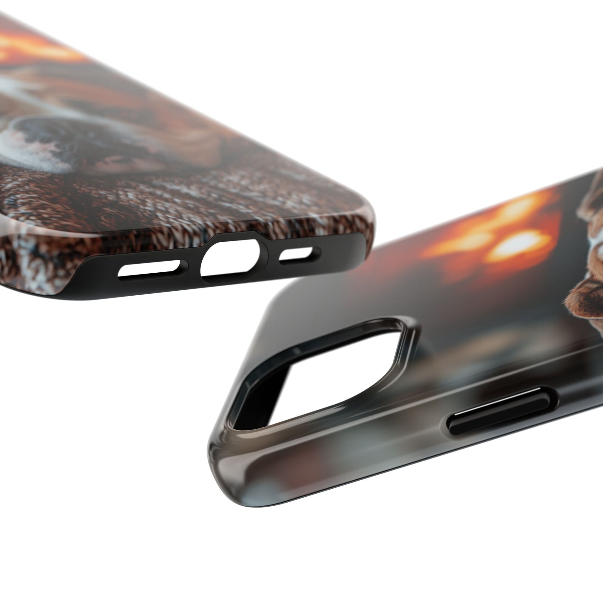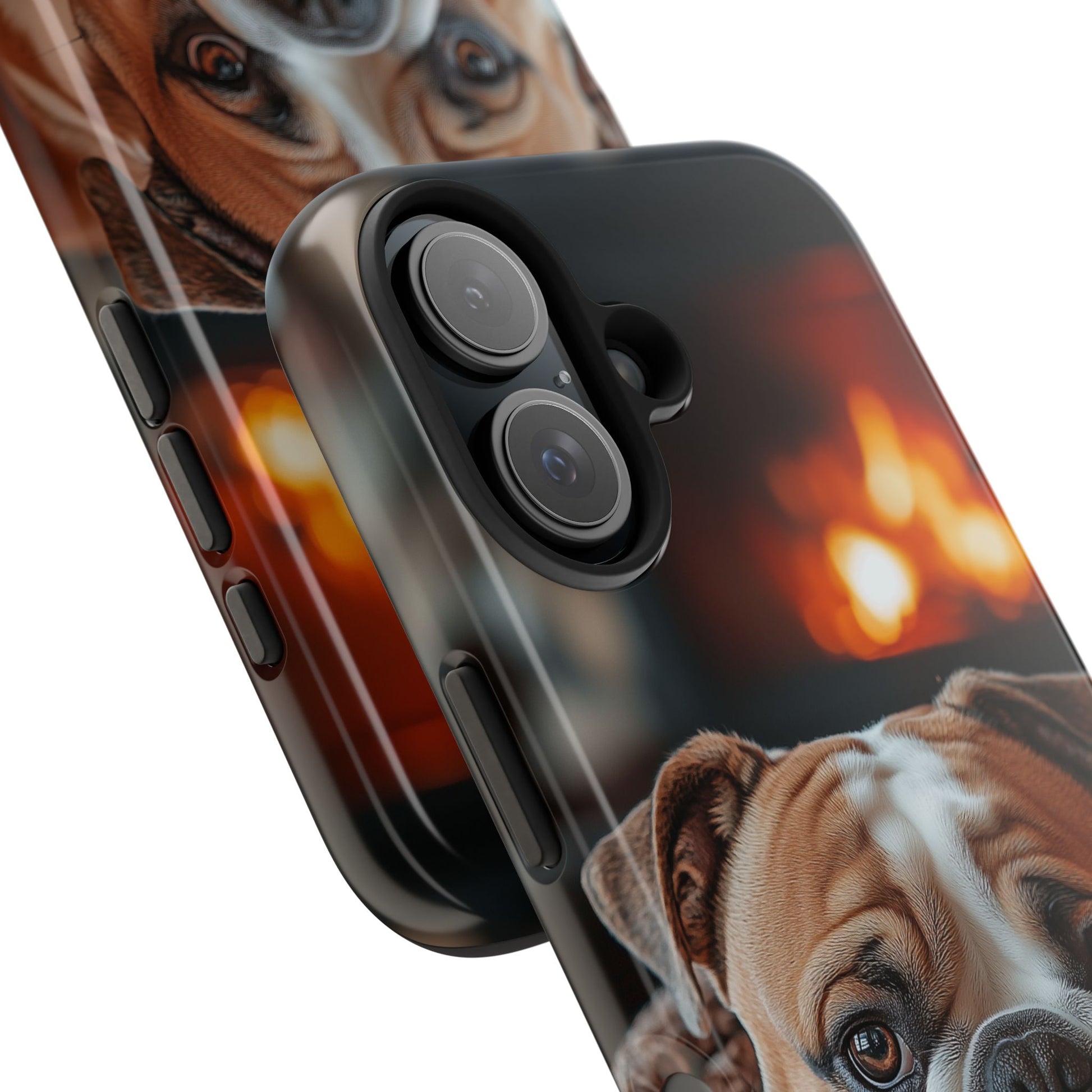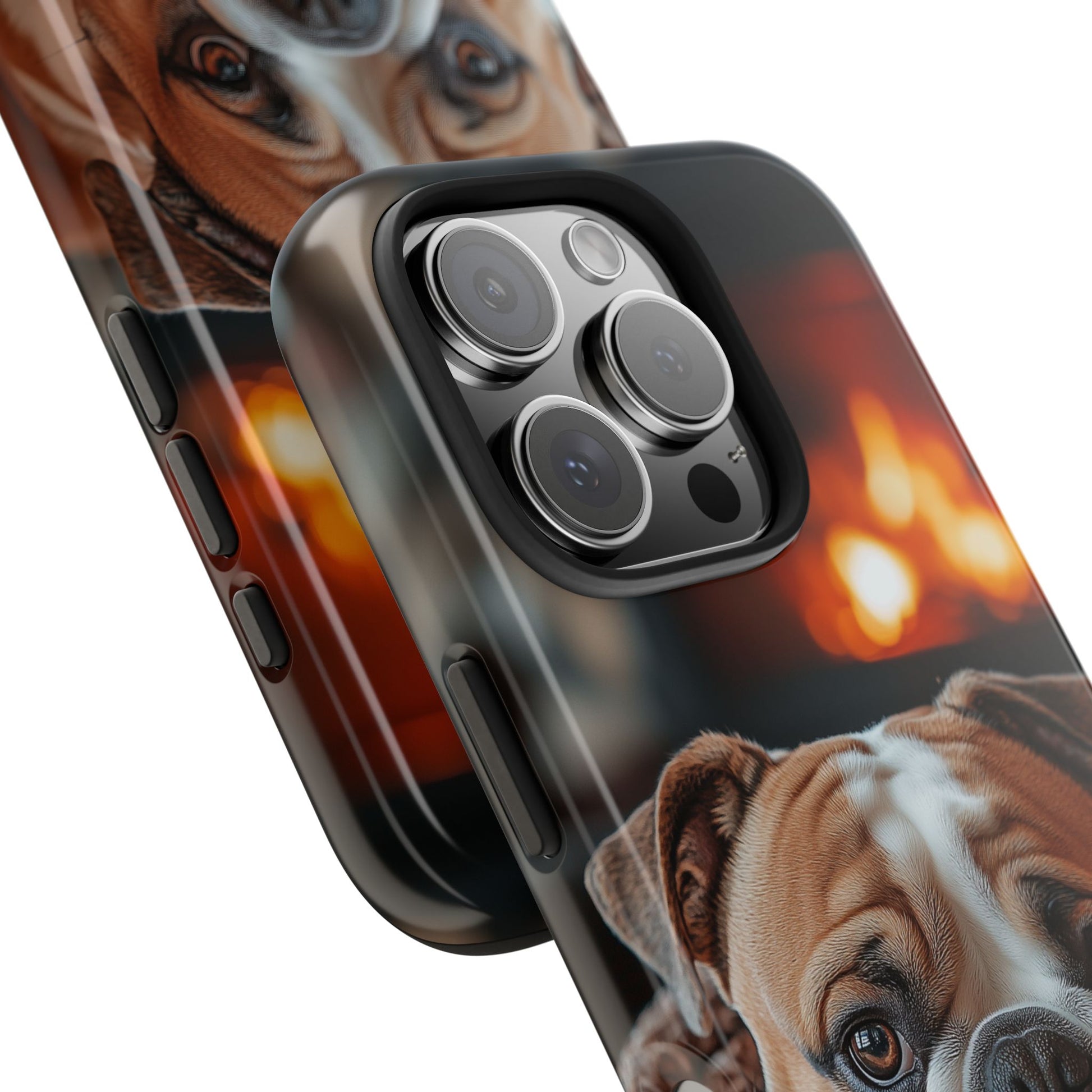 Cozy Bulldog iPhone Case – Fireside-Inspired Protective Cover Description: