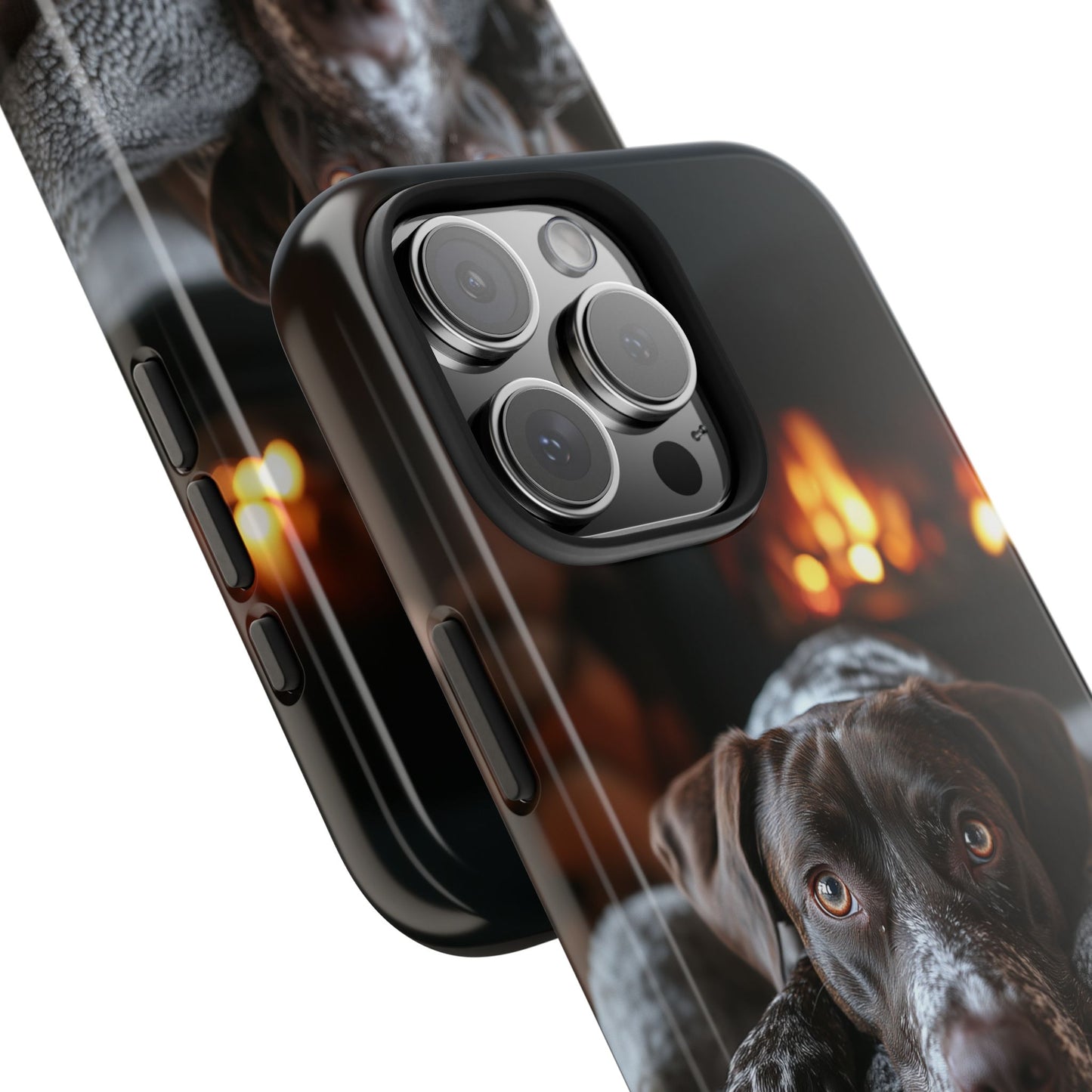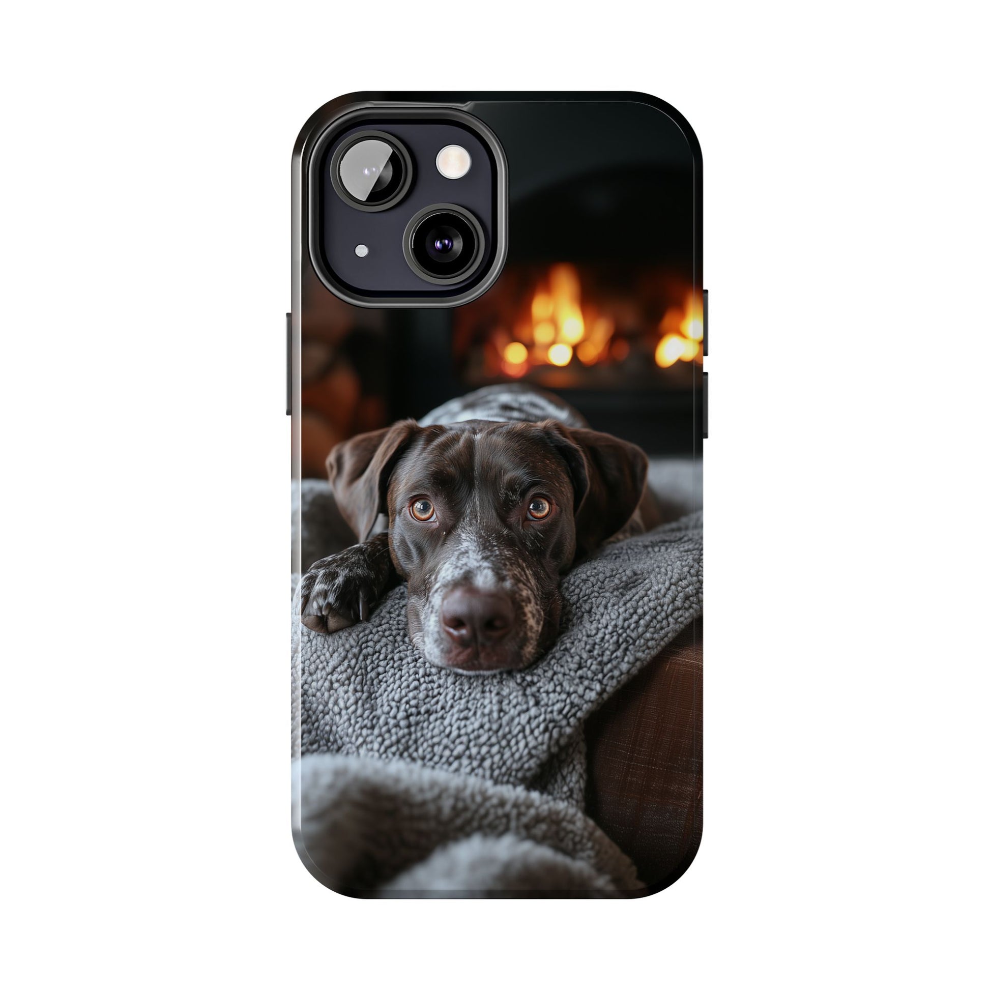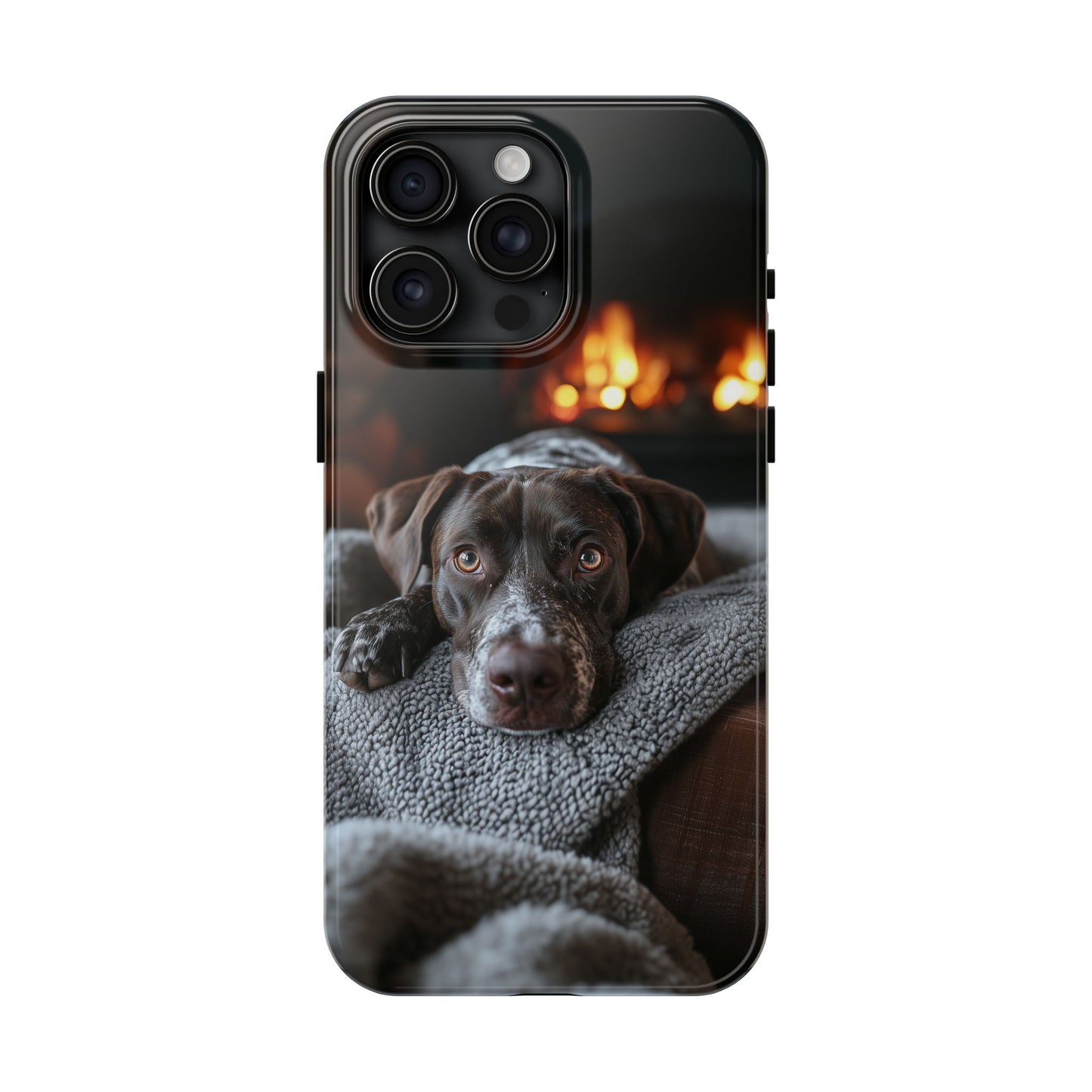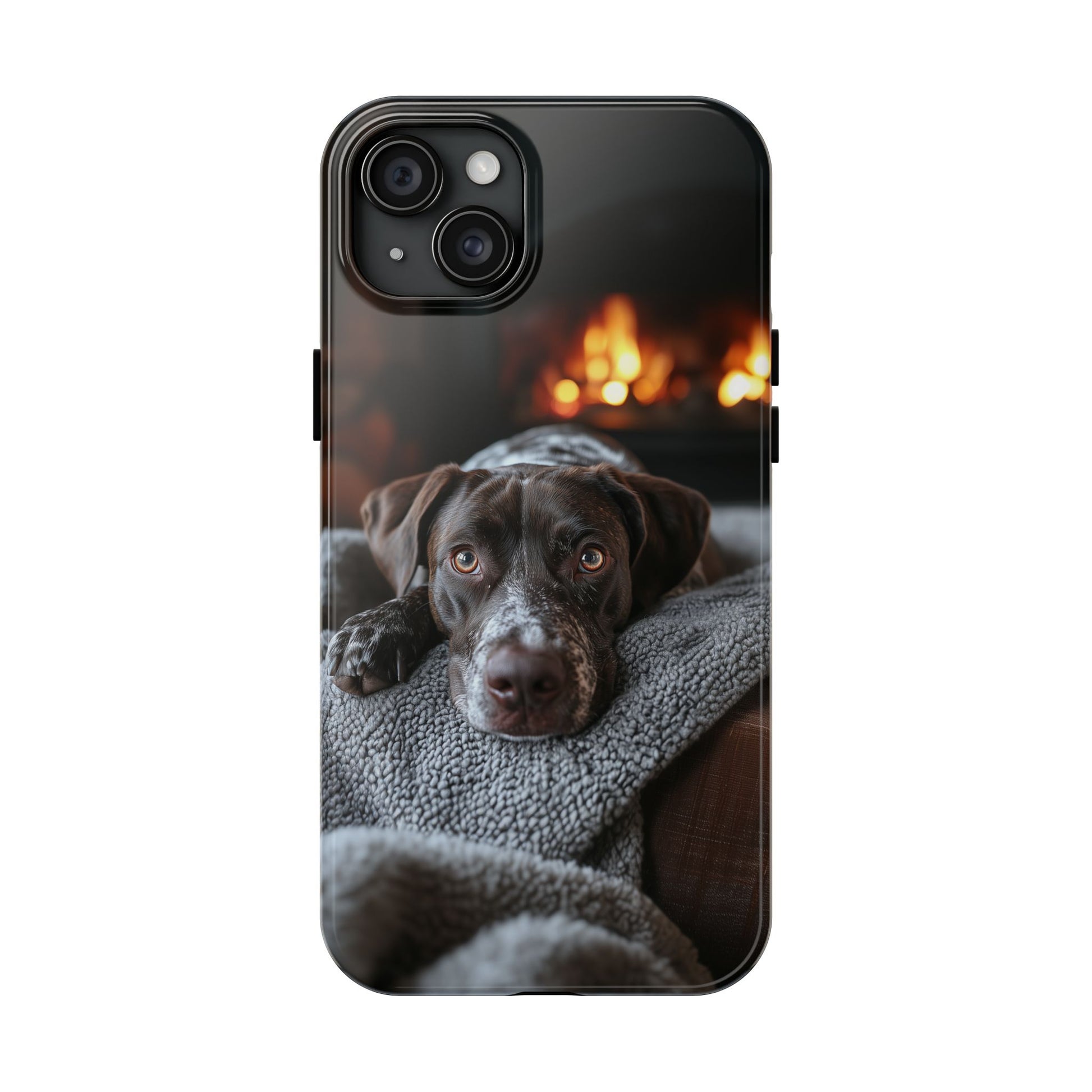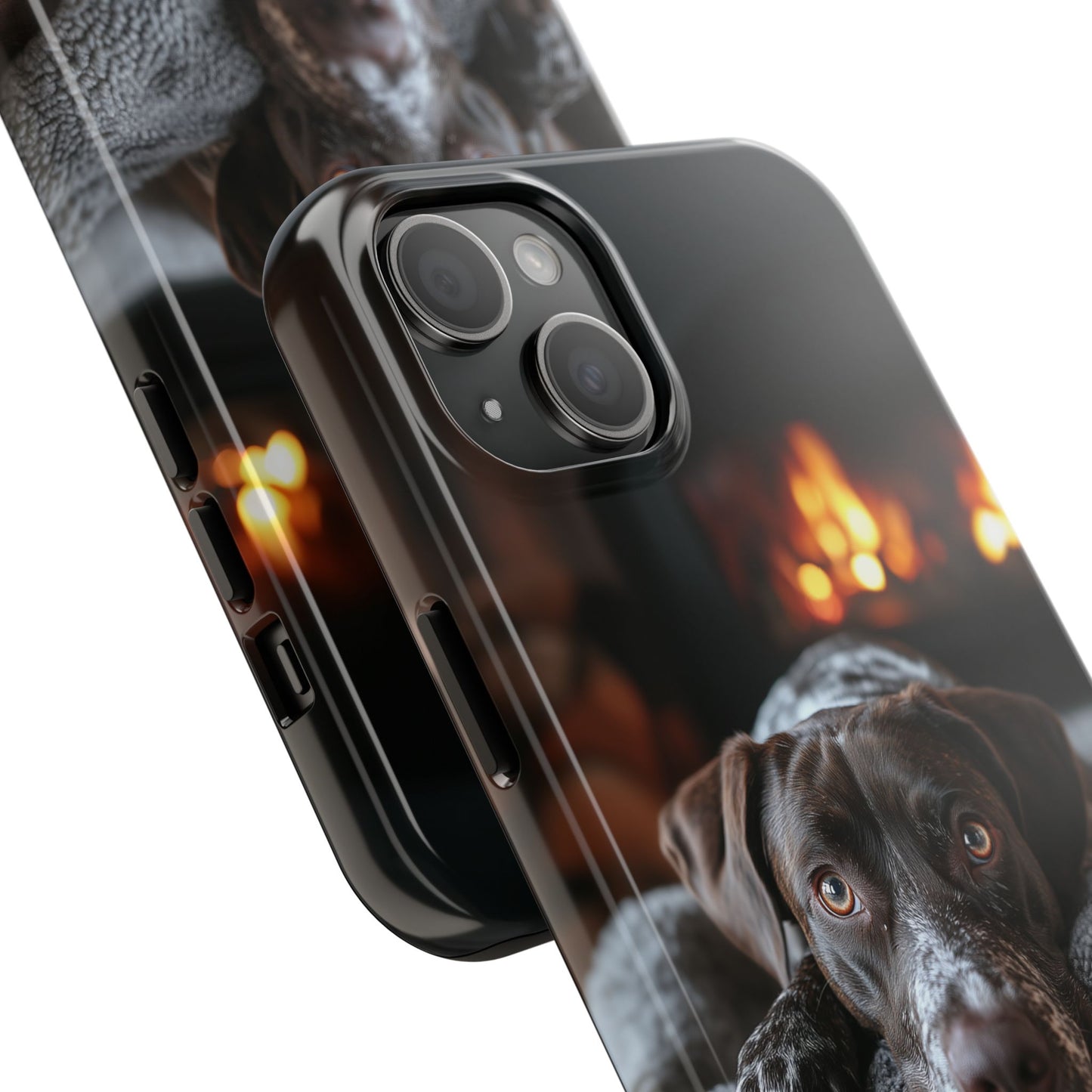 Cozy German Shorthaired Pointer iPhone Case – Rustic Fireplace Protective Cover