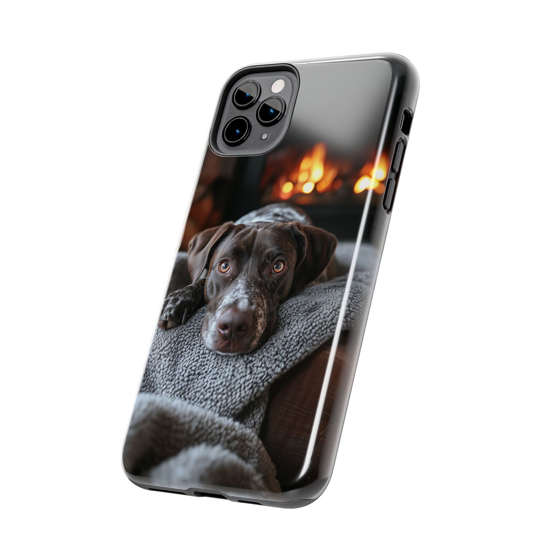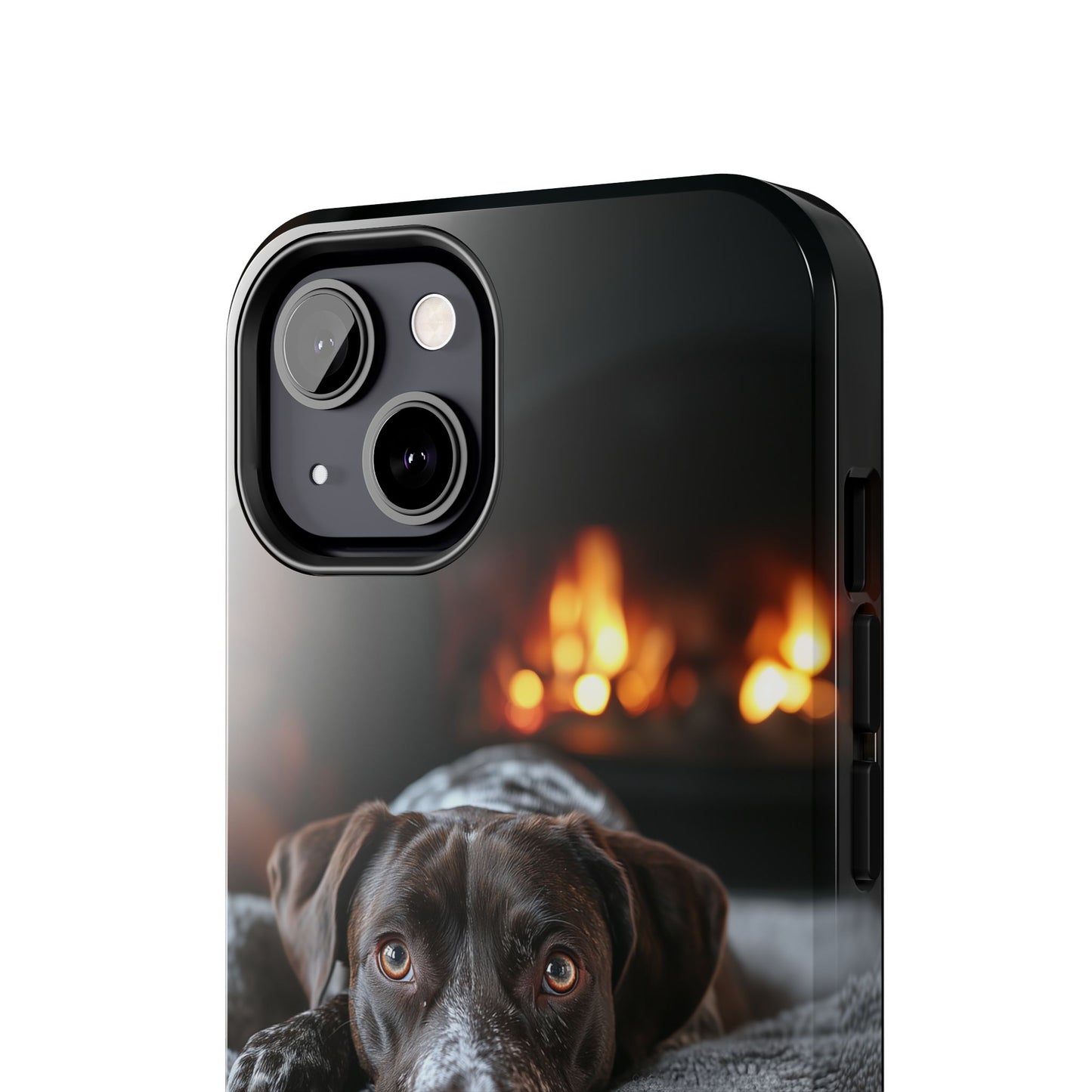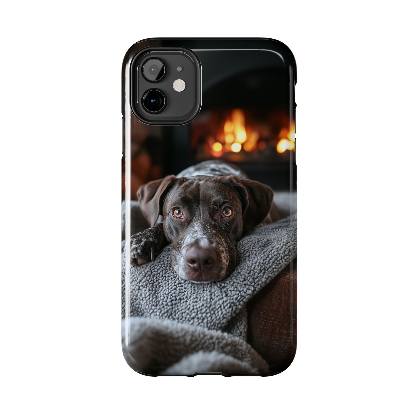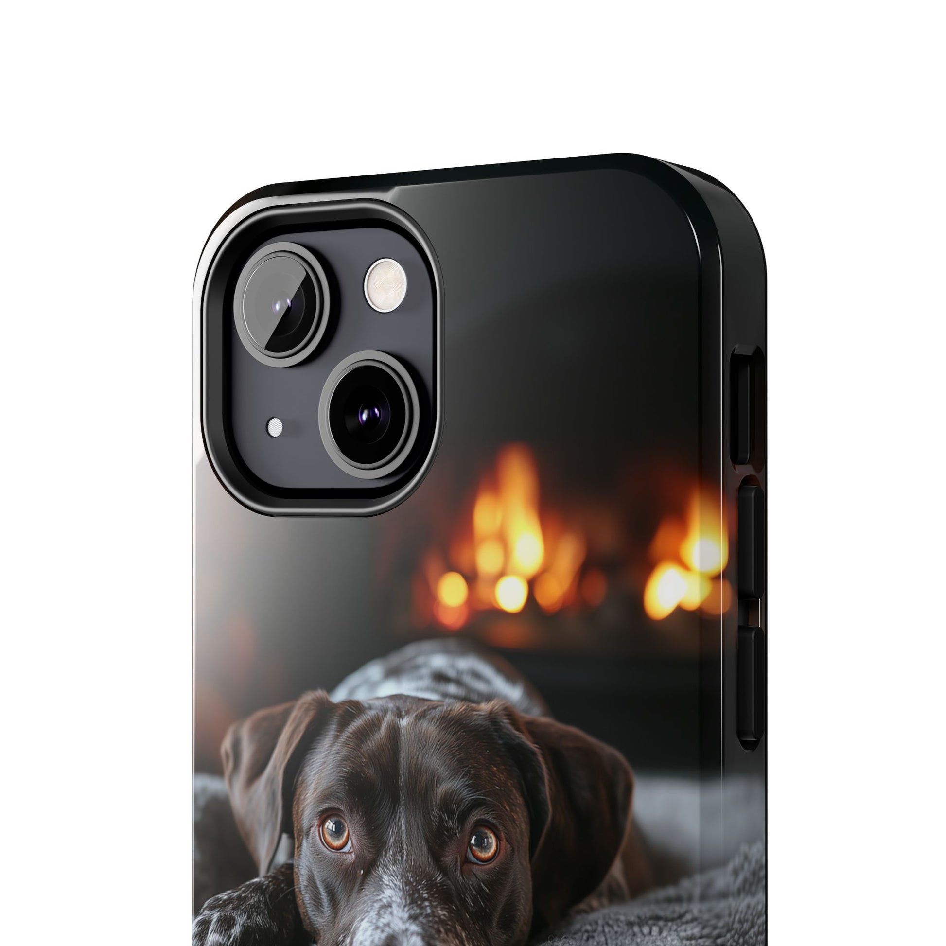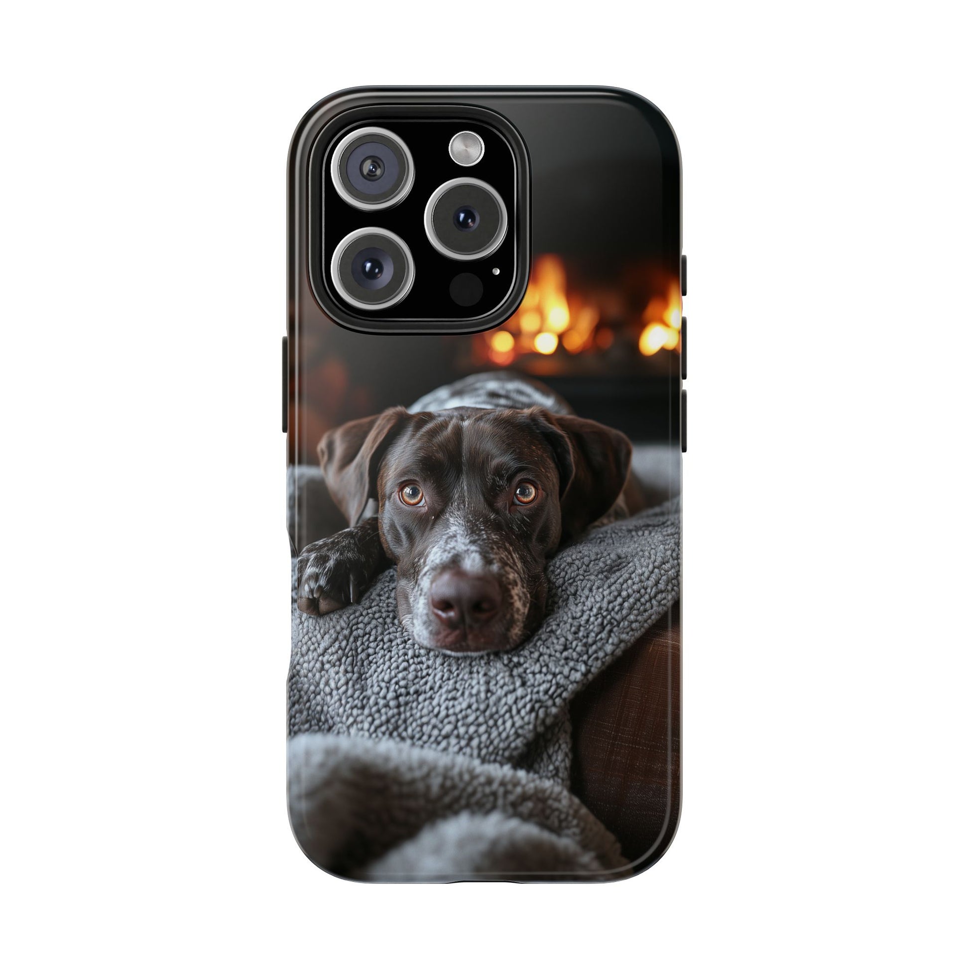 Cozy German Shorthaired Pointer iPhone Case – Rustic Fireplace Protective Cover