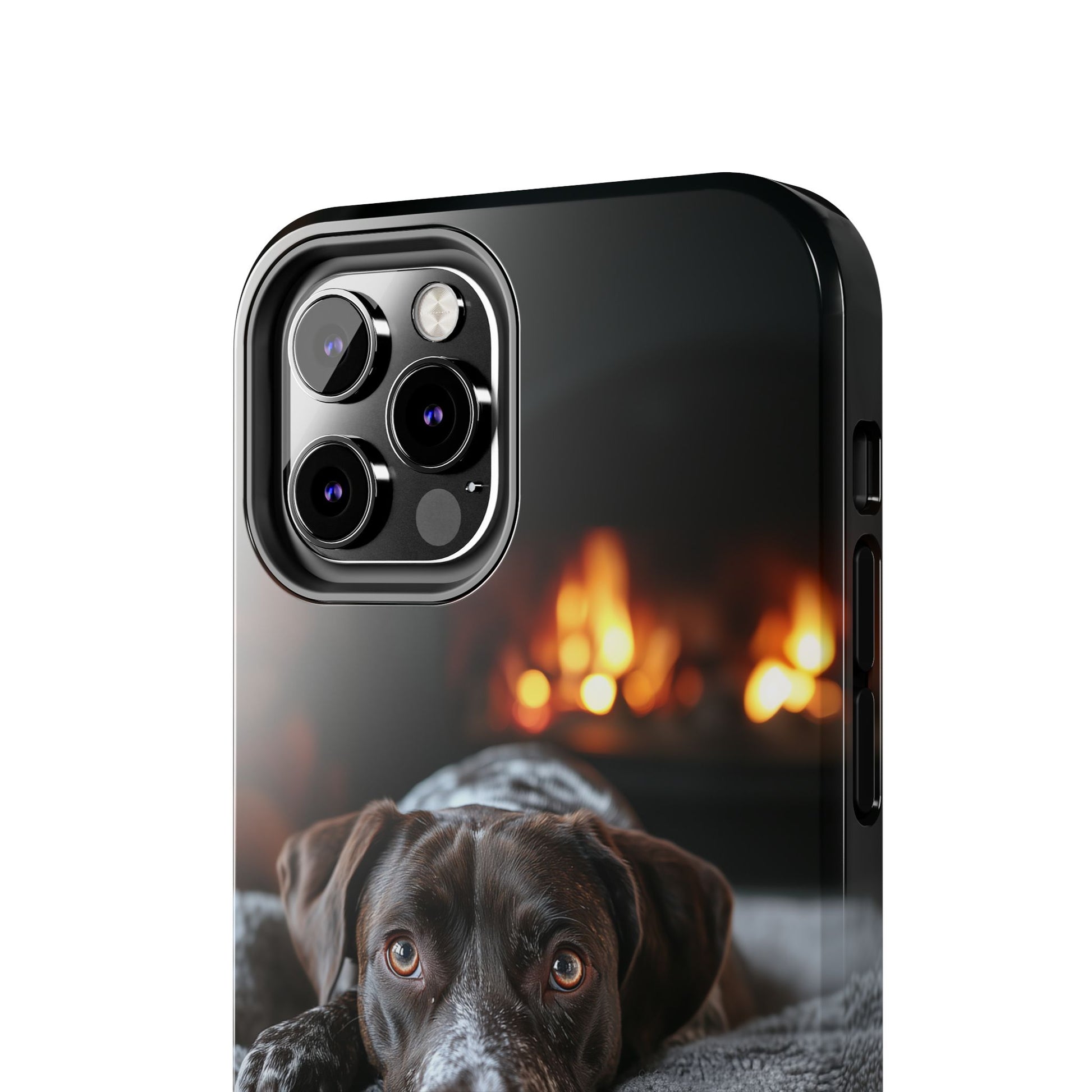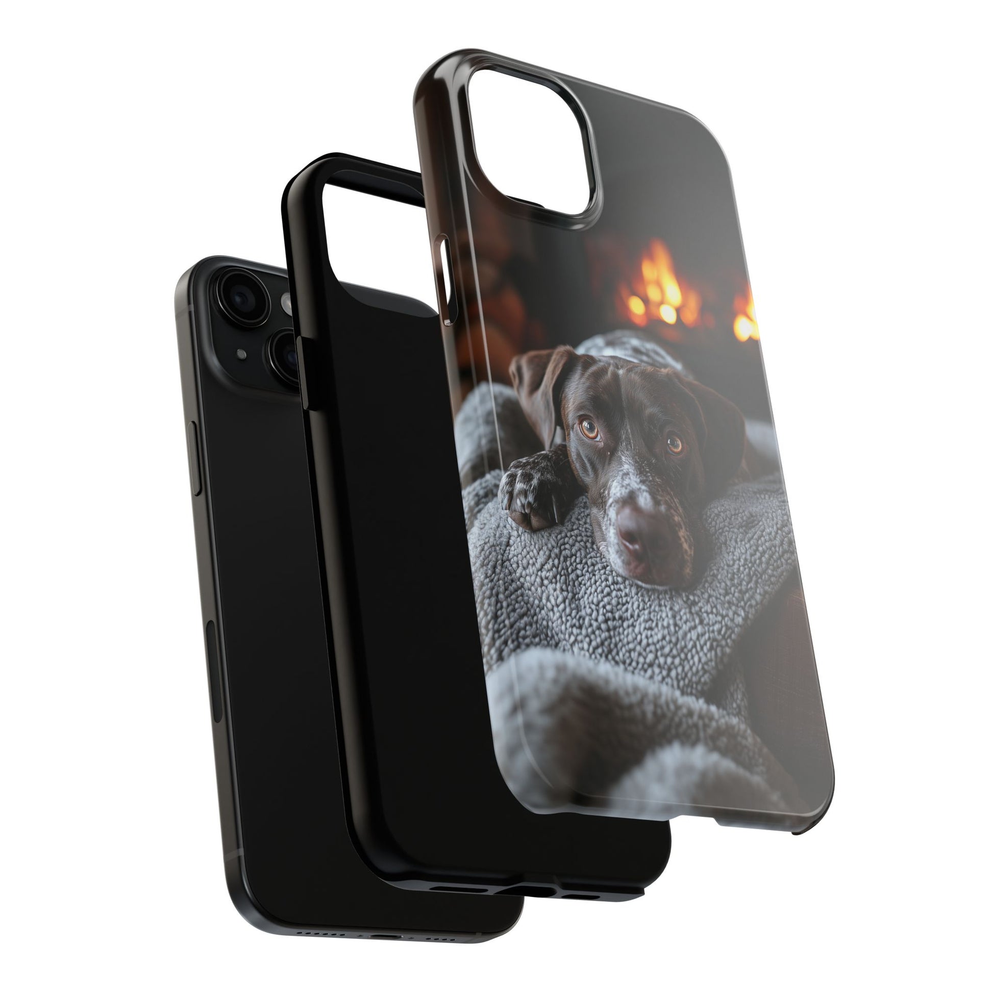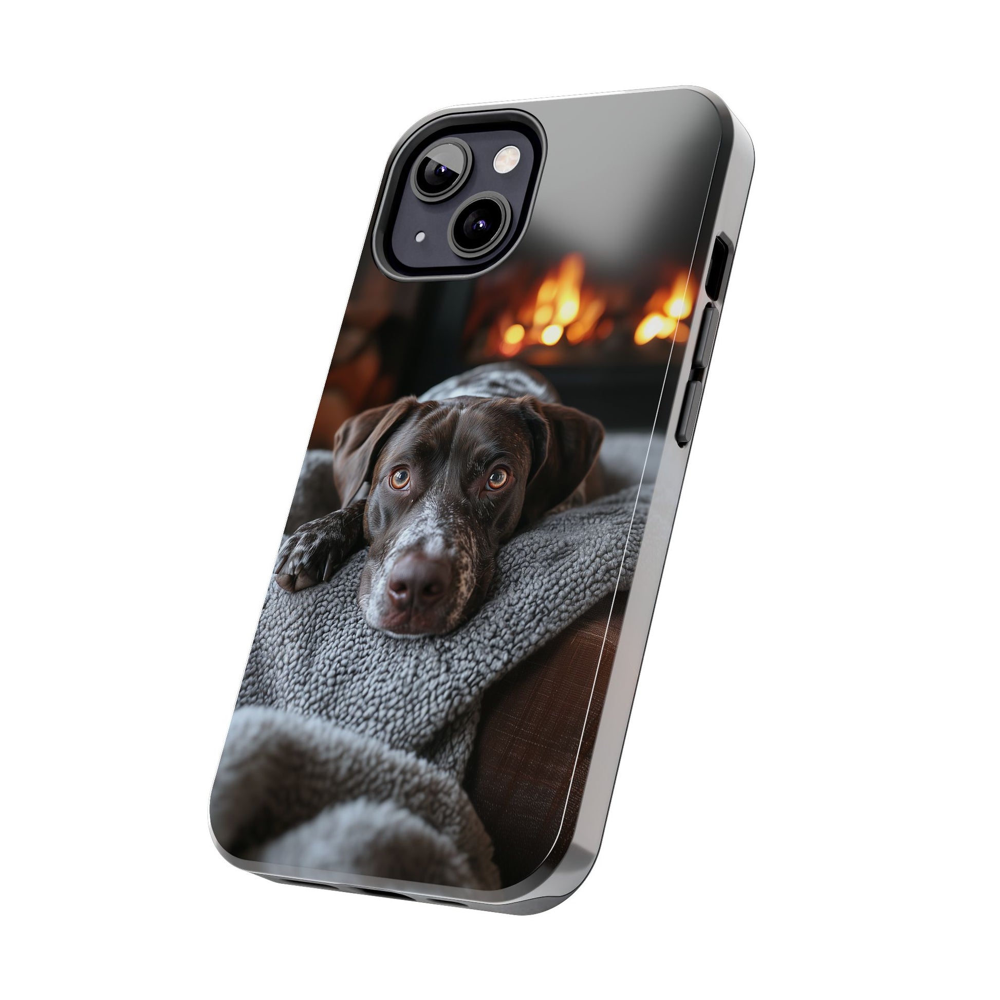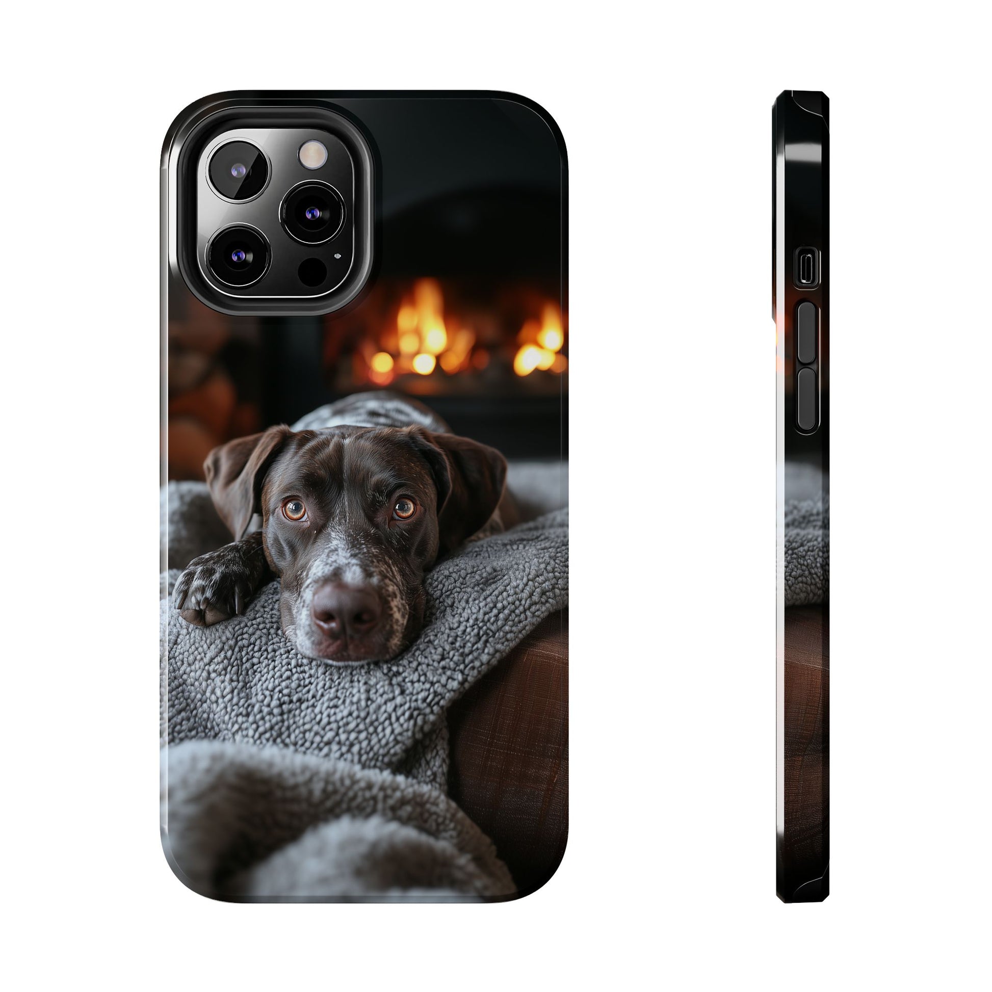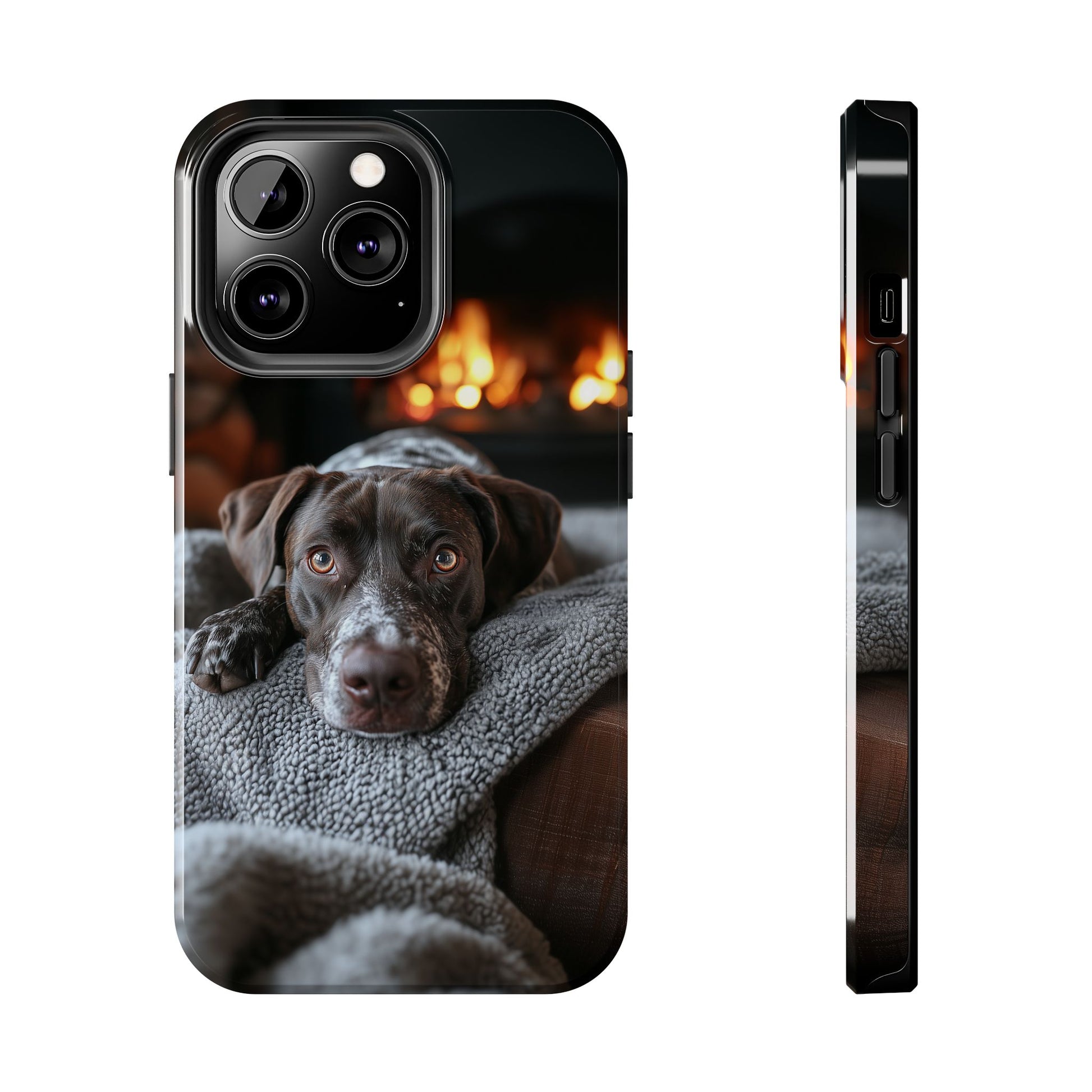 Cozy German Shorthaired Pointer iPhone Case – Rustic Fireplace Protective Cover