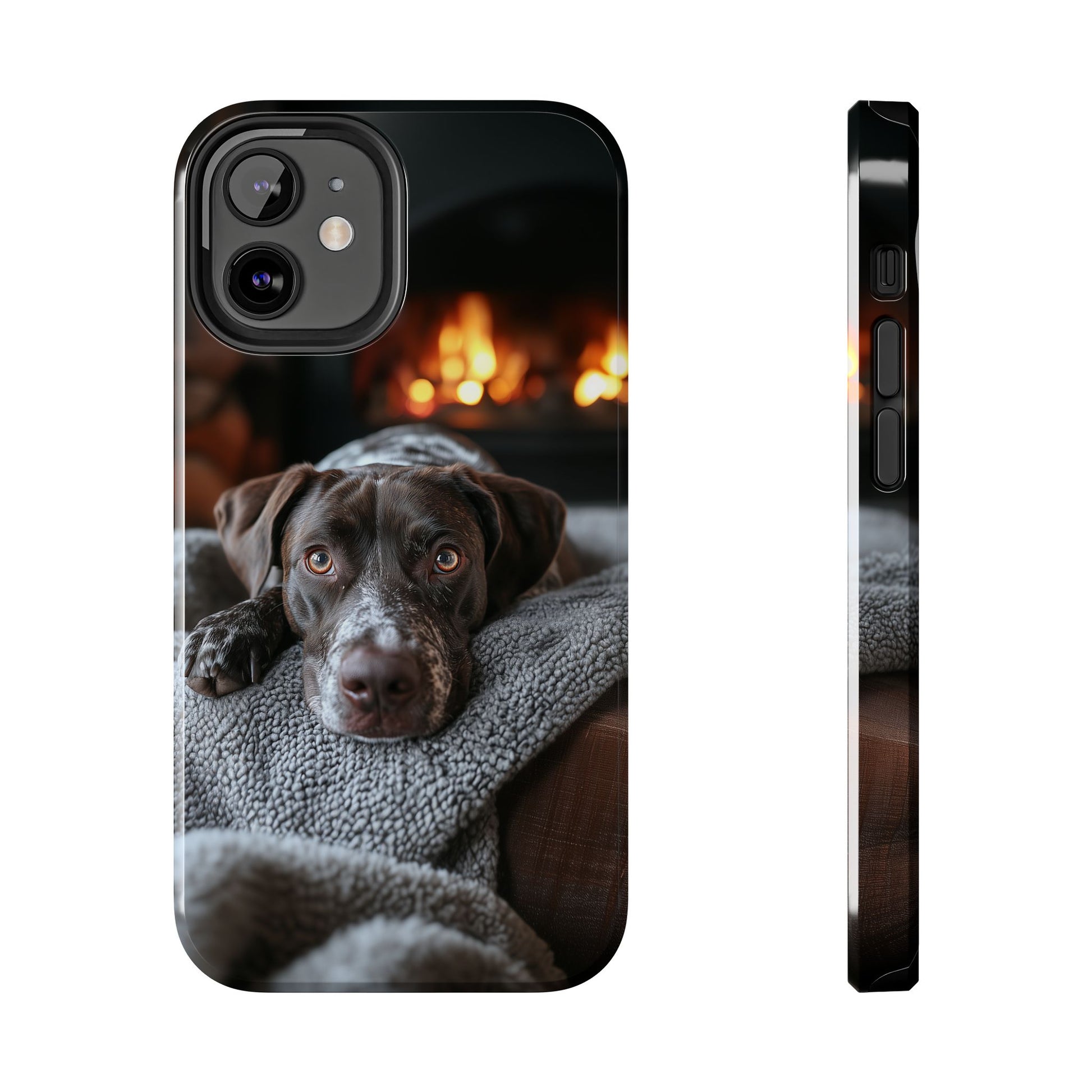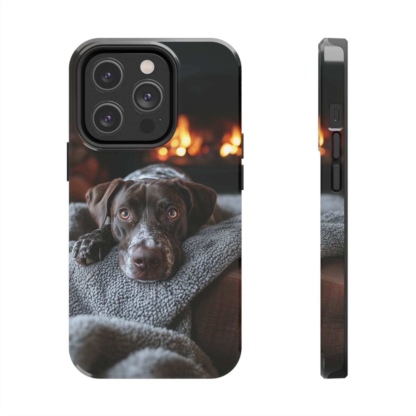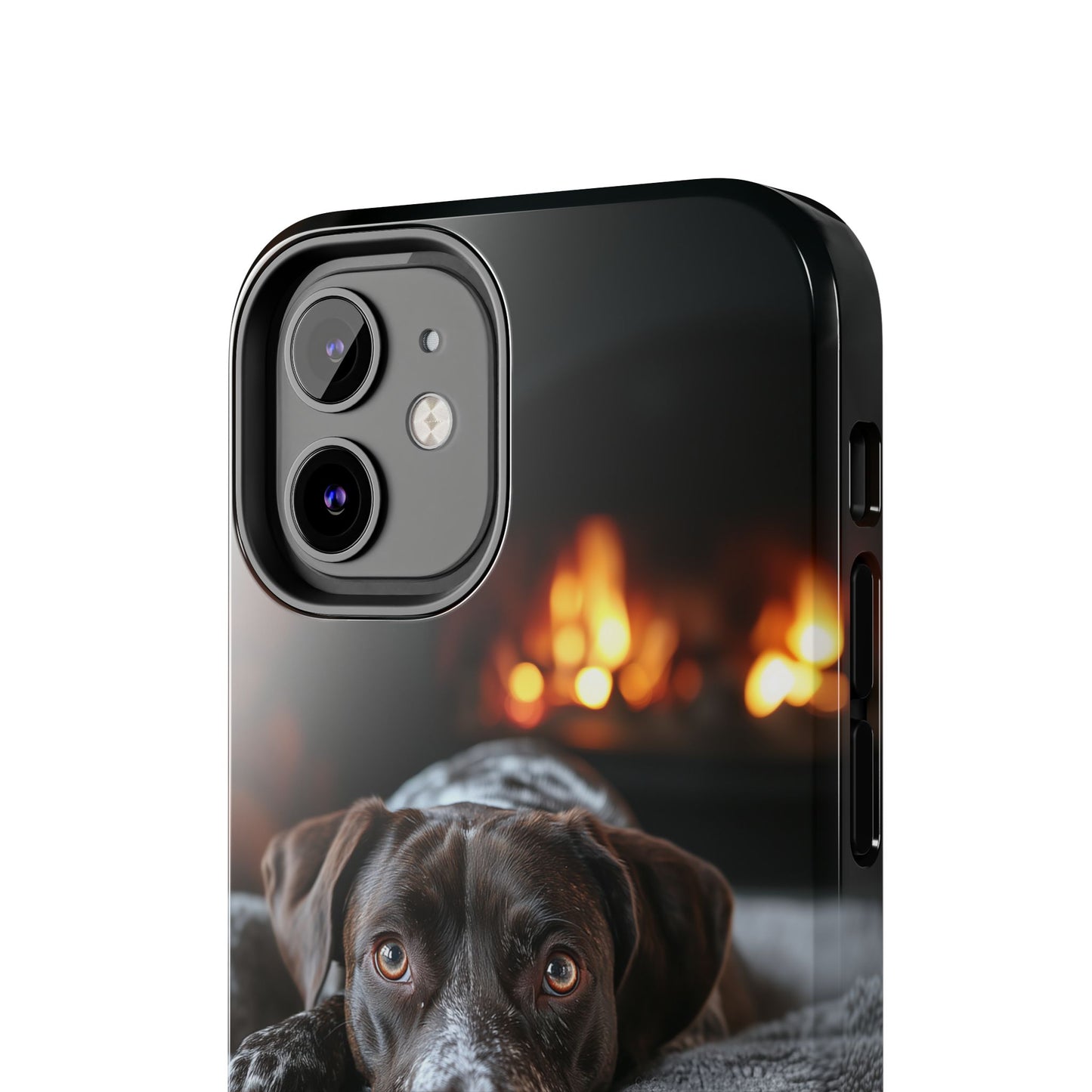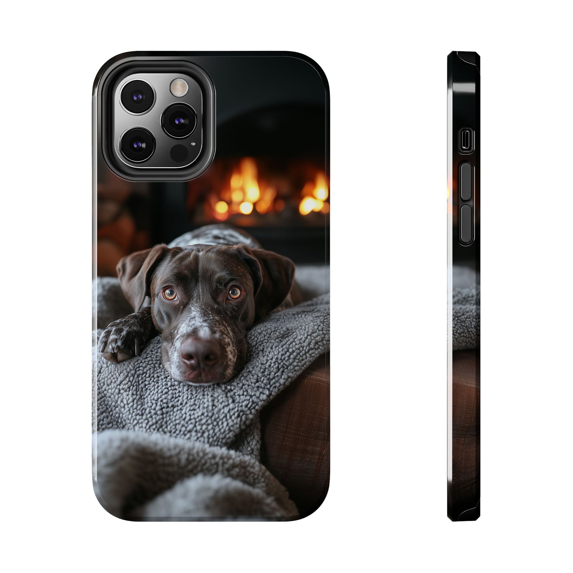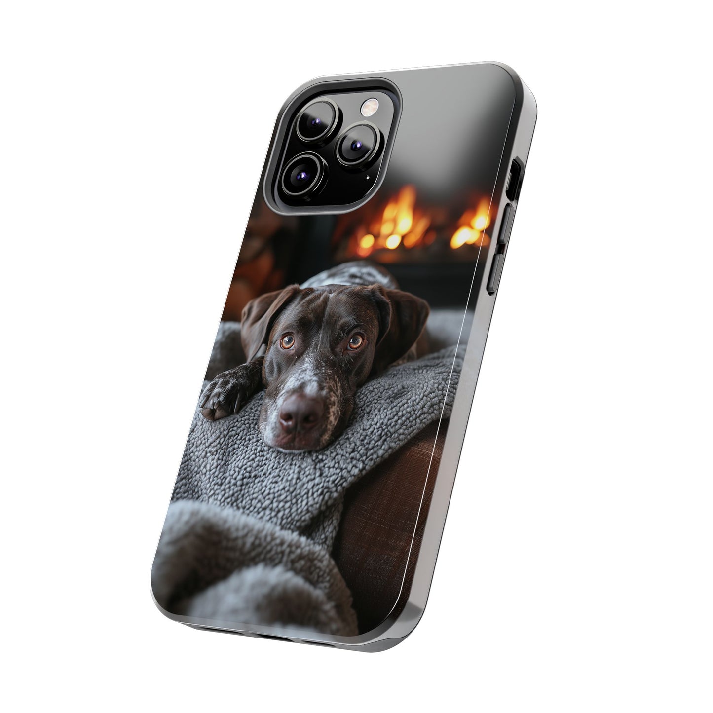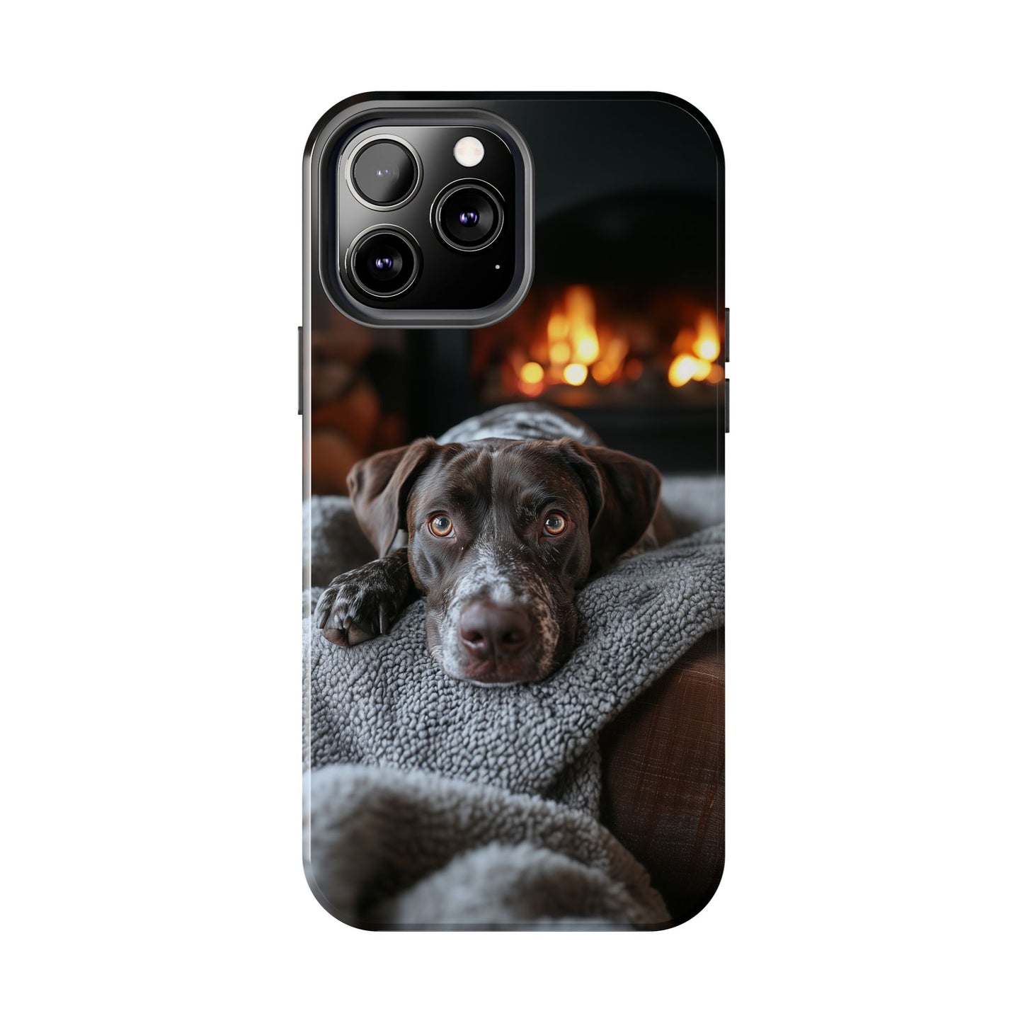Cozy German Shorthaired Pointer iPhone Case – Rustic Fireplace Protective Cover