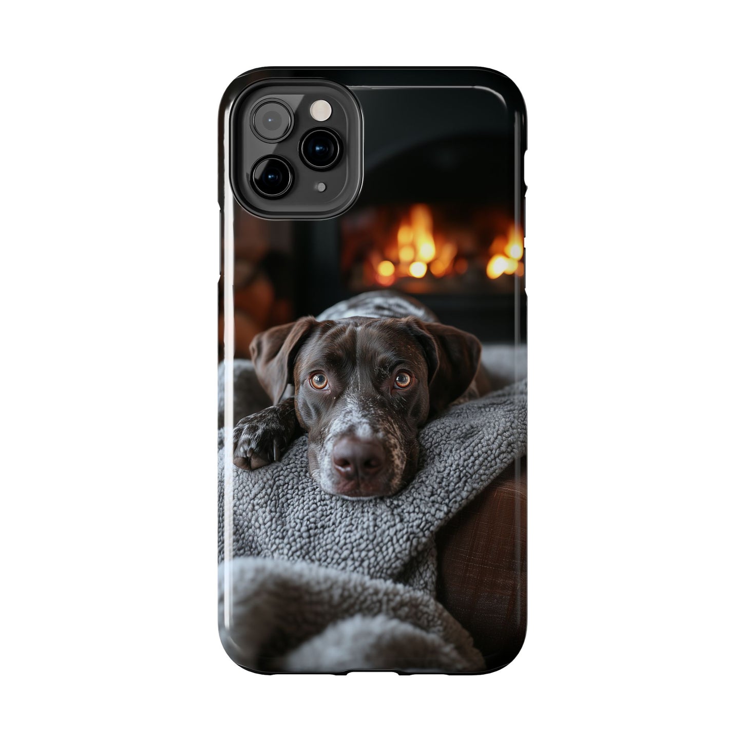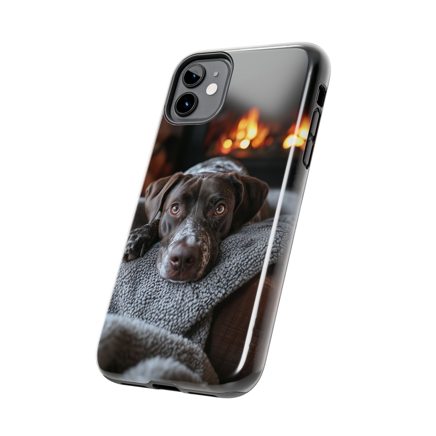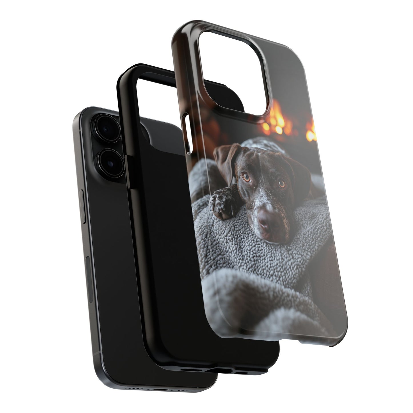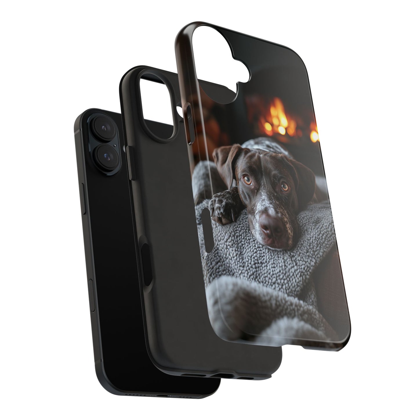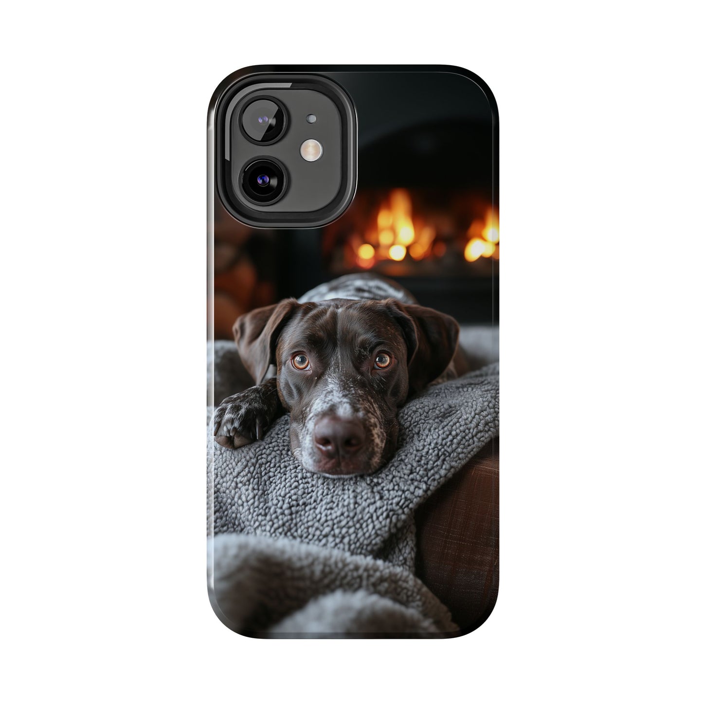 Cozy German Shorthaired Pointer iPhone Case – Rustic Fireplace Protective Cover