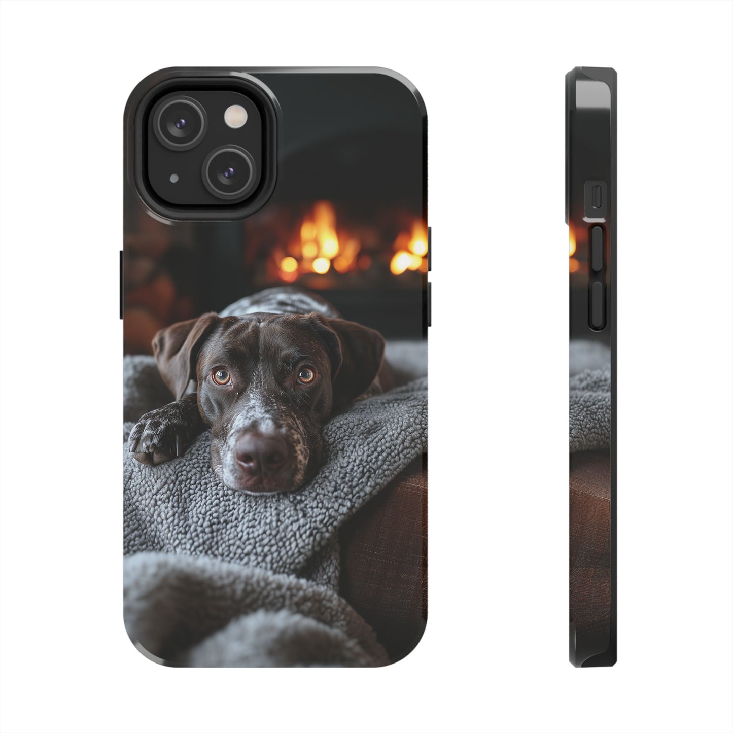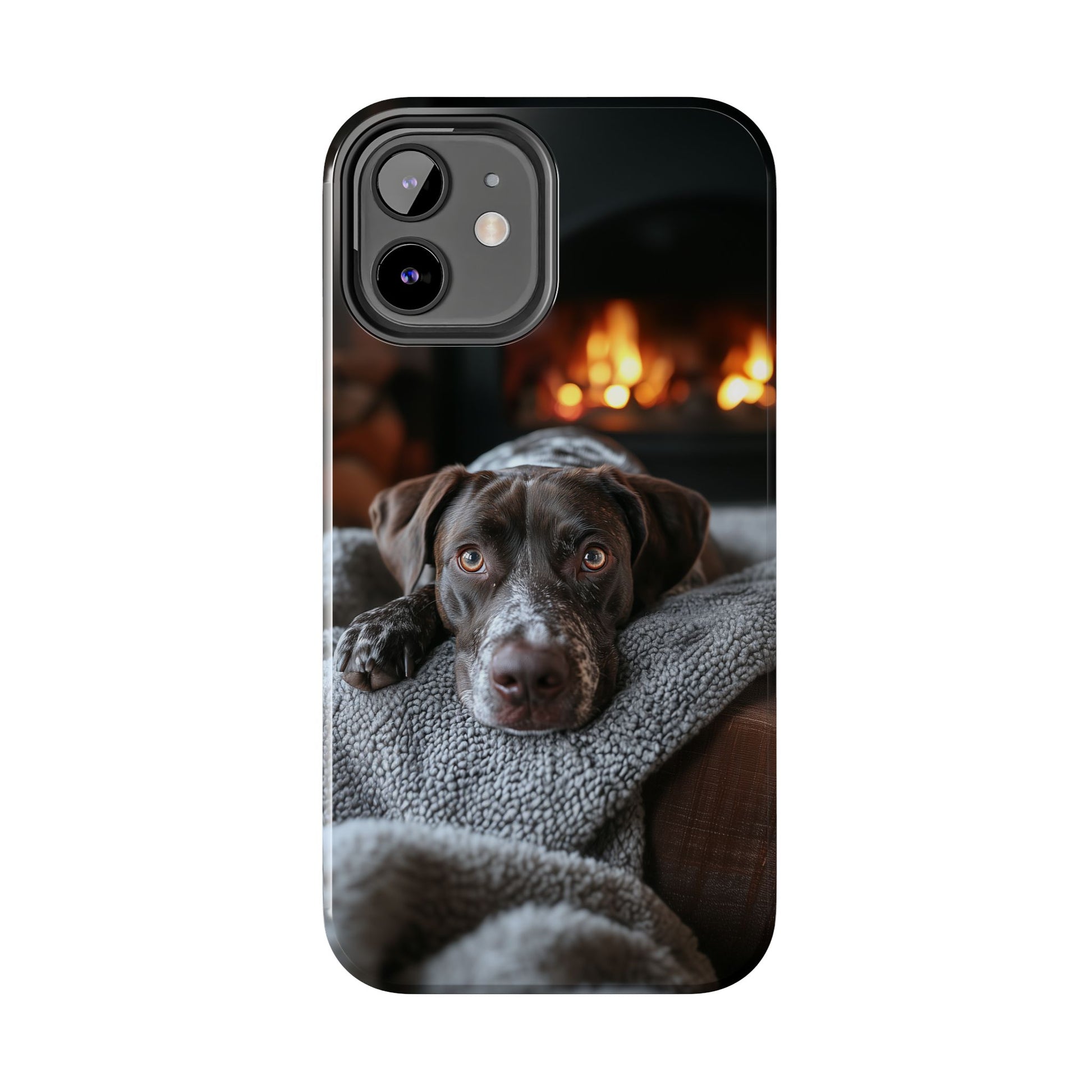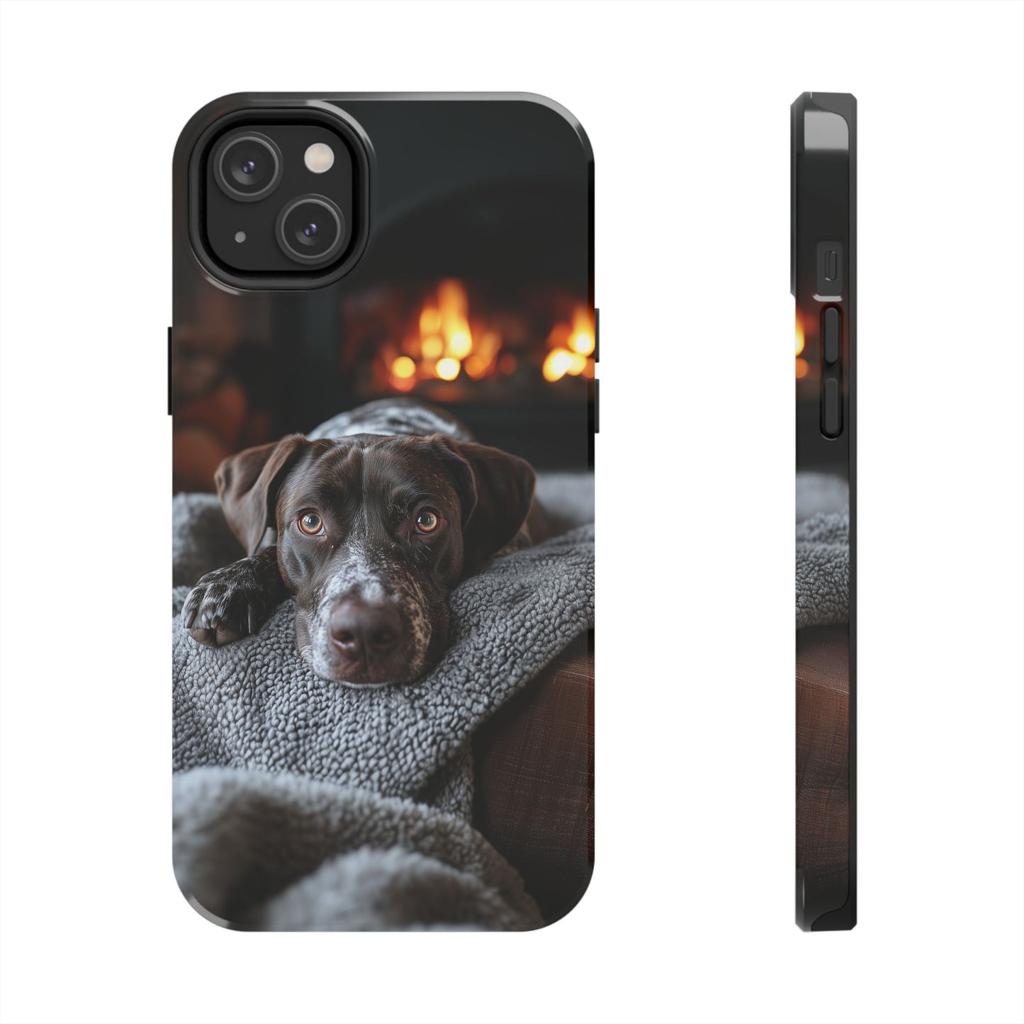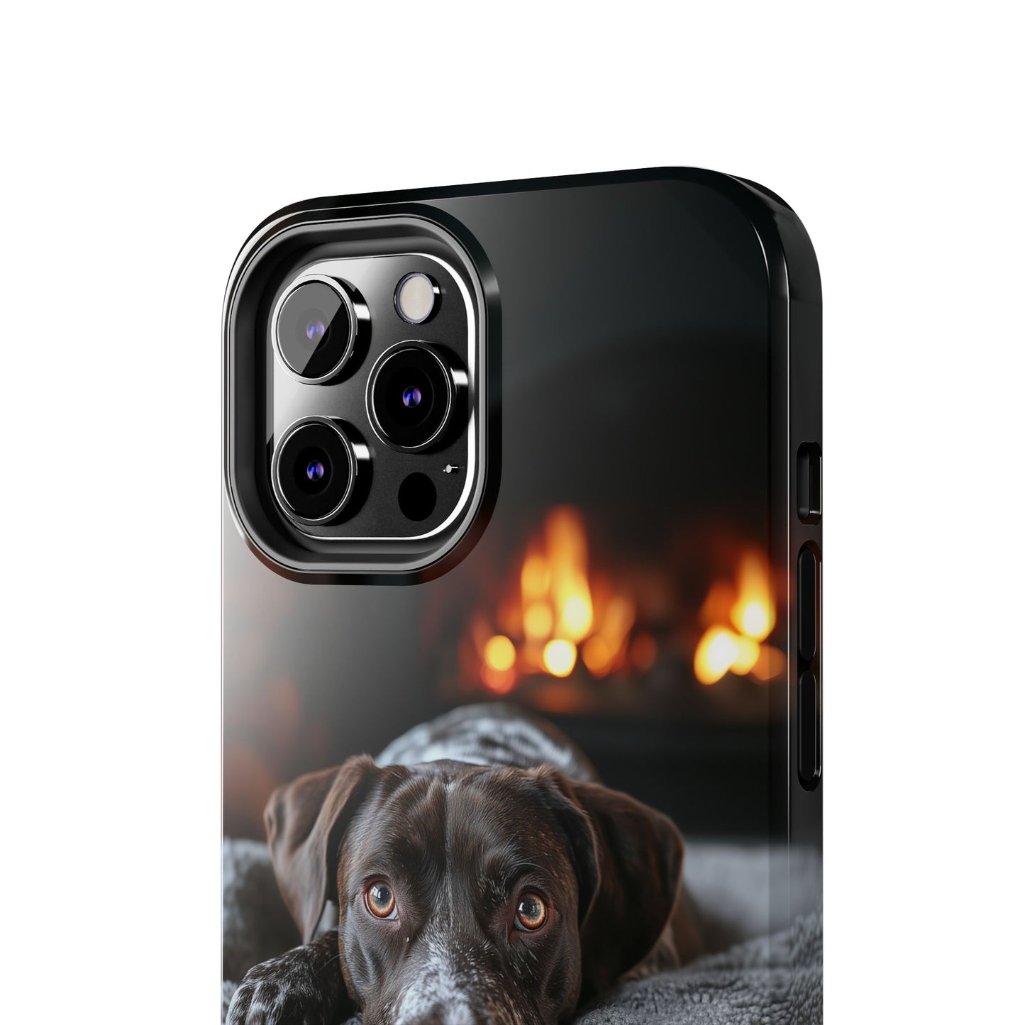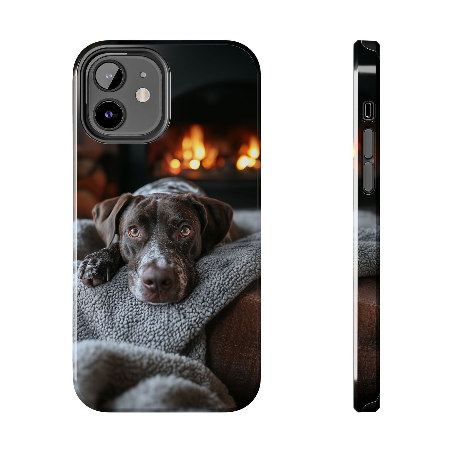 Cozy German Shorthaired Pointer iPhone Case – Rustic Fireplace Protective Cover