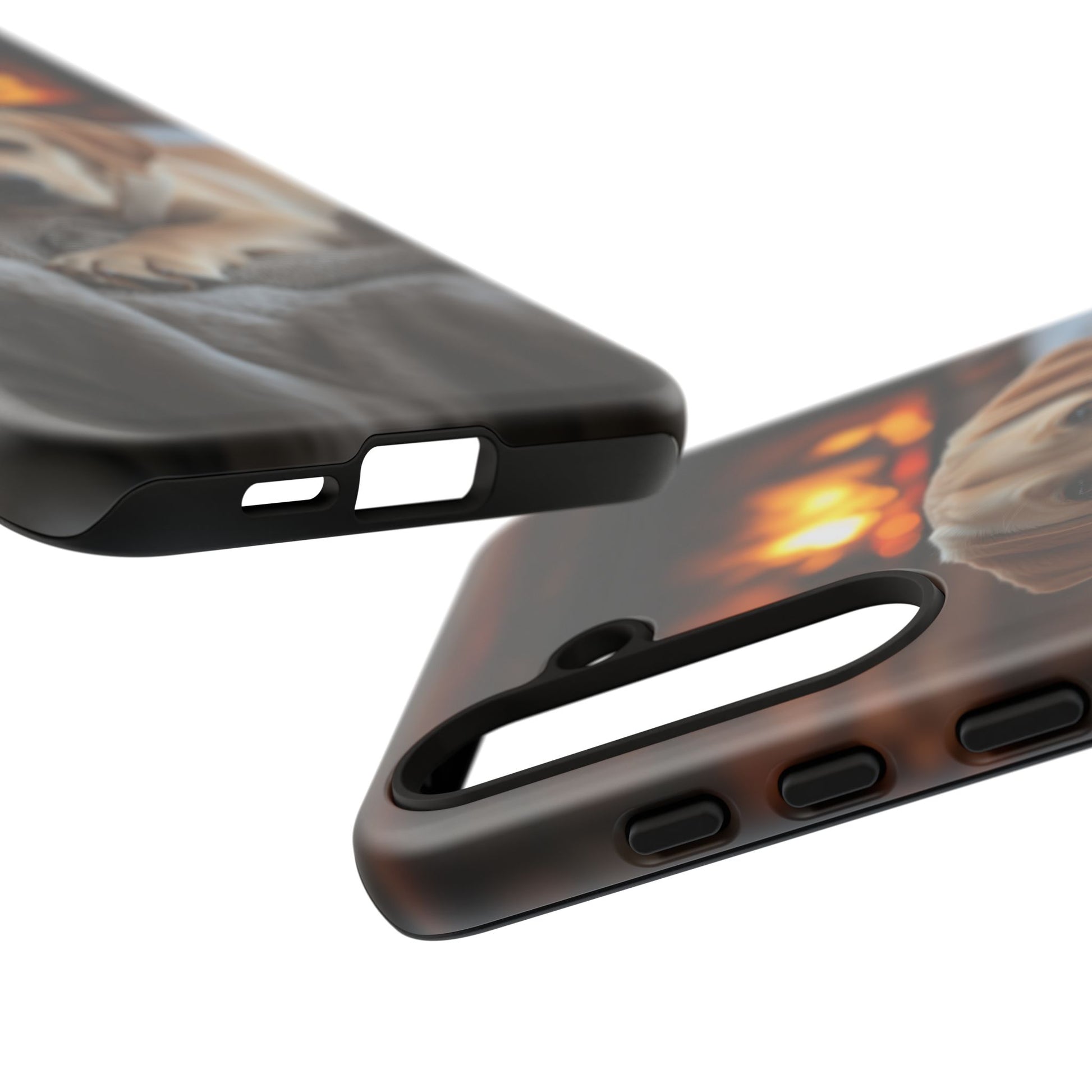 Bring the warmth of a crackling fireplace and a loyal golden retriever to your Samsung Galaxy! This Cozy Golden Retriever by the Fireplace Samsung Galaxy Case is the perfect combination of style and durability, designed to protect your phone while showcasing your love for dogs...