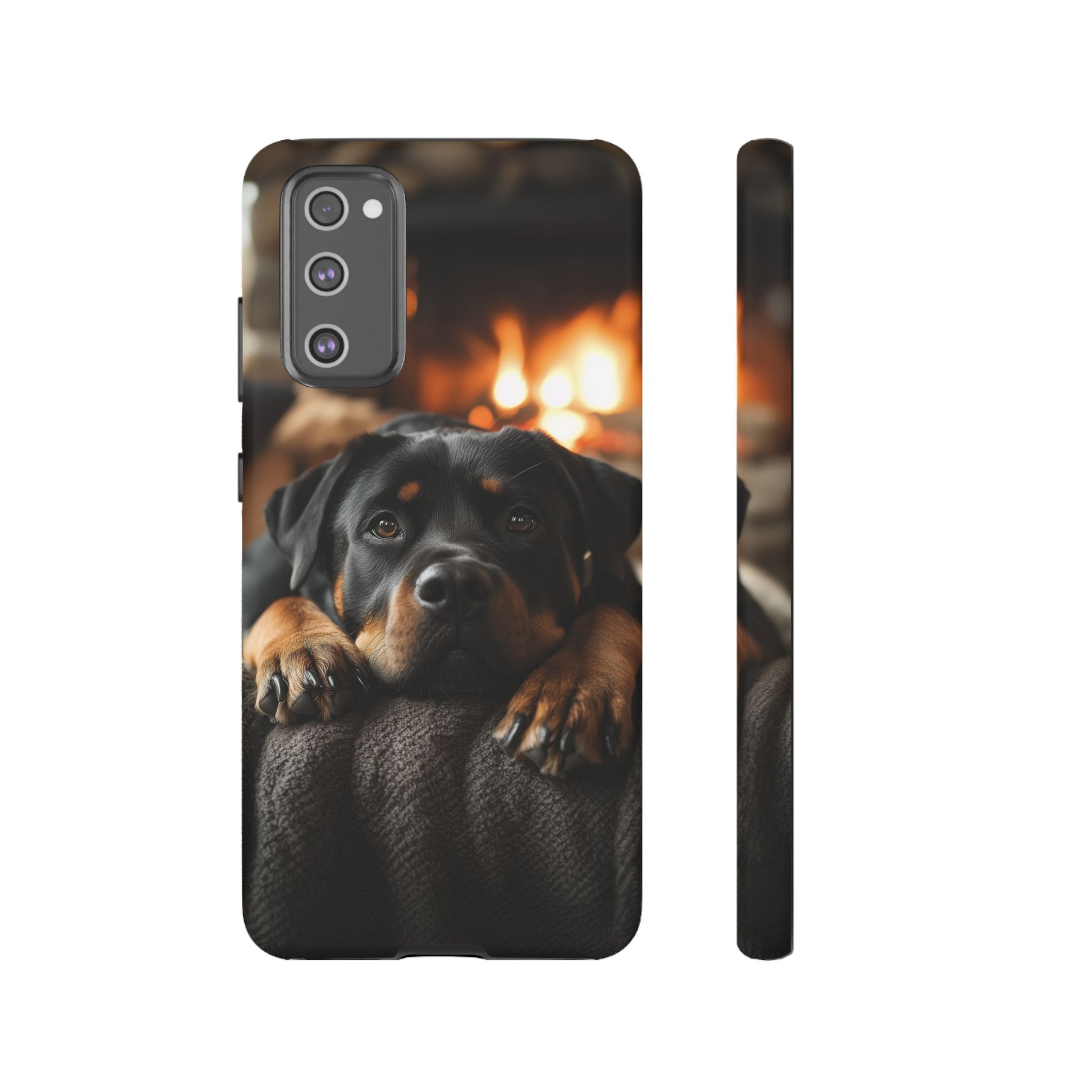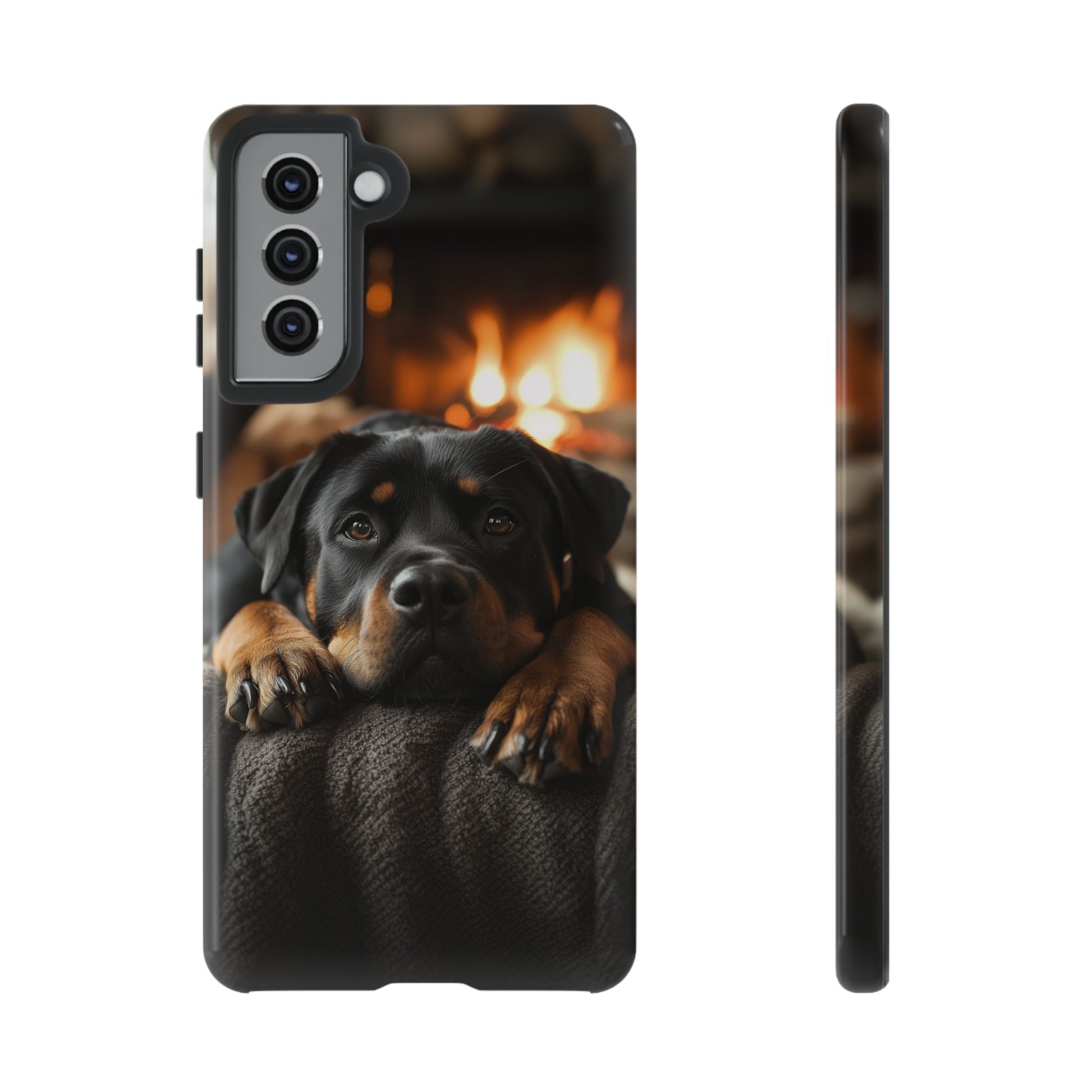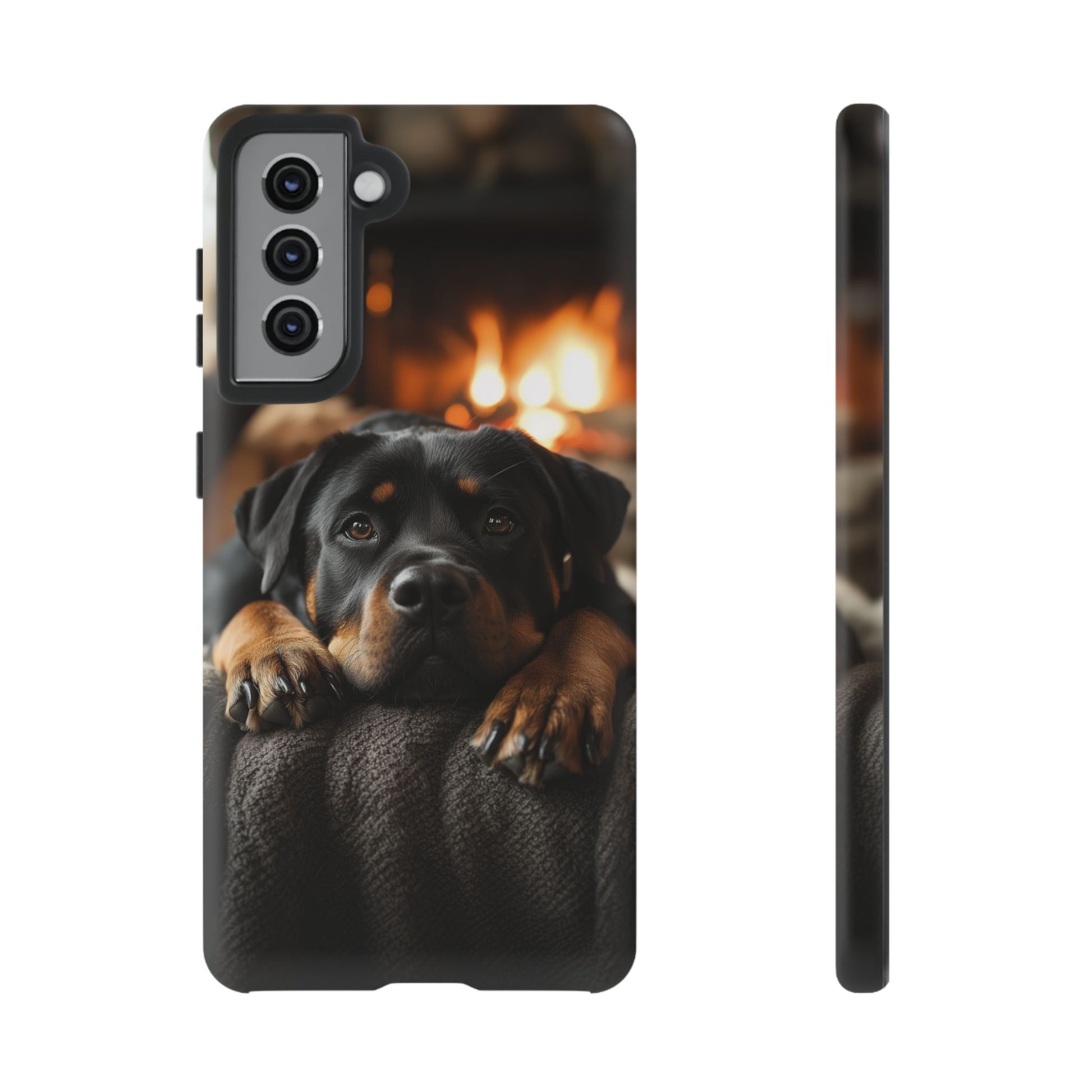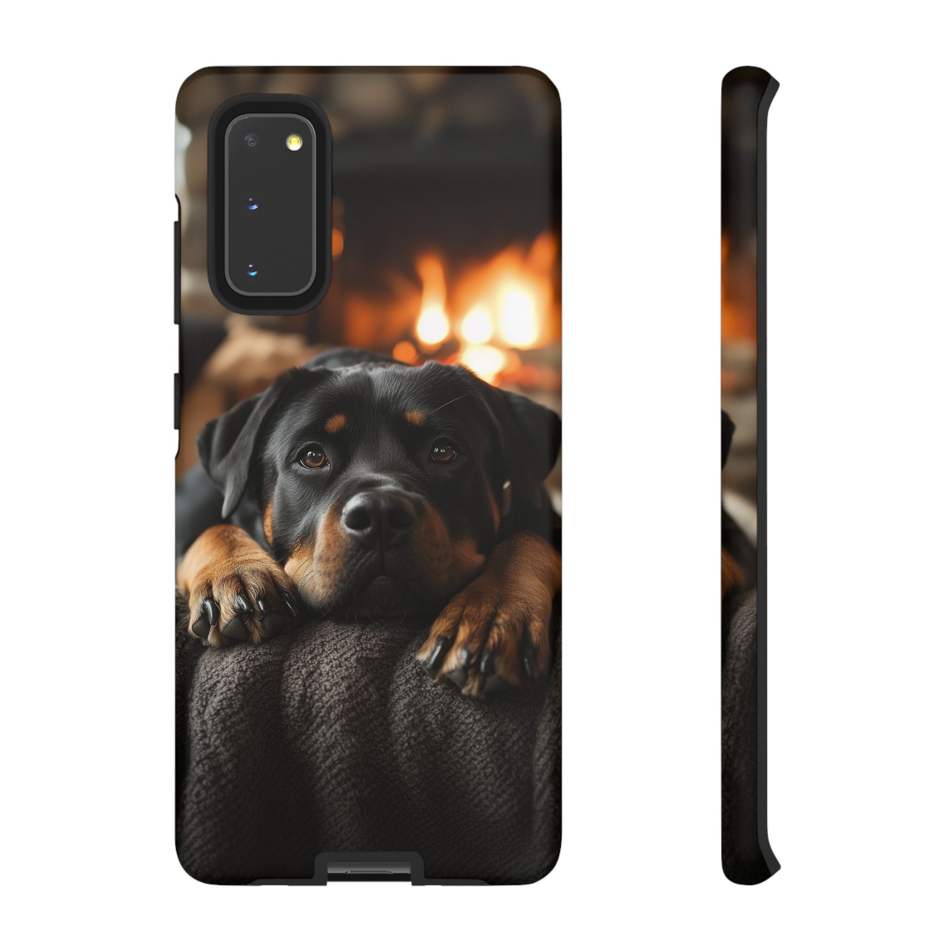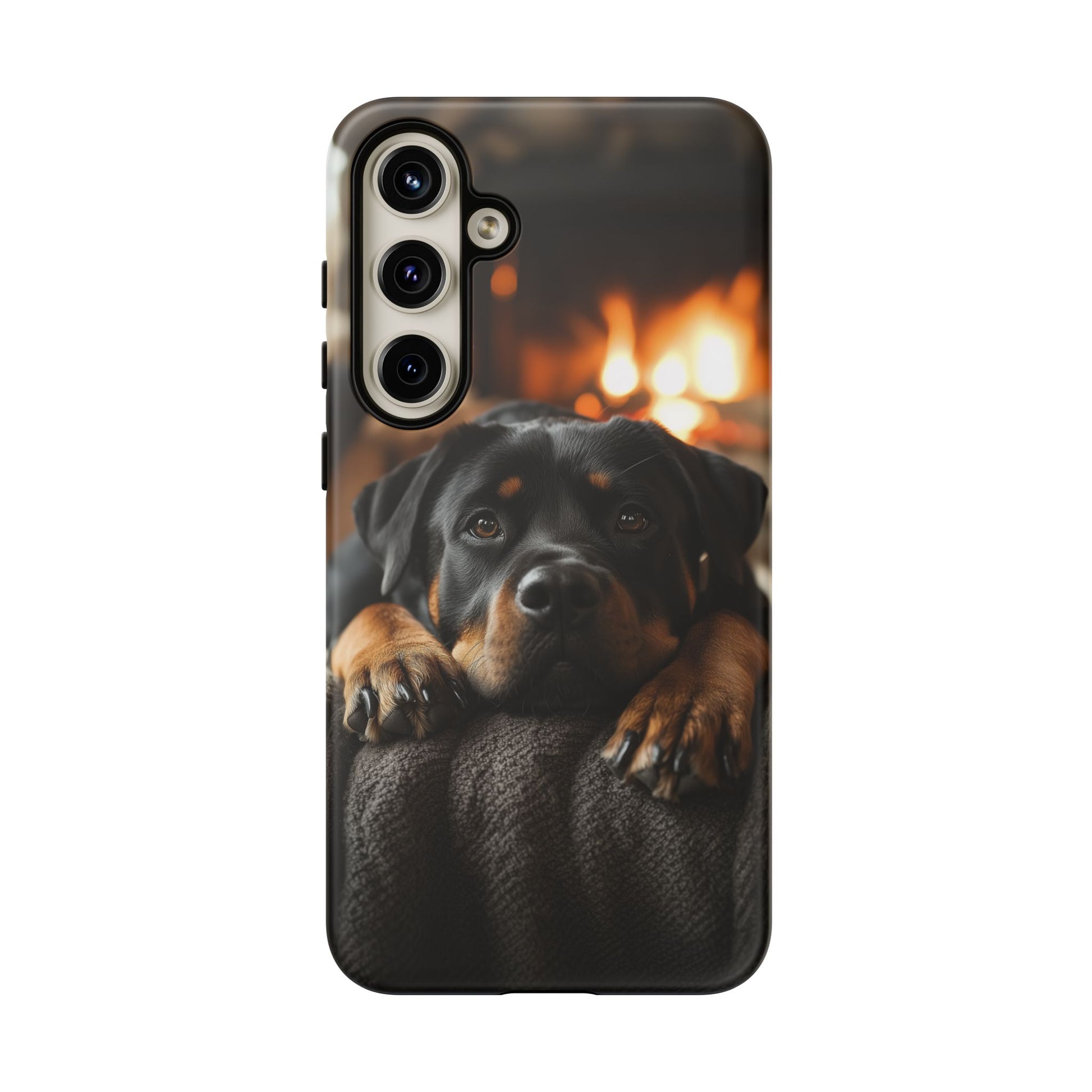 Wrap your Samsung Galaxy in warmth and charm with this Cozy Rottweiler Case. Featuring a heartwarming image of a Rottweiler lounging by a glowing fireplace, this case is perfect for dog lovers who cherish cozy moments.