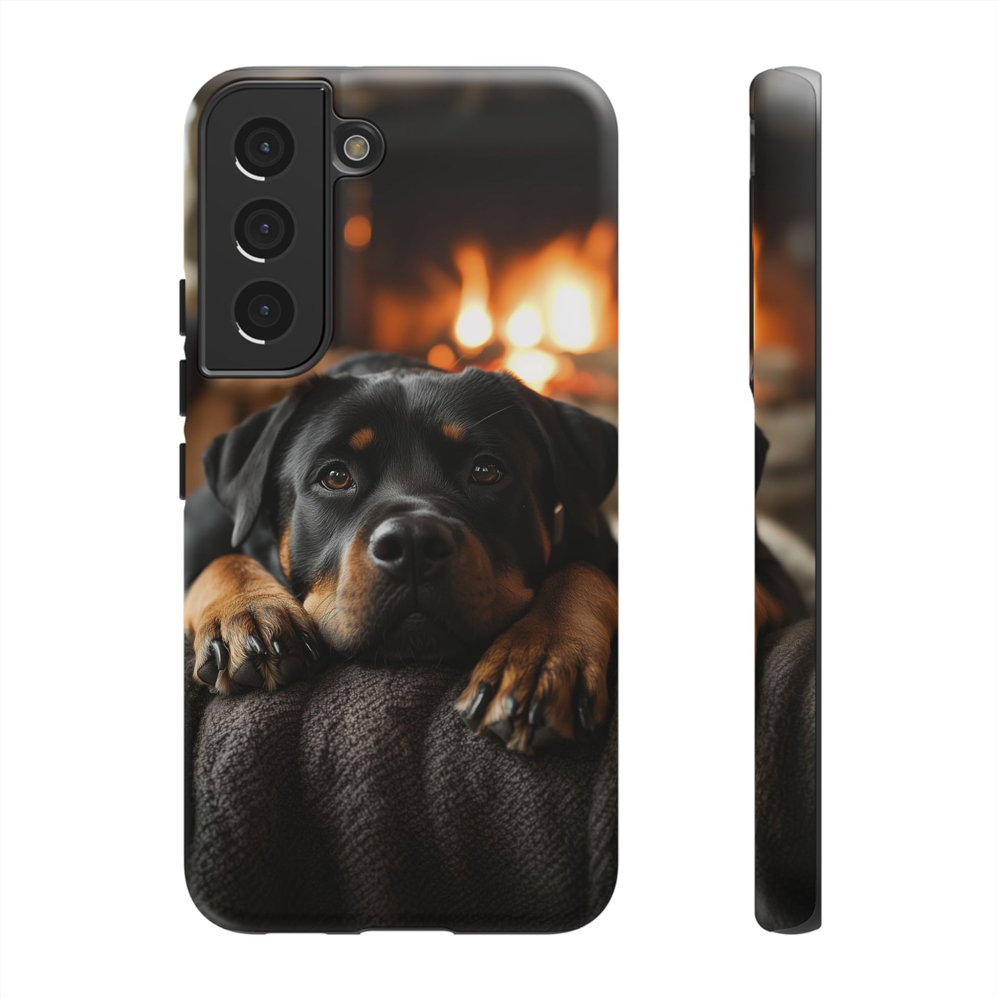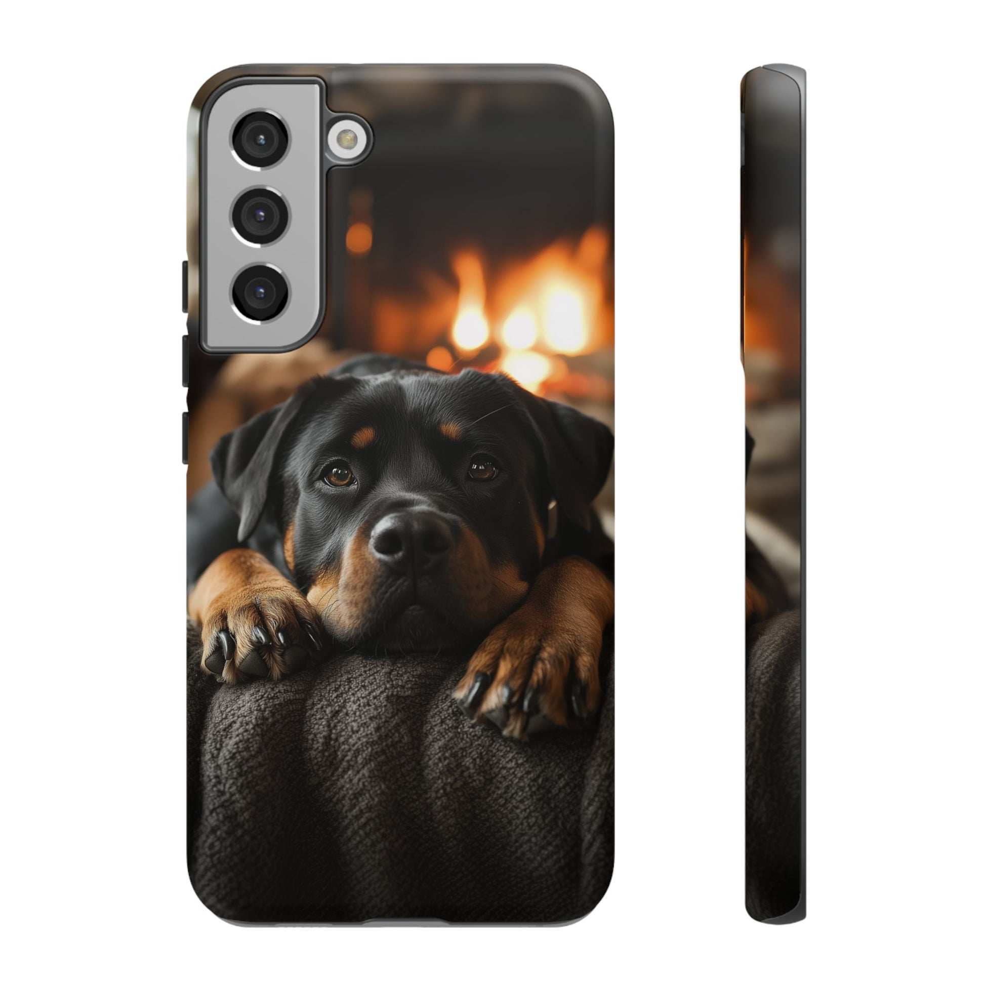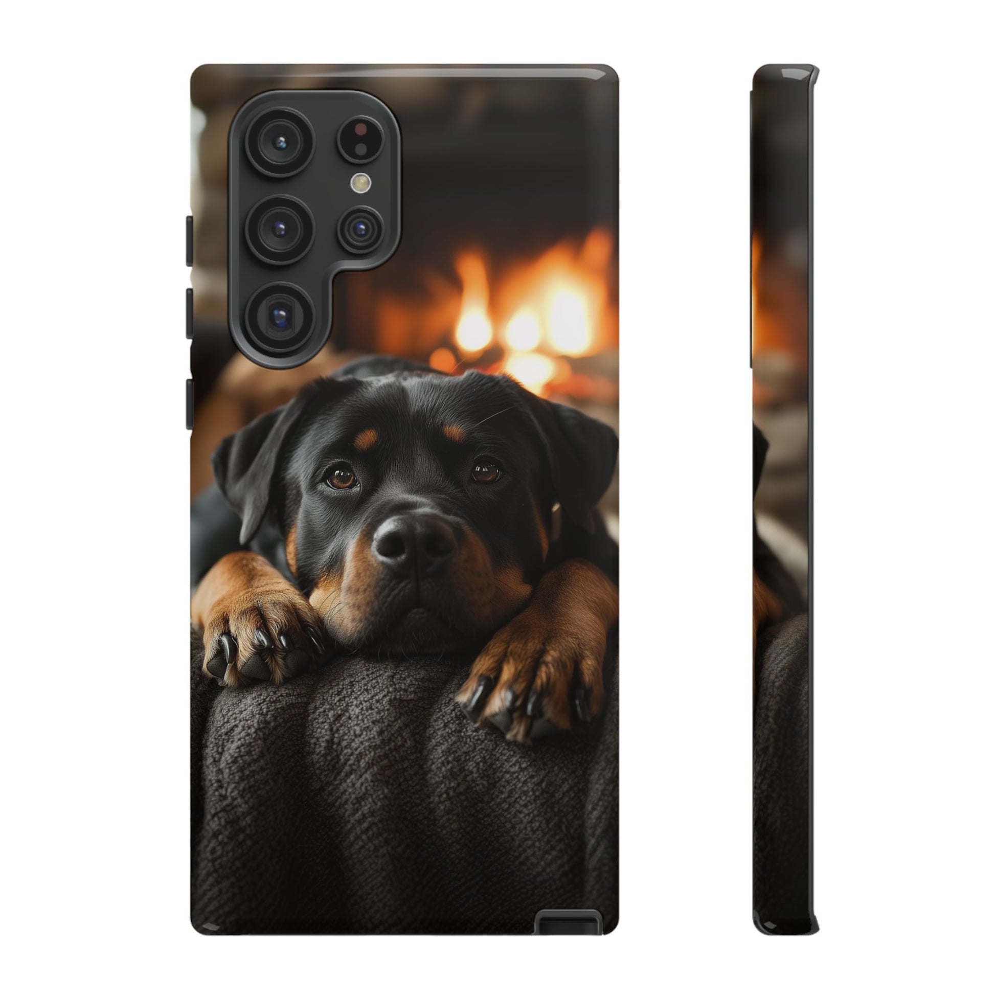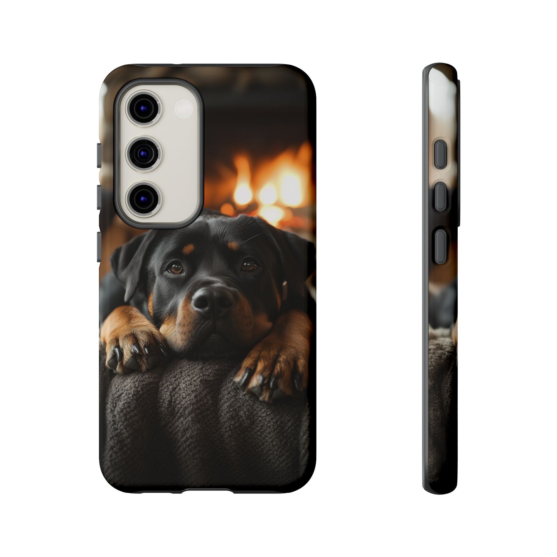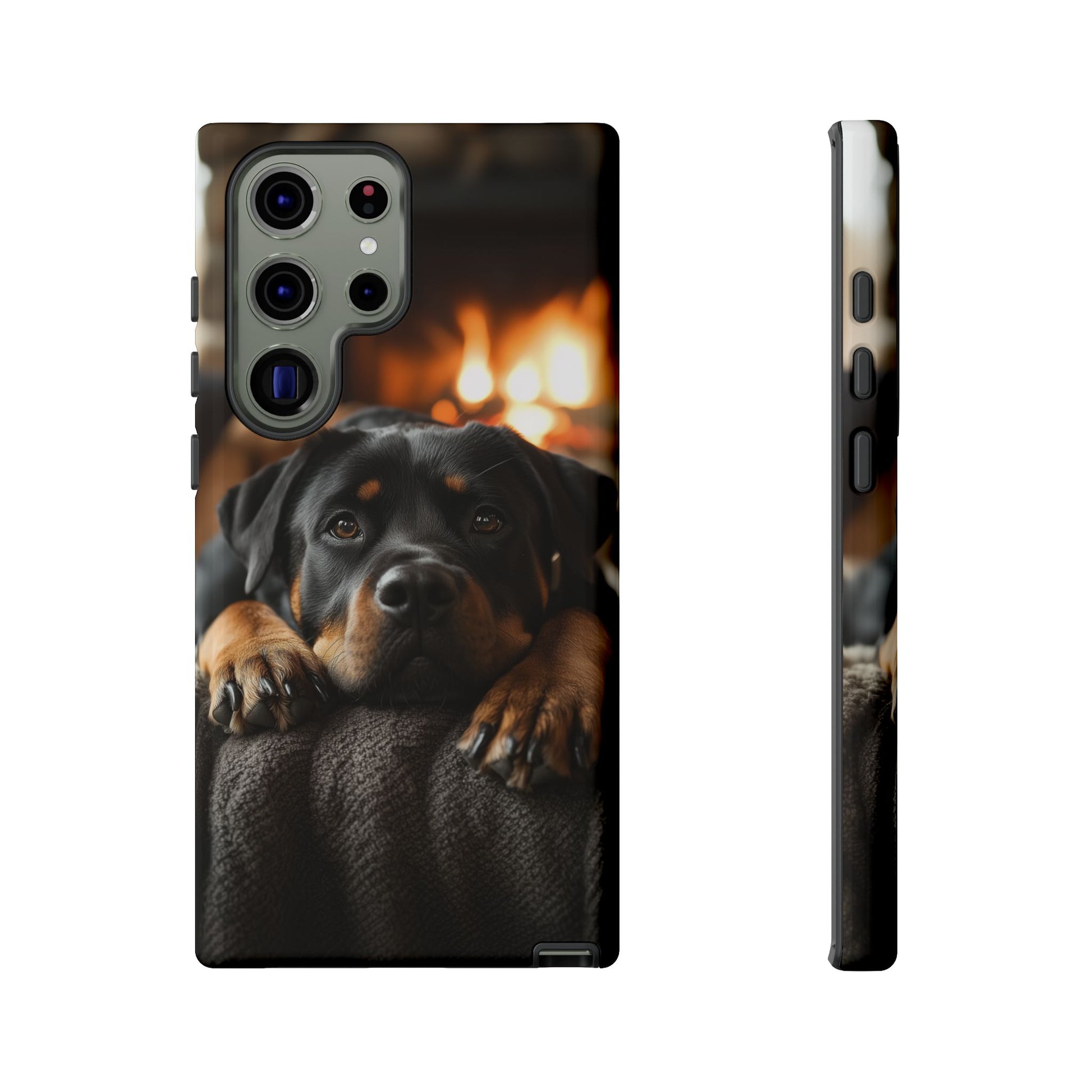 Wrap your Samsung Galaxy in warmth and charm with this Cozy Rottweiler Case. Featuring a heartwarming image of a Rottweiler lounging by a glowing fireplace, this case is perfect for dog lovers who cherish cozy moments.