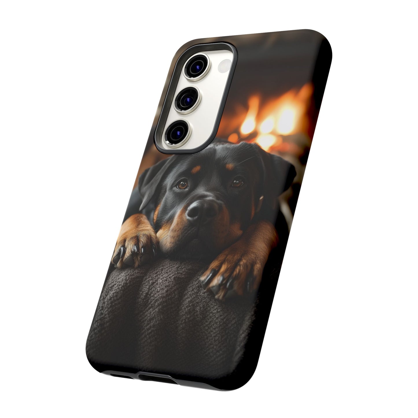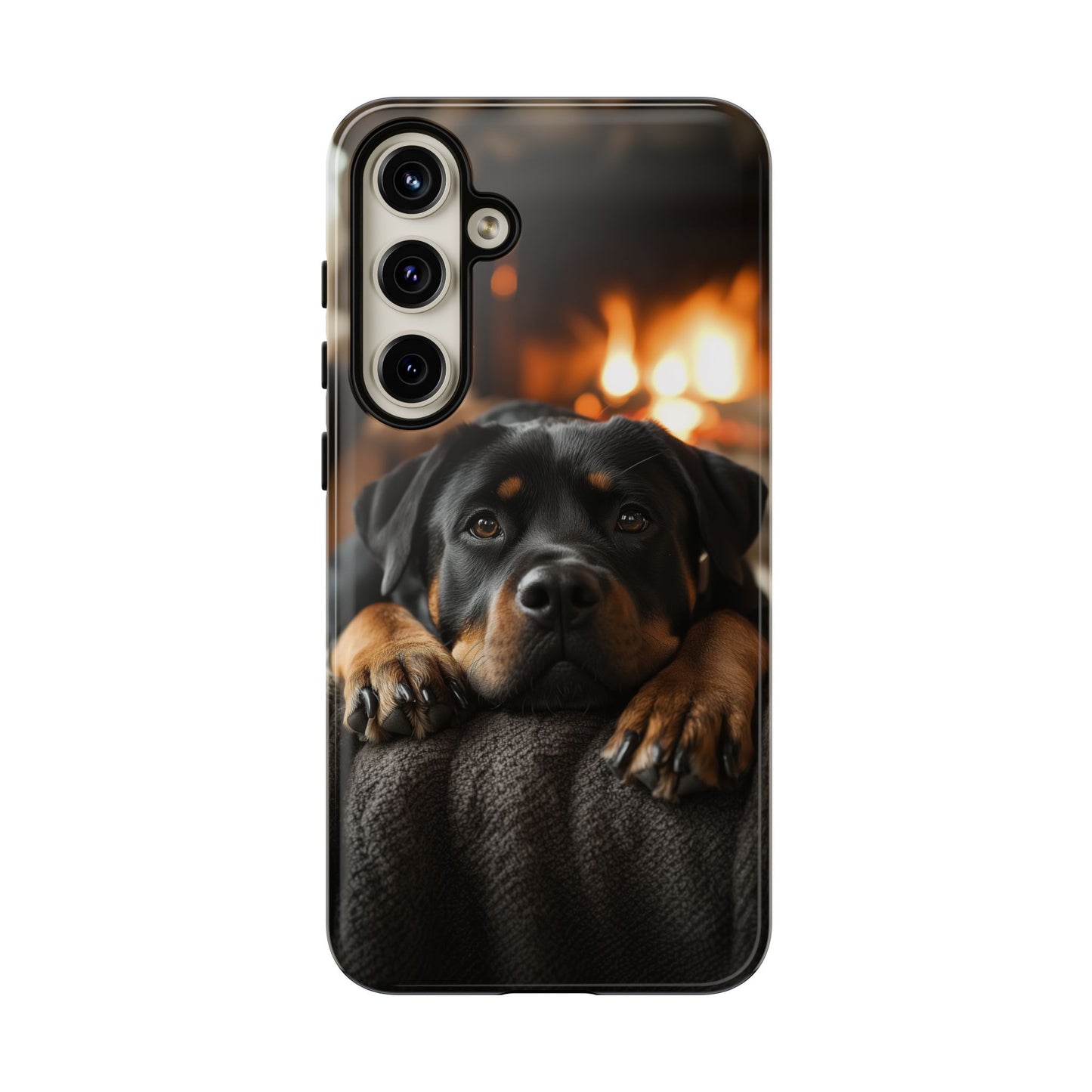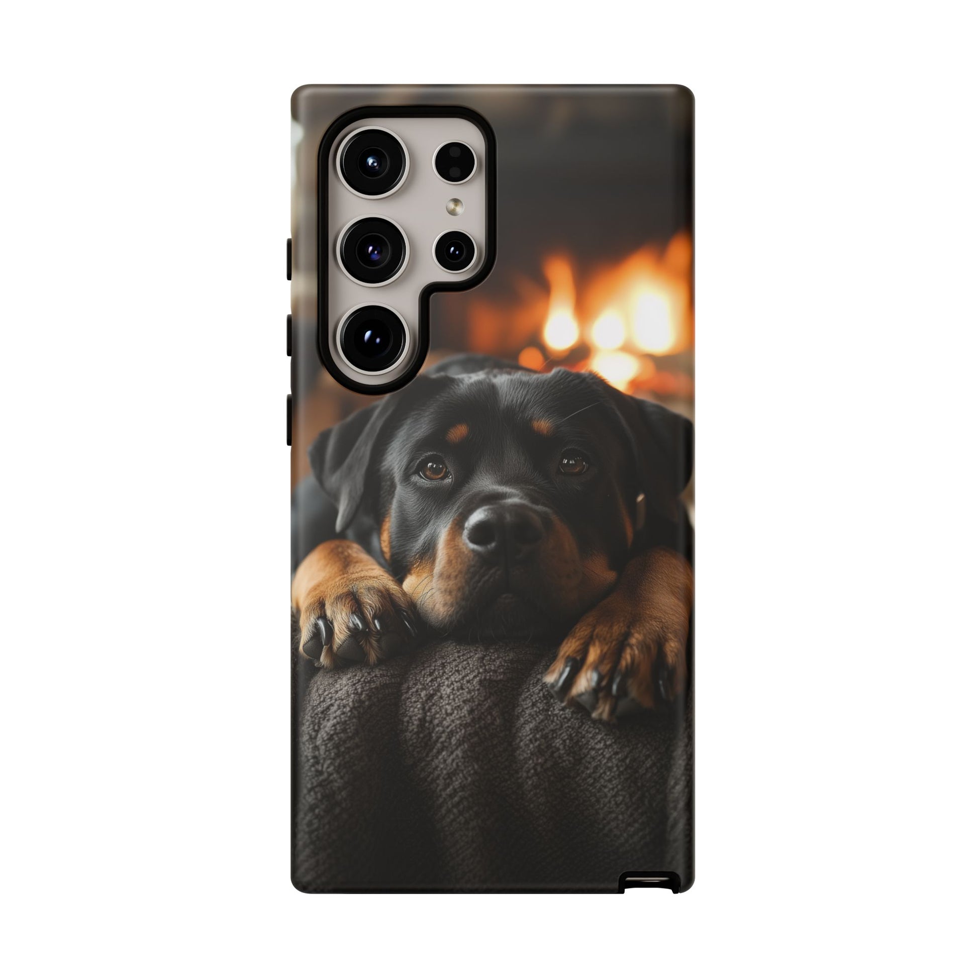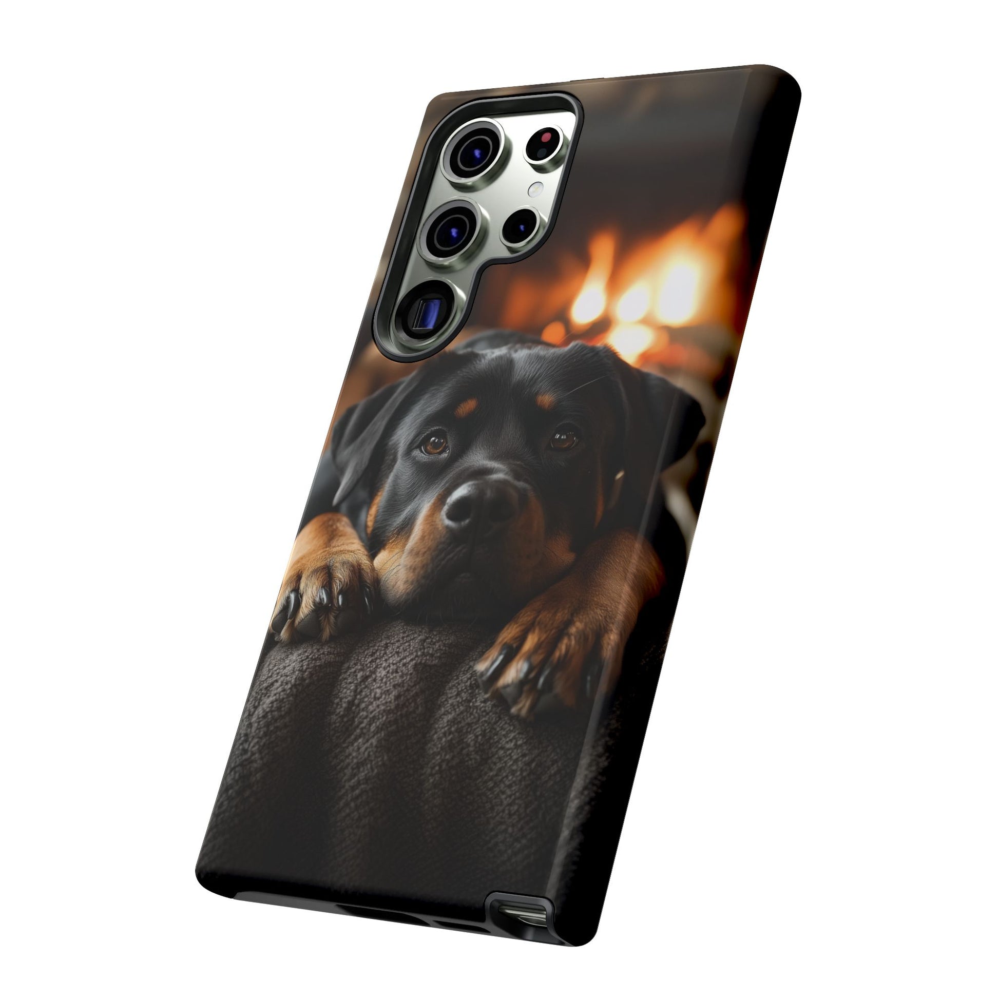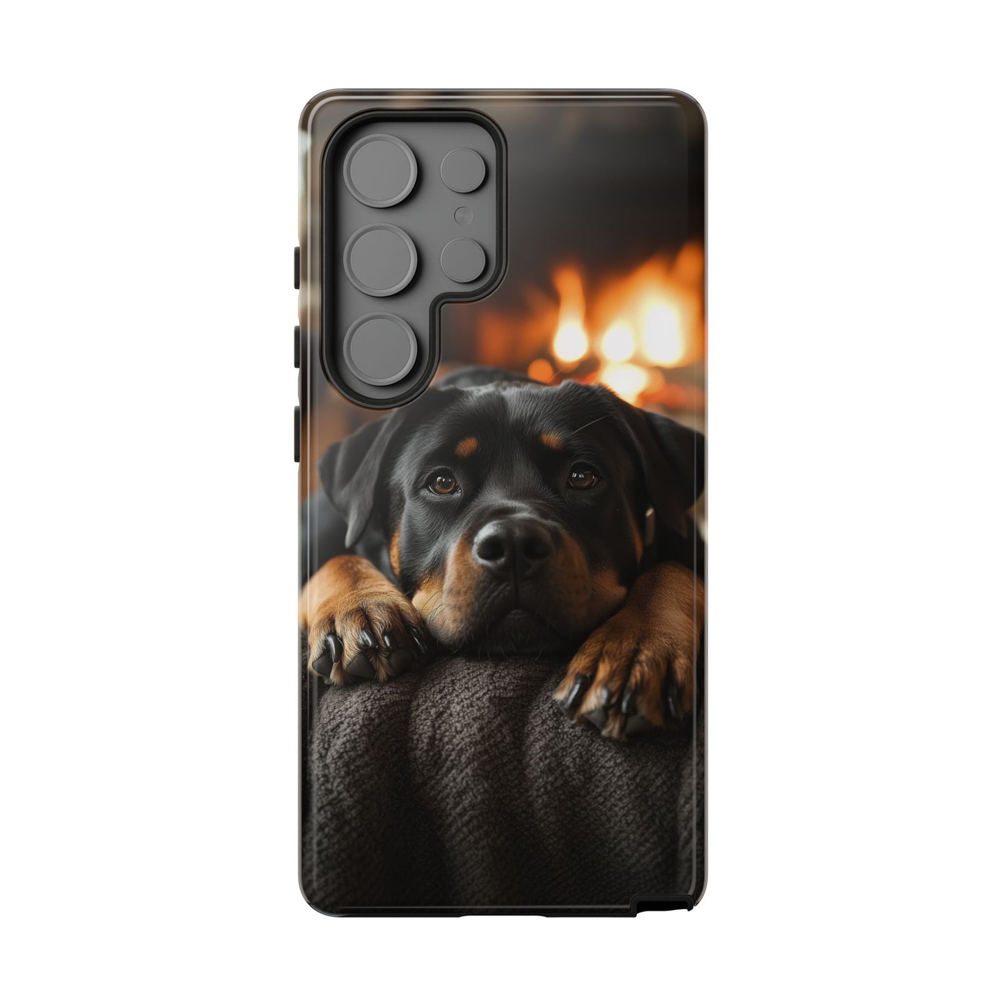 Wrap your Samsung Galaxy in warmth and charm with this Cozy Rottweiler Case. Featuring a heartwarming image of a Rottweiler lounging by a glowing fireplace, this case is perfect for dog lovers who cherish cozy moments.