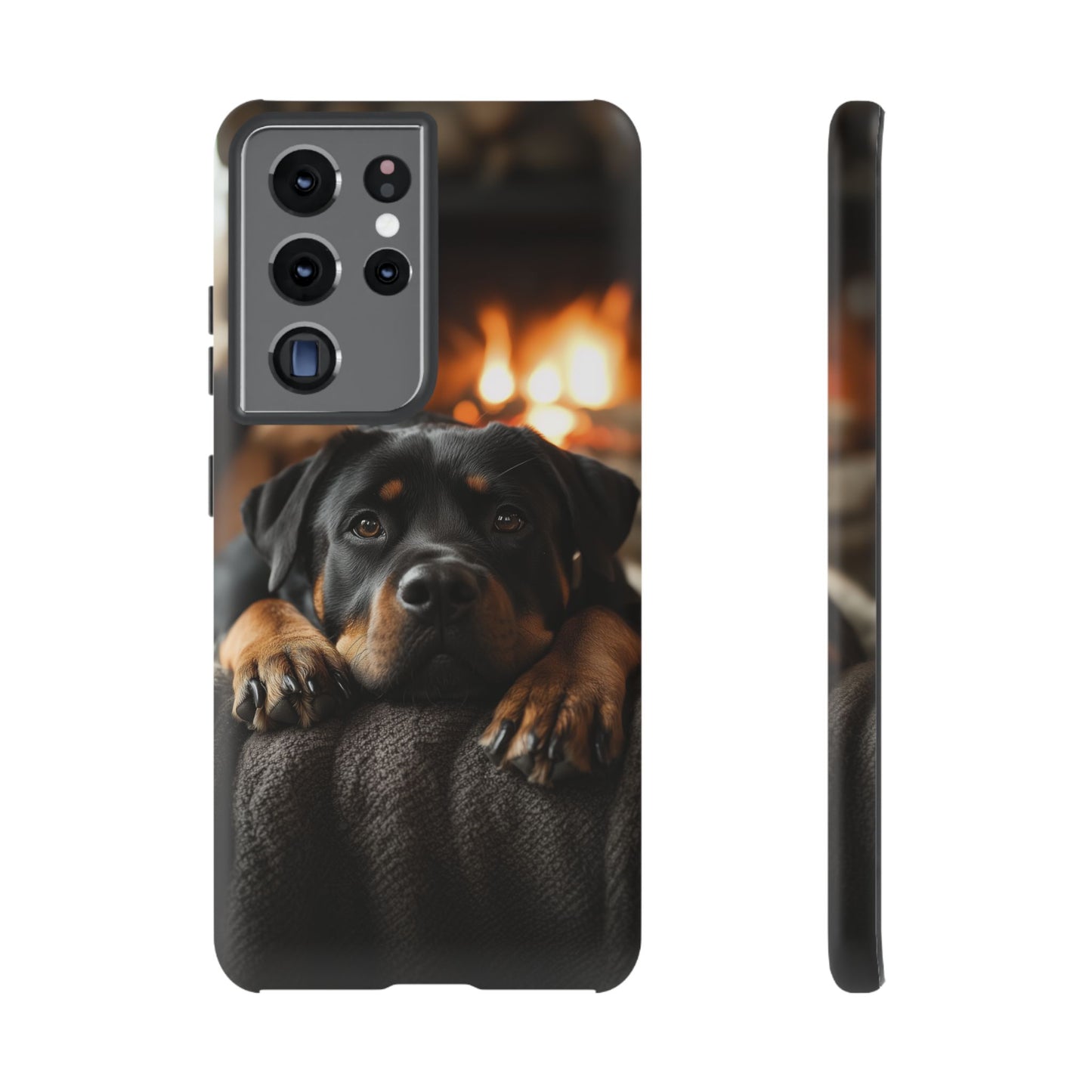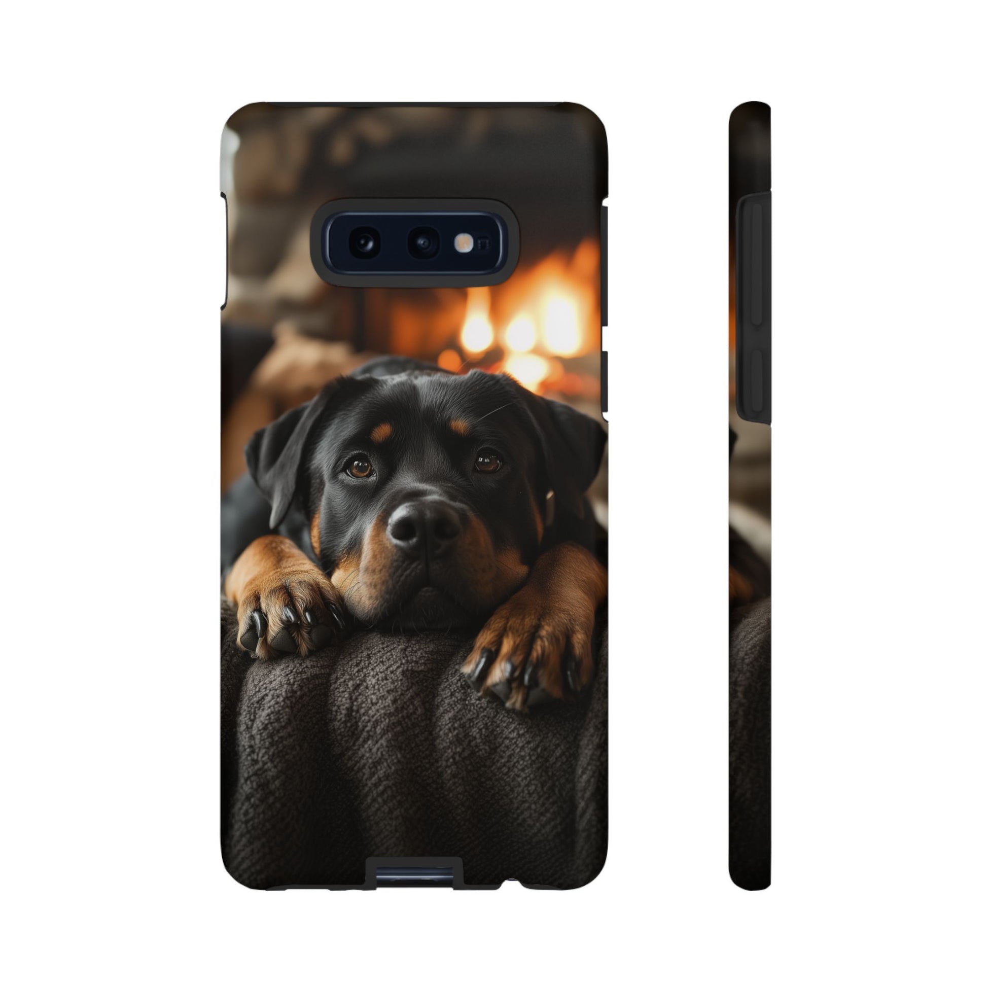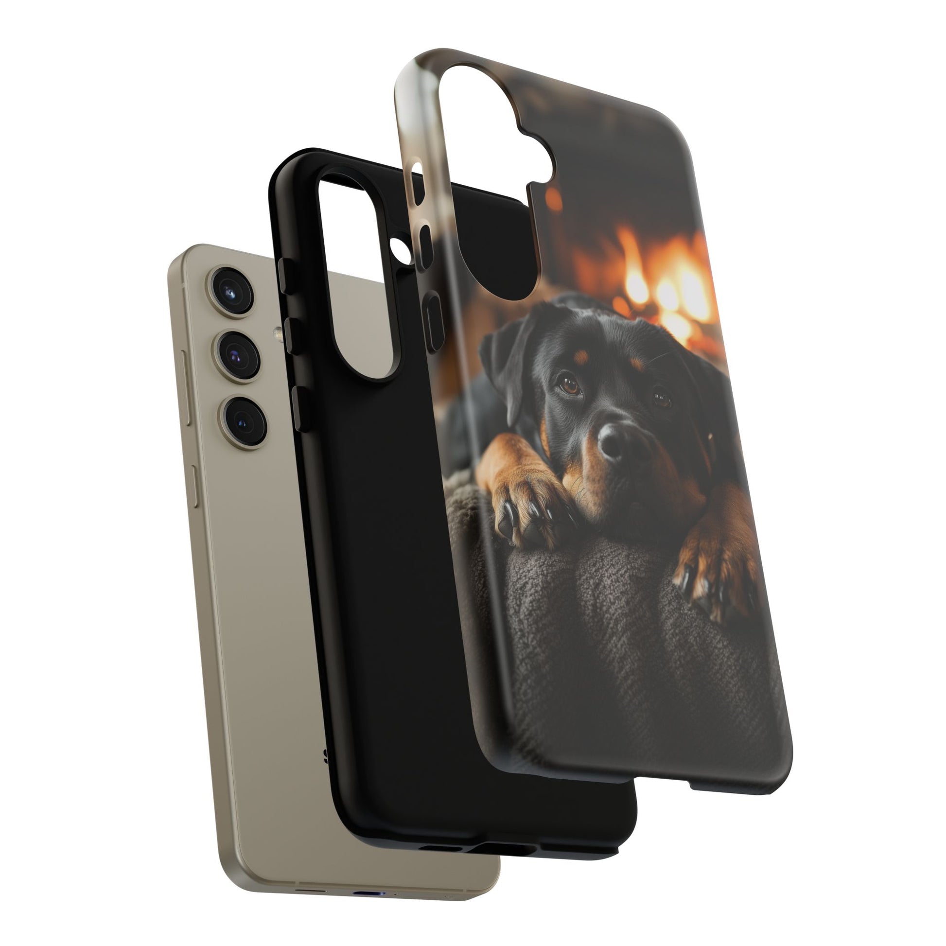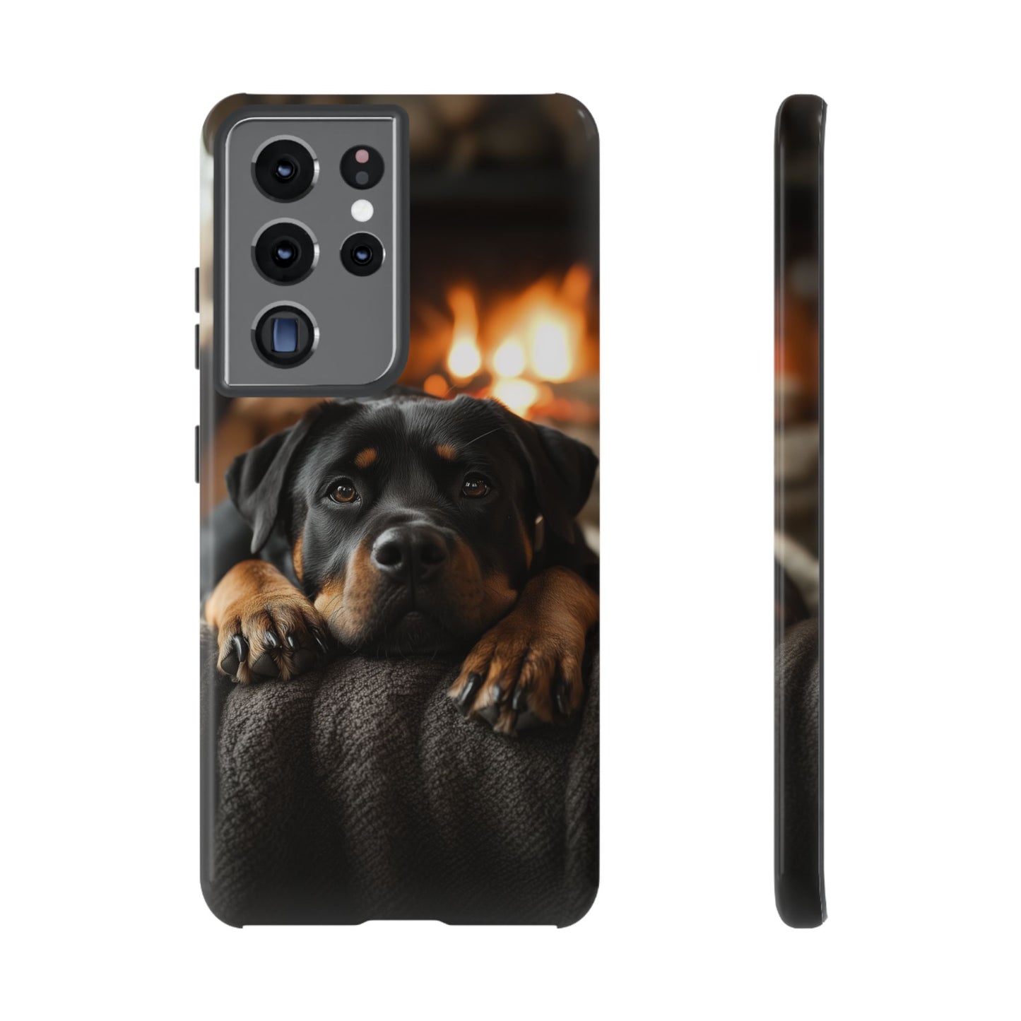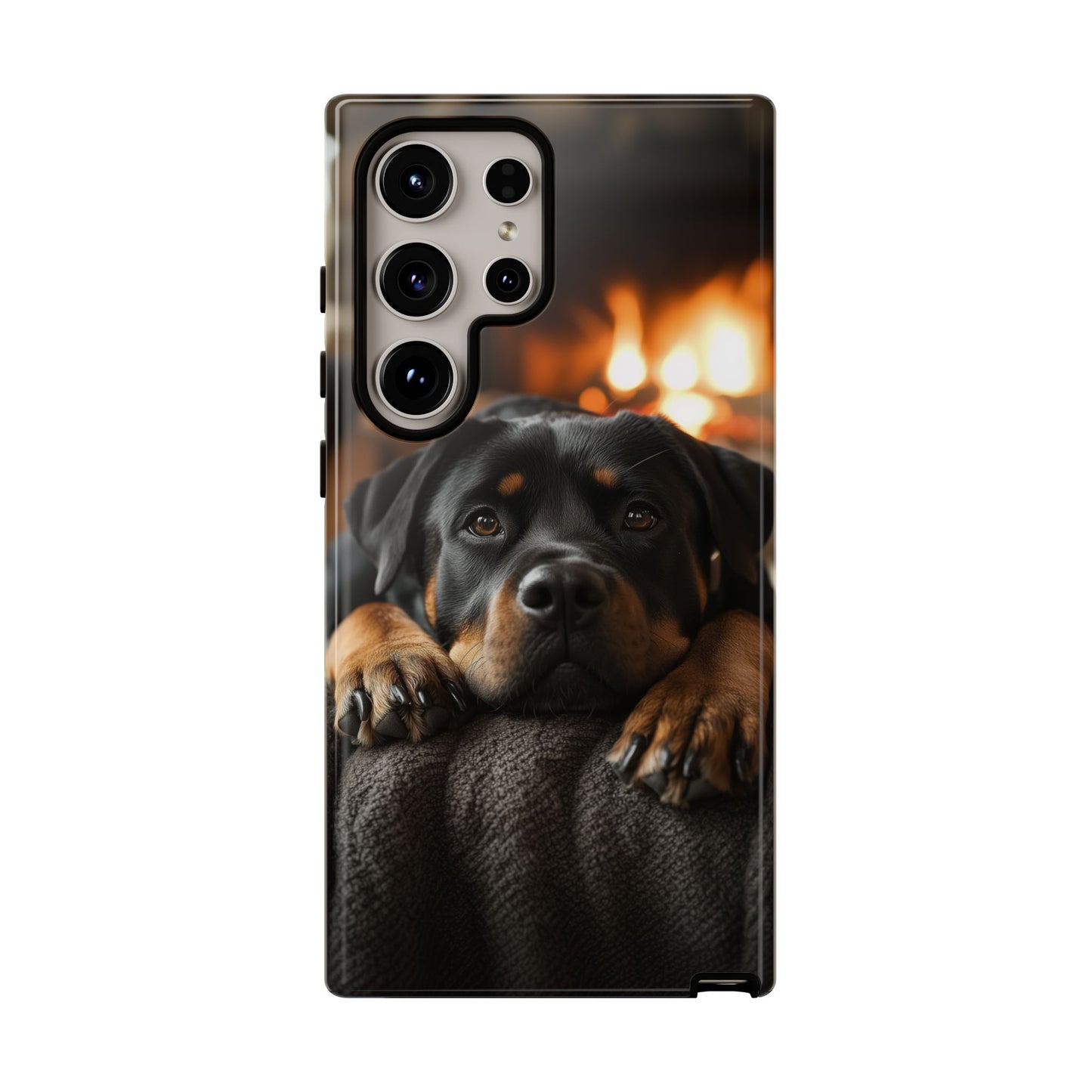 Wrap your Samsung Galaxy in warmth and charm with this Cozy Rottweiler Case. Featuring a heartwarming image of a Rottweiler lounging by a glowing fireplace, this case is perfect for dog lovers who cherish cozy moments.