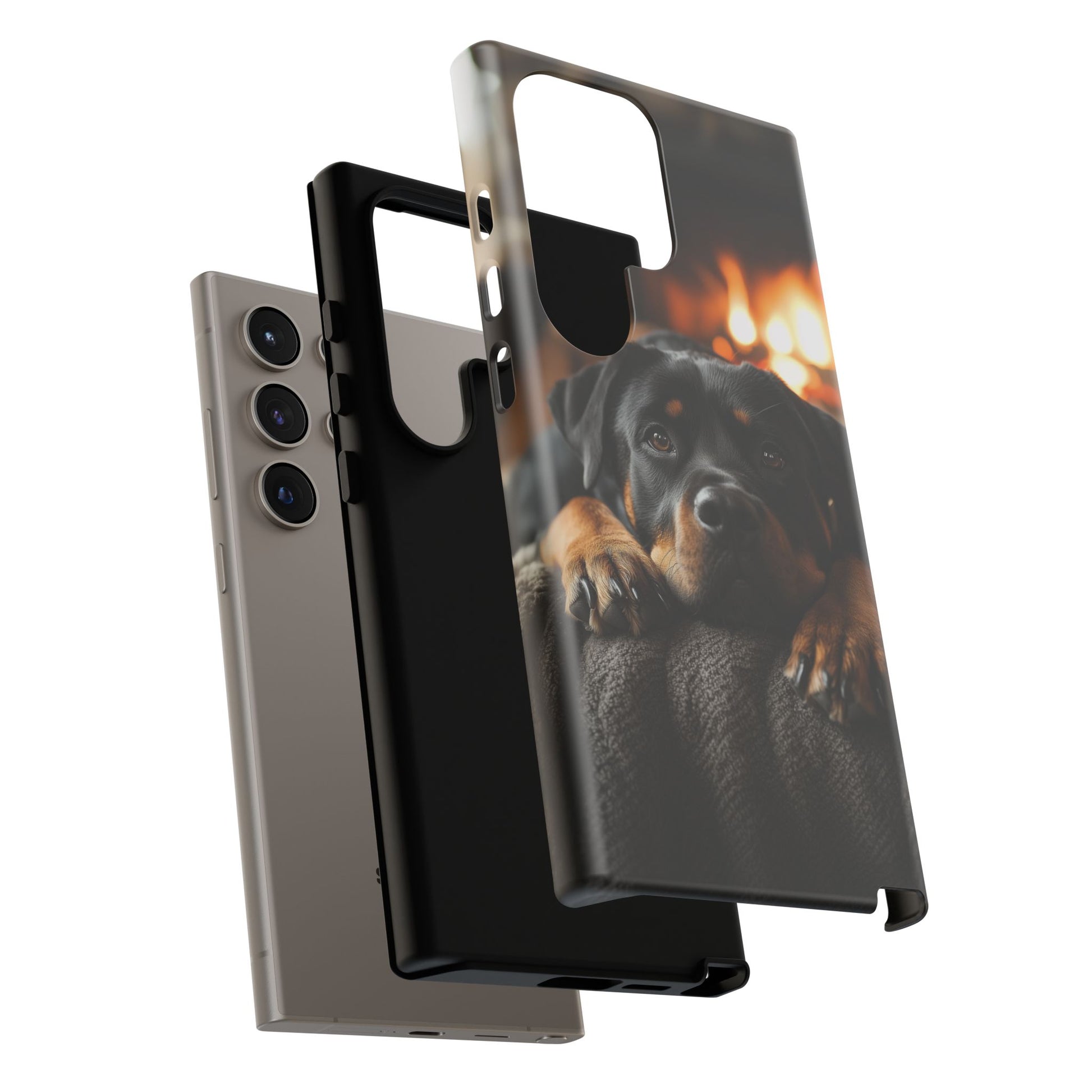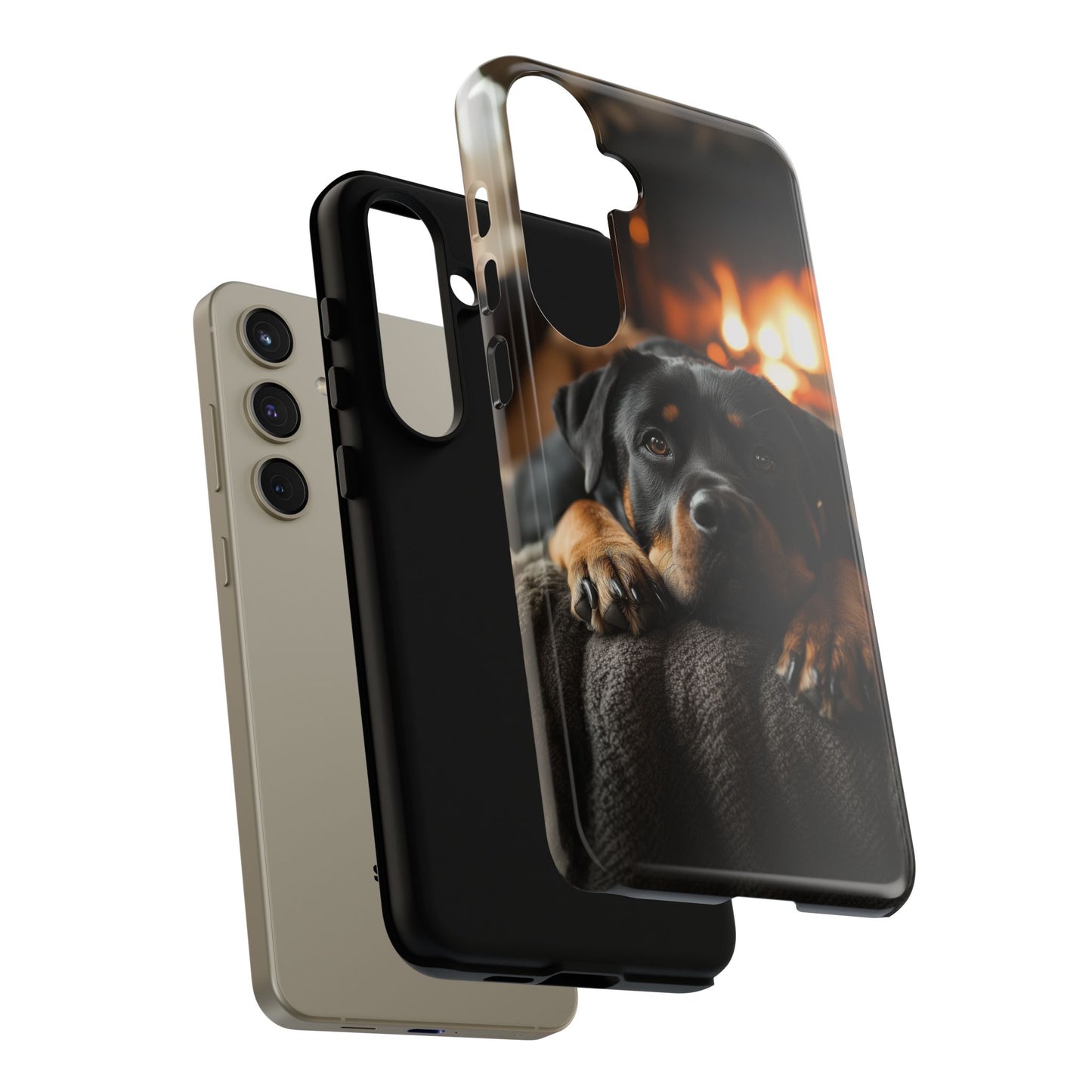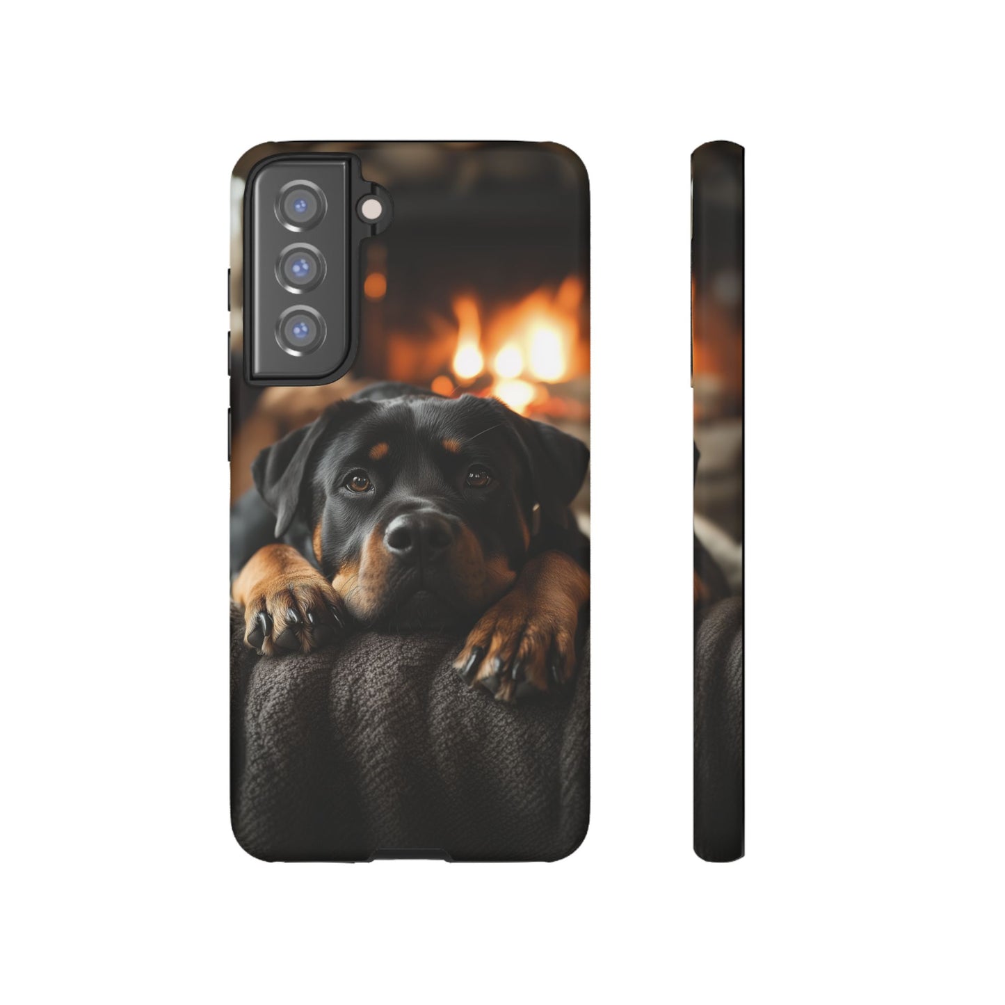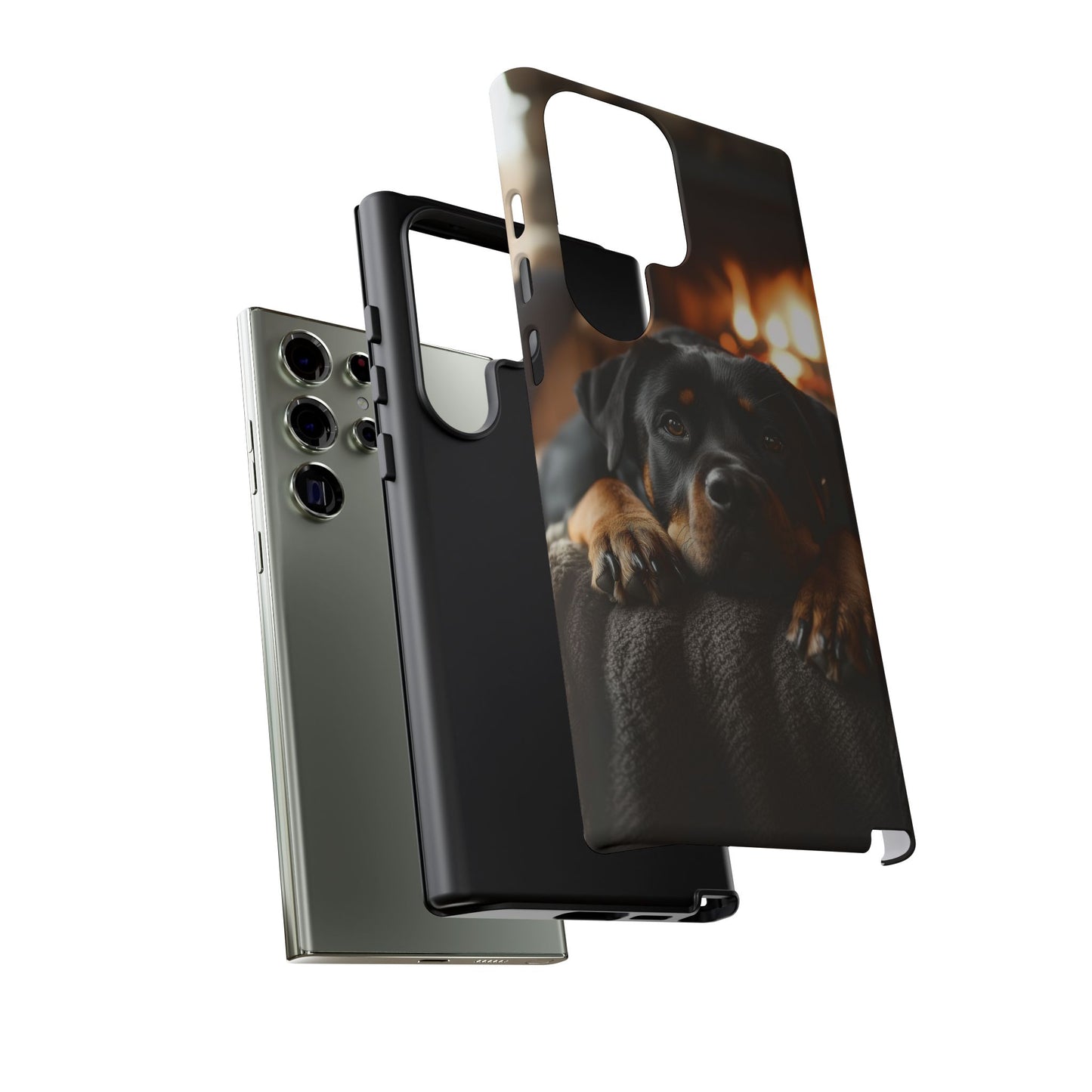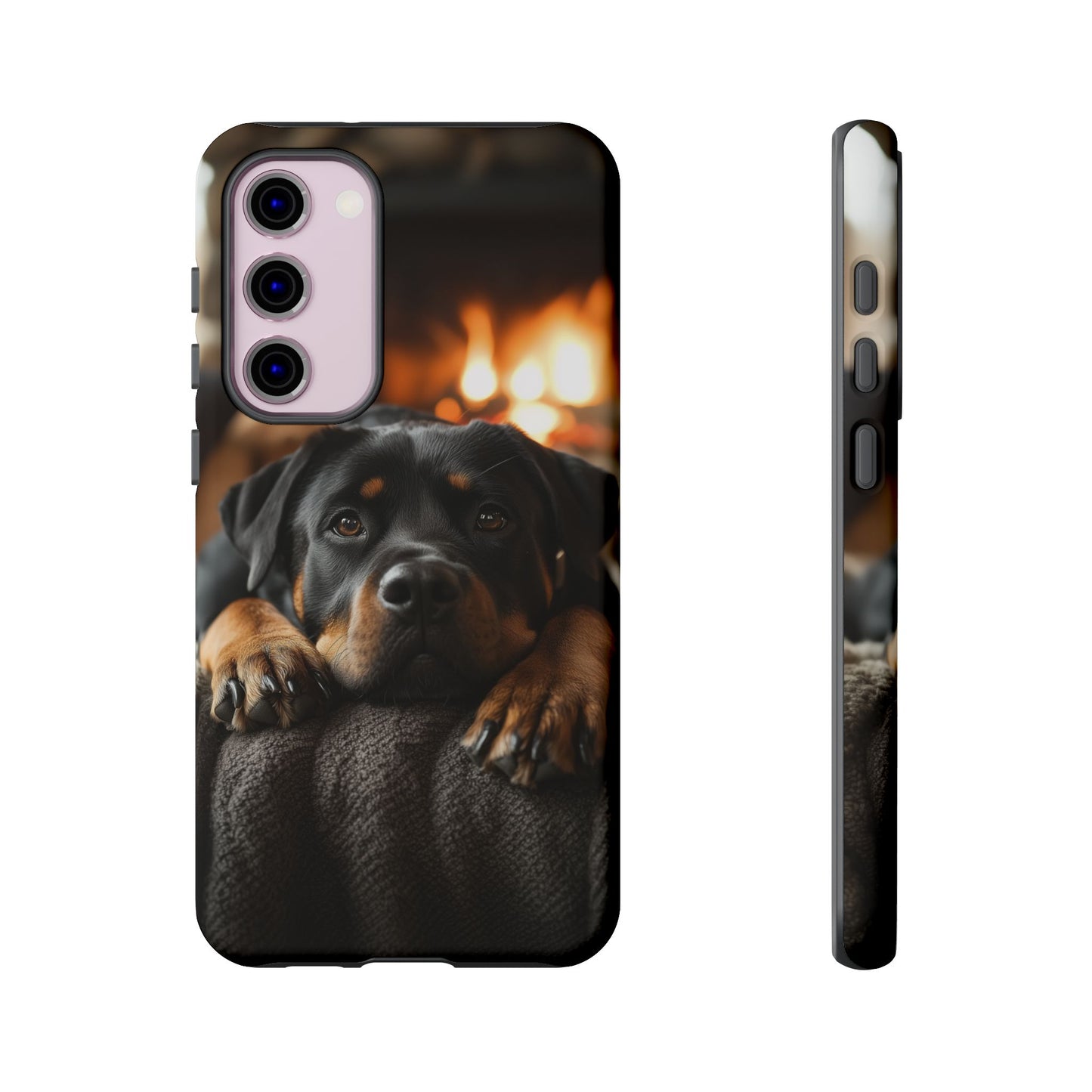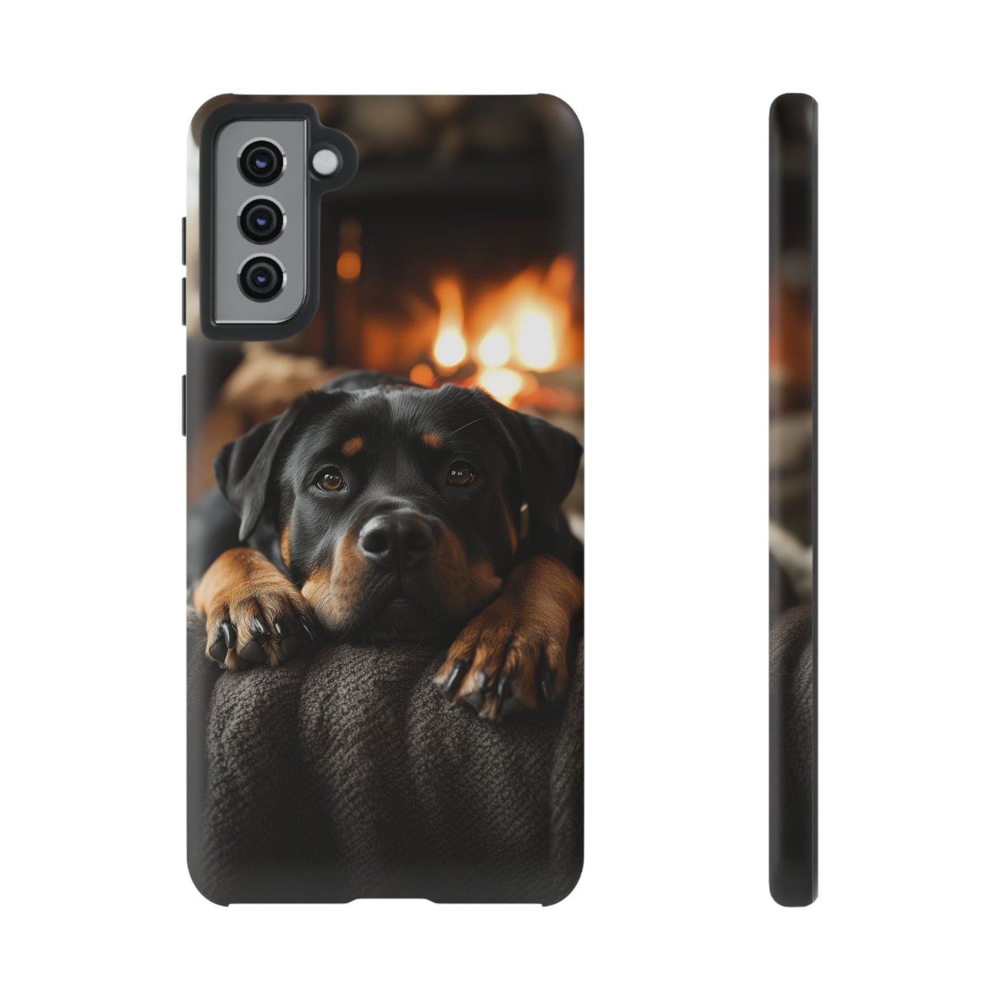 Wrap your Samsung Galaxy in warmth and charm with this Cozy Rottweiler Case. Featuring a heartwarming image of a Rottweiler lounging by a glowing fireplace, this case is perfect for dog lovers who cherish cozy moments.
