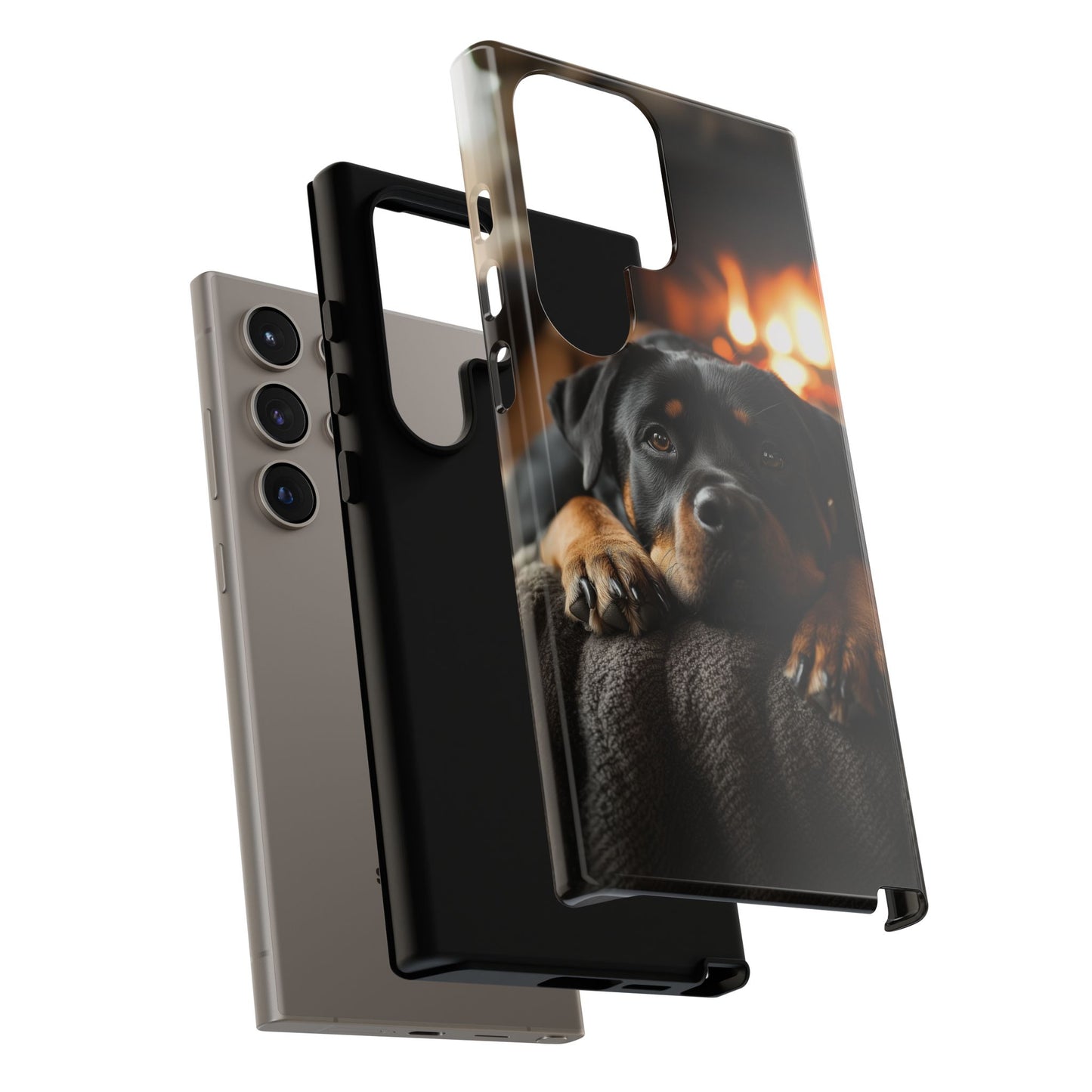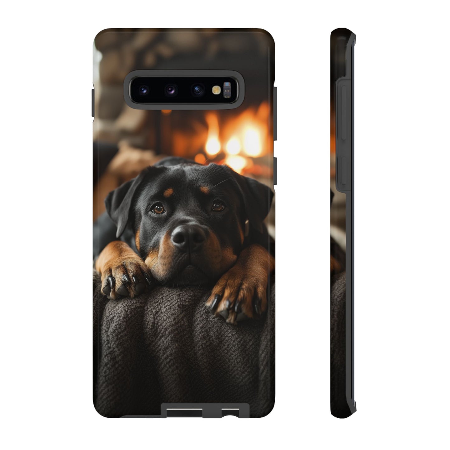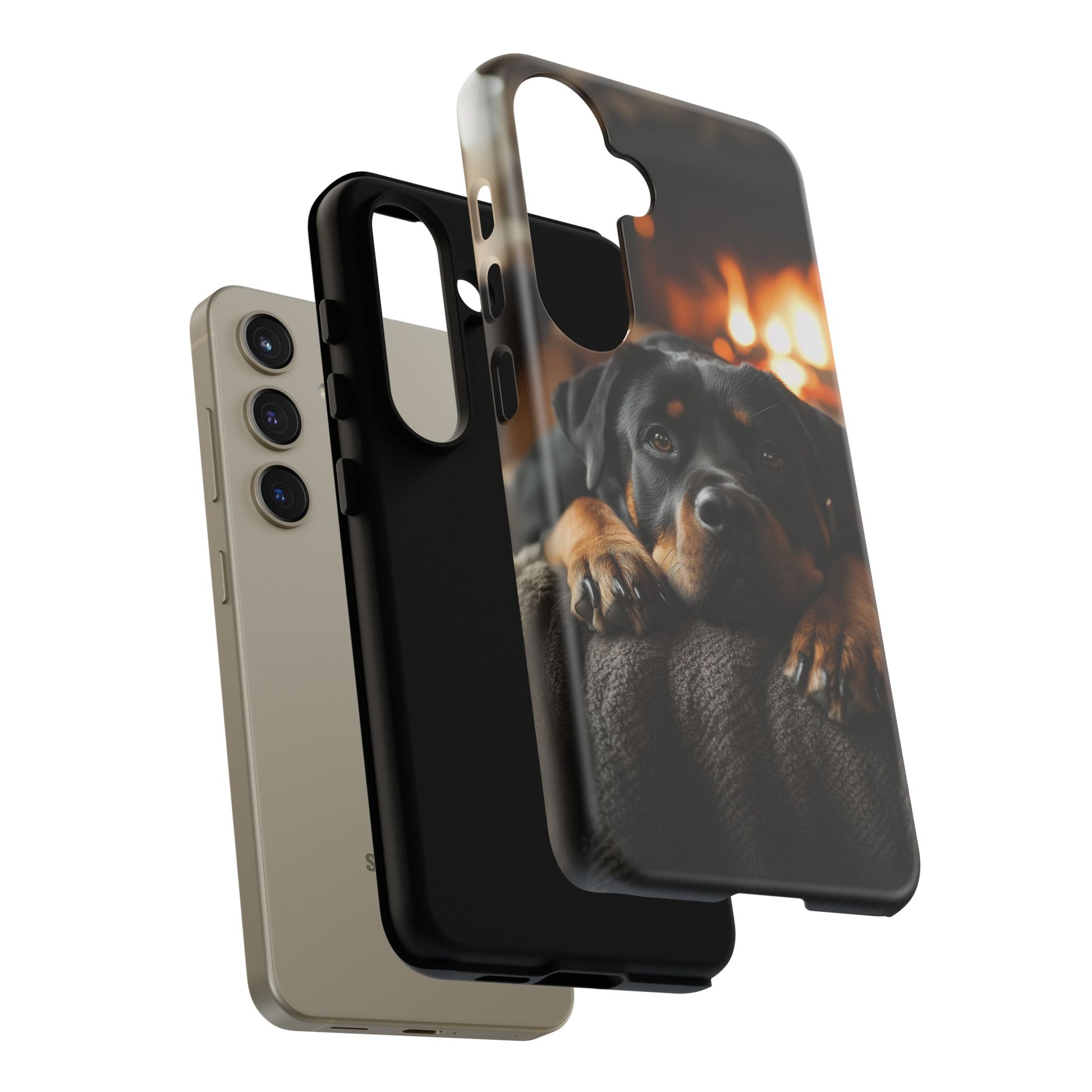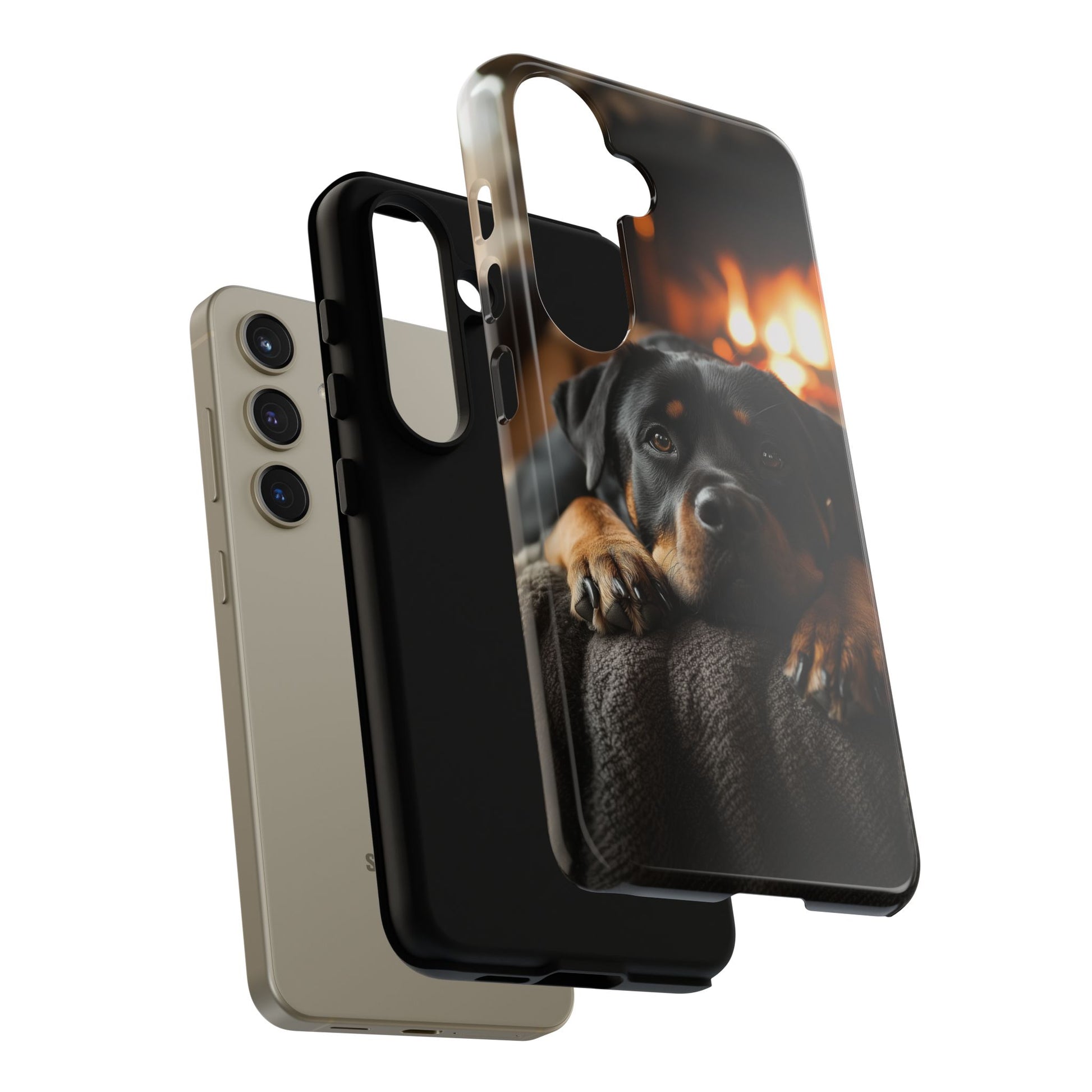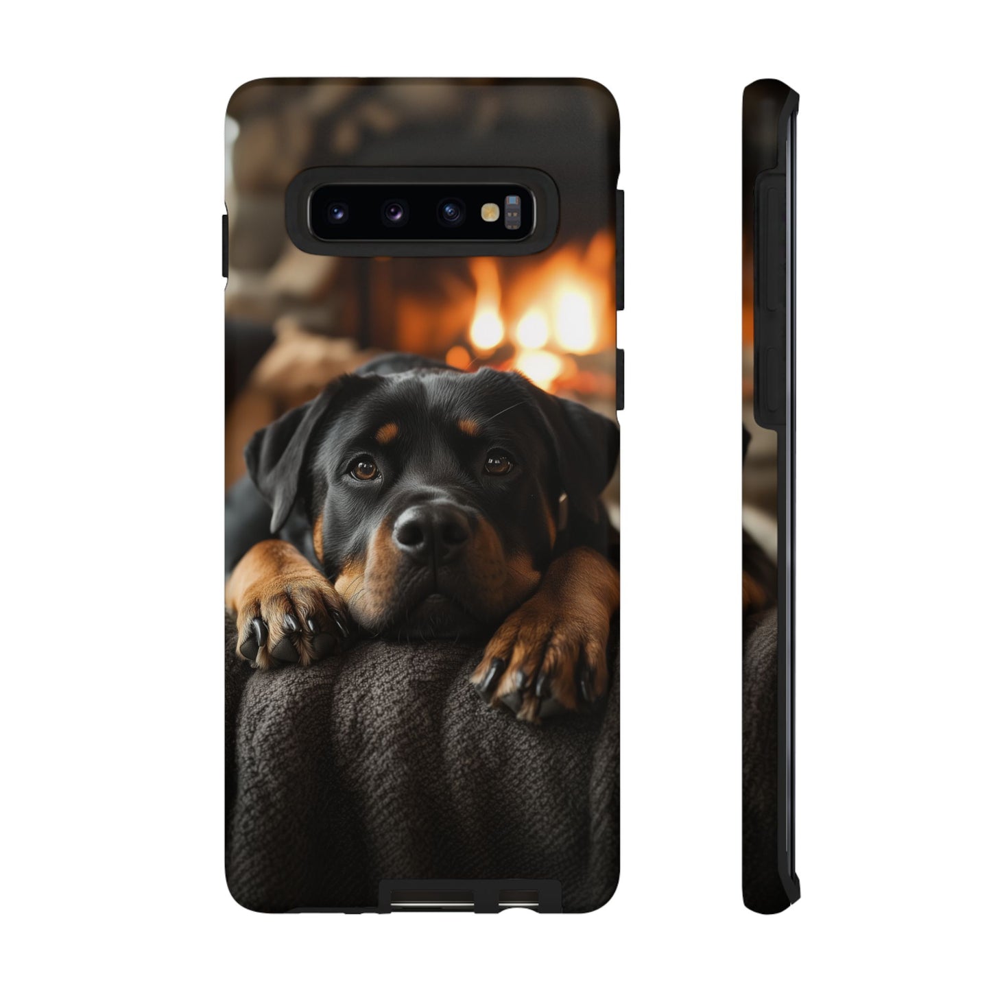 Wrap your Samsung Galaxy in warmth and charm with this Cozy Rottweiler Case. Featuring a heartwarming image of a Rottweiler lounging by a glowing fireplace, this case is perfect for dog lovers who cherish cozy moments.