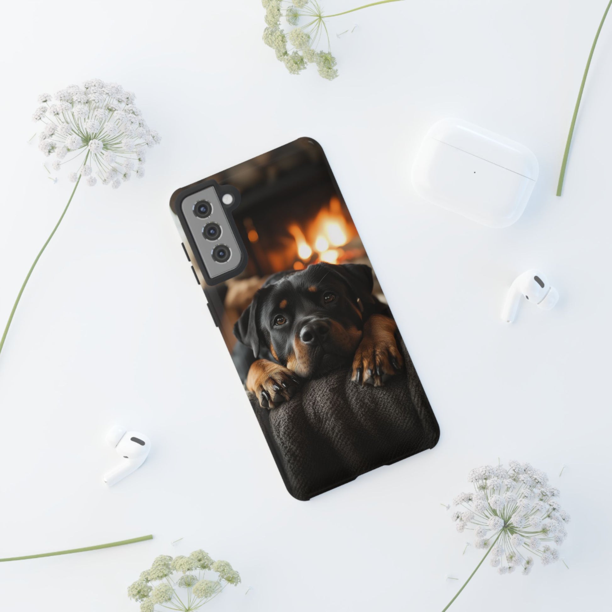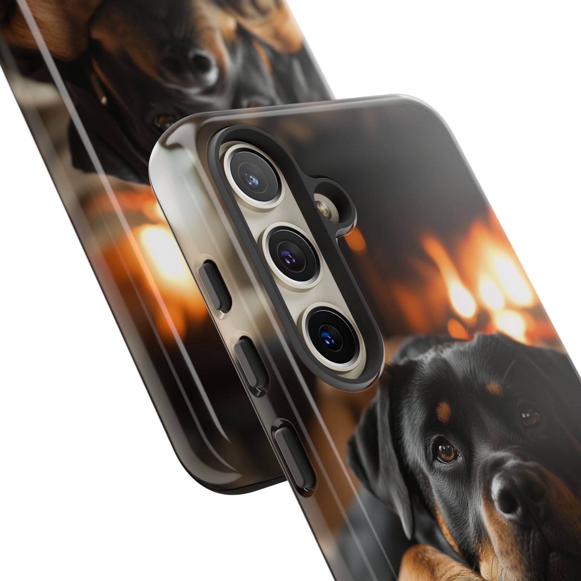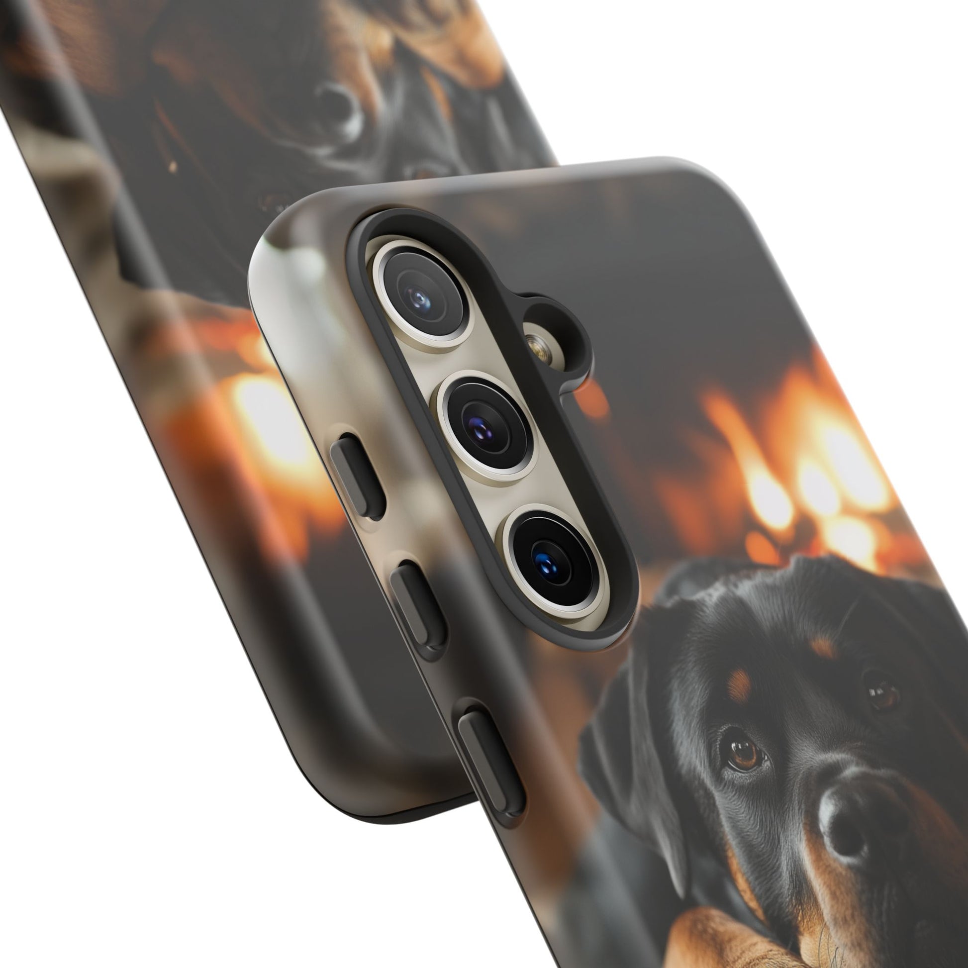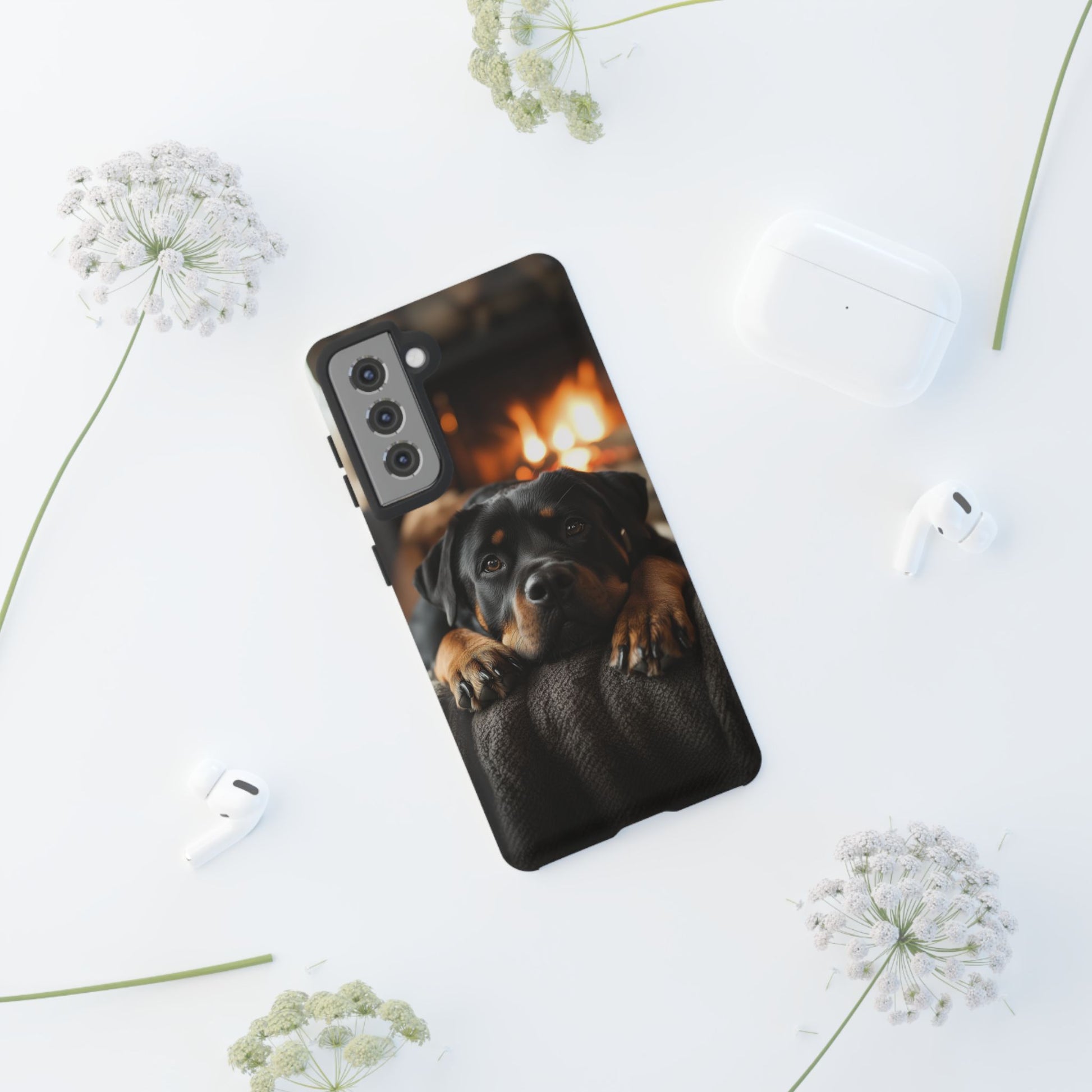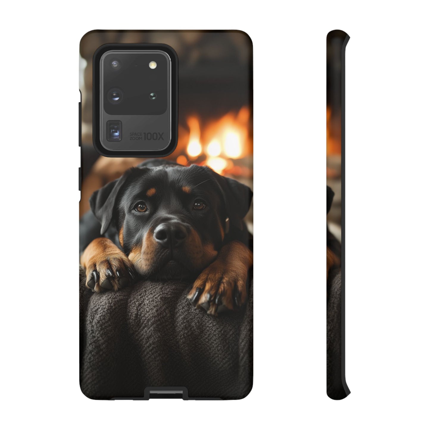Wrap your Samsung Galaxy in warmth and charm with this Cozy Rottweiler Case. Featuring a heartwarming image of a Rottweiler lounging by a glowing fireplace, this case is perfect for dog lovers who cherish cozy moments.