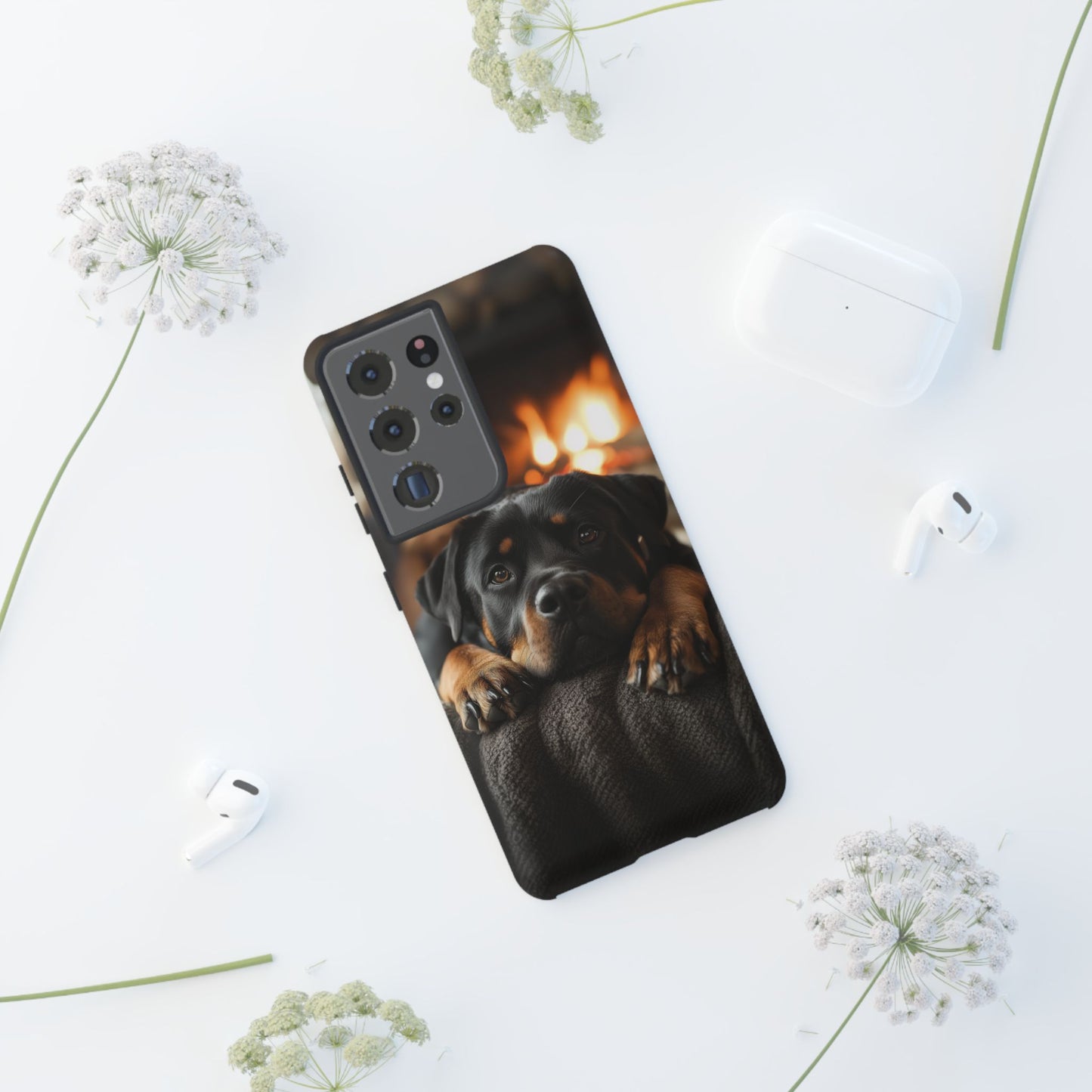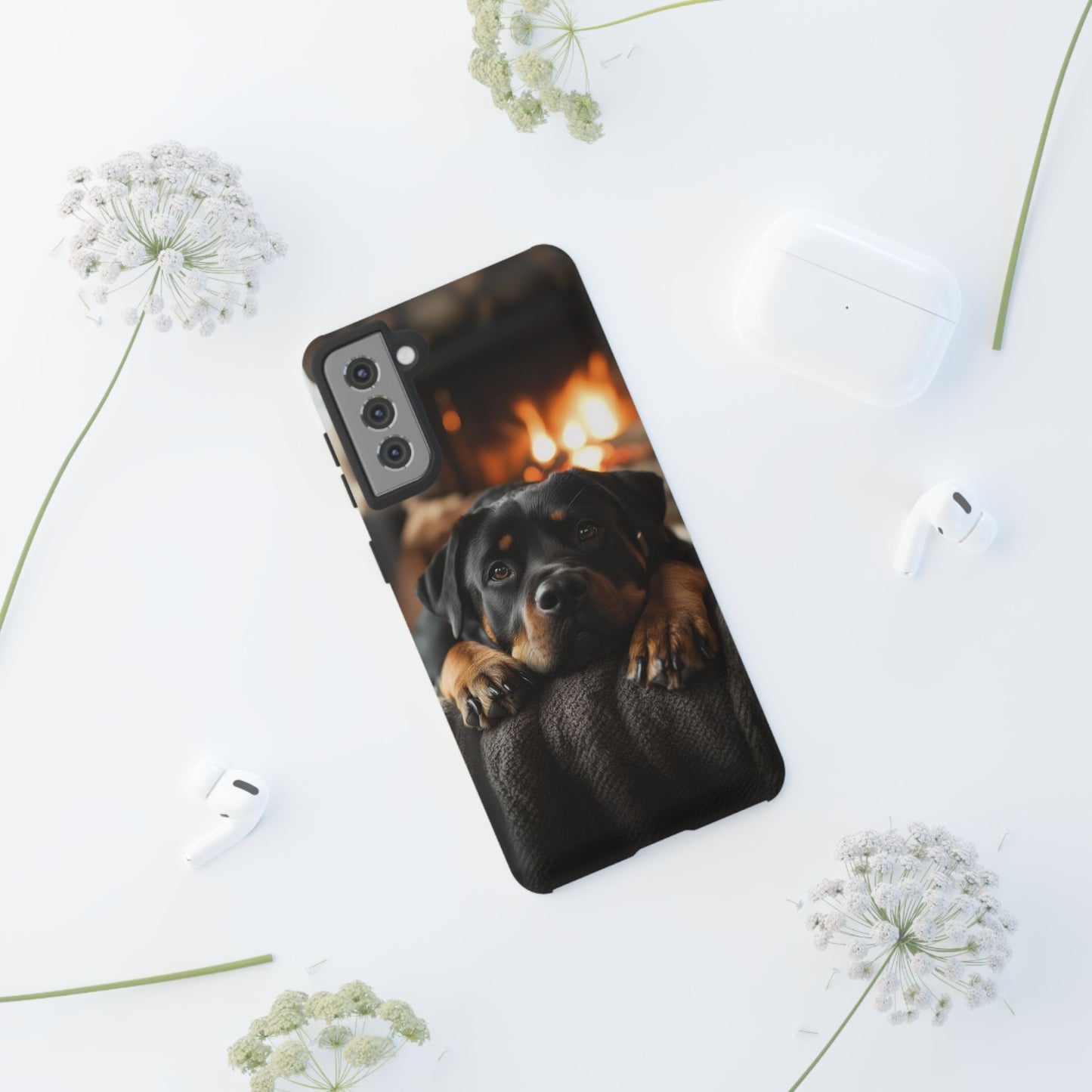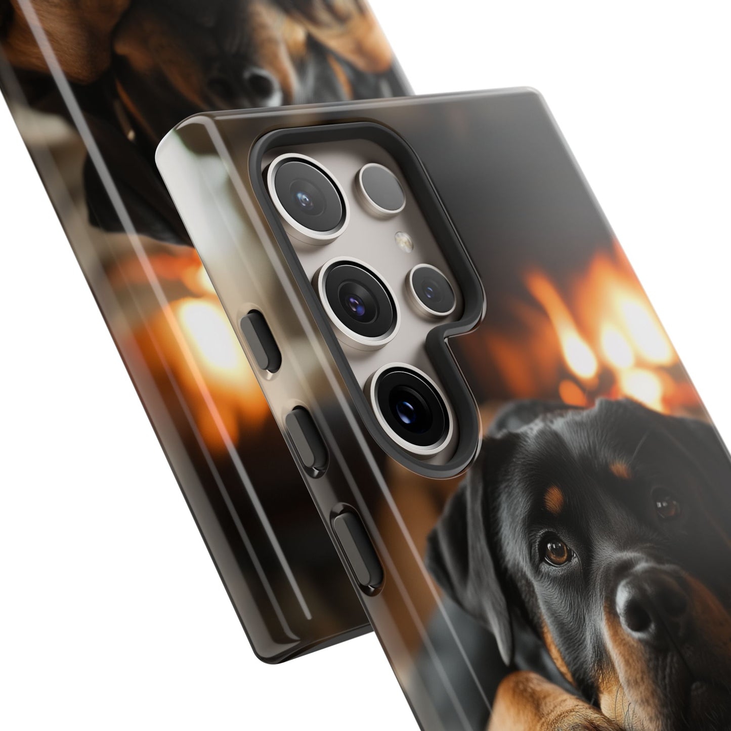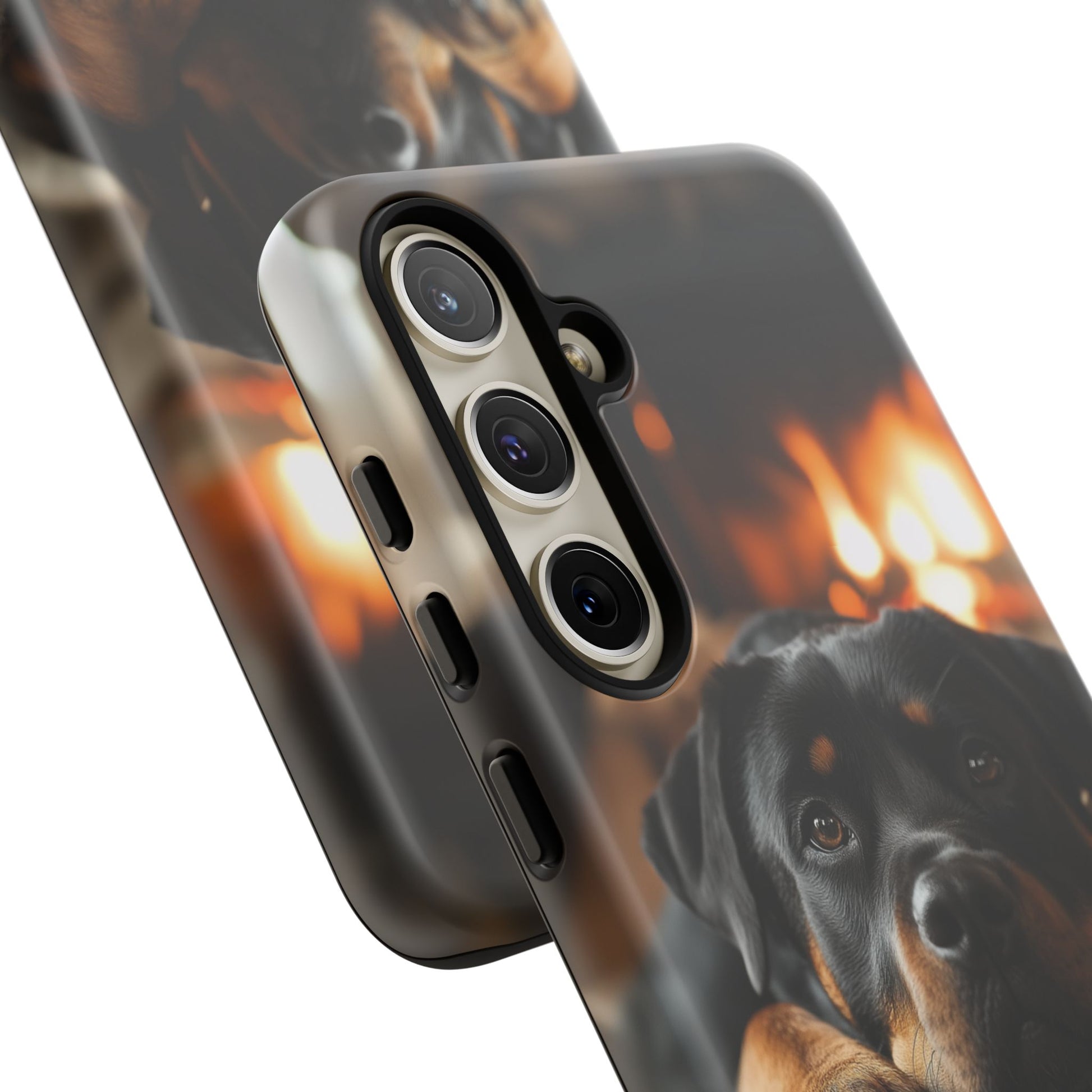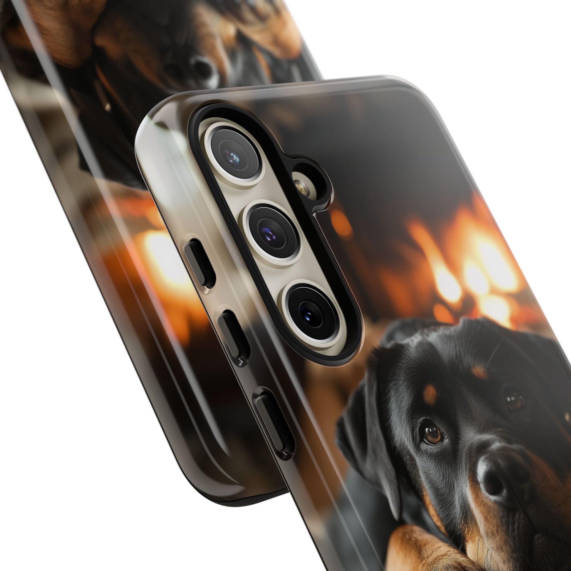 Wrap your Samsung Galaxy in warmth and charm with this Cozy Rottweiler Case. Featuring a heartwarming image of a Rottweiler lounging by a glowing fireplace, this case is perfect for dog lovers who cherish cozy moments.