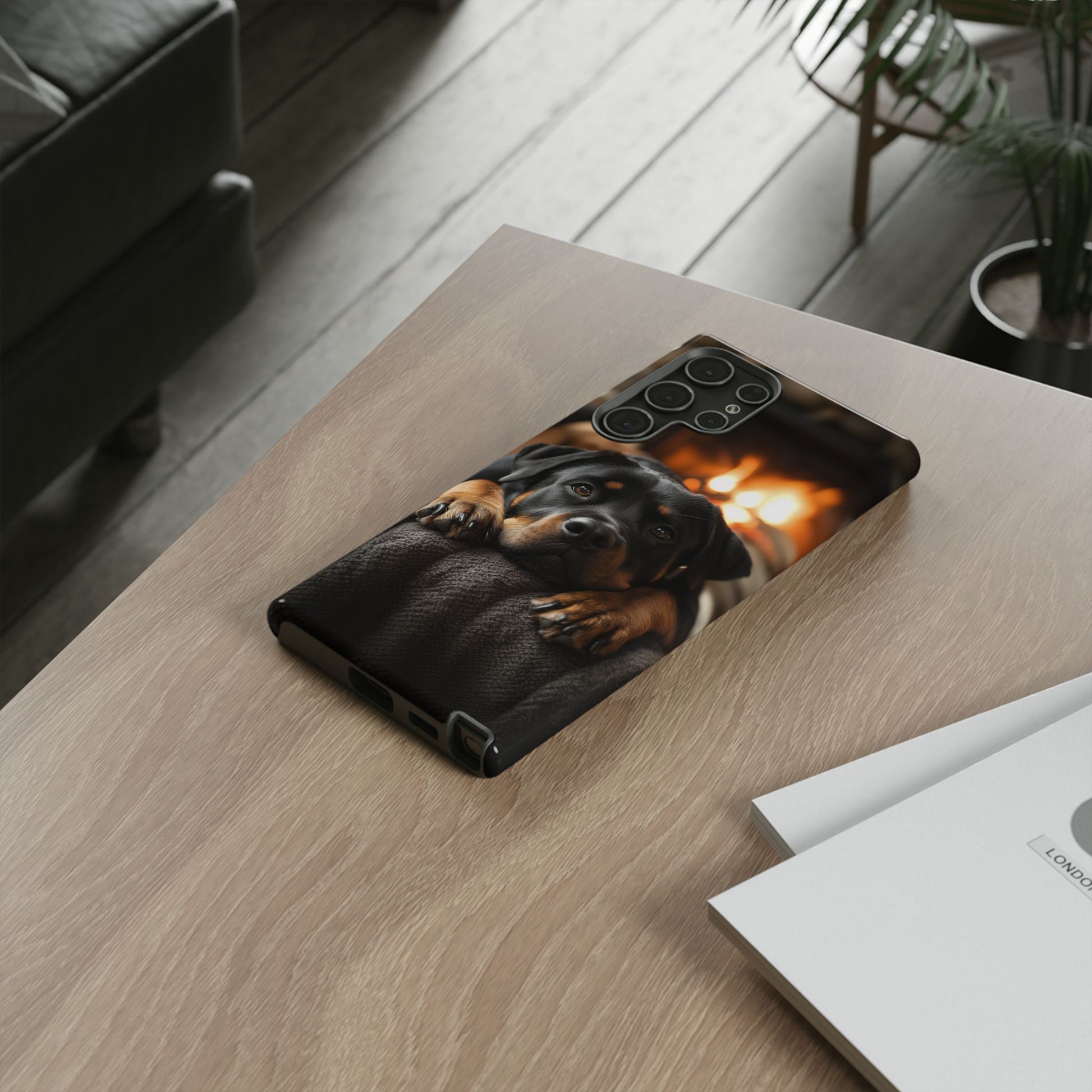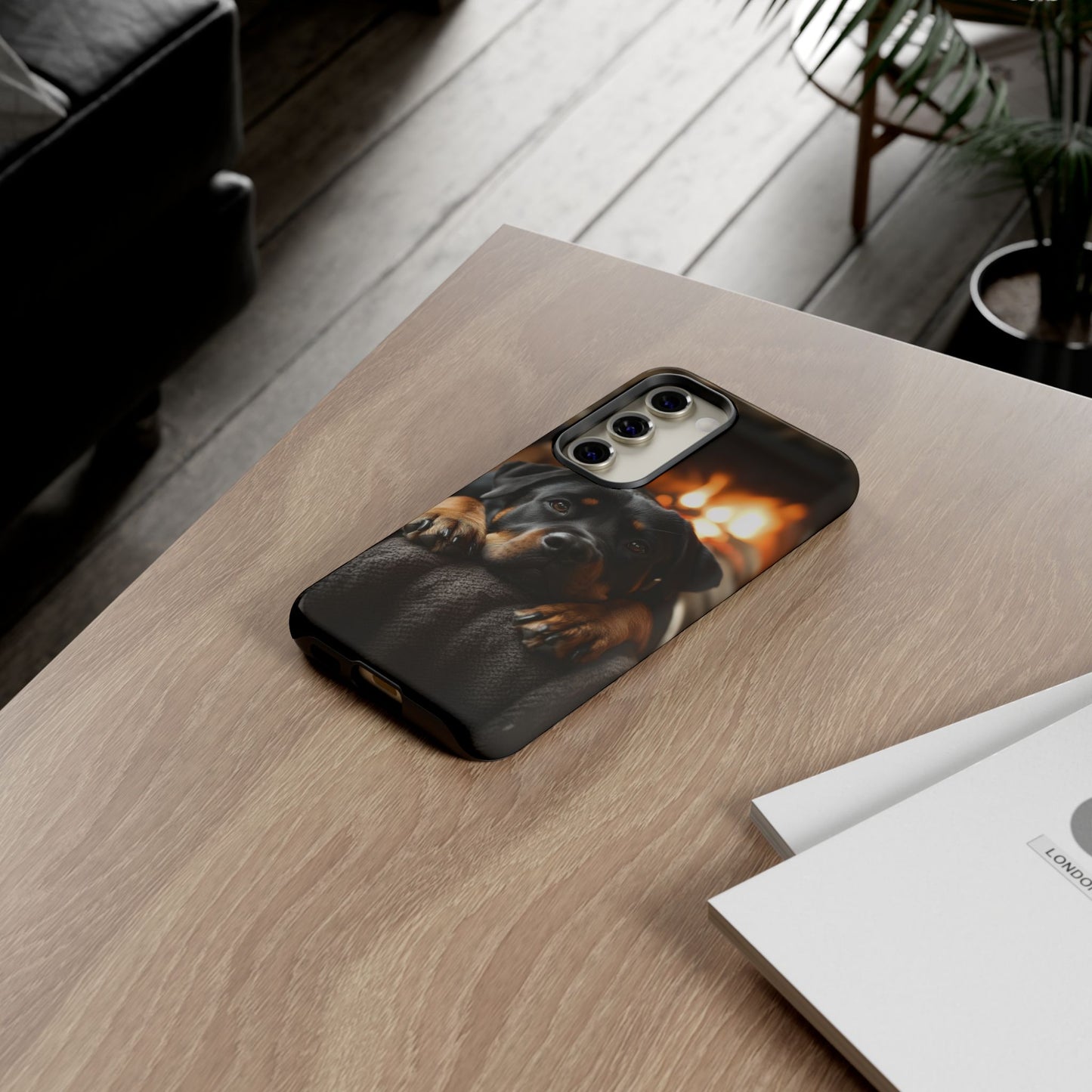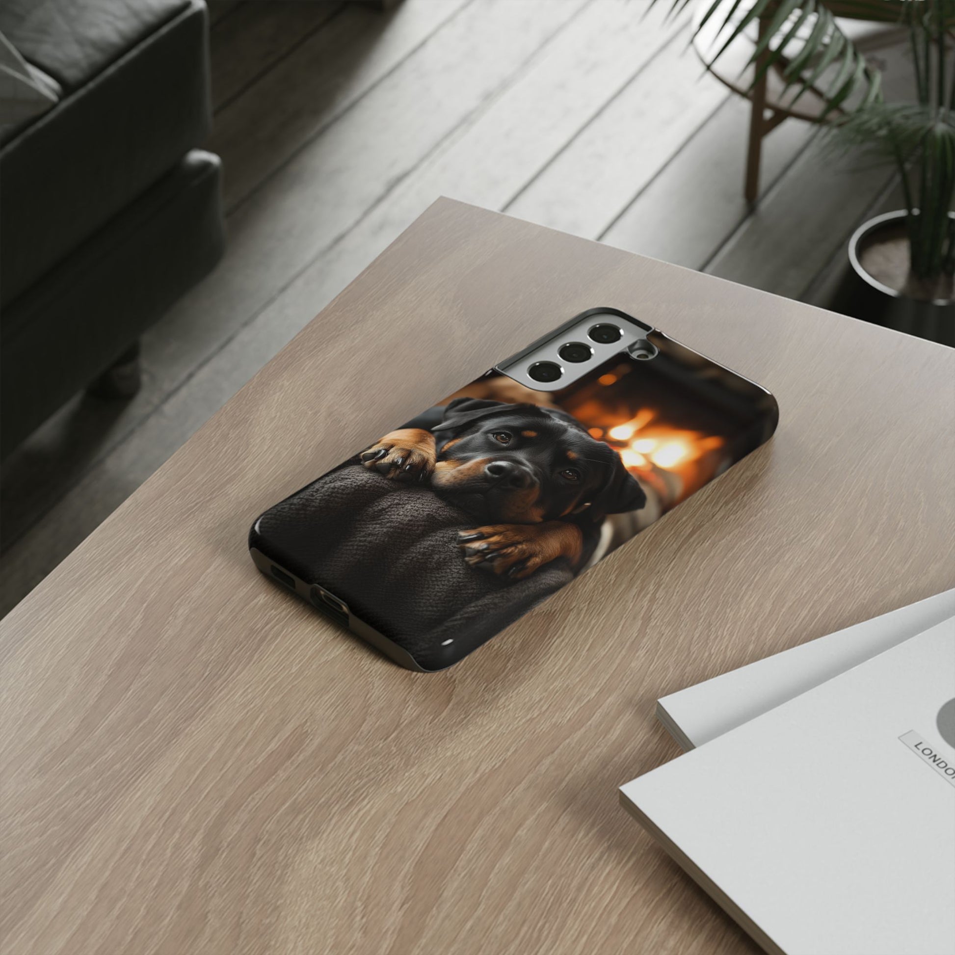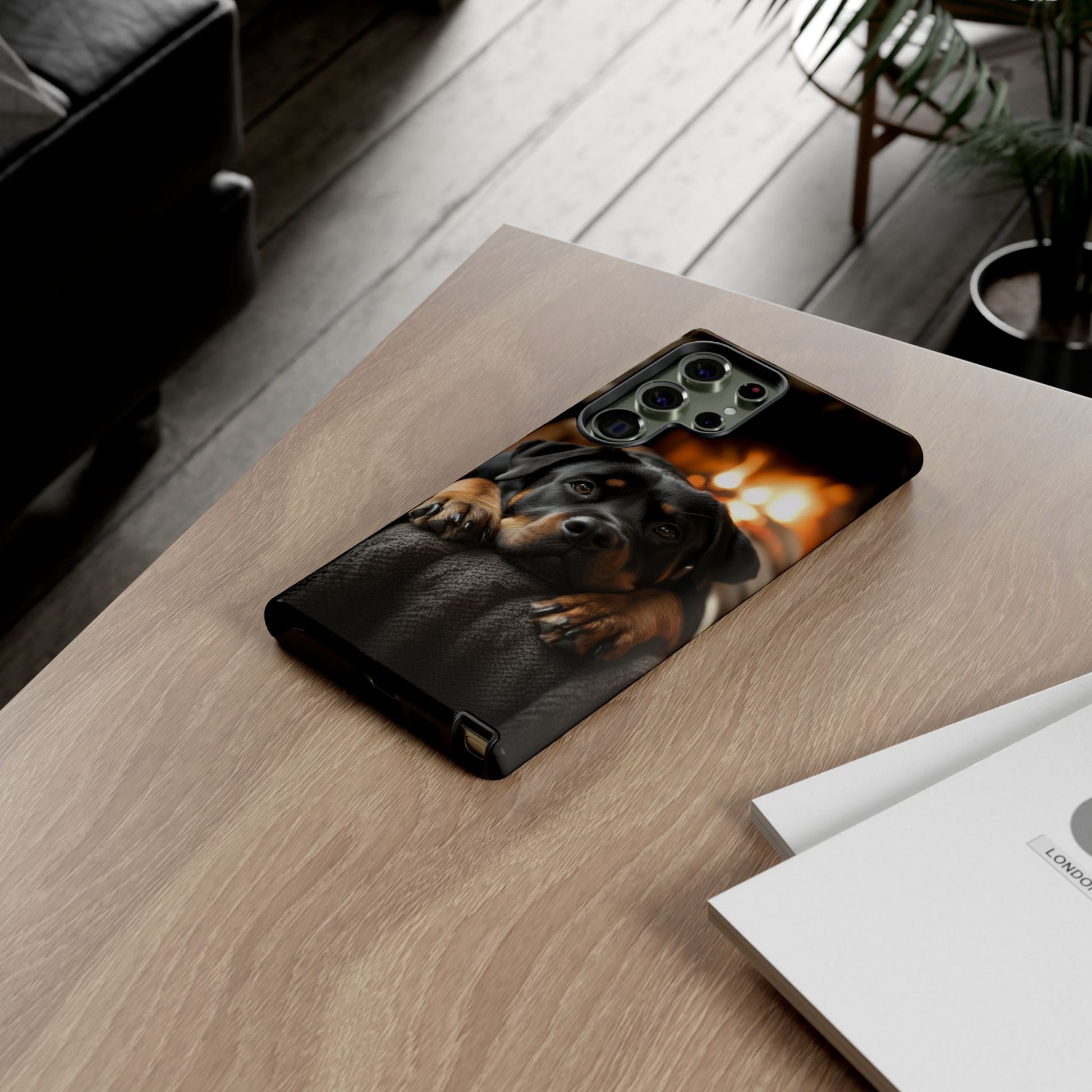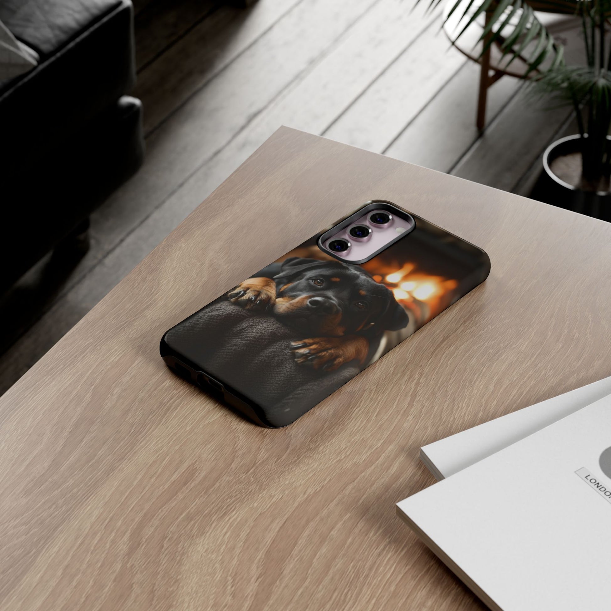 Wrap your Samsung Galaxy in warmth and charm with this Cozy Rottweiler Case. Featuring a heartwarming image of a Rottweiler lounging by a glowing fireplace, this case is perfect for dog lovers who cherish cozy moments.