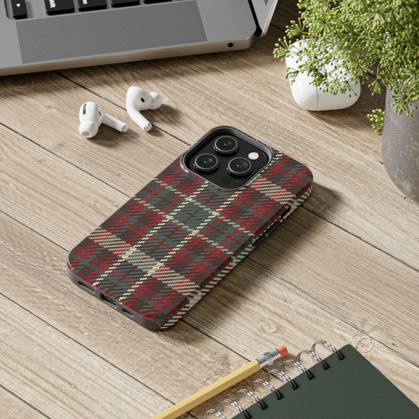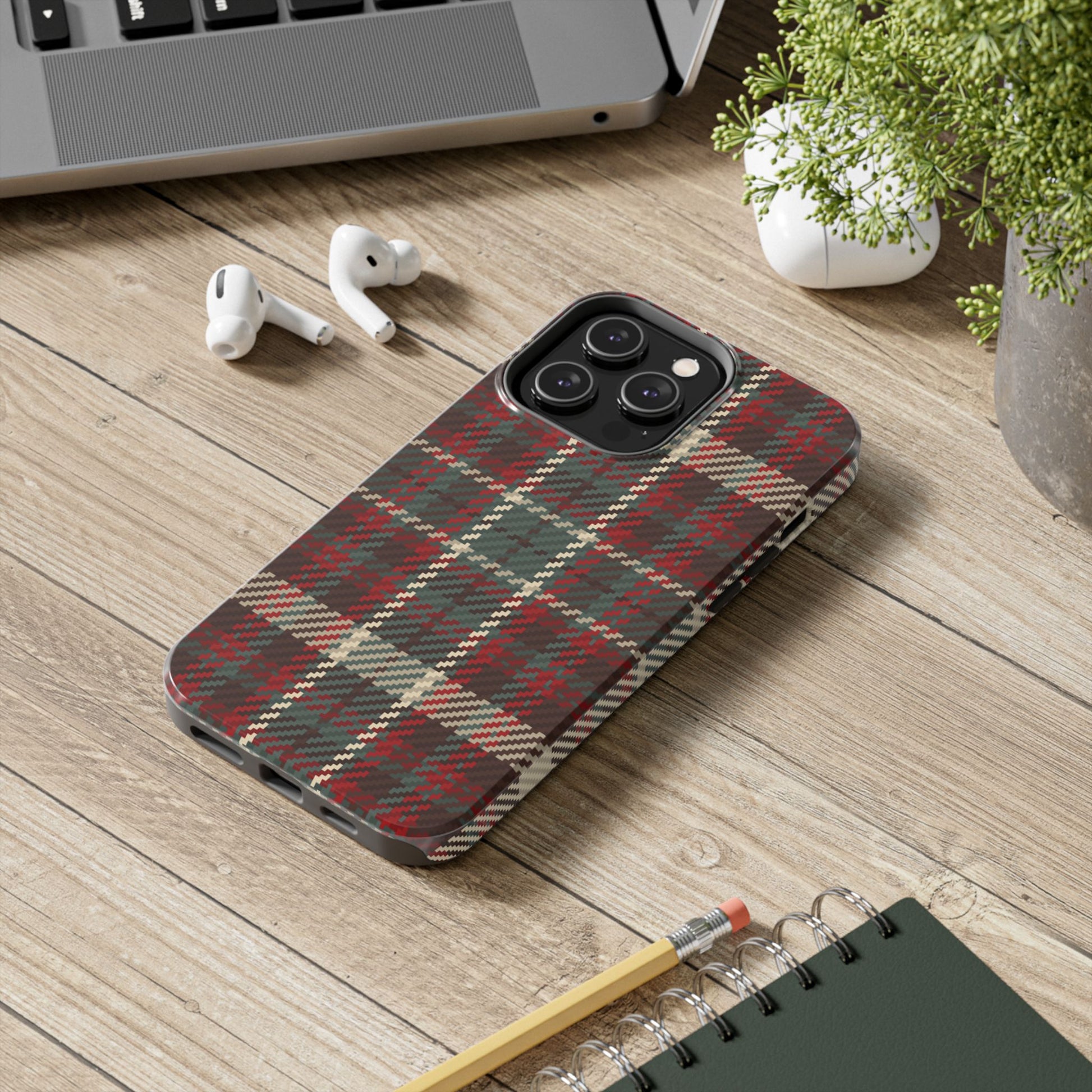Stay warm and stylish this season with our Cozy Rustic Plaid iPhone Case. Featuring a classic plaid pattern in rich tones of red, cream, and deep teal, this design brings a touch of cabin-inspired charm to your daily look. Perfect for lovers of rustic and vintage styles, this case not only loo...