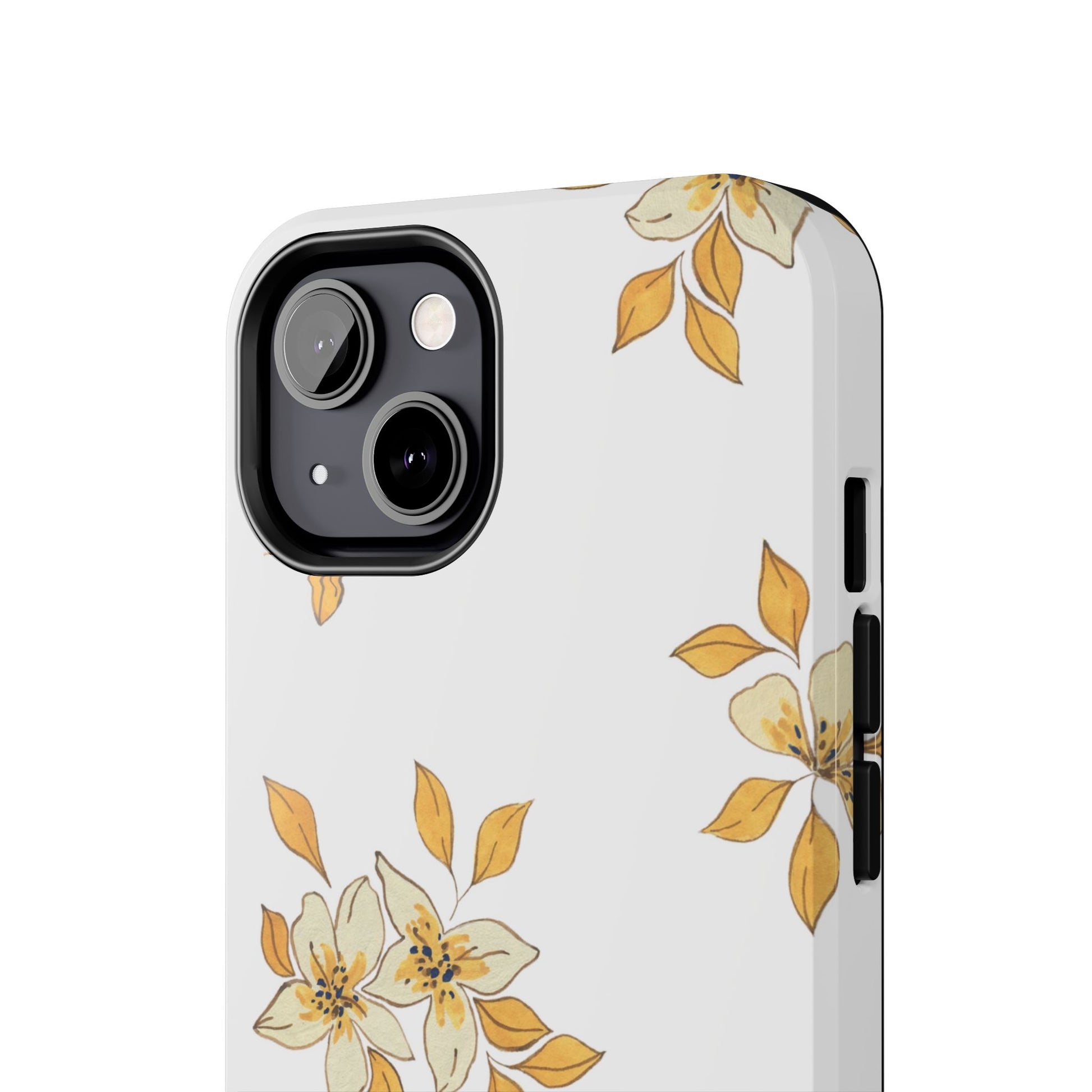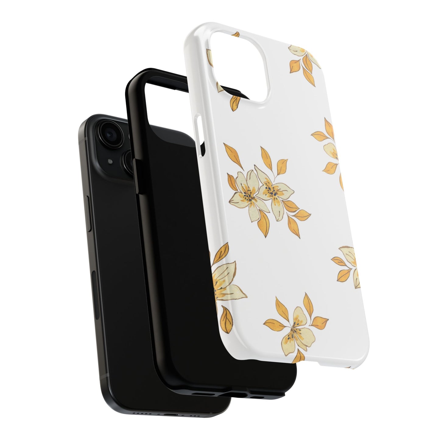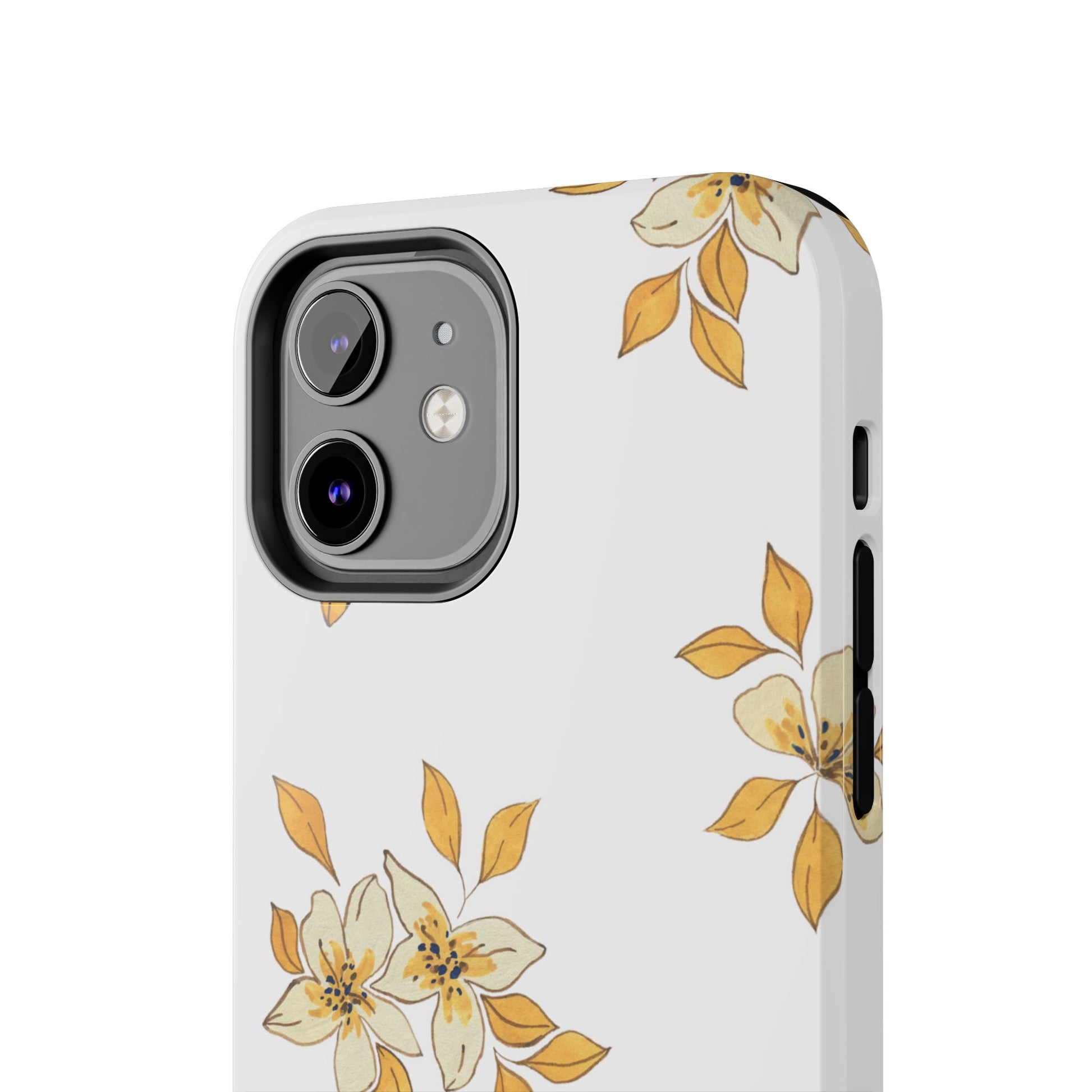 Keep it simple yet stylish with our Delicate Yellow Blossom iPhone Case, featuring soft watercolor-inspired yellow flowers with golden leaves on a clean white background. This minimalist design brings a touch of elegance and warmth to your phone, perfect for a classic yet feminine look. Built with a tough polycarbonate shell and shock-absorbing TPU liner, this case provides solid protection without adding bulk. The matte finish not only enhances the design but also ensures a comfortable grip, making it a chic addition to your accessories.