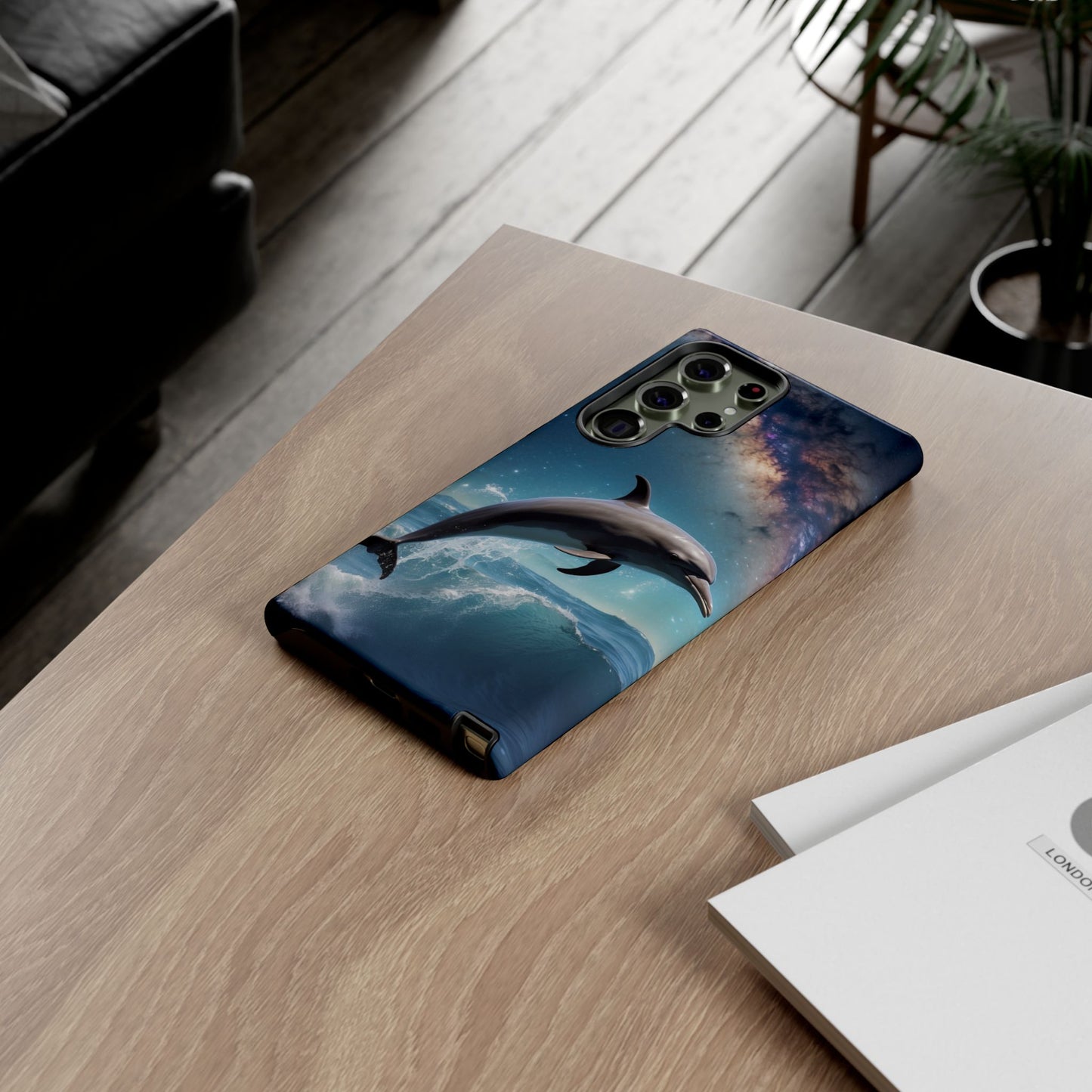 Make your Samsung Galaxy out of this world with the Dolphin Galaxy Splash Case! Featuring a magical design of a dolphin soaring through a stunning galactic scene of deep purples, glowing oranges, and cosmic blues, this case is a perfect balance of beauty and protection. Built tough to guard yo...