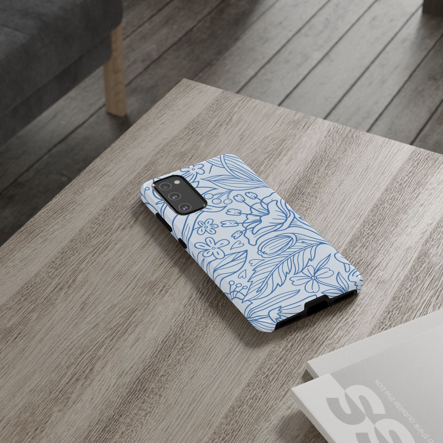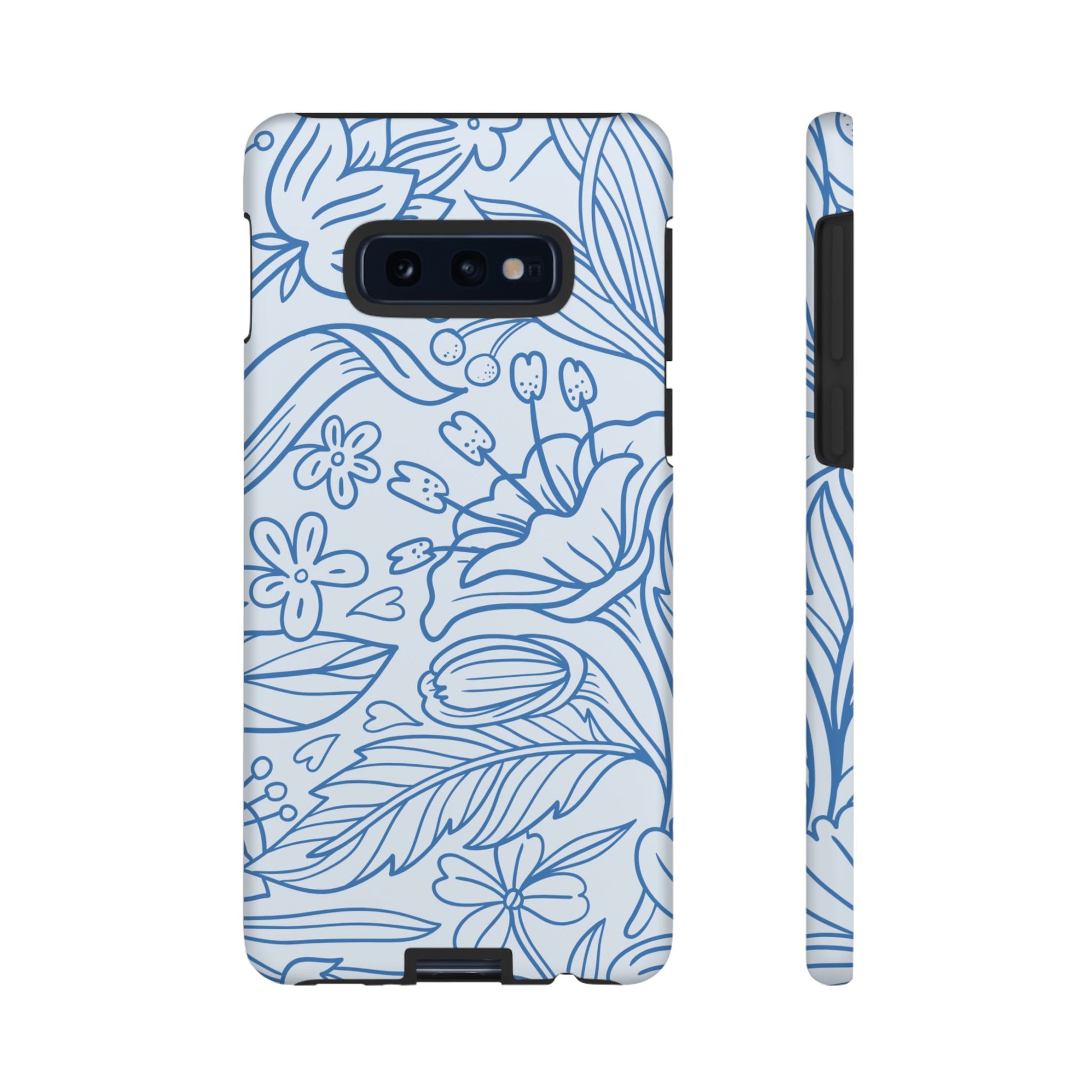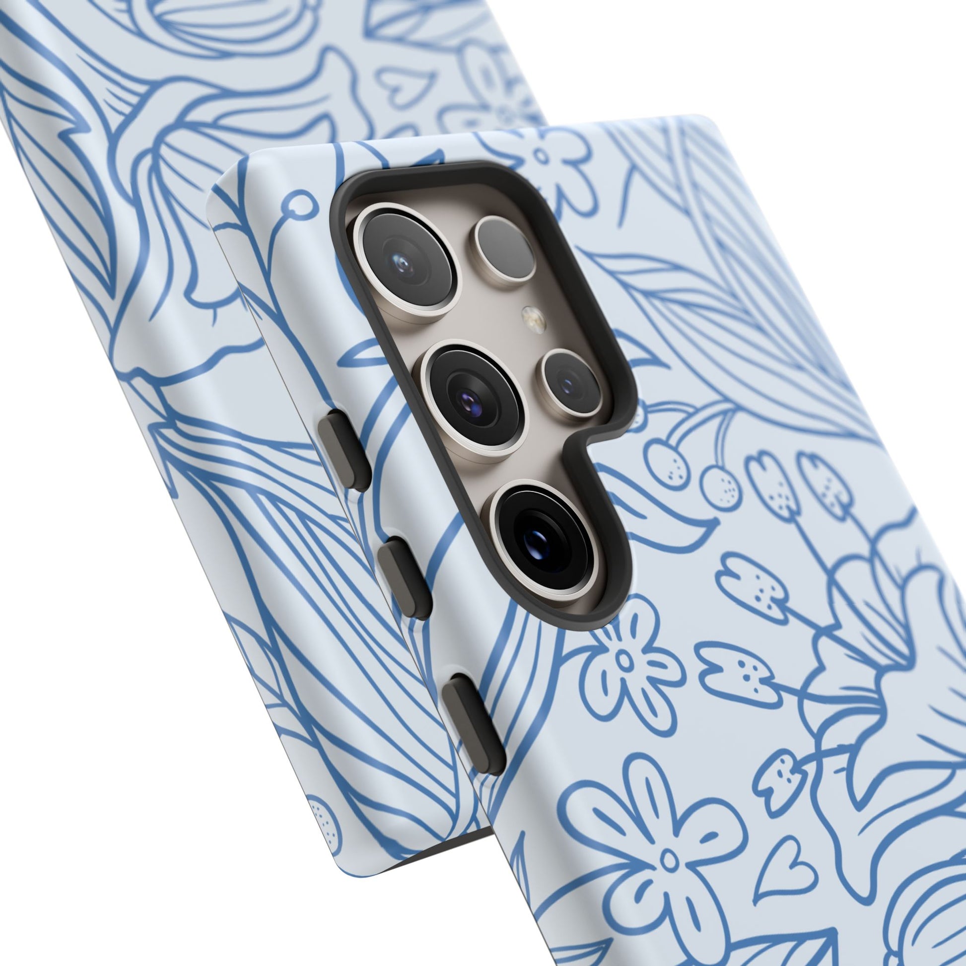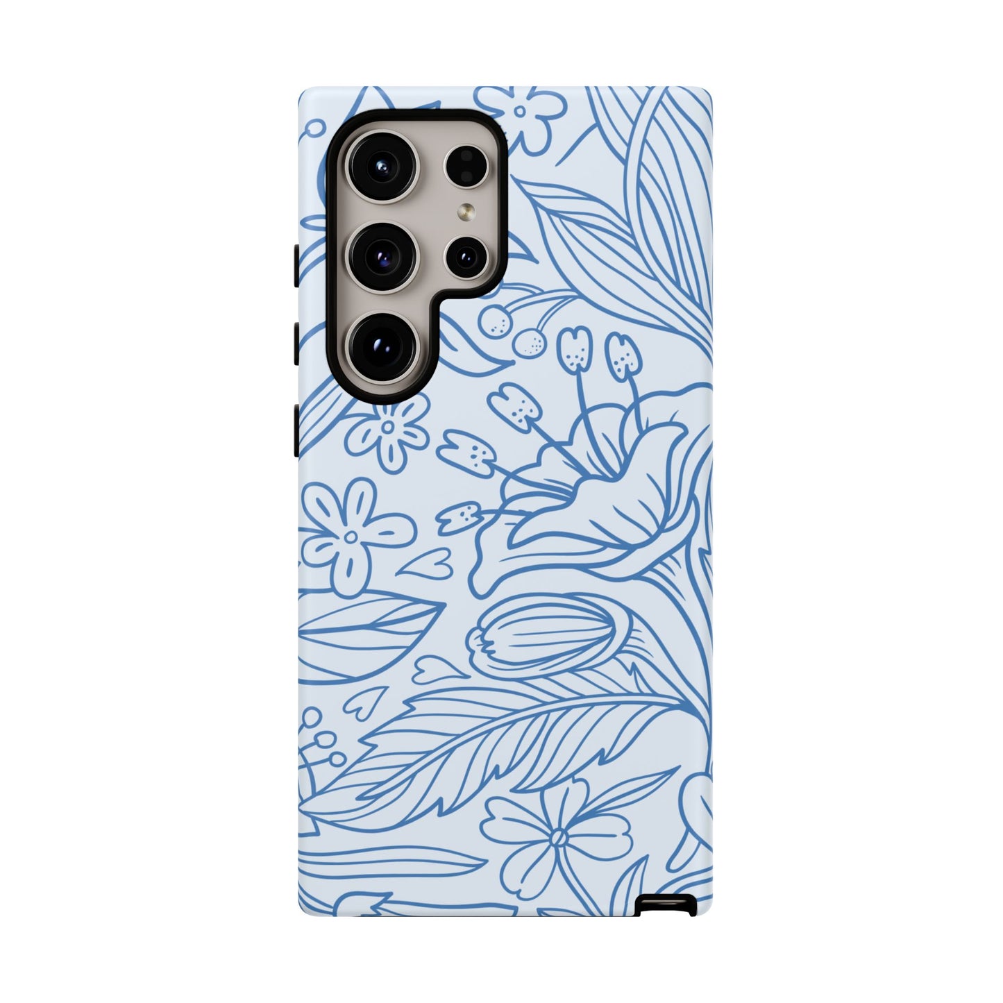 Dusty Blue Floral Line Art Tough Samsung Galaxy Case – Minimalist Botanical Design with Dual-Layer Protection