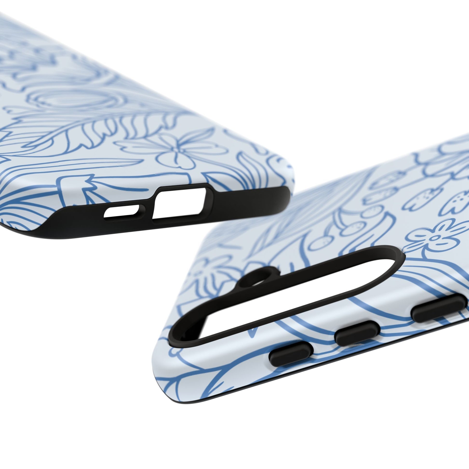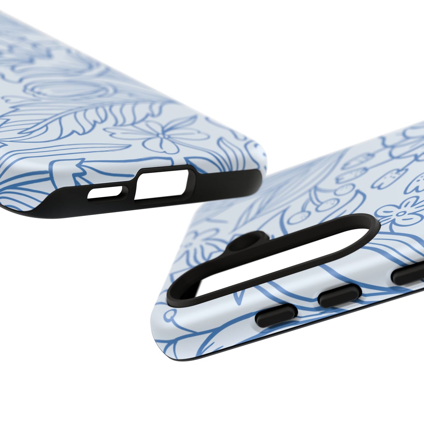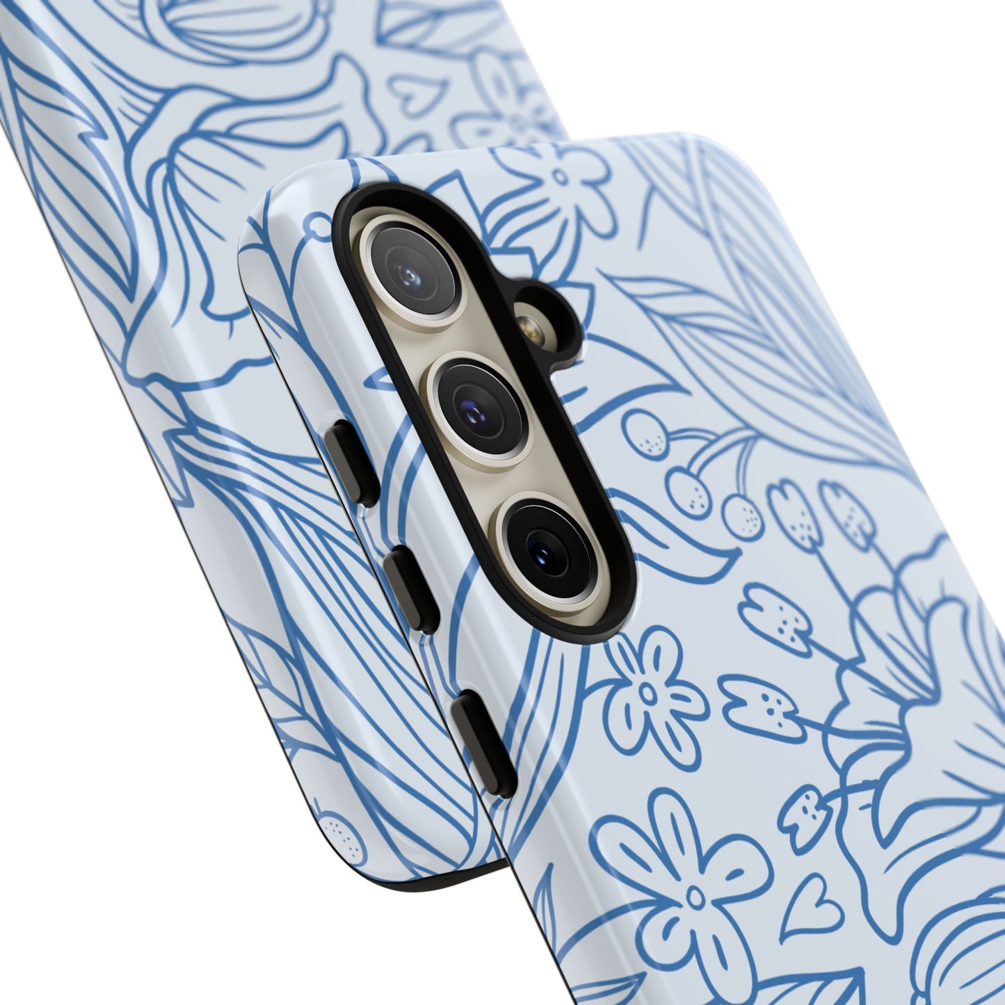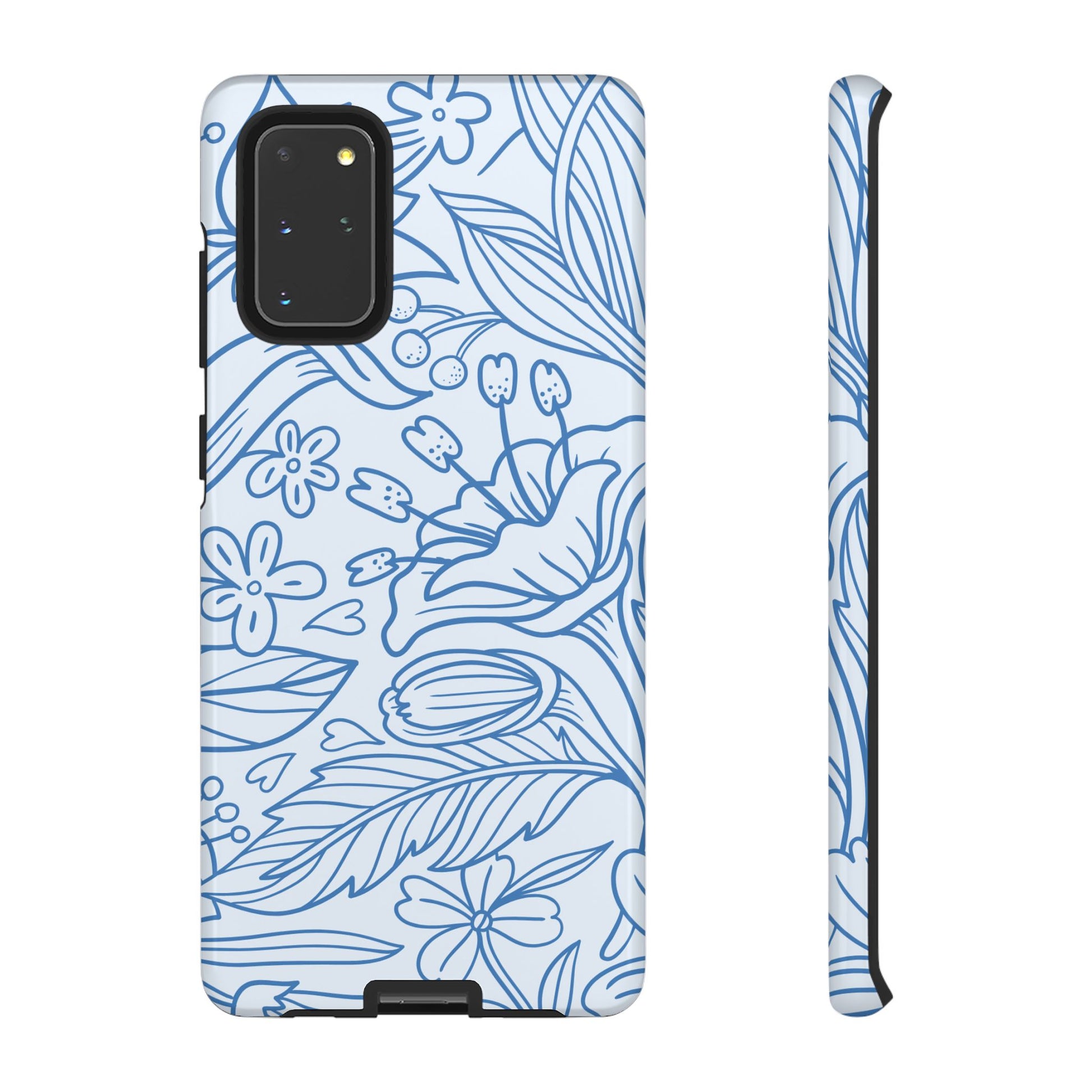 Dusty Blue Floral Line Art Tough Samsung Galaxy Case – Minimalist Botanical Design with Dual-Layer Protection