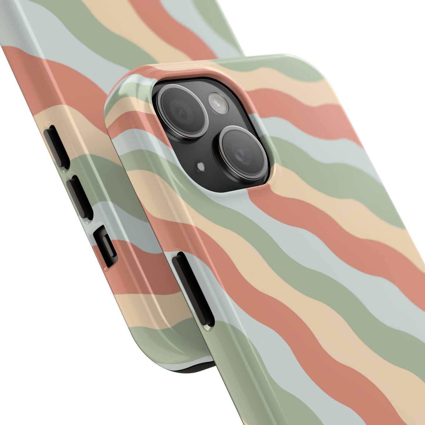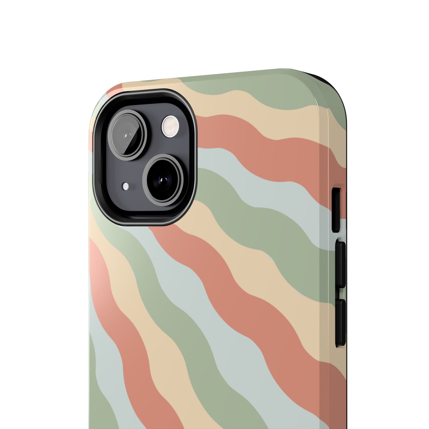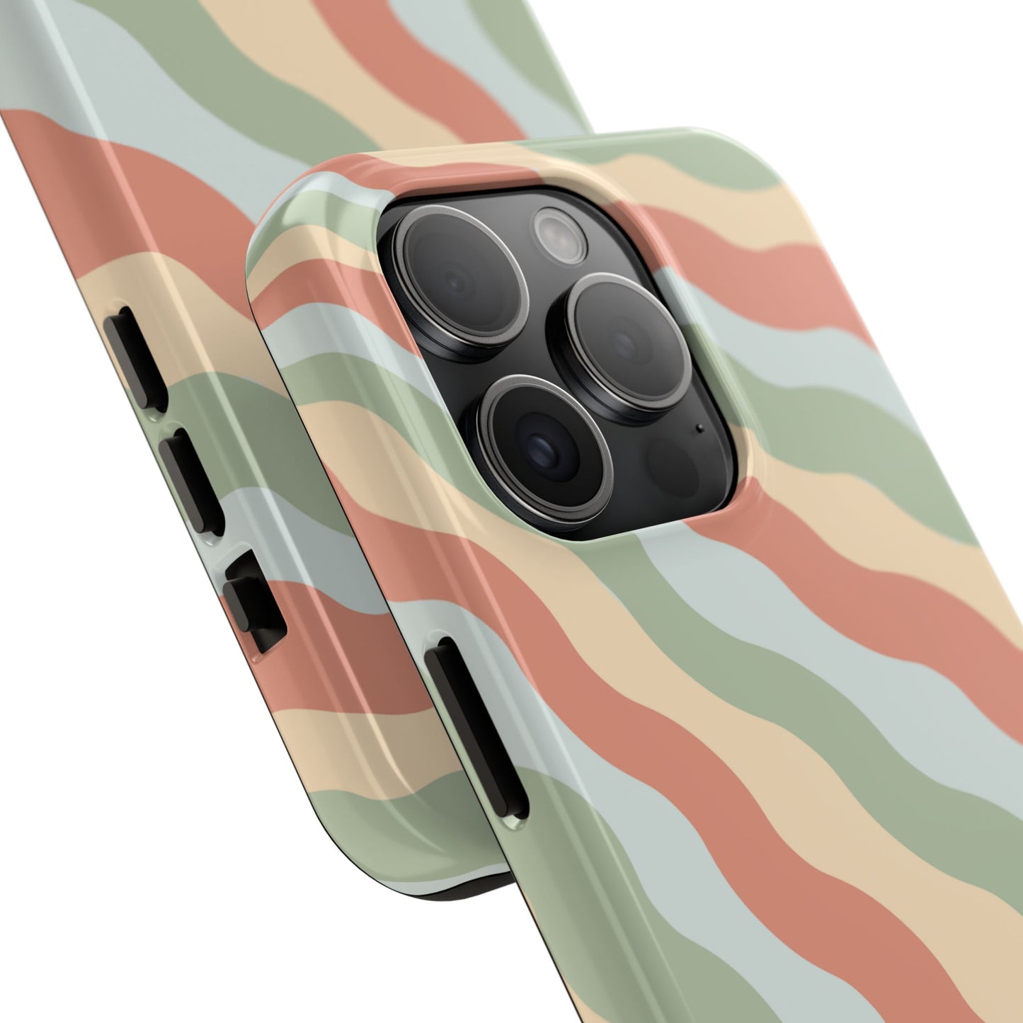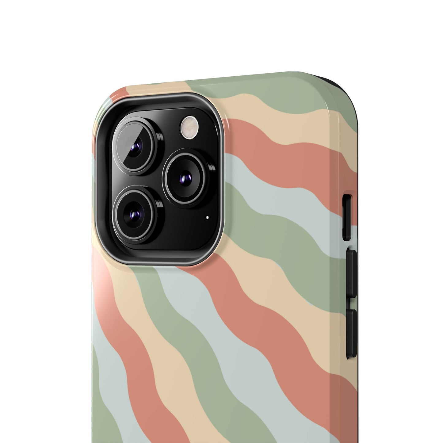 Earthy Retro Waves iPhone Case – 70s-Inspired Wavy Stripes in Soft Green, Cream, and Rust