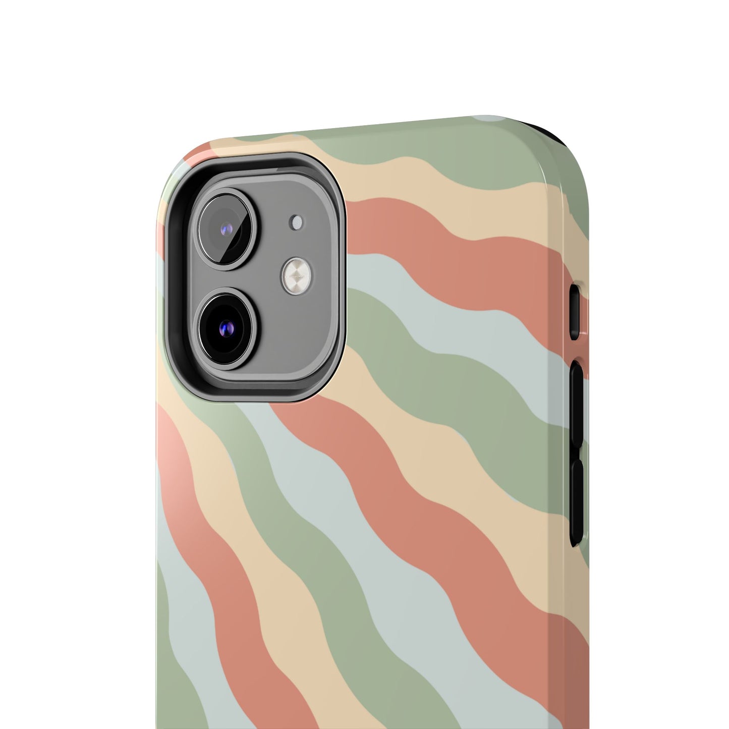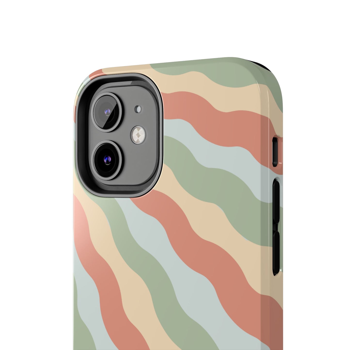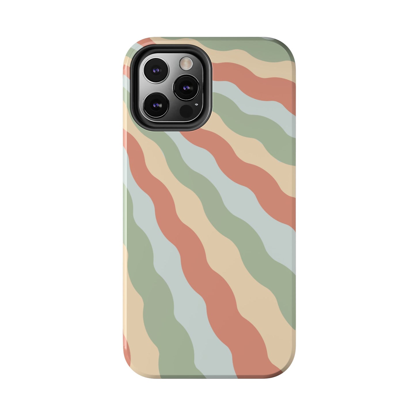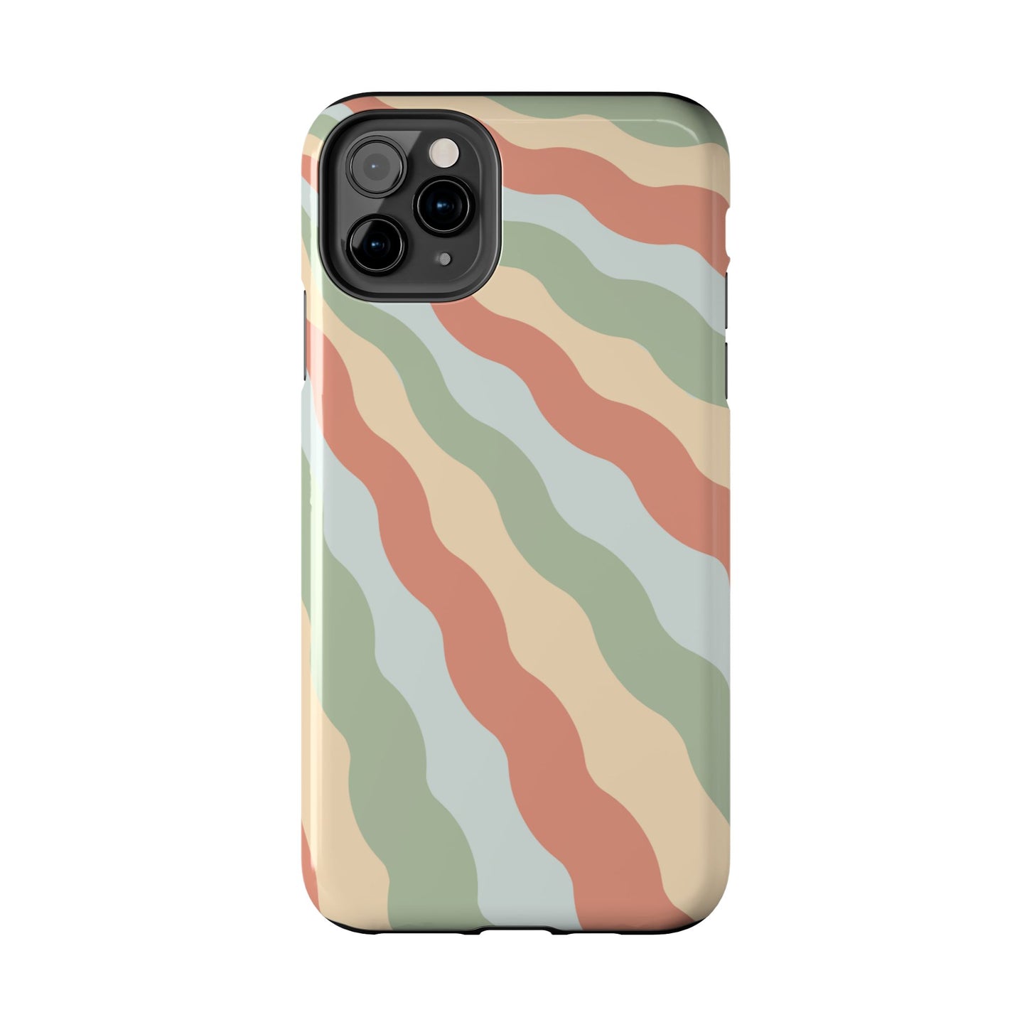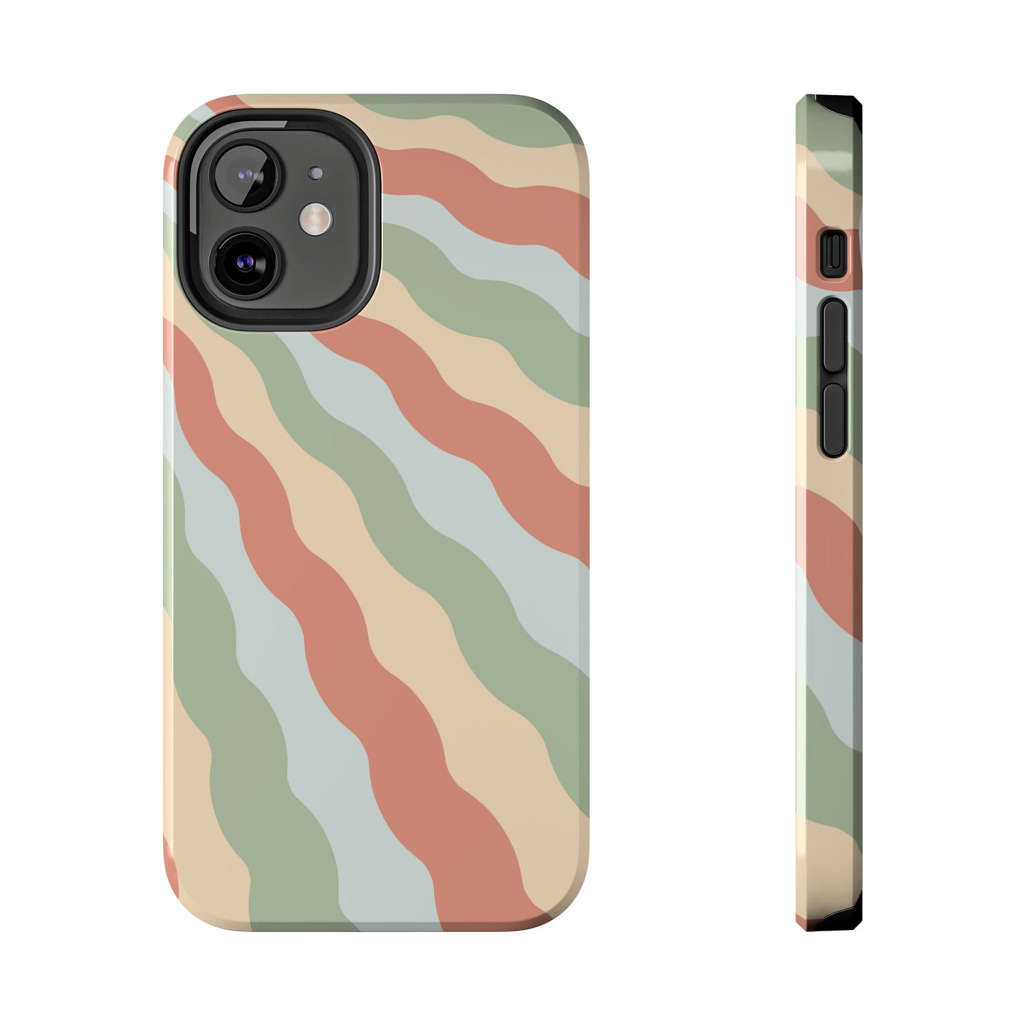 Earthy Retro Waves iPhone Case – 70s-Inspired Wavy Stripes in Soft Green, Cream, and Rust