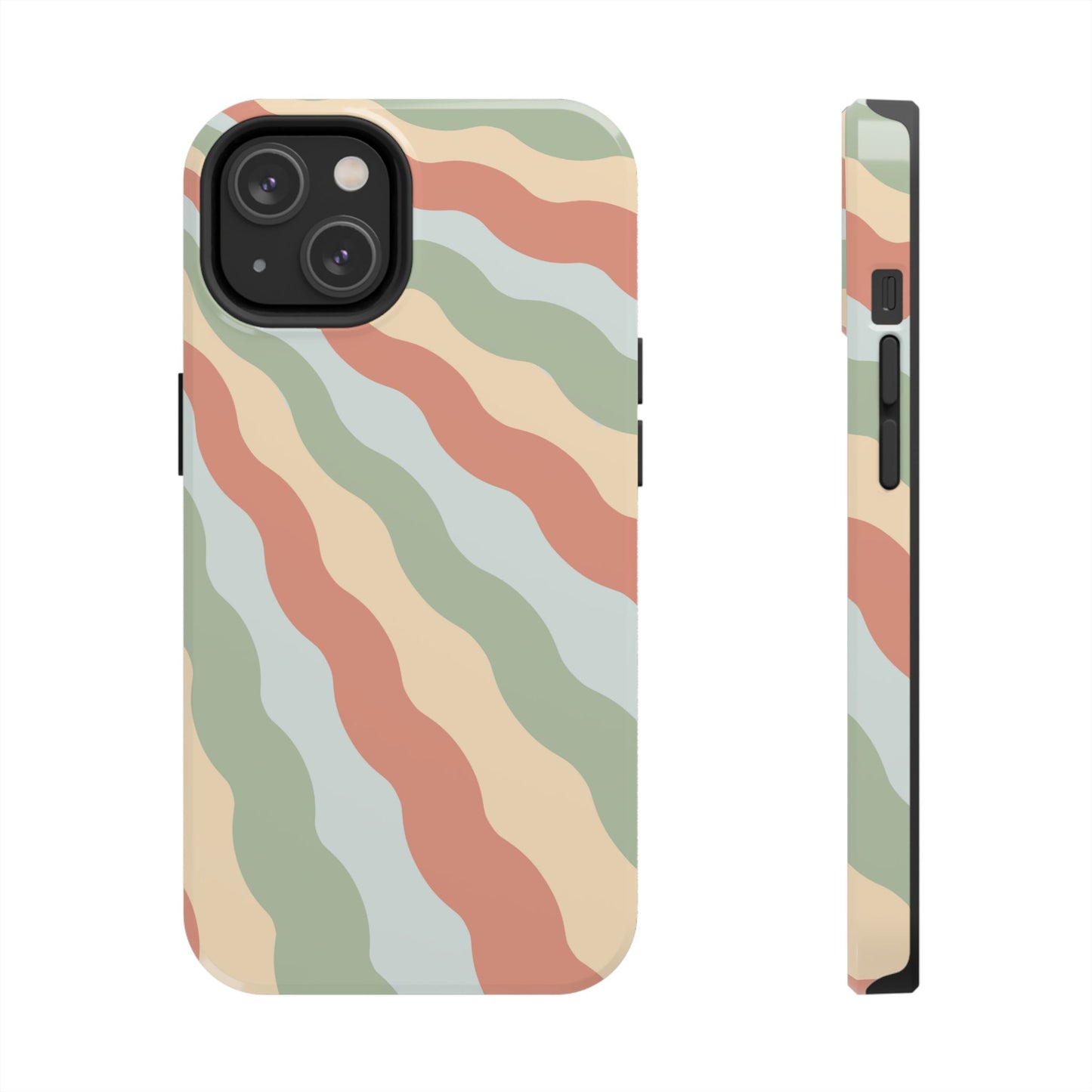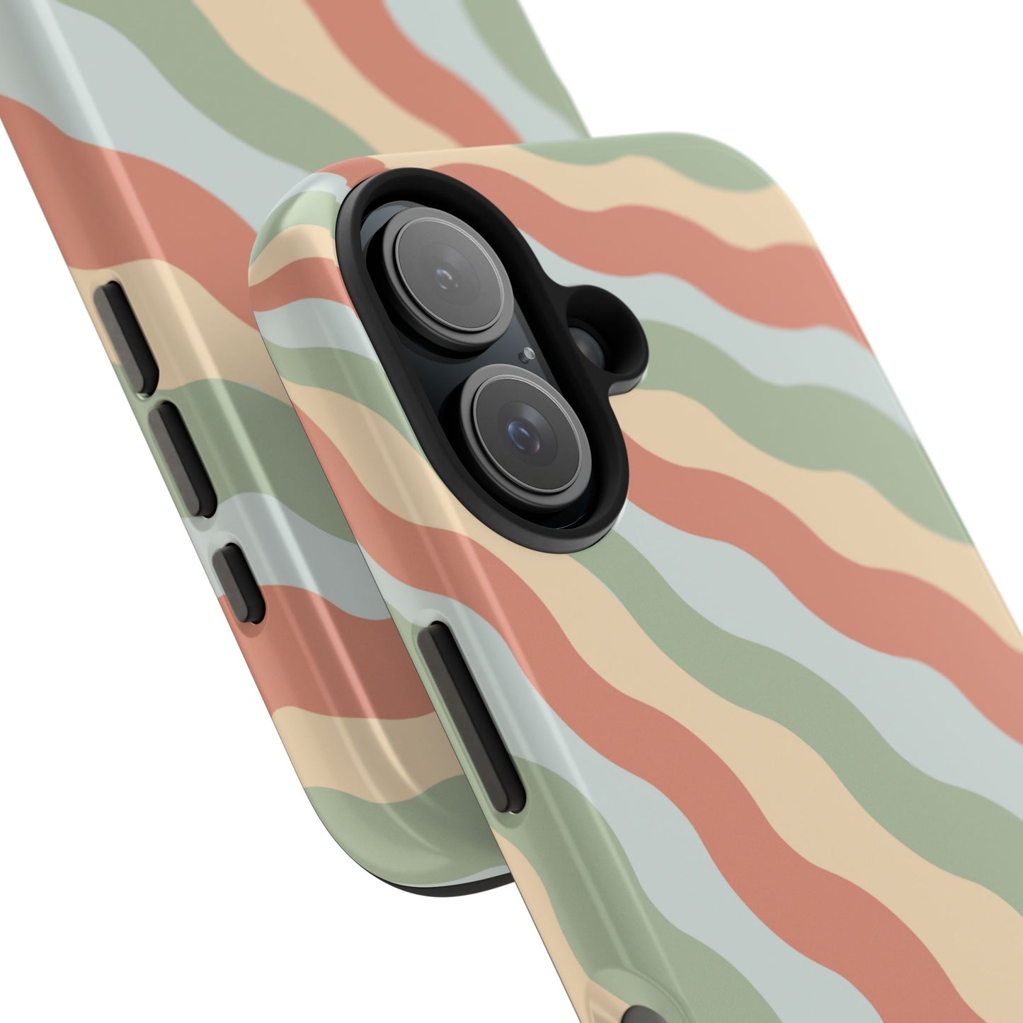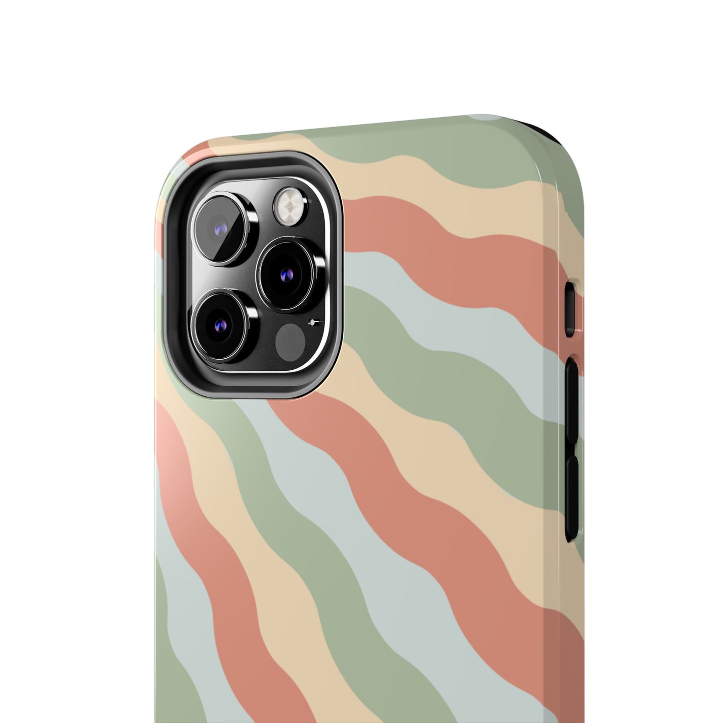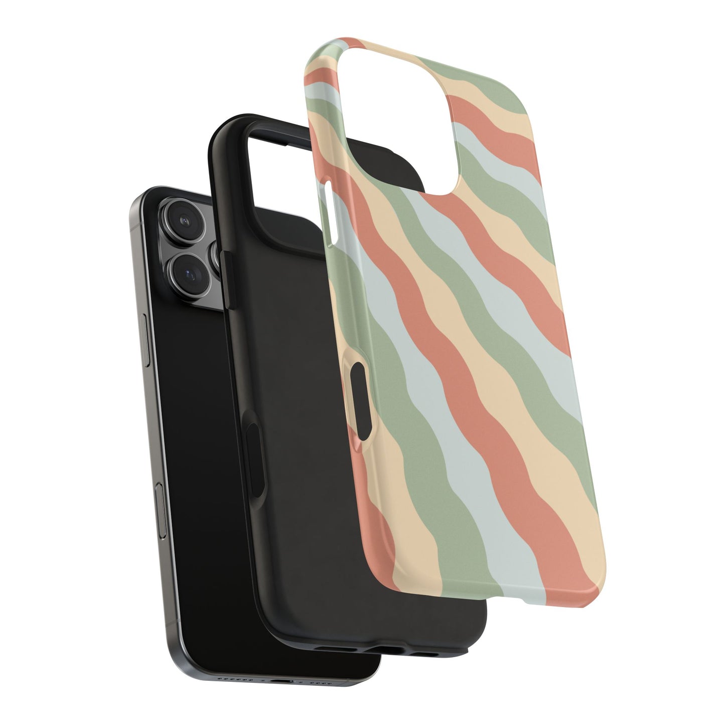 Earthy Retro Waves iPhone Case – 70s-Inspired Wavy Stripes in Soft Green, Cream, and Rust