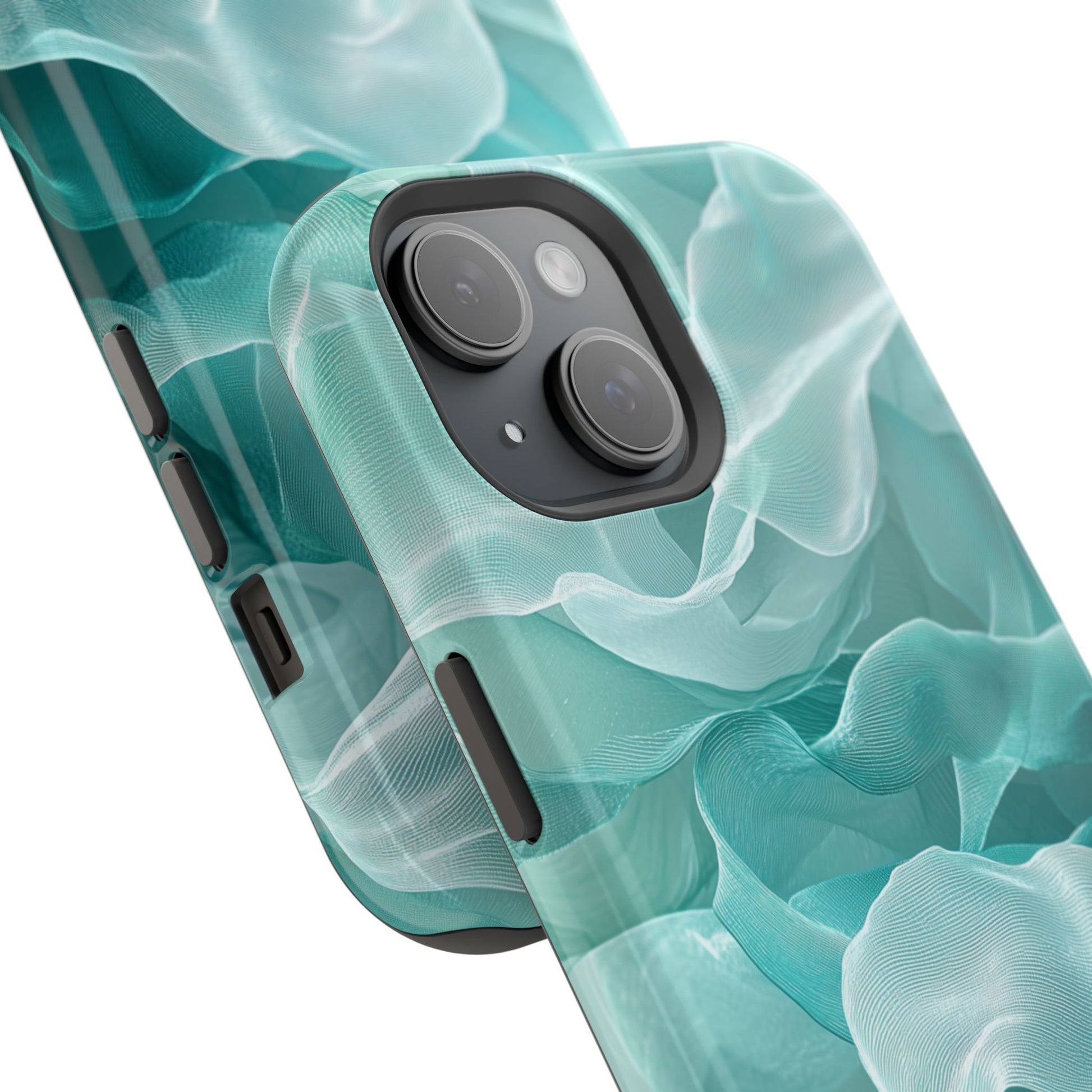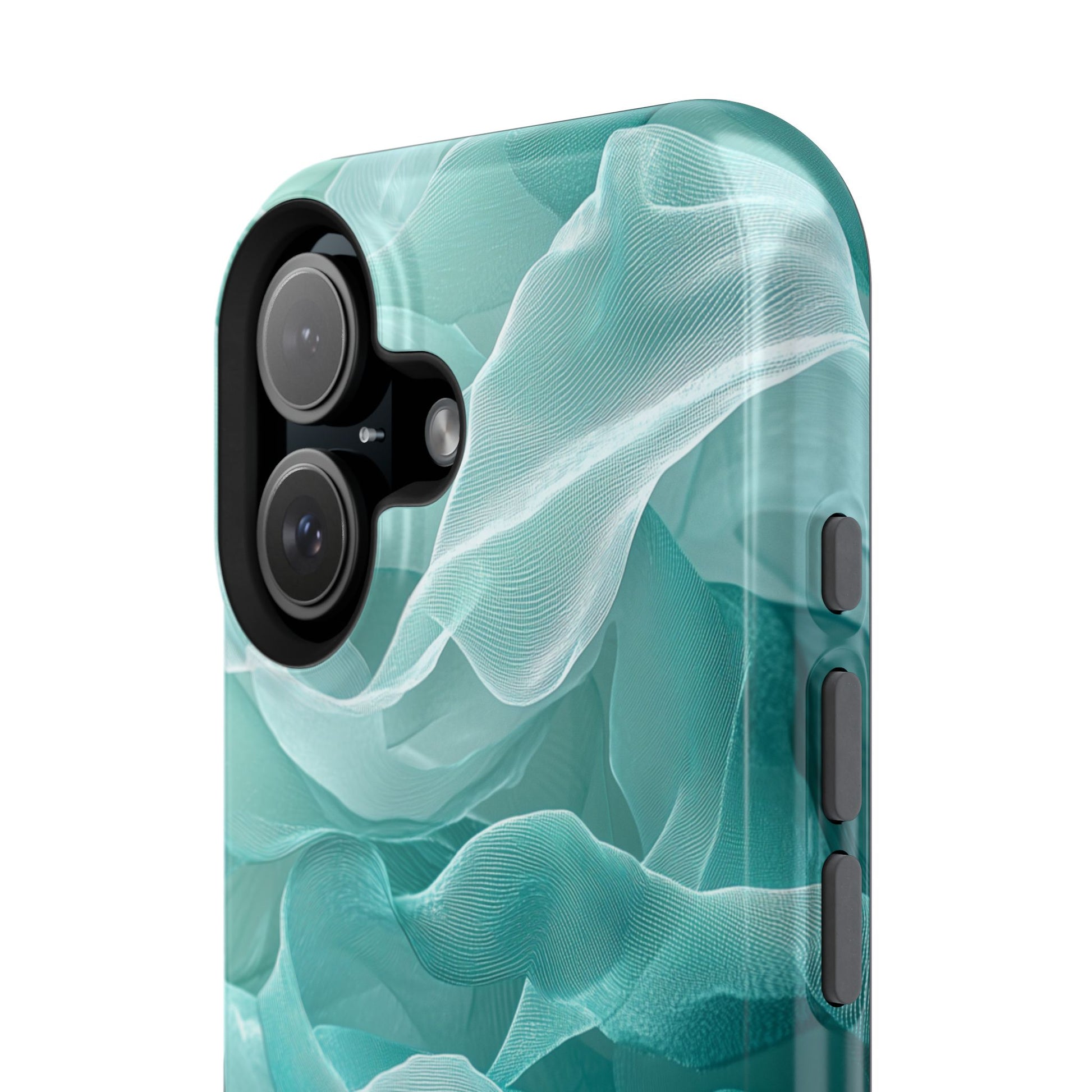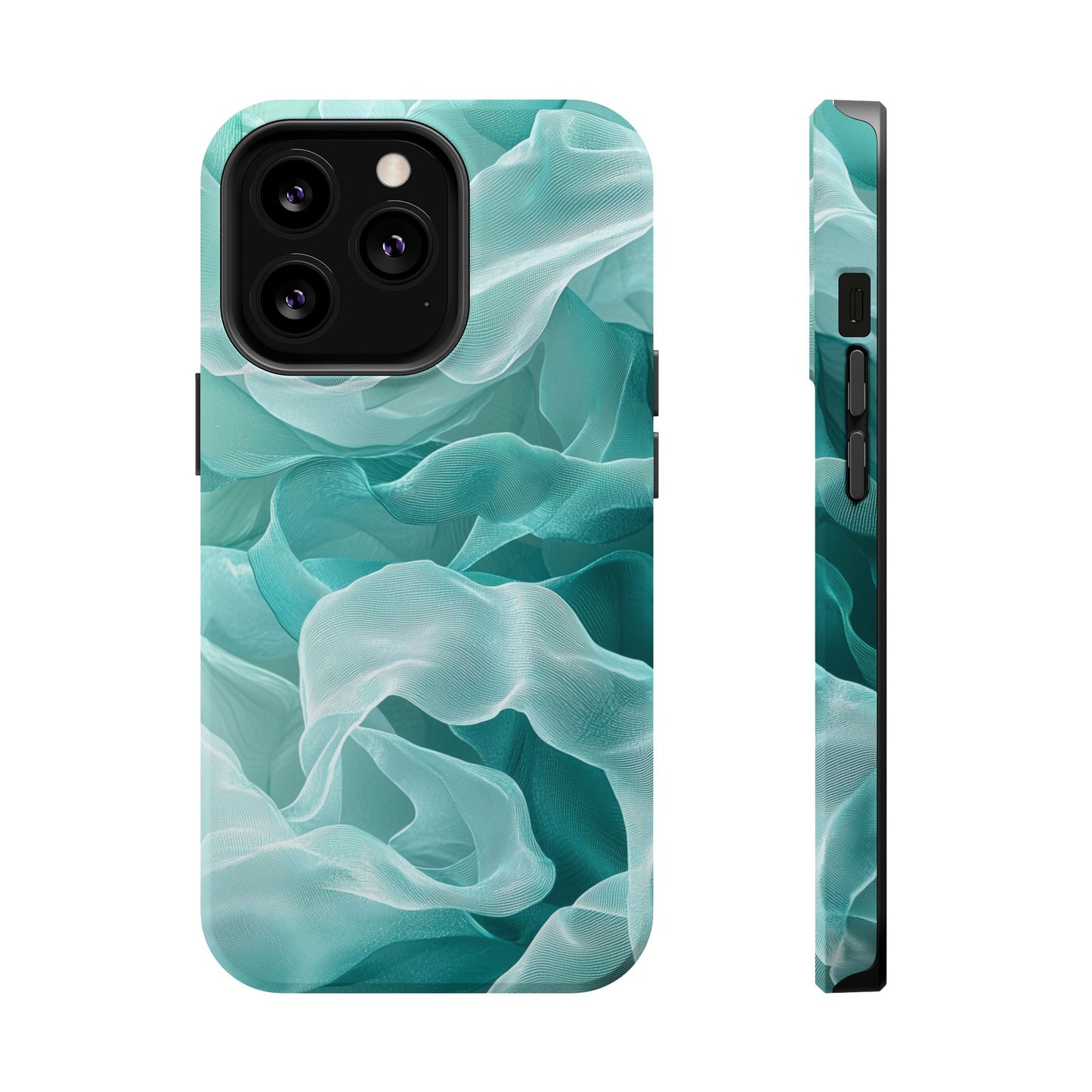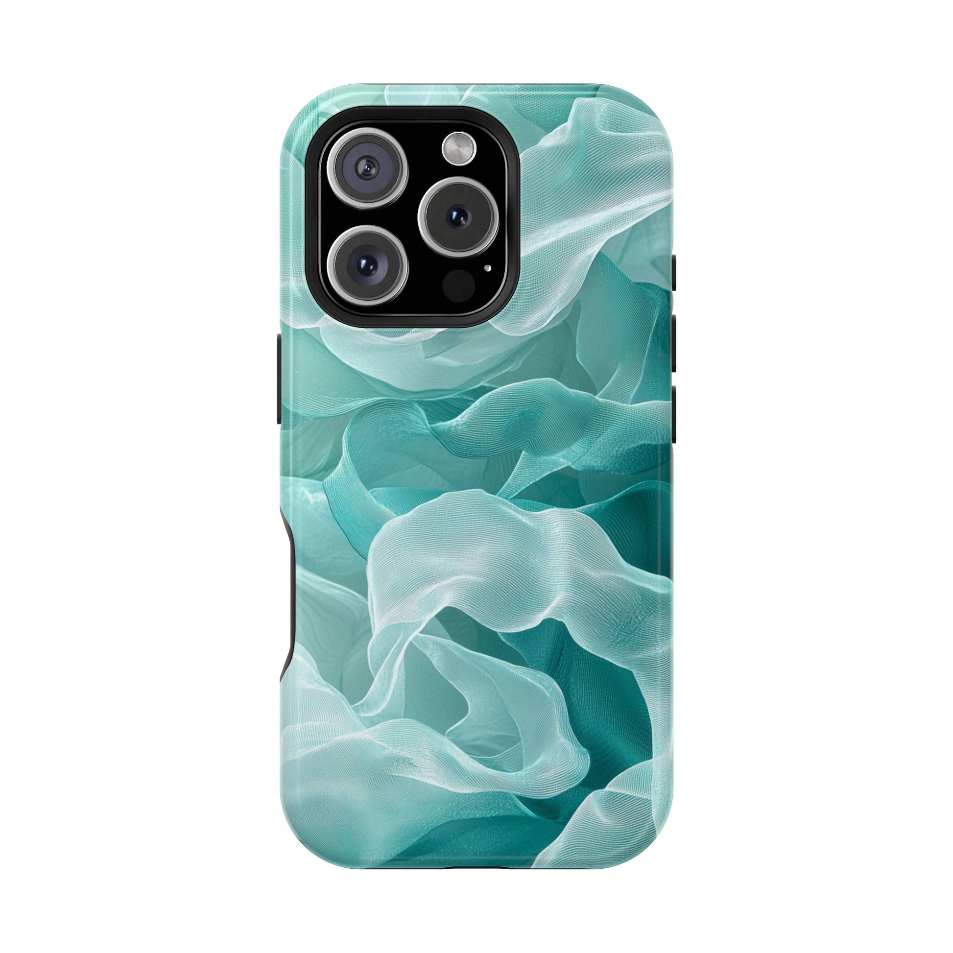 Elegant Flowing Teal Fabric MagSafe iPhone Case – Soft Waves Design