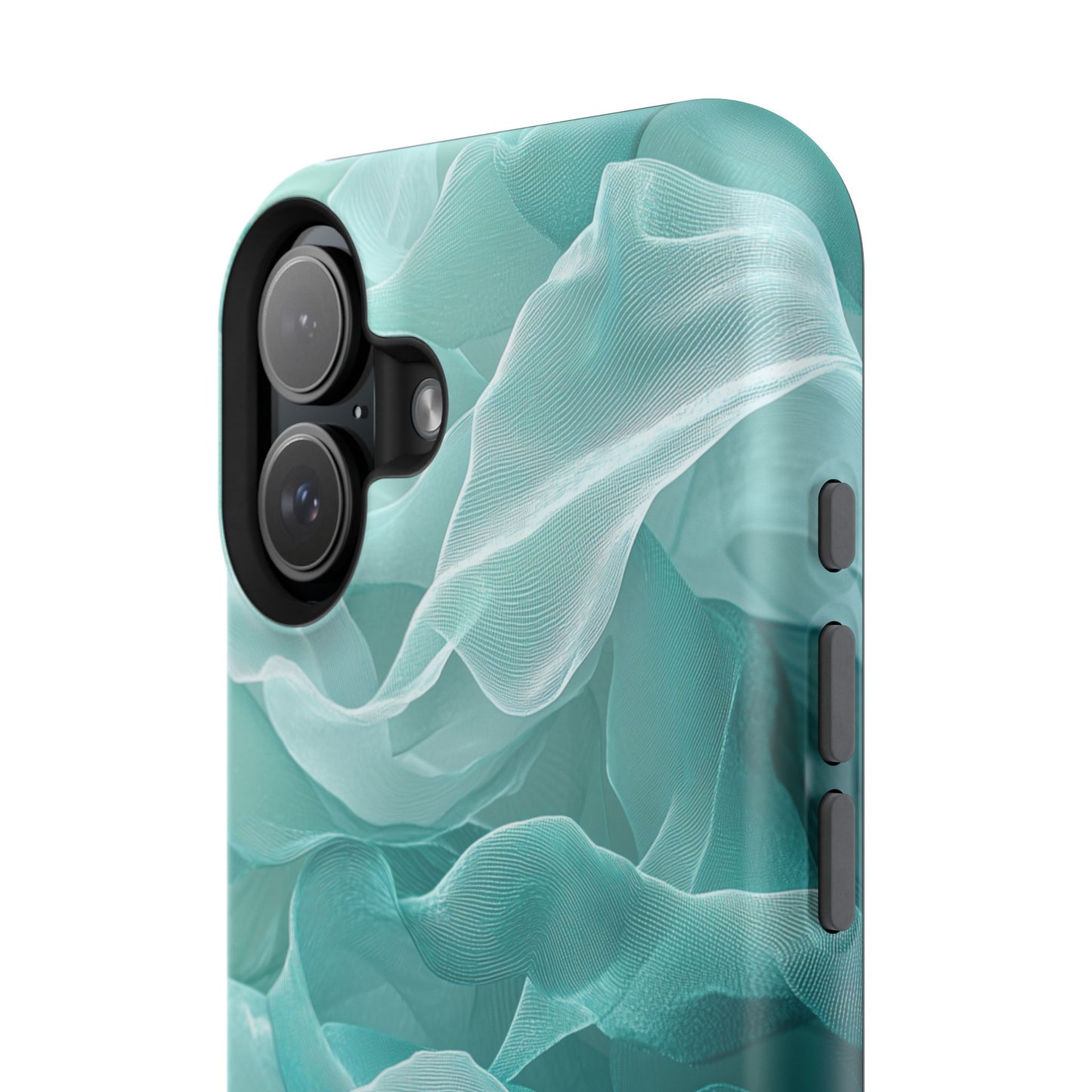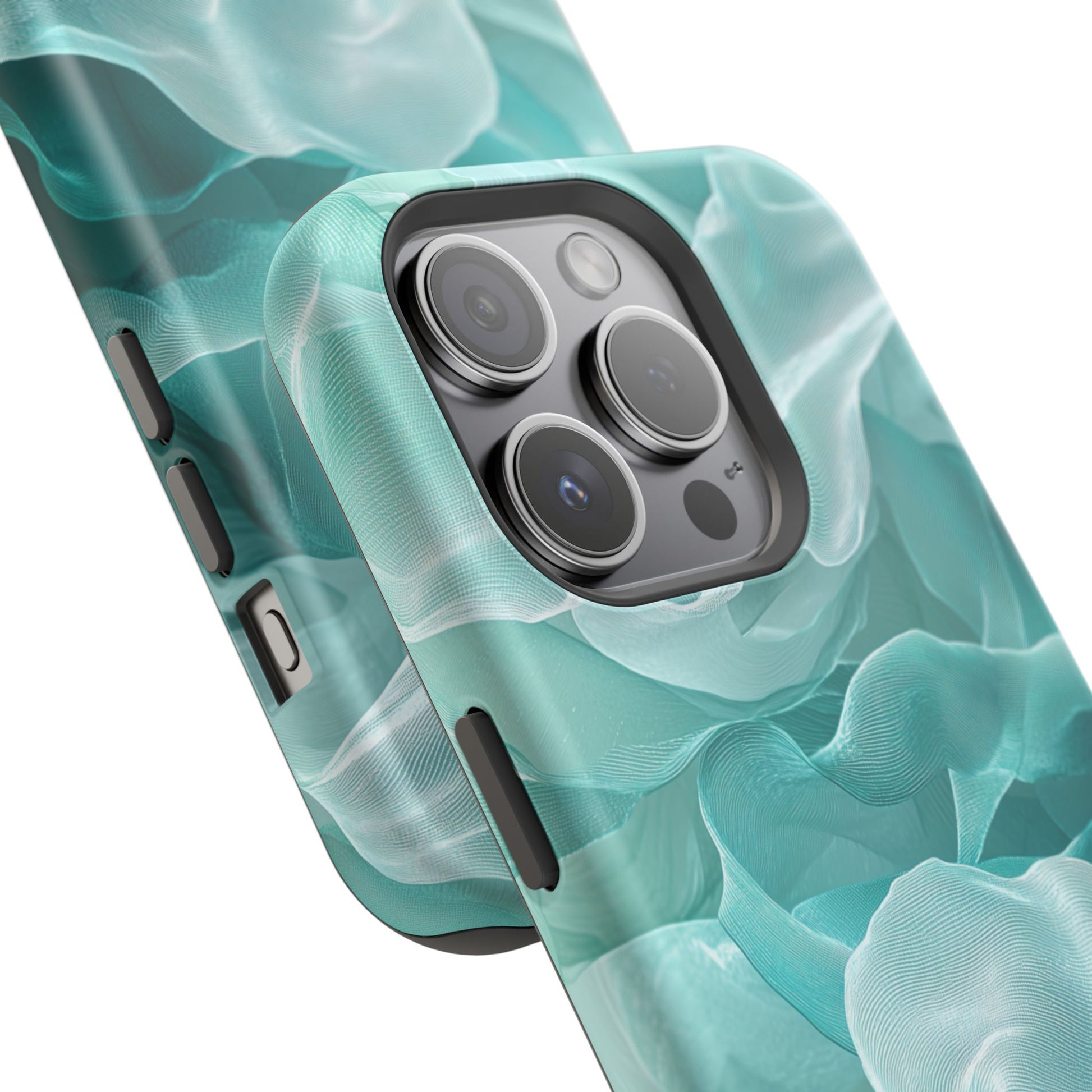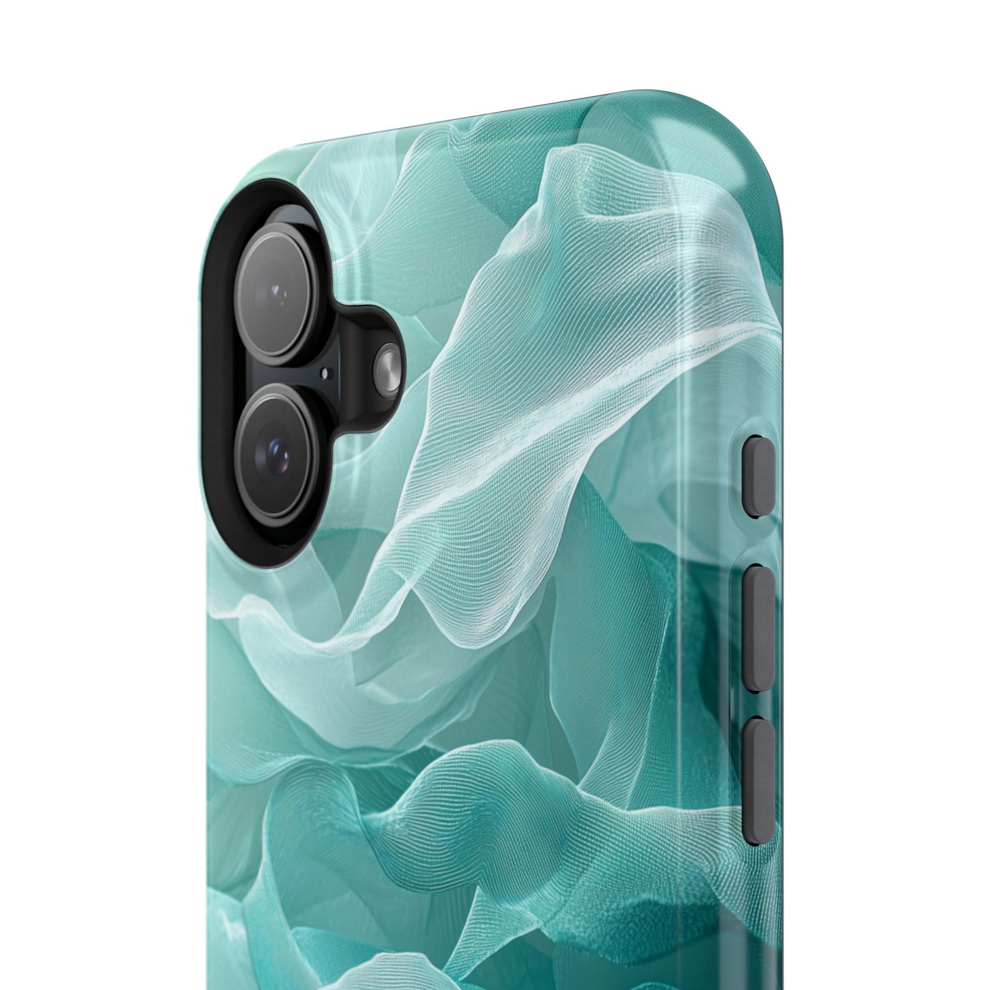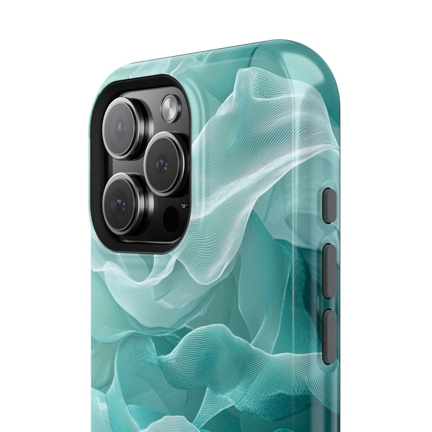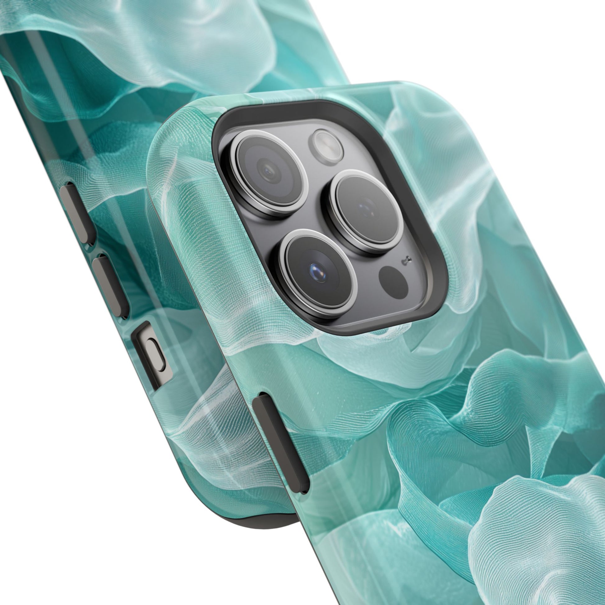 Elegant Flowing Teal Fabric MagSafe iPhone Case – Soft Waves Design