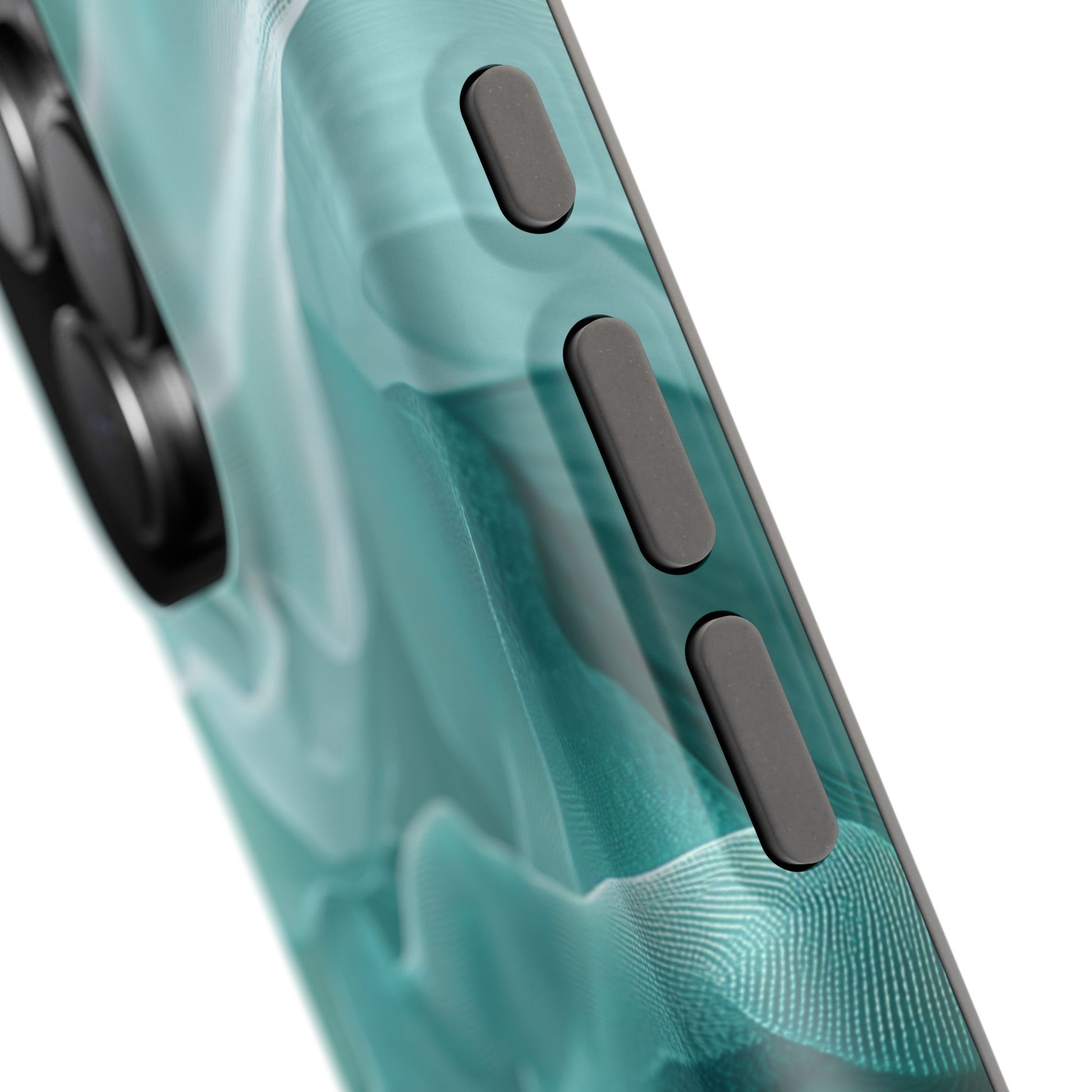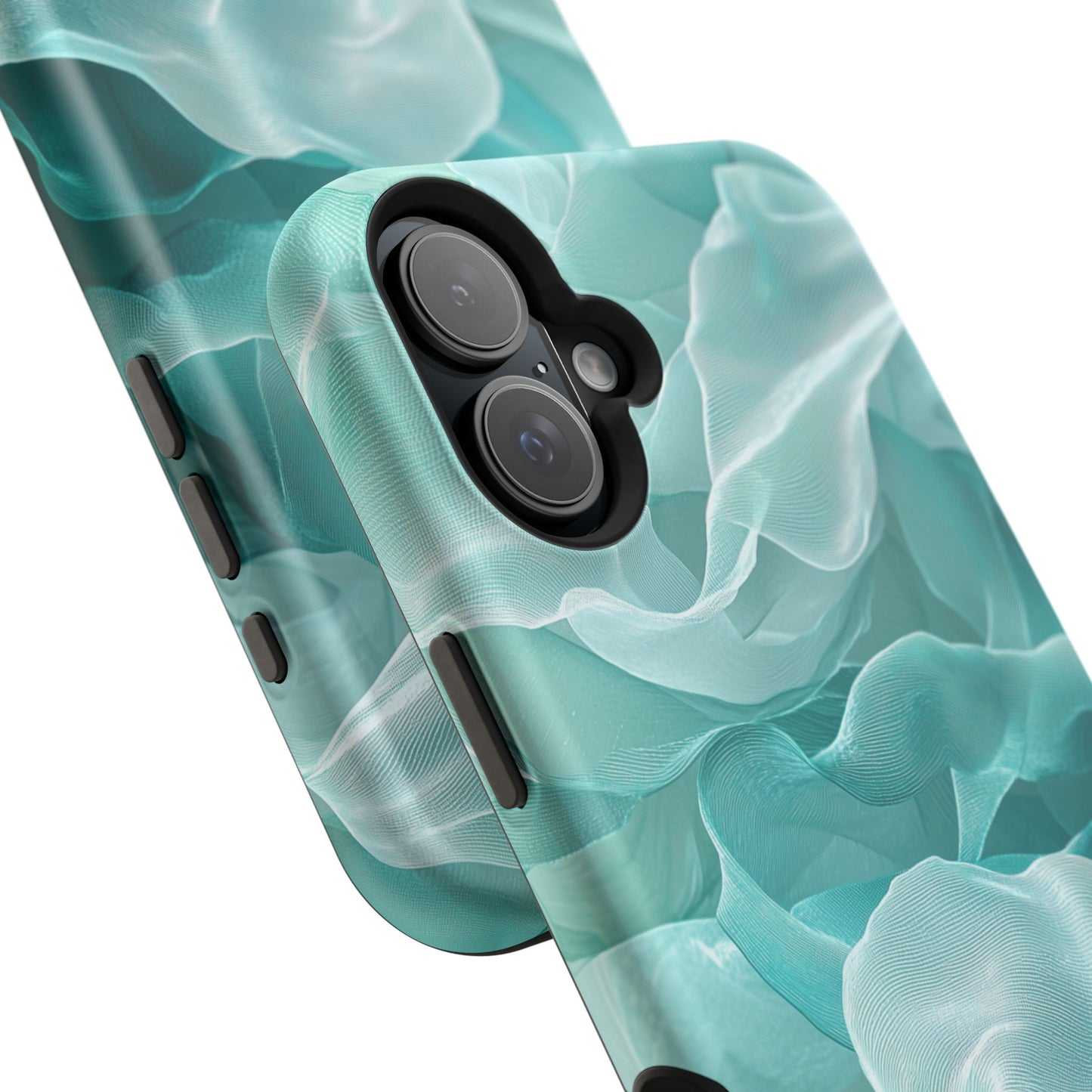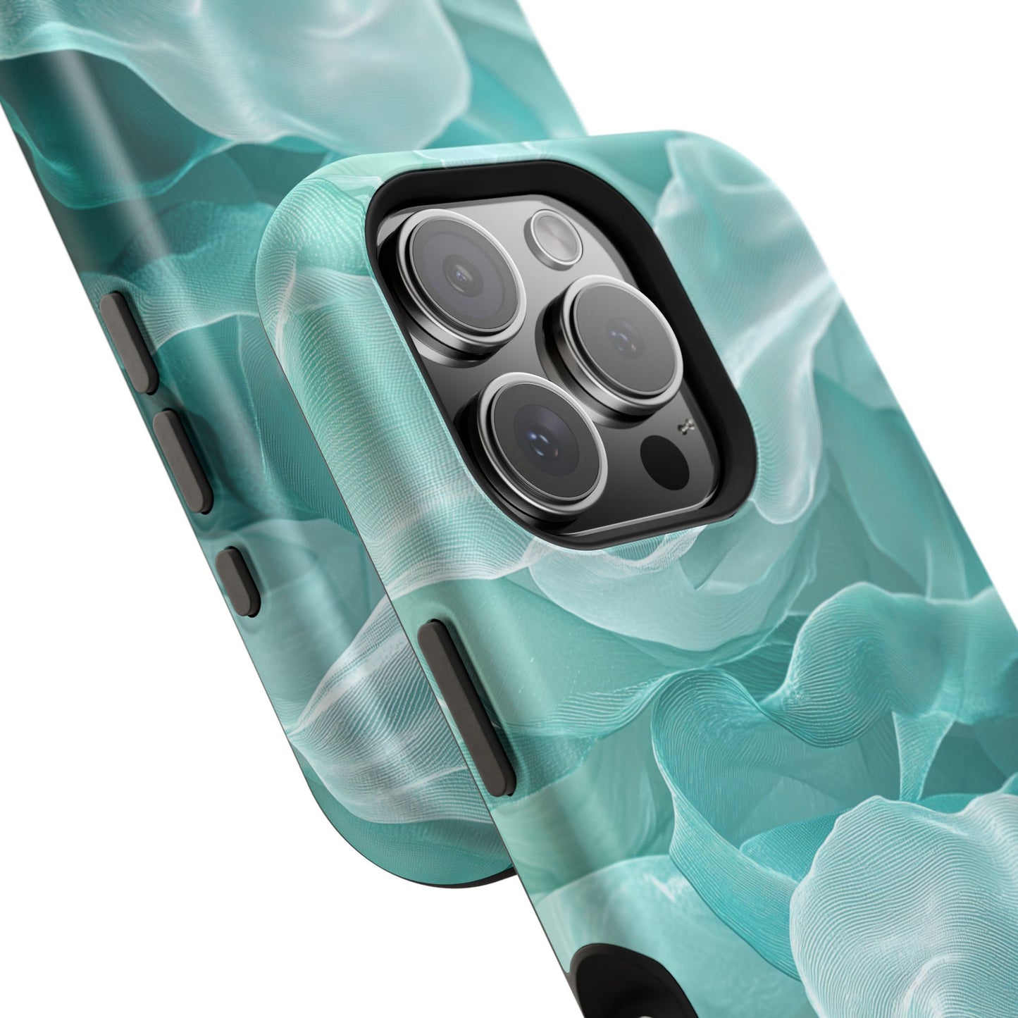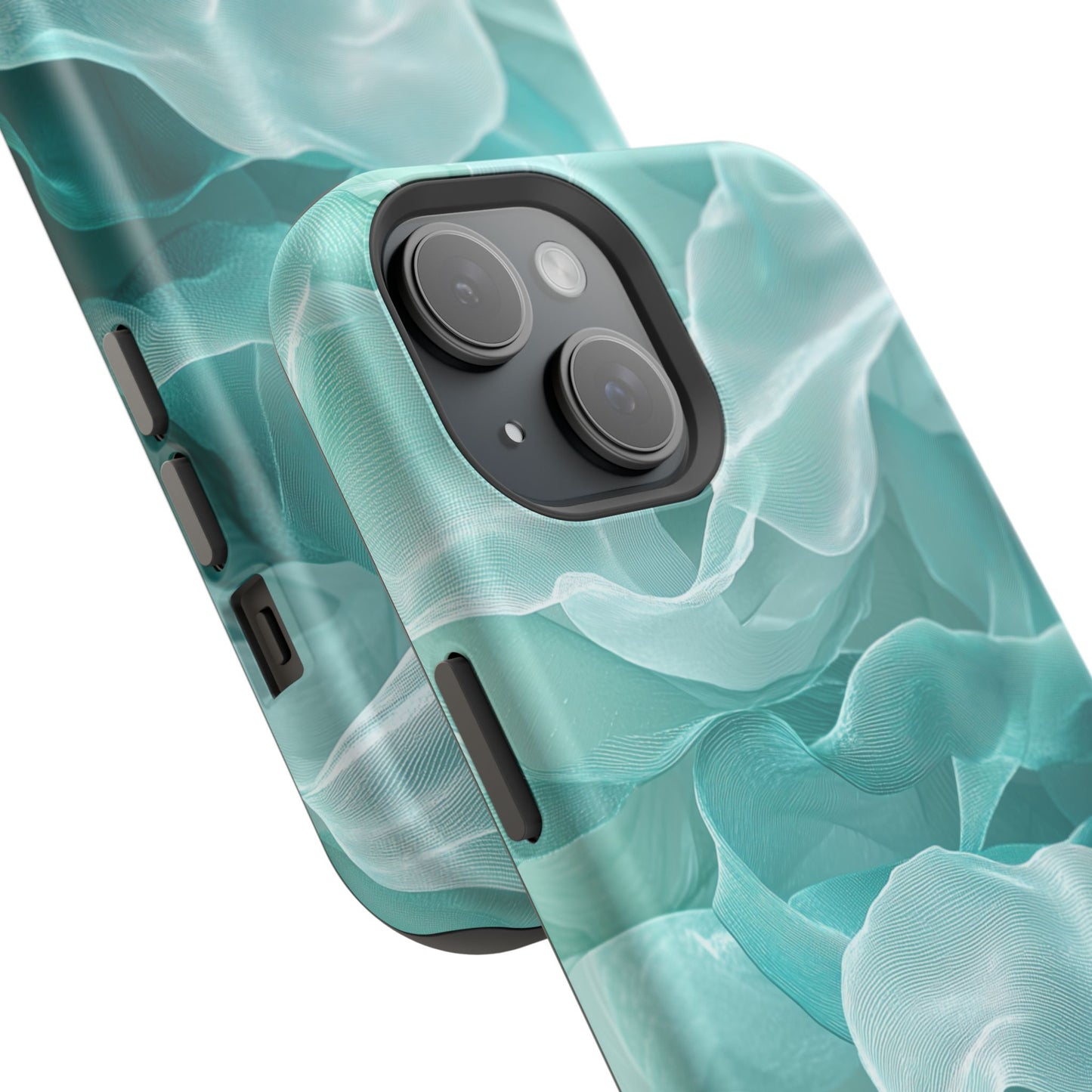 Elegant Flowing Teal Fabric MagSafe iPhone Case – Soft Waves Design