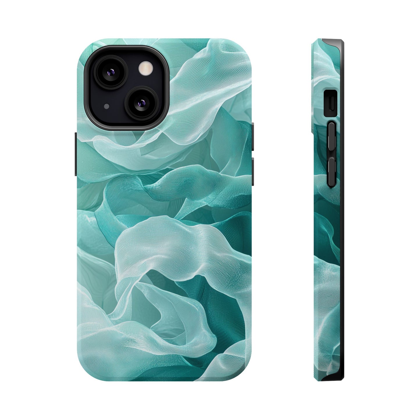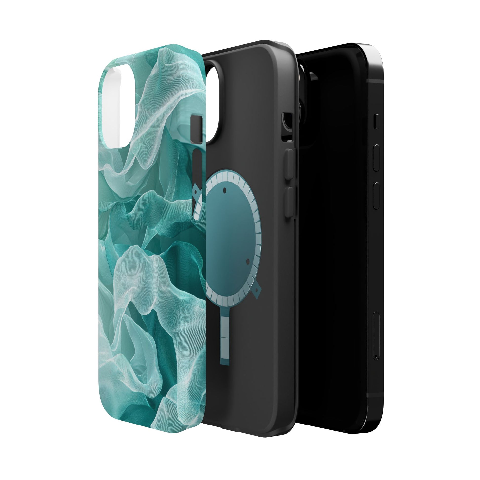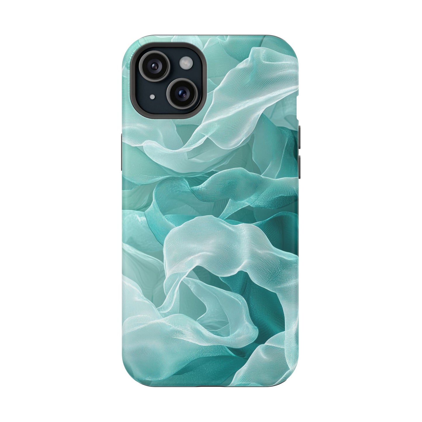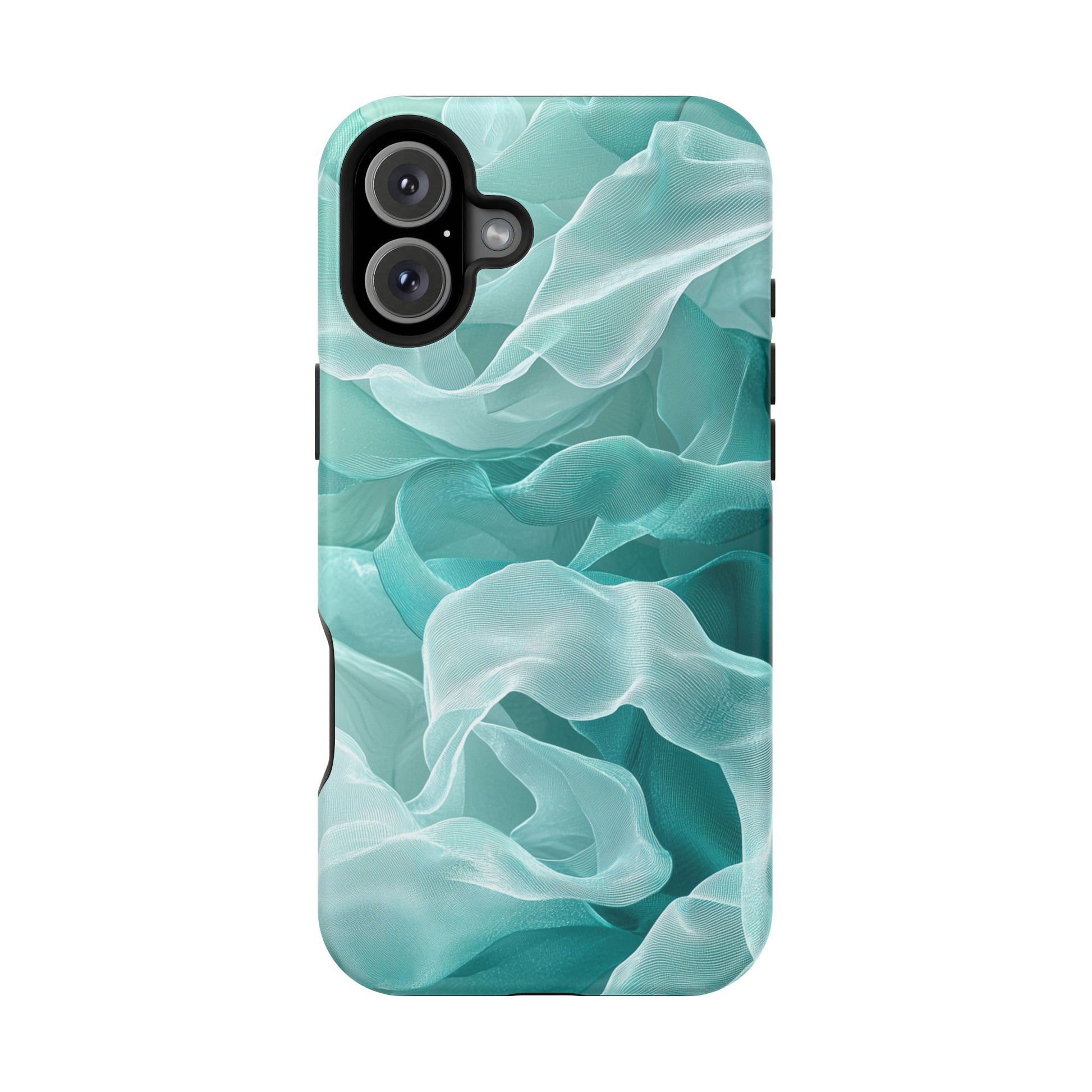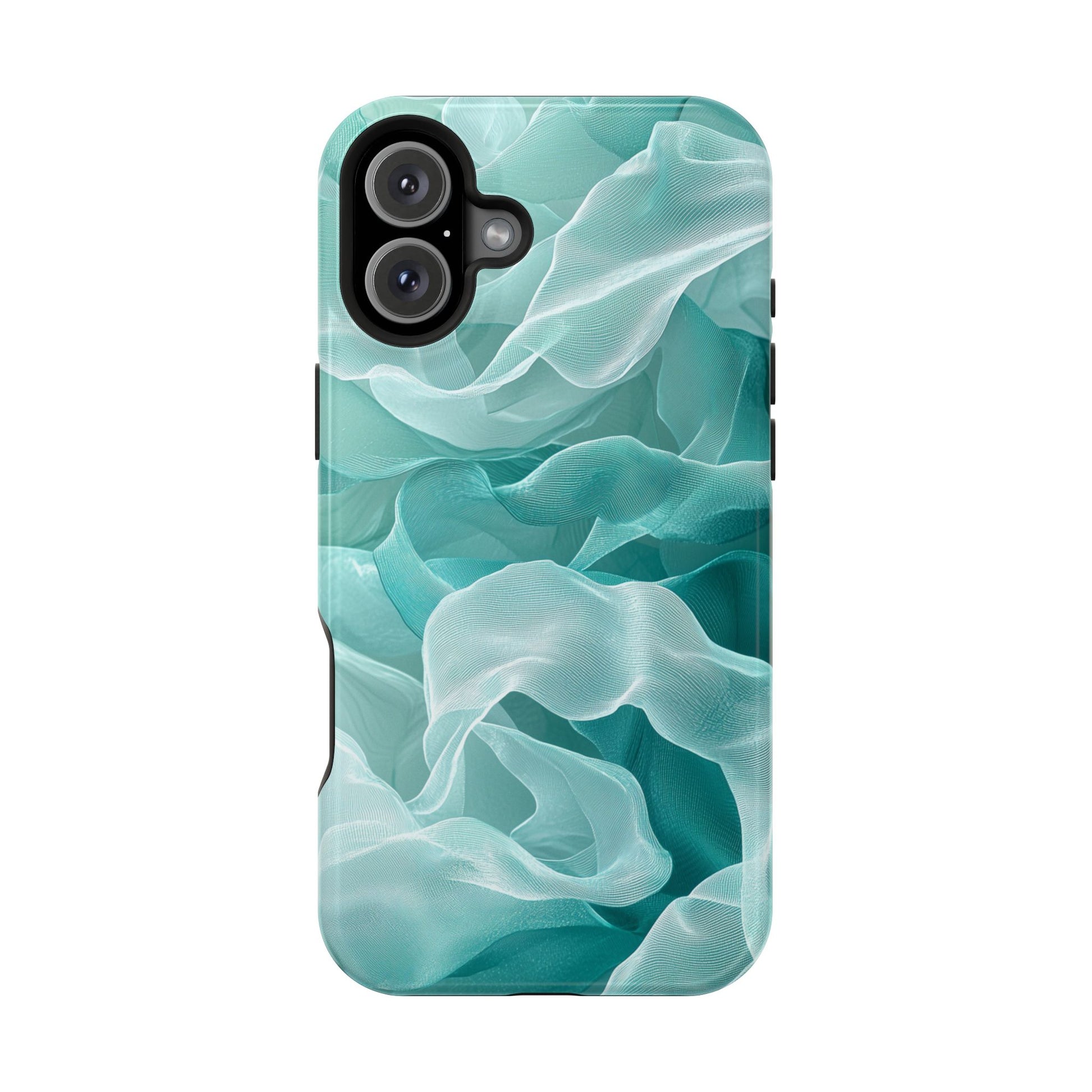 Enhance the elegance of your iPhone with this Elegant Flowing Teal Fabric MagSafe Case, featuring a mesmerizing design that captures the beauty of soft, flowing fabric waves. The graceful, translucent waves in shades of teal and white create a sophisticated, calming aesthetic for your device.