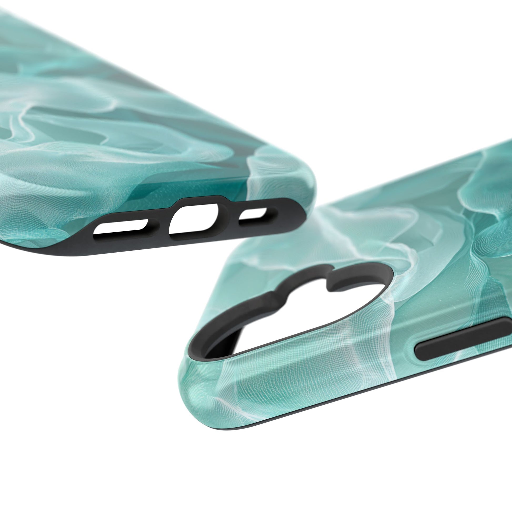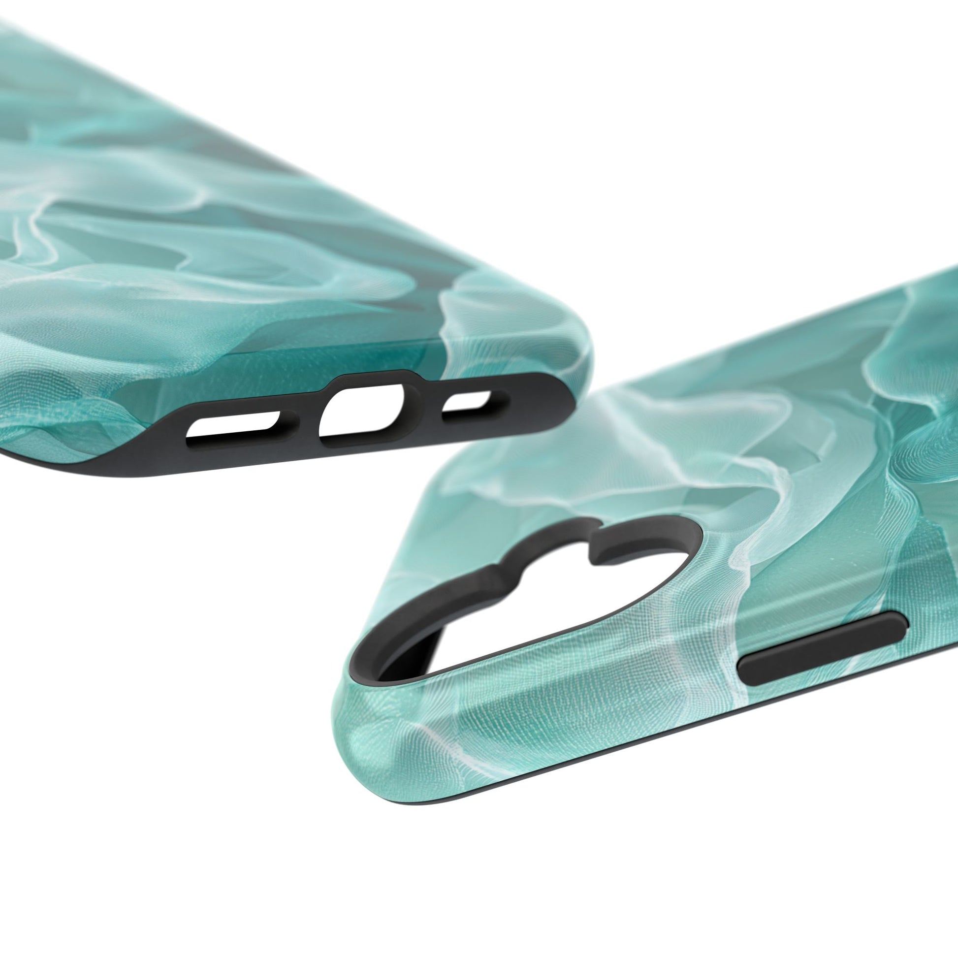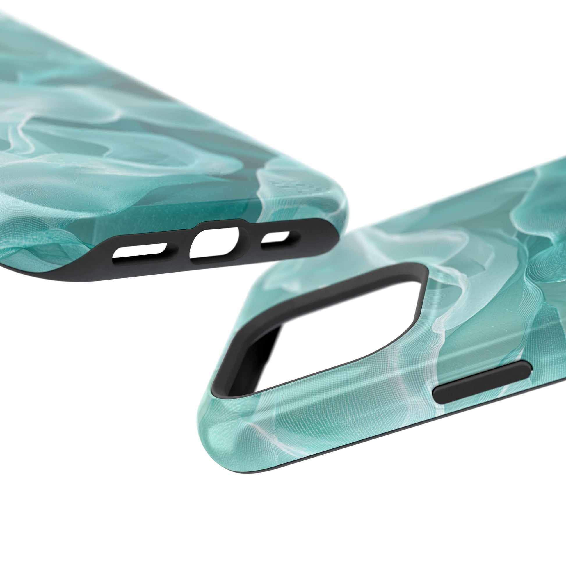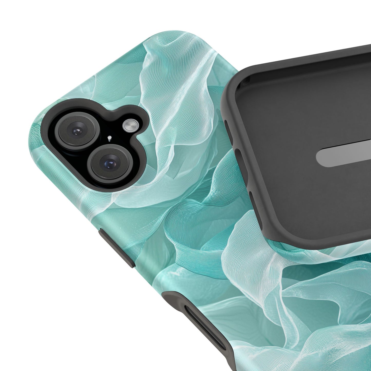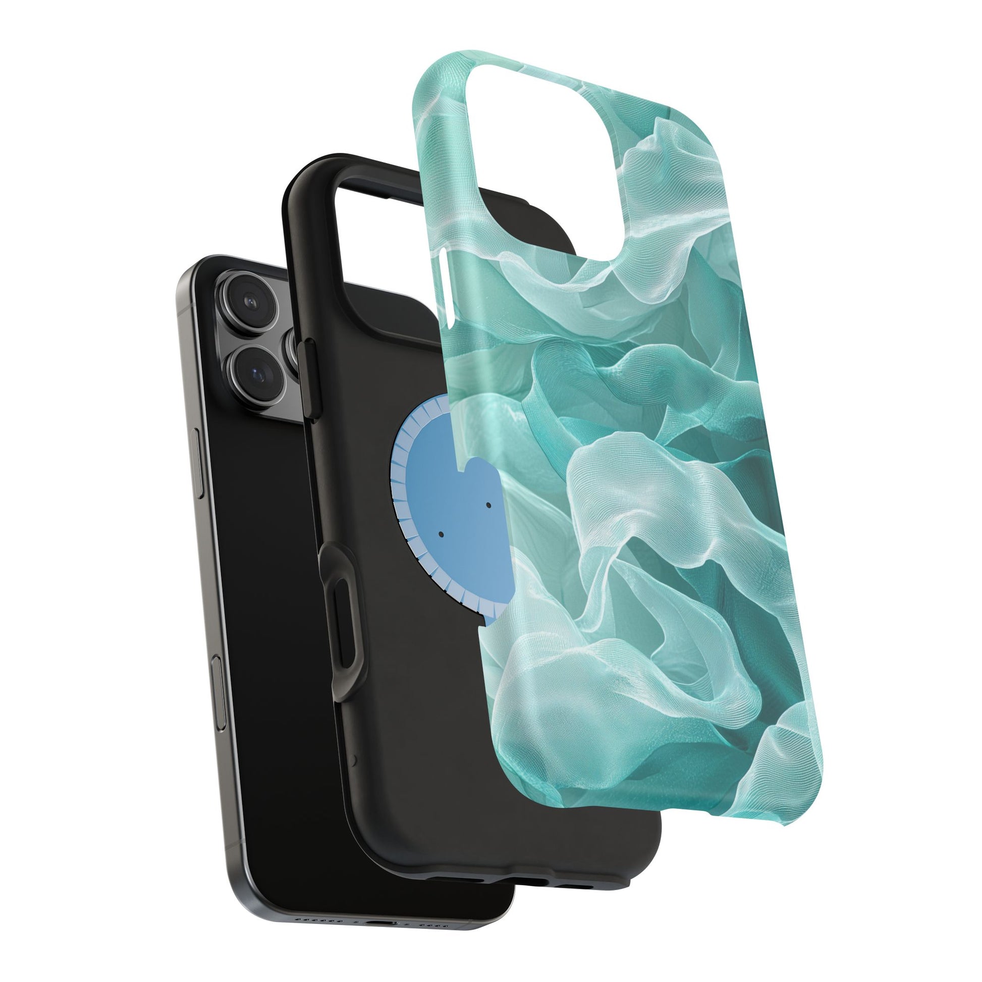 Enhance the elegance of your iPhone with this Elegant Flowing Teal Fabric MagSafe Case, featuring a mesmerizing design that captures the beauty of soft, flowing fabric waves. The graceful, translucent waves in shades of teal and white create a sophisticated, calming aesthetic for your device.