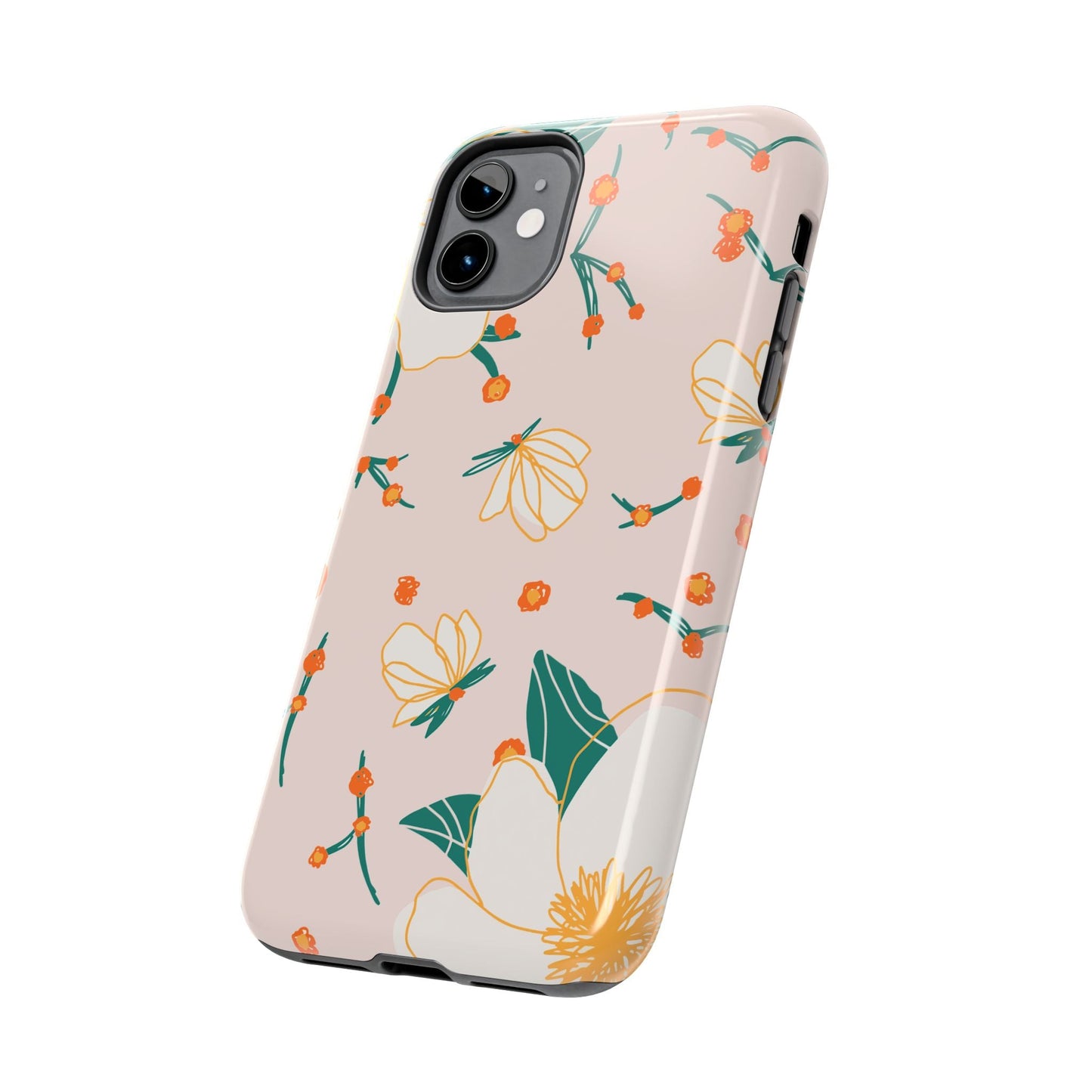 Bring a touch of nature’s beauty to your phone with our Elegant Magnolia Blossom Tough iPhone Case. Featuring a graceful floral design with large magnolia blooms in soft cream and gold, complemented by delicate orange accents on a blush pink background, this case adds an elegant, feminine charm to your device. Built with durable dual-layer protection, the case shields your phone from scratches, drops, and daily wear while maintaining a slim, stylish profile. Perfect for adding a floral flair to your everyday look.