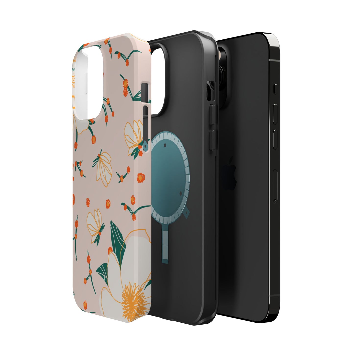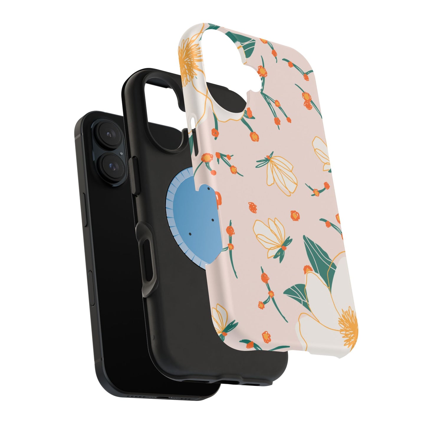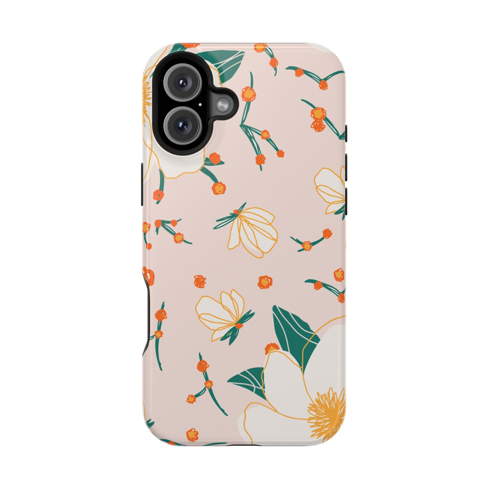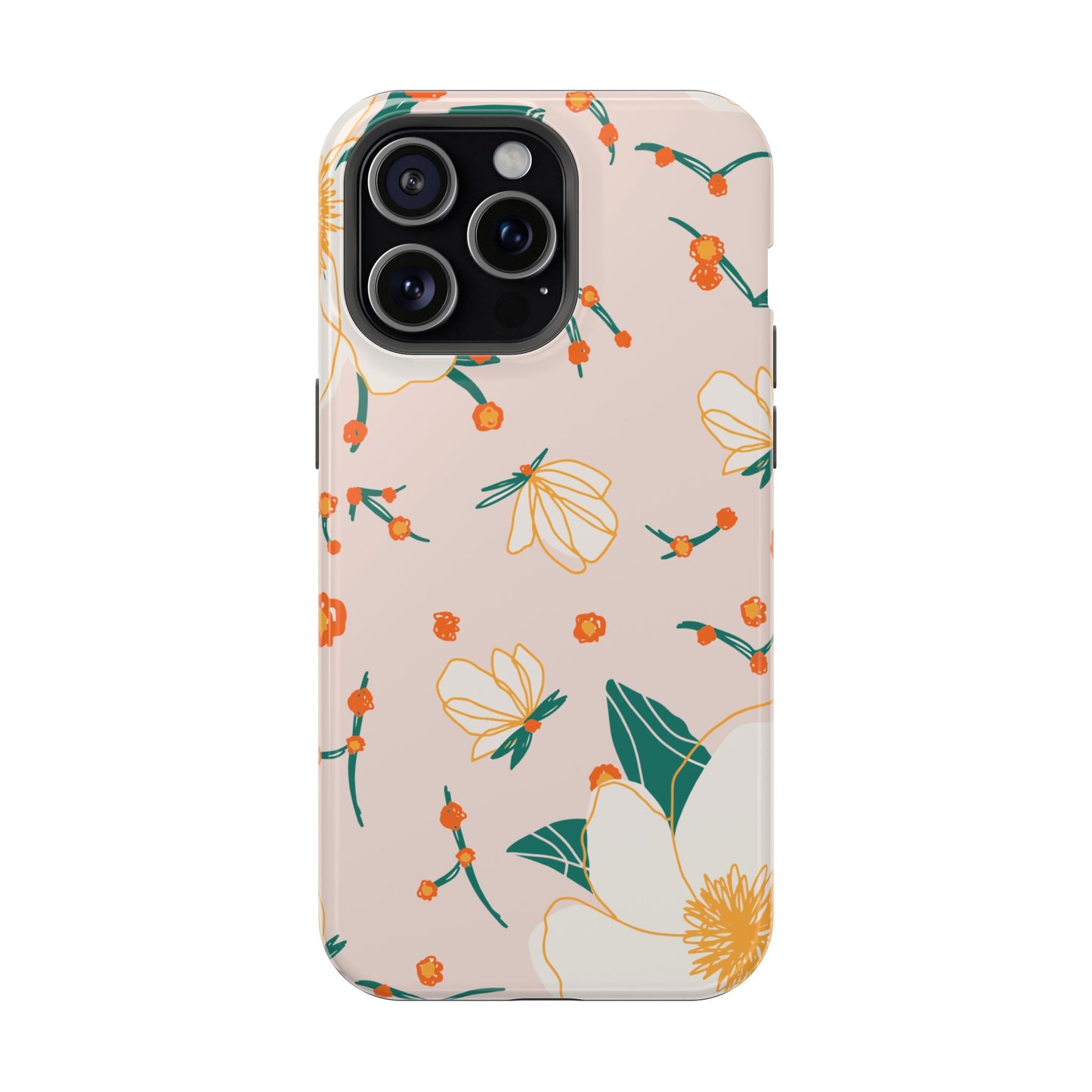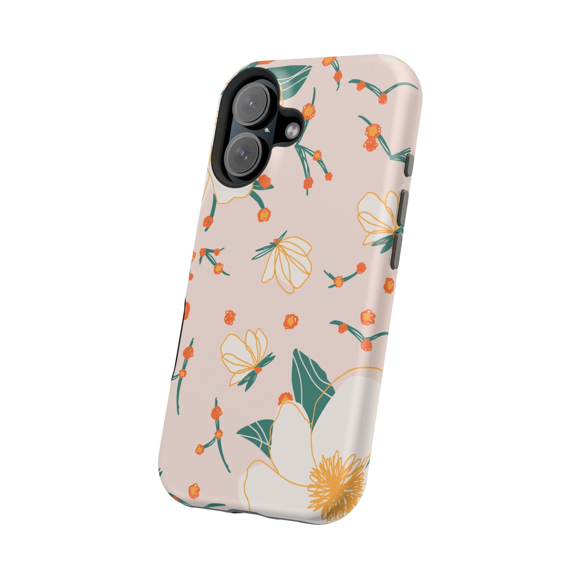 Bring a touch of nature’s beauty to your phone with our Elegant Magnolia Blossom Tough MagSafe iPhone Case. Featuring a graceful floral design with large magnolia blooms in soft cream and gold, complemented by delicate orange accents on a blush pink background, this case adds an elegant, feminine charm to your device. Built with durable dual-layer protection, the case shields your phone from scratches, drops, and daily wear while maintaining a slim, stylish profile. Perfect for adding a floral flair to your everyday look.