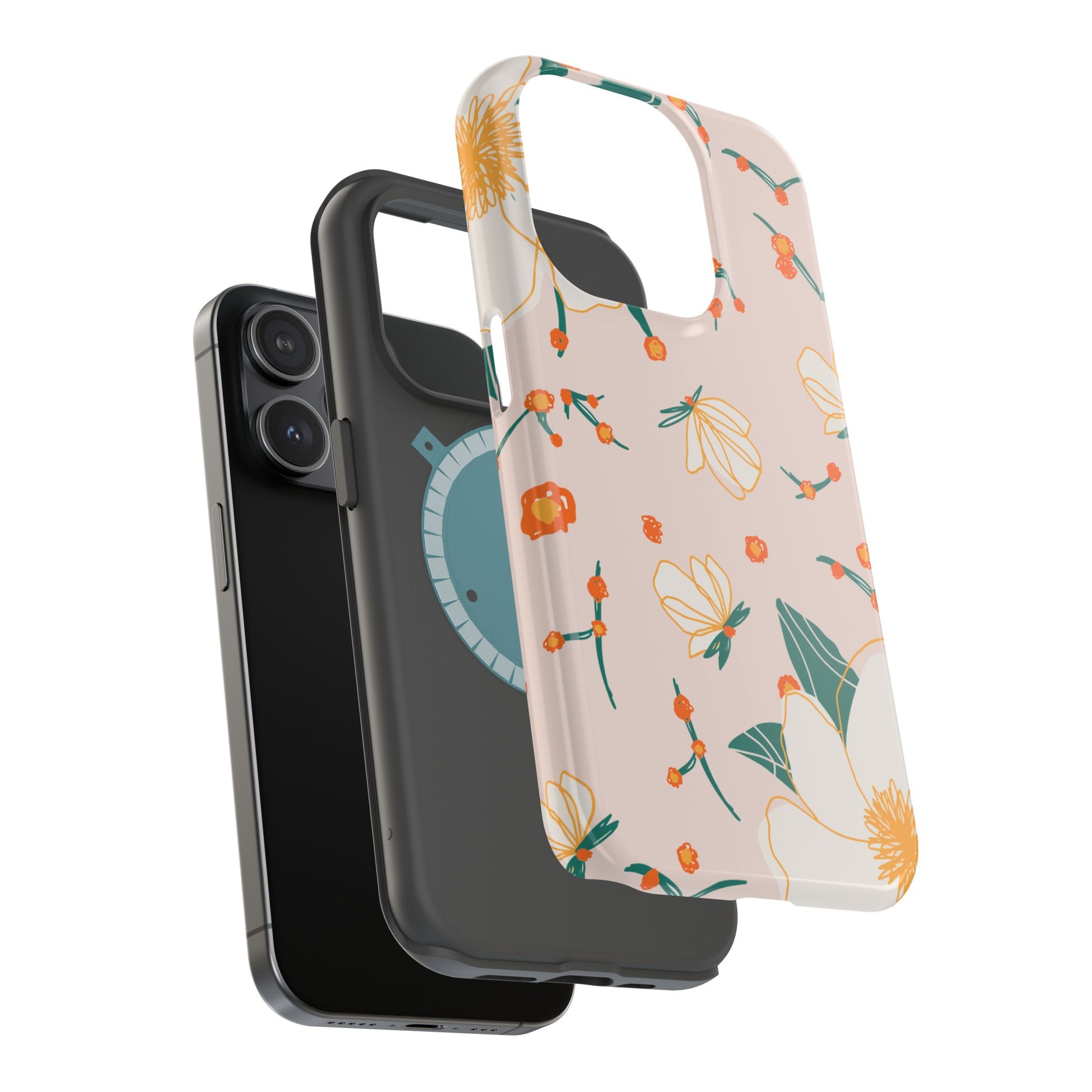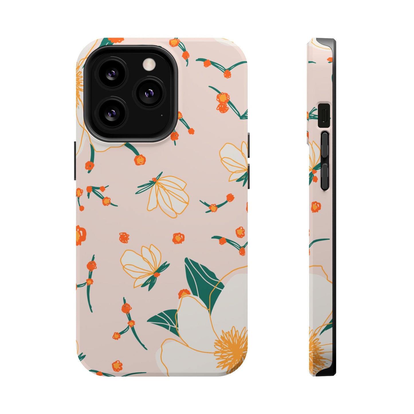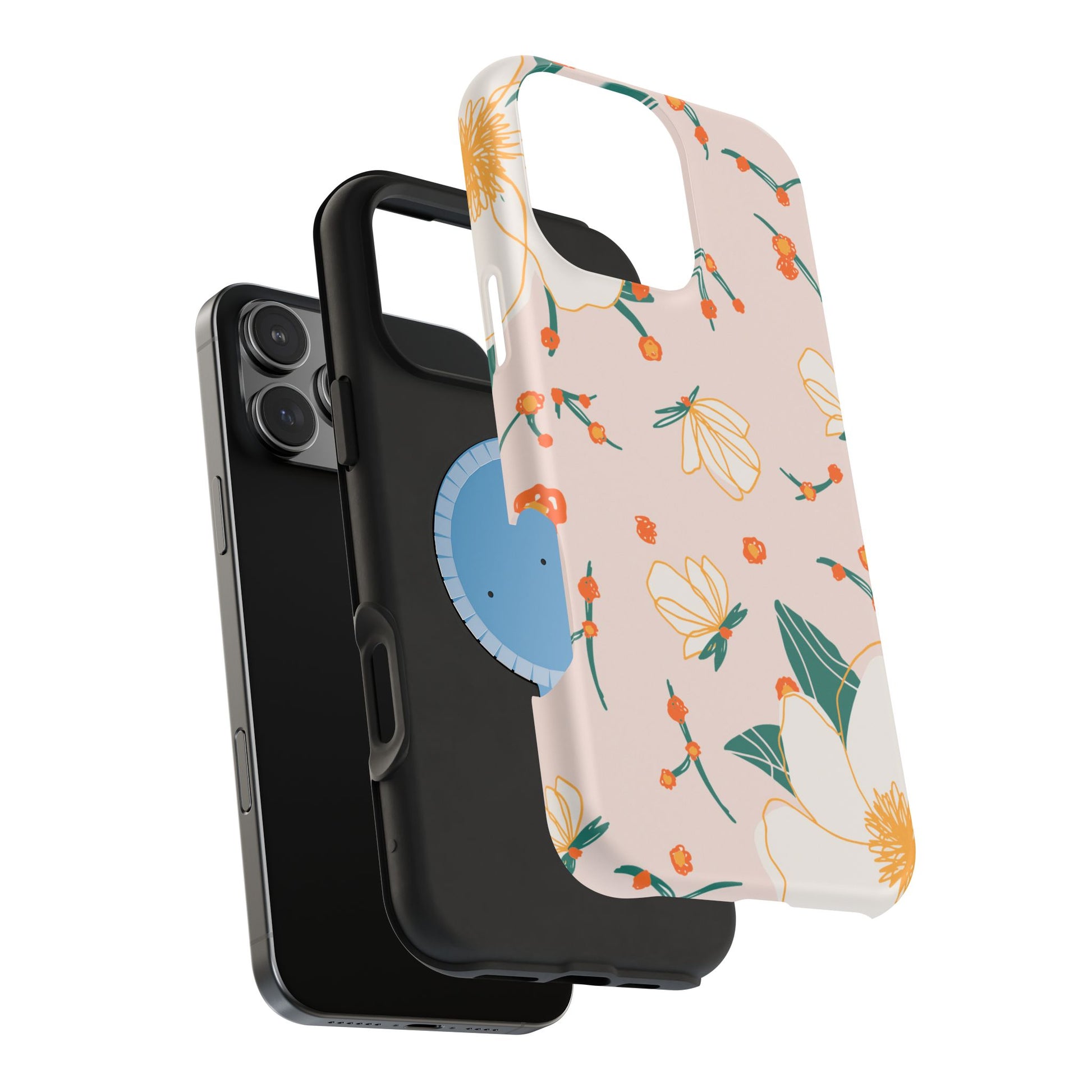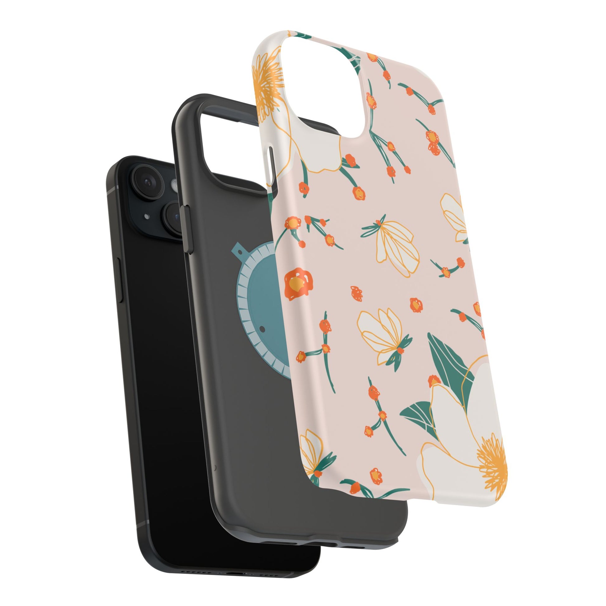 Bring a touch of nature’s beauty to your phone with our Elegant Magnolia Blossom Tough MagSafe iPhone Case. Featuring a graceful floral design with large magnolia blooms in soft cream and gold, complemented by delicate orange accents on a blush pink background, this case adds an elegant, feminine charm to your device. Built with durable dual-layer protection, the case shields your phone from scratches, drops, and daily wear while maintaining a slim, stylish profile. Perfect for adding a floral flair to your everyday look.