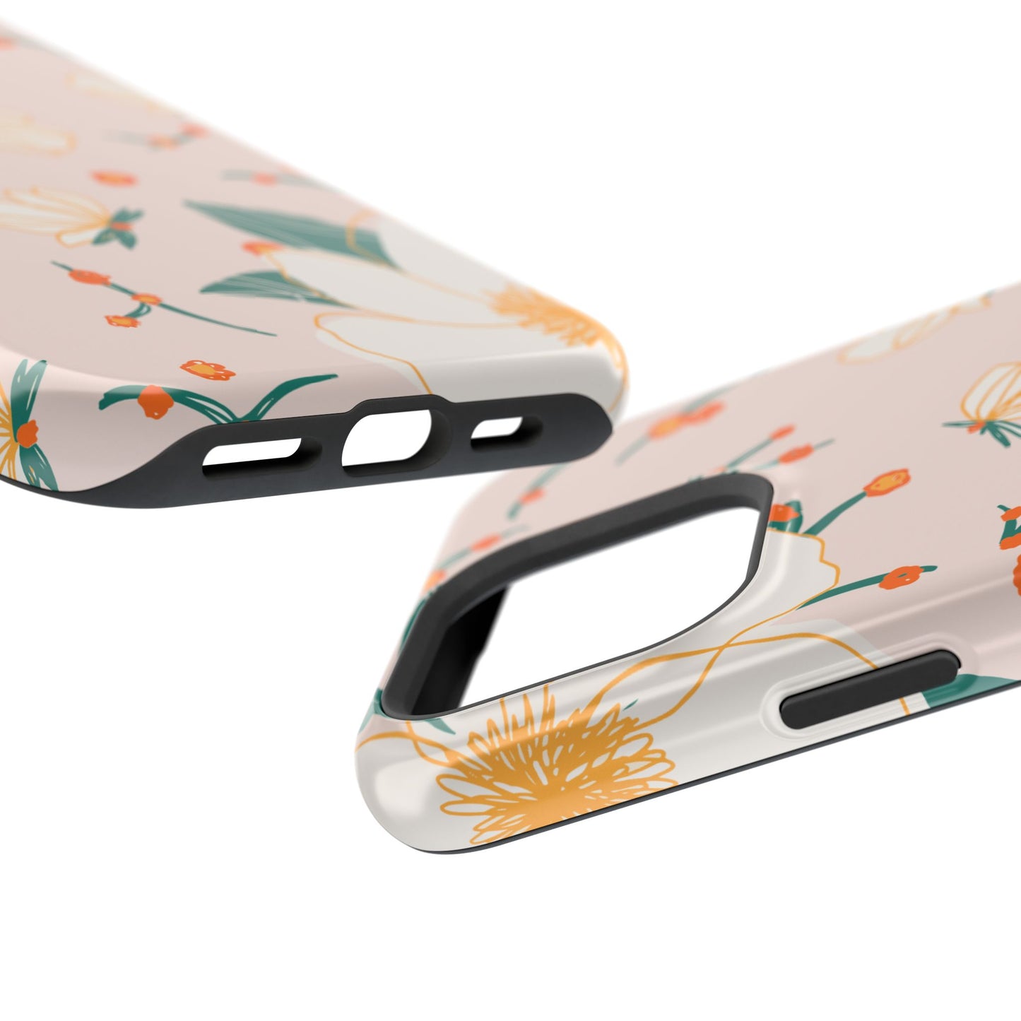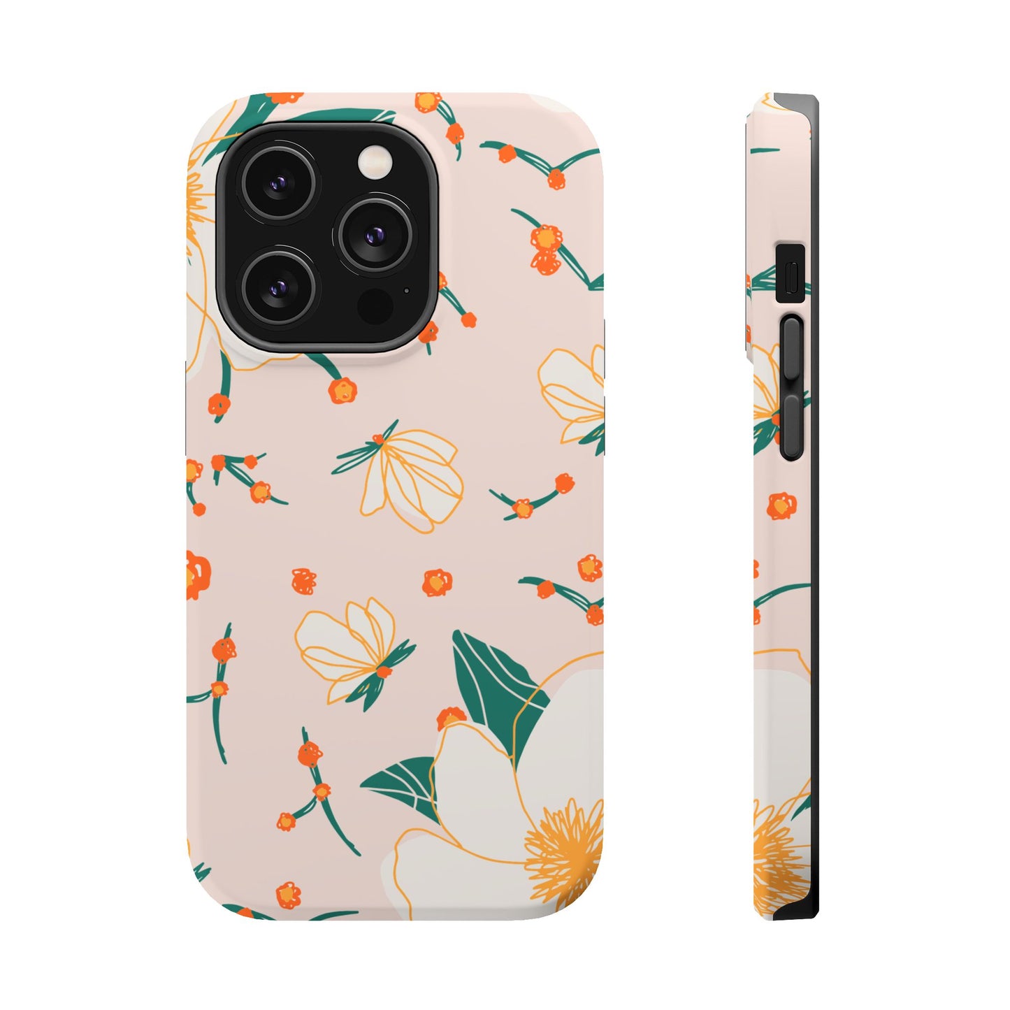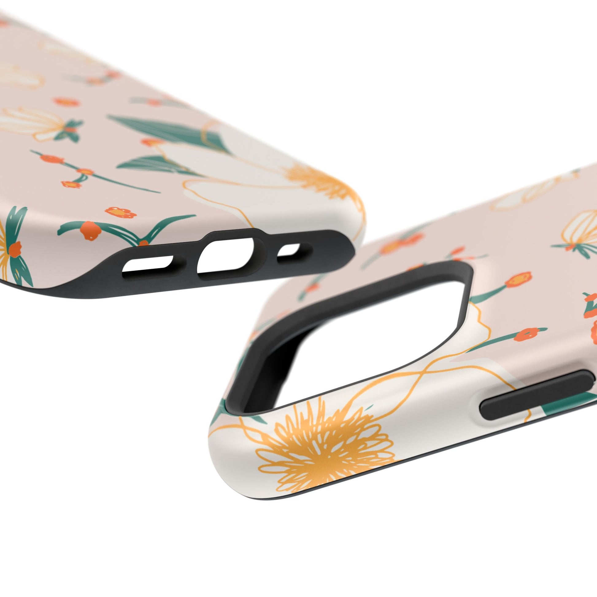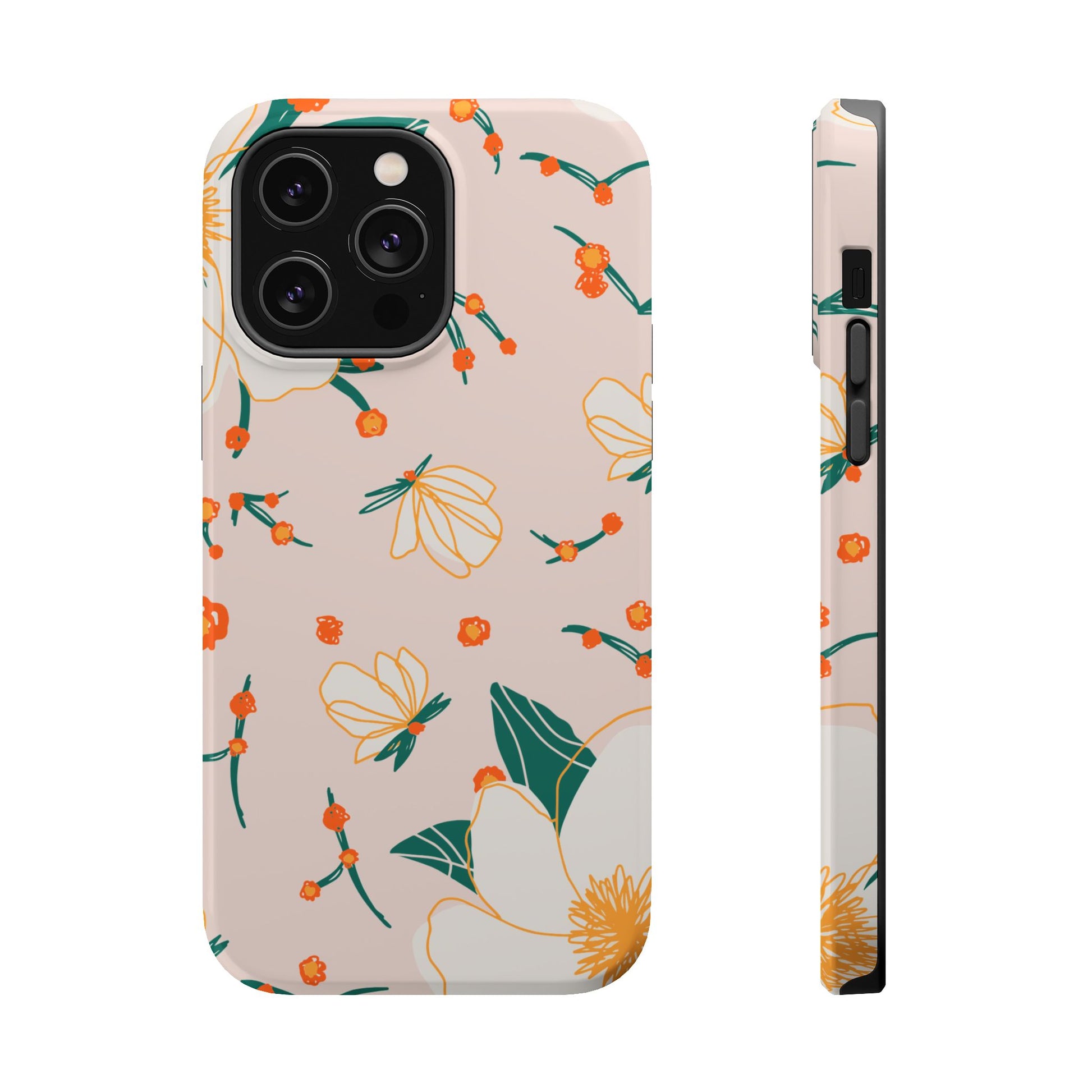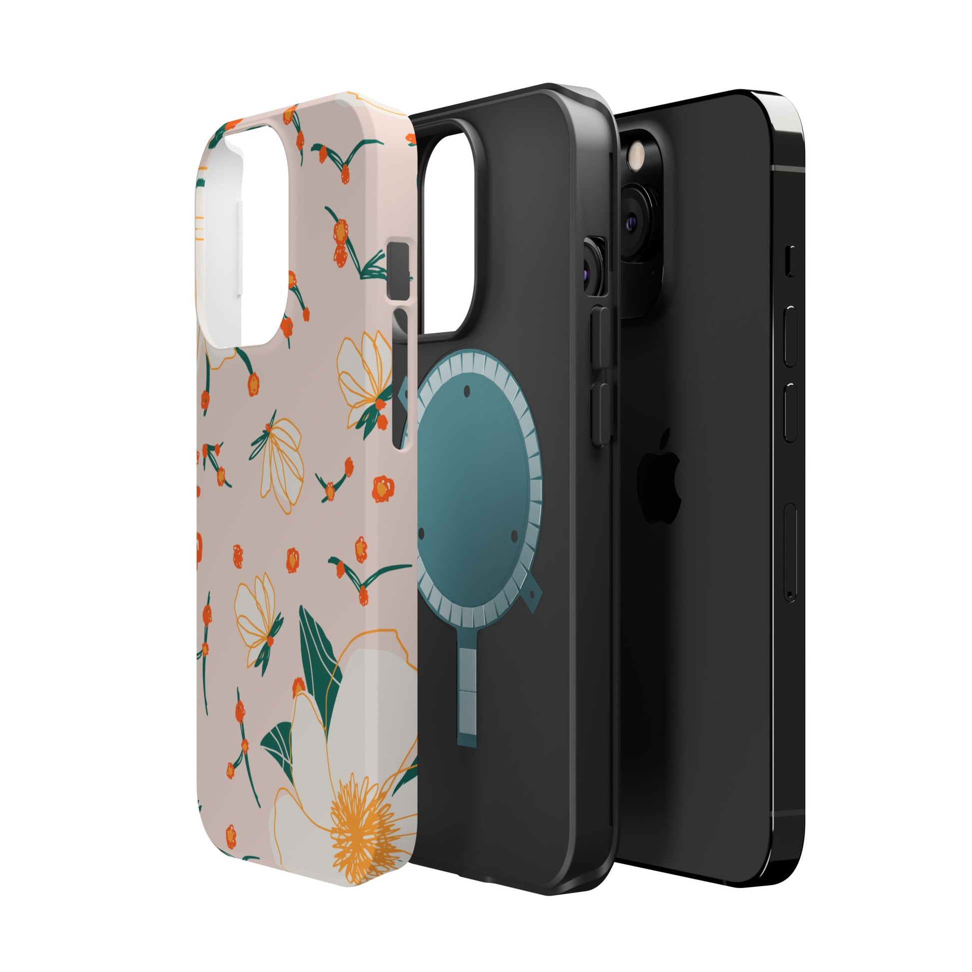 Bring a touch of nature’s beauty to your phone with our Elegant Magnolia Blossom Tough MagSafe iPhone Case. Featuring a graceful floral design with large magnolia blooms in soft cream and gold, complemented by delicate orange accents on a blush pink background, this case adds an elegant, feminine charm to your device. Built with durable dual-layer protection, the case shields your phone from scratches, drops, and daily wear while maintaining a slim, stylish profile. Perfect for adding a floral flair to your everyday look.