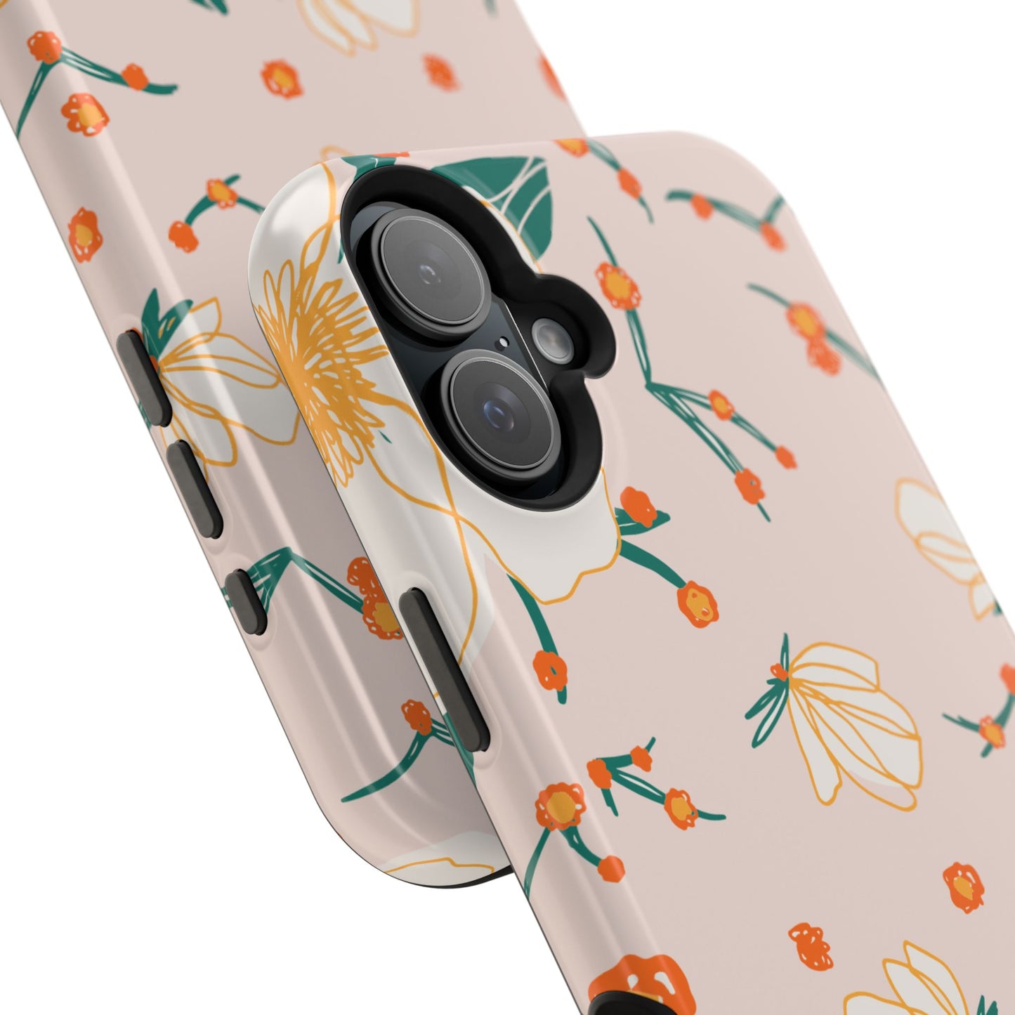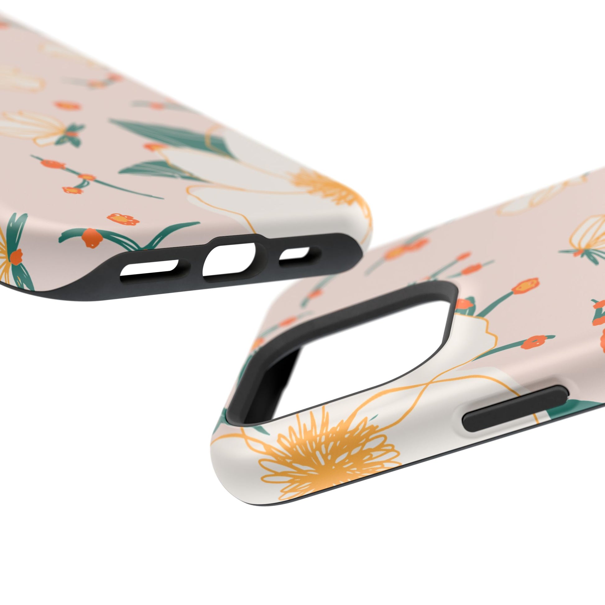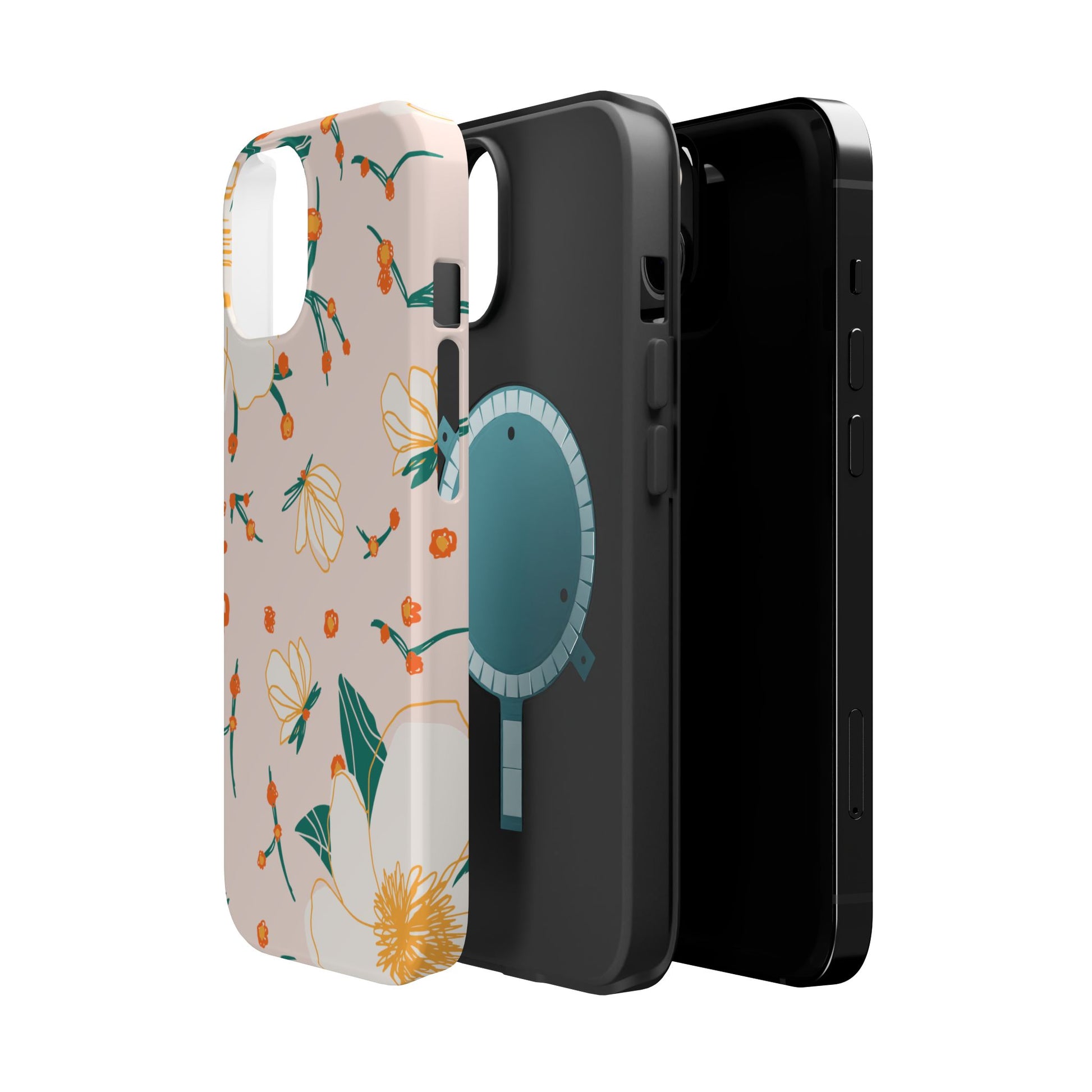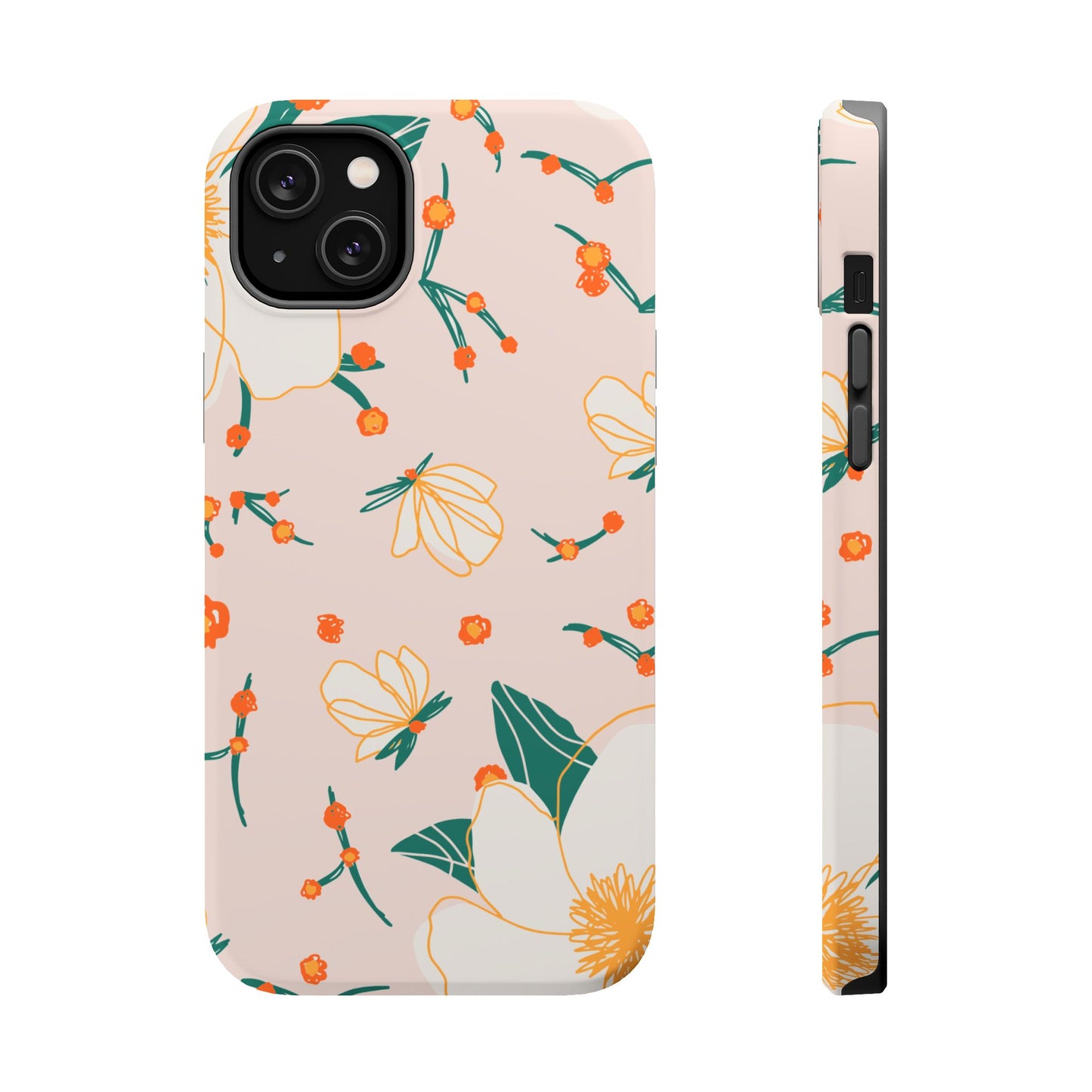 Bring a touch of nature’s beauty to your phone with our Elegant Magnolia Blossom Tough MagSafe iPhone Case. Featuring a graceful floral design with large magnolia blooms in soft cream and gold, complemented by delicate orange accents on a blush pink background, this case adds an elegant, feminine charm to your device. Built with durable dual-layer protection, the case shields your phone from scratches, drops, and daily wear while maintaining a slim, stylish profile. Perfect for adding a floral flair to your everyday look.