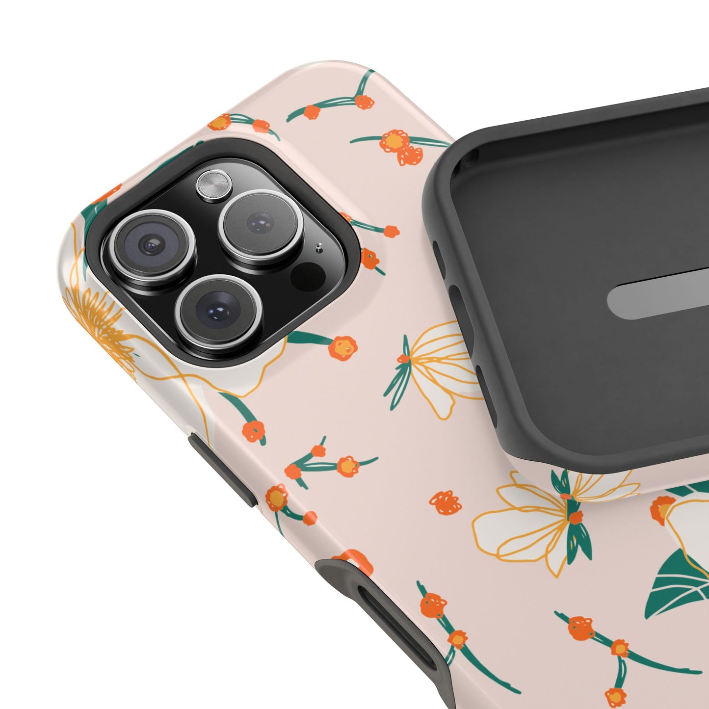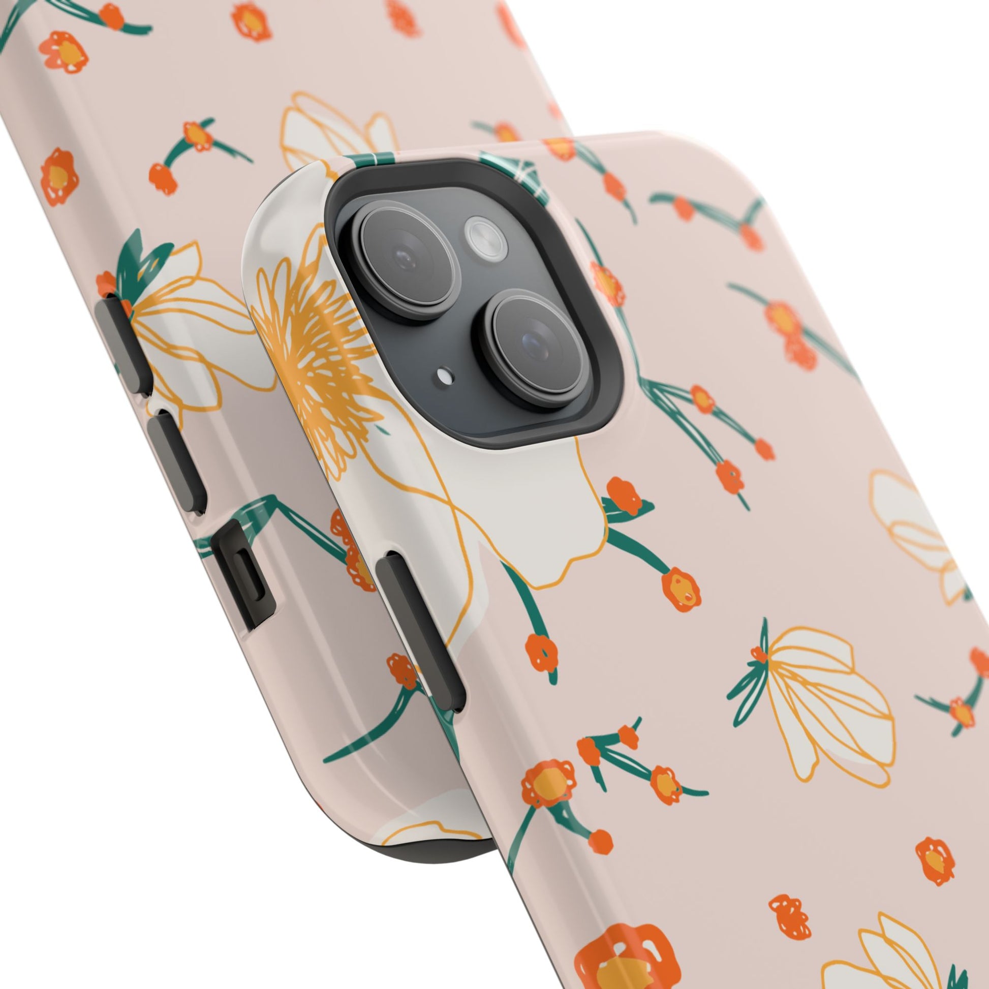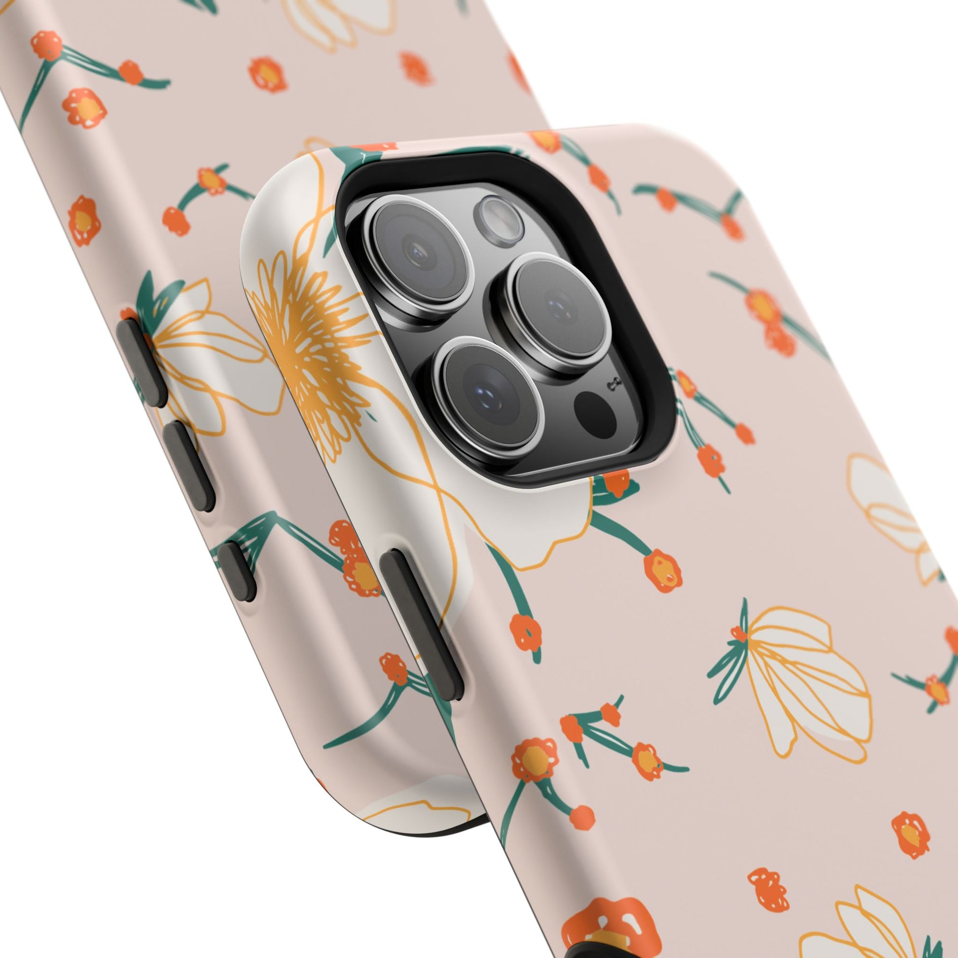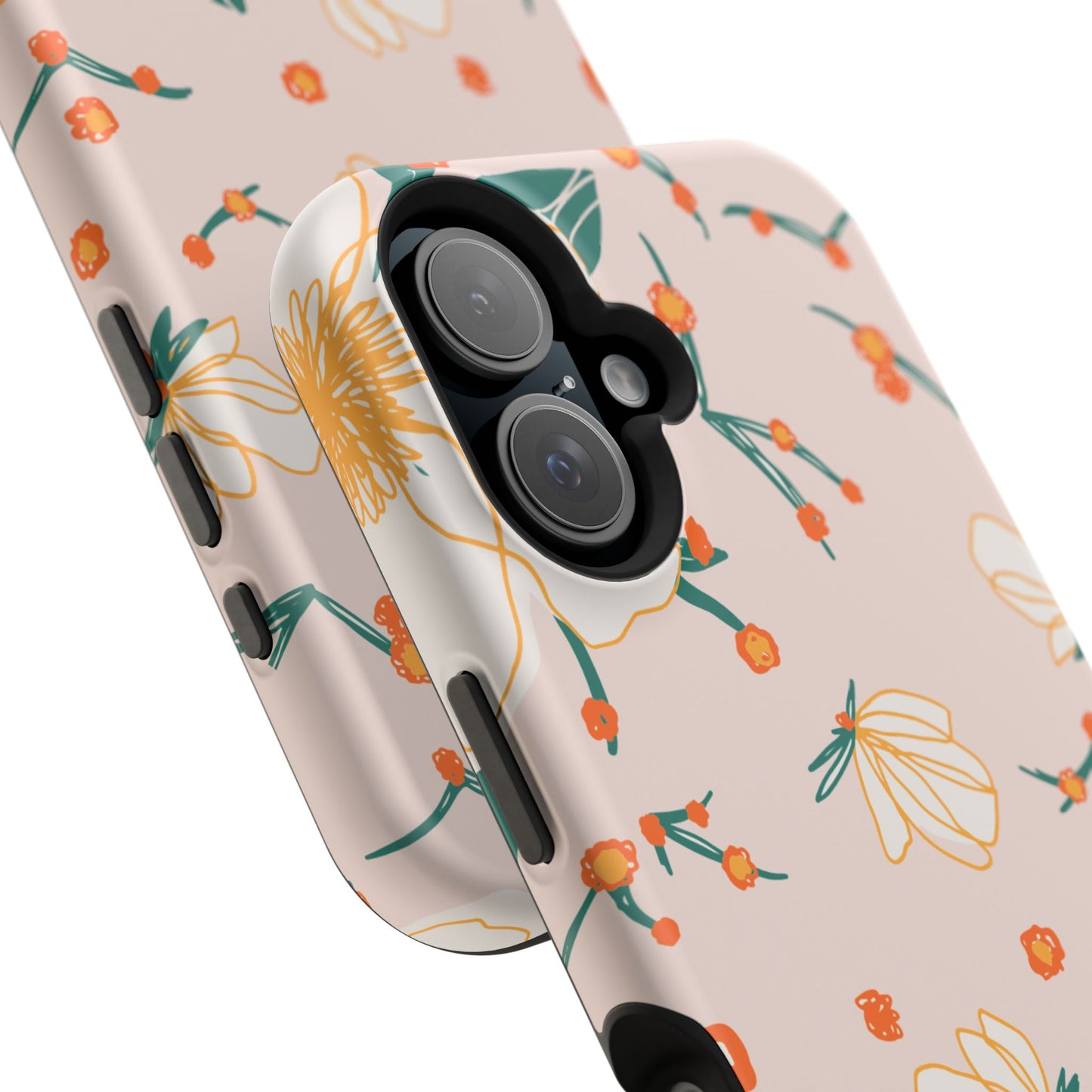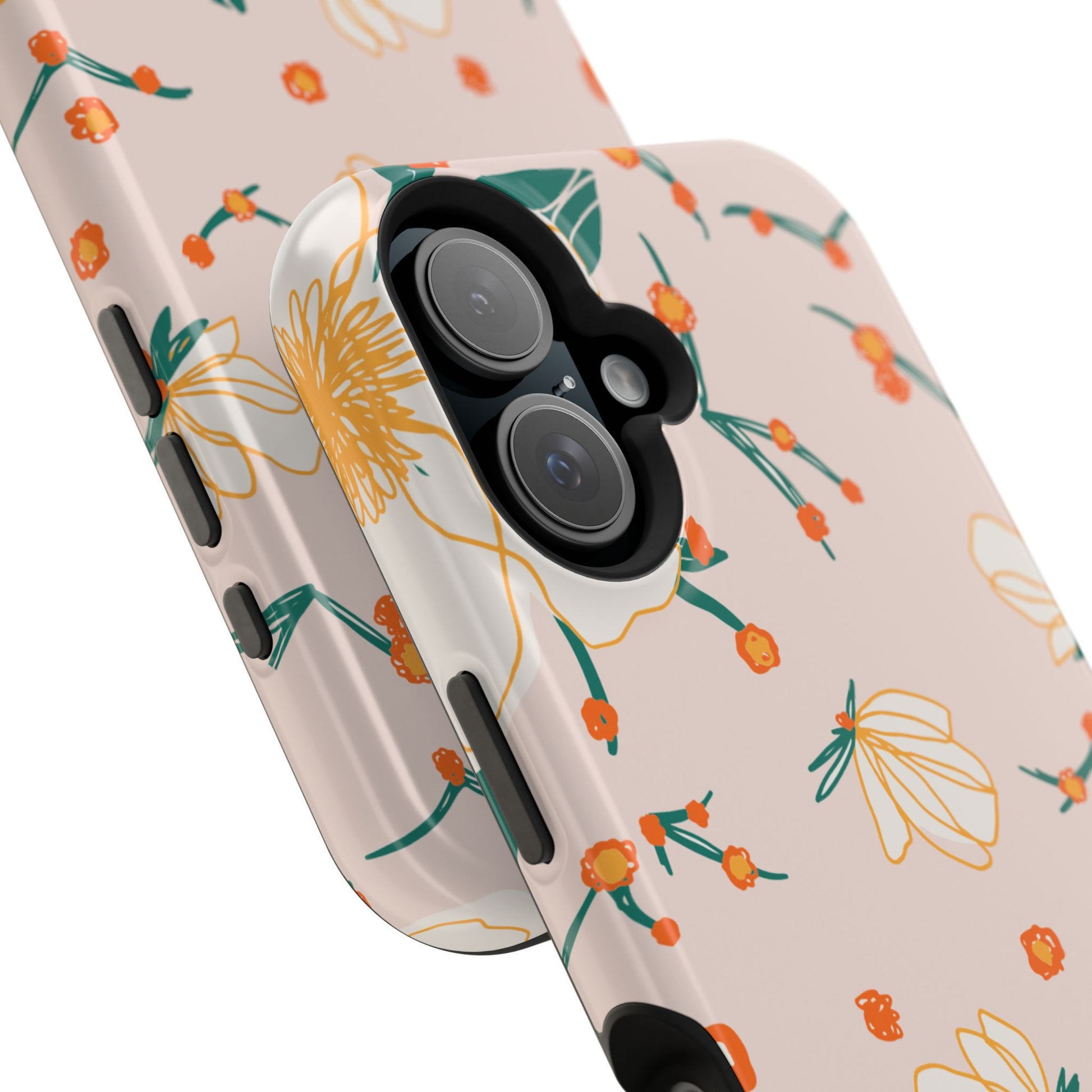 Bring a touch of nature’s beauty to your phone with our Elegant Magnolia Blossom Tough MagSafe iPhone Case. Featuring a graceful floral design with large magnolia blooms in soft cream and gold, complemented by delicate orange accents on a blush pink background, this case adds an elegant, feminine charm to your device. Built with durable dual-layer protection, the case shields your phone from scratches, drops, and daily wear while maintaining a slim, stylish profile. Perfect for adding a floral flair to your everyday look.