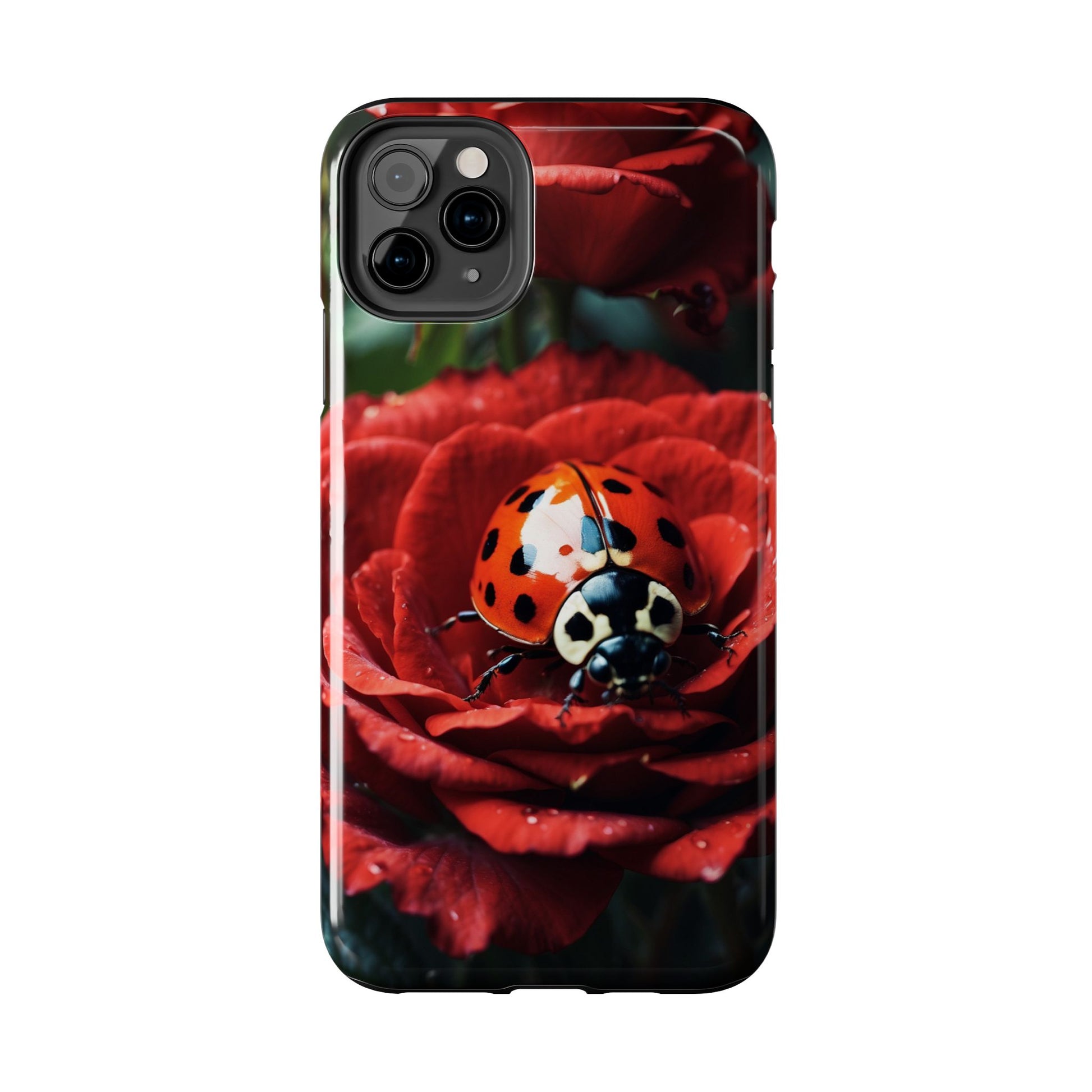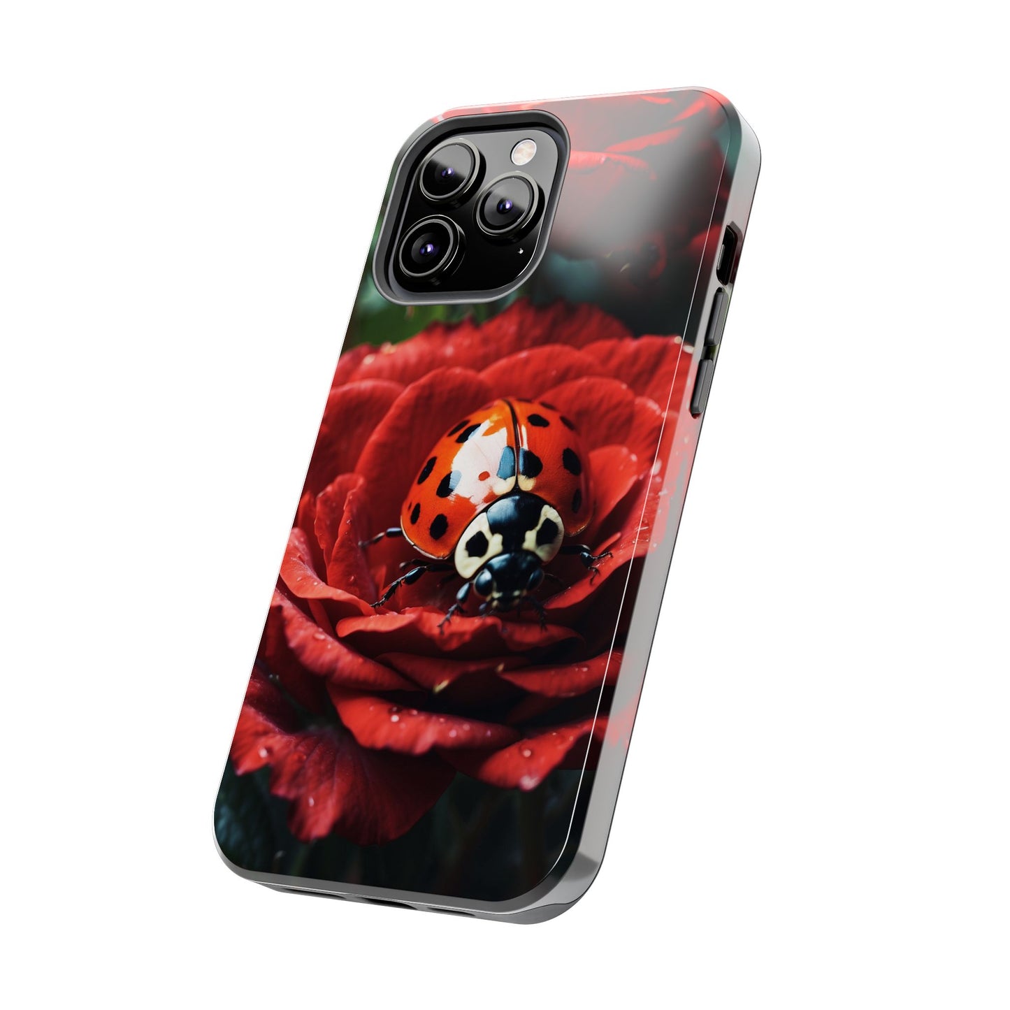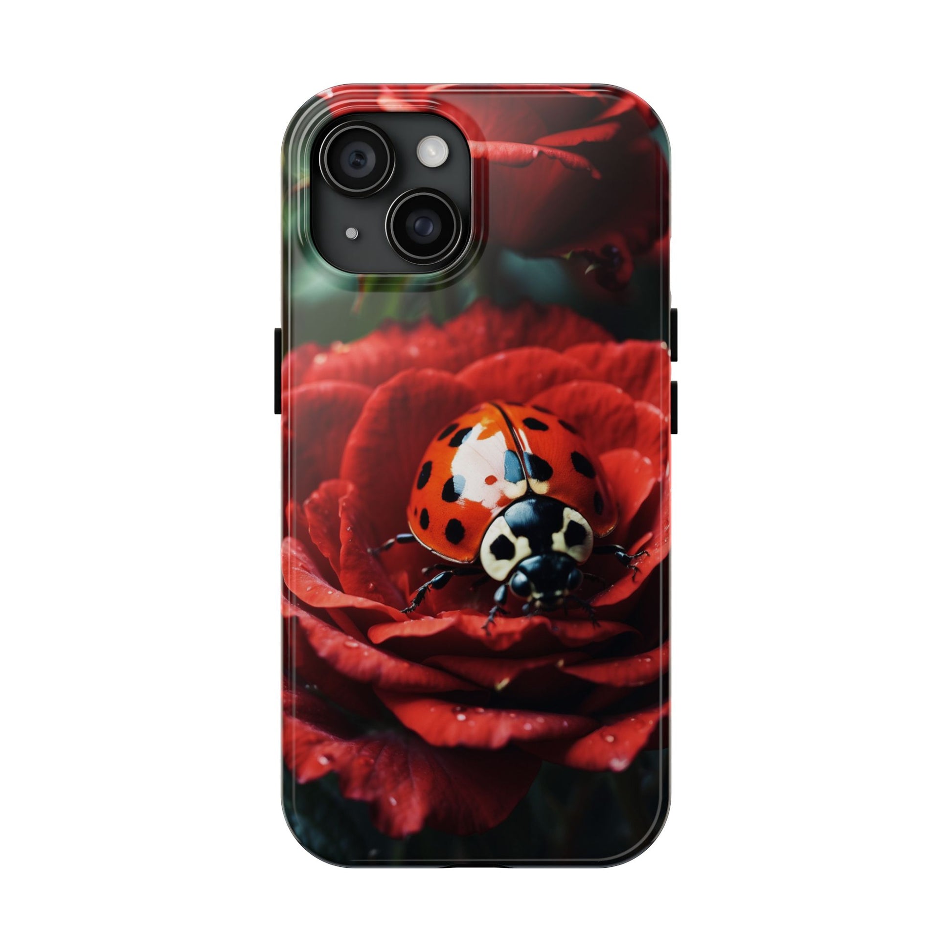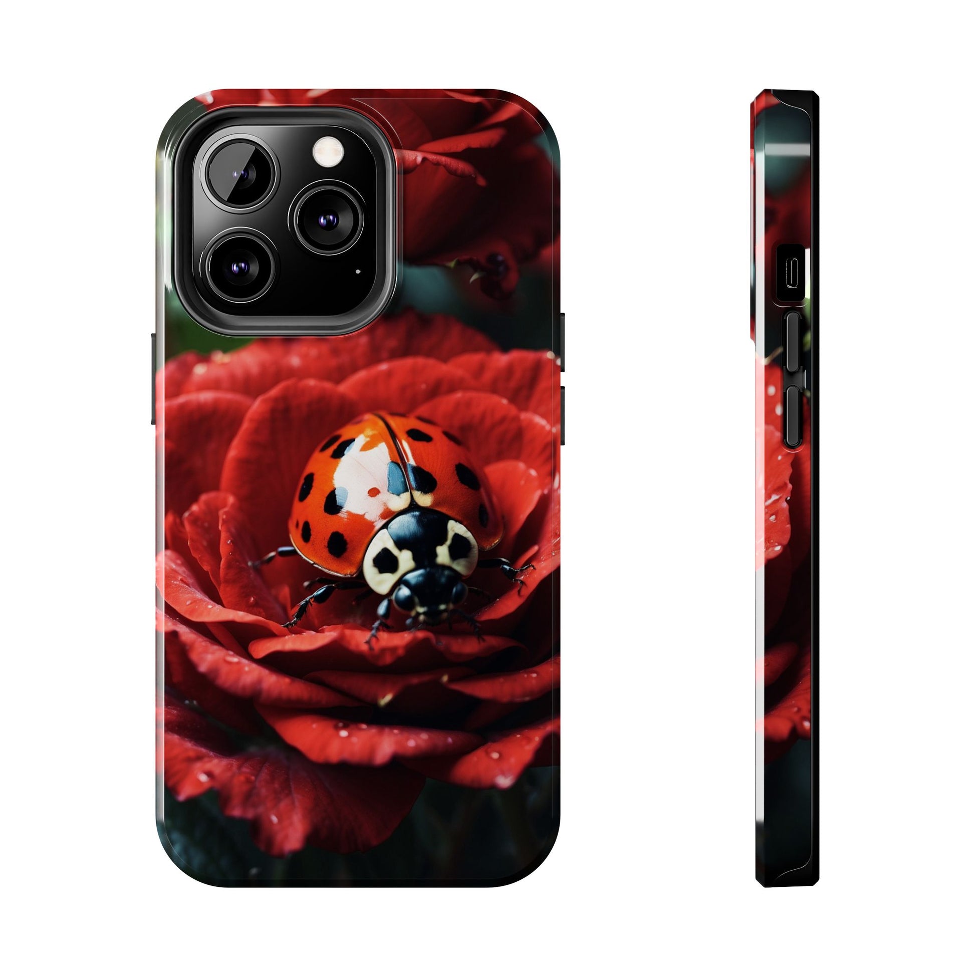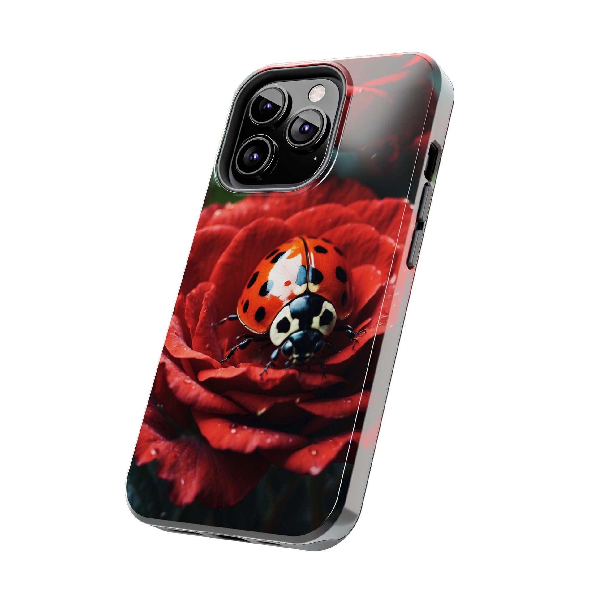 Elevate your iPhone with the Elegant Rose & Ladybug Charm Case, featuring a detailed red rose and an adorable ladybug perched on its petals. Designed to combine protection and aesthetic appeal, this slim yet sturdy case safeguards your phone while adding a chic floral accent. It’s the perfect way to showcase your love for nature and beauty in everyday life.