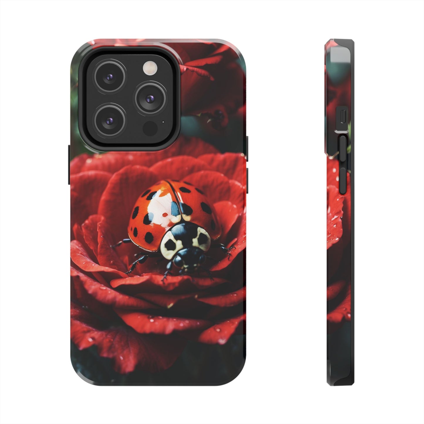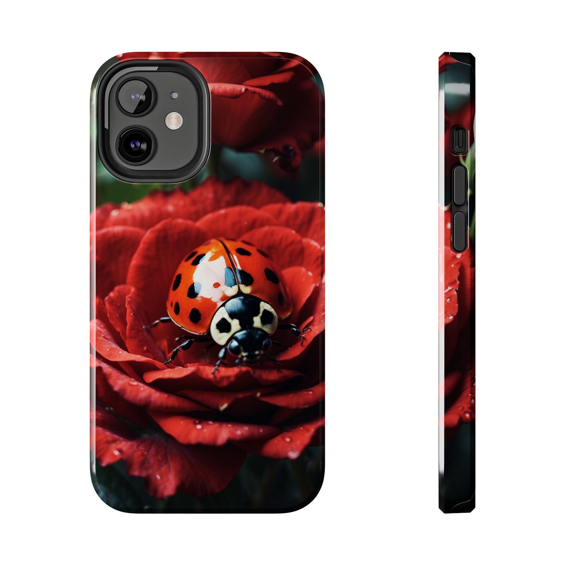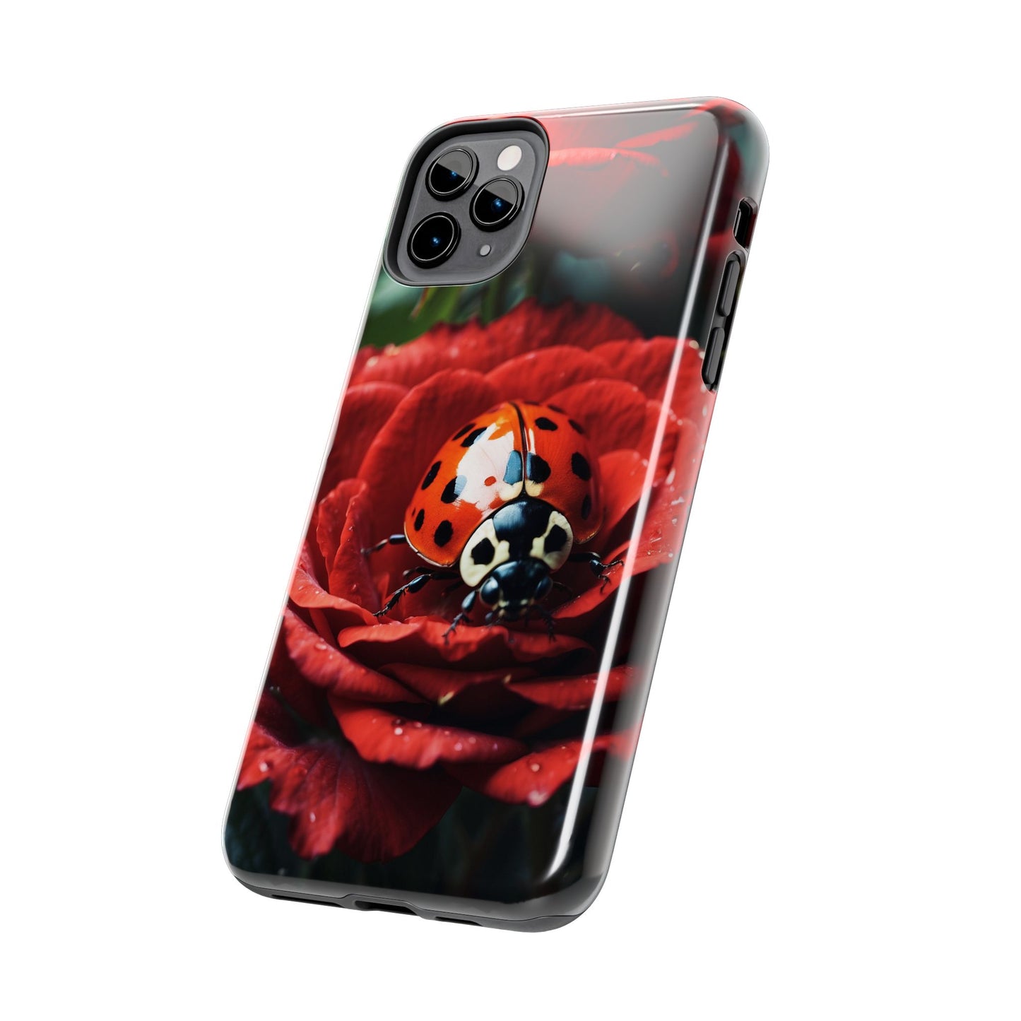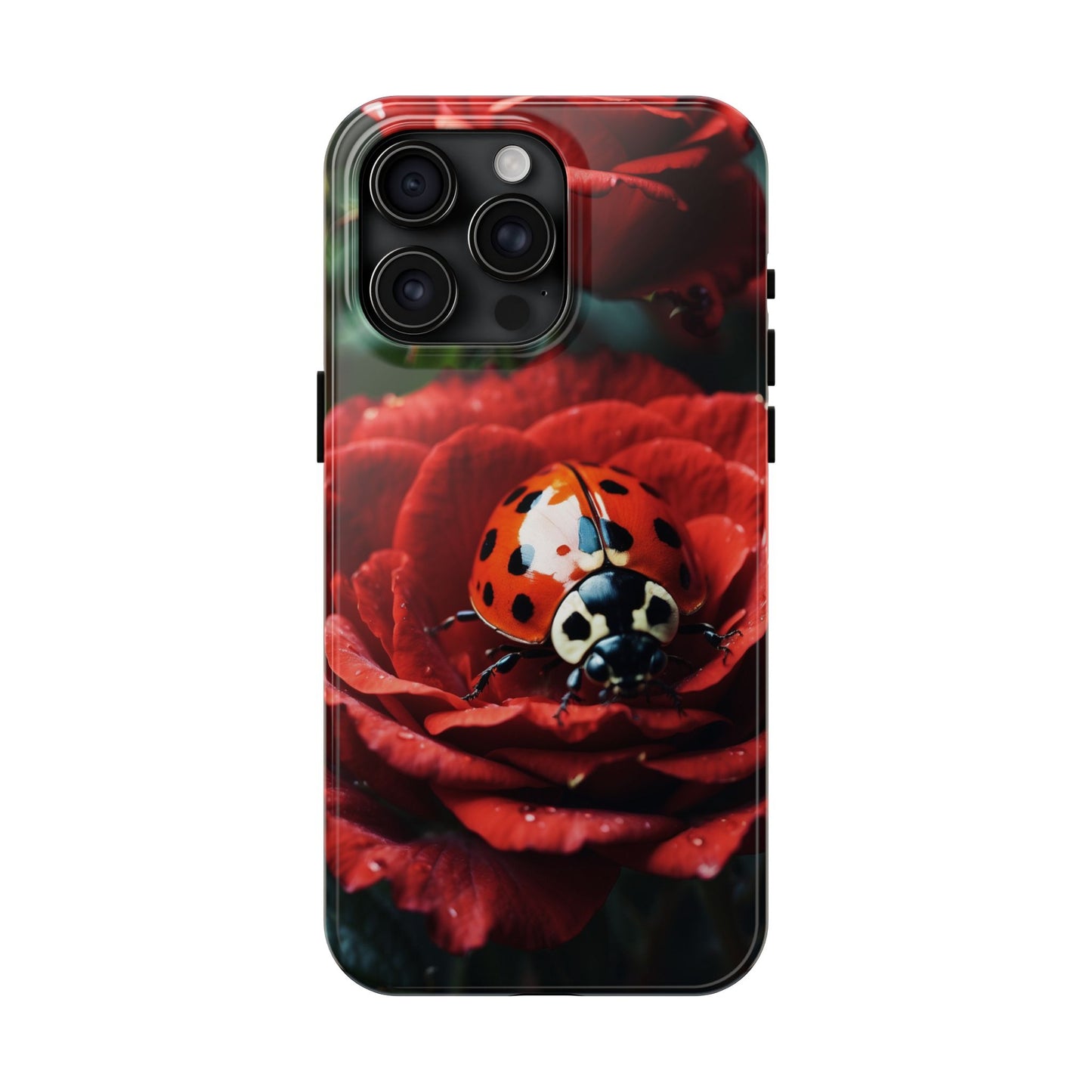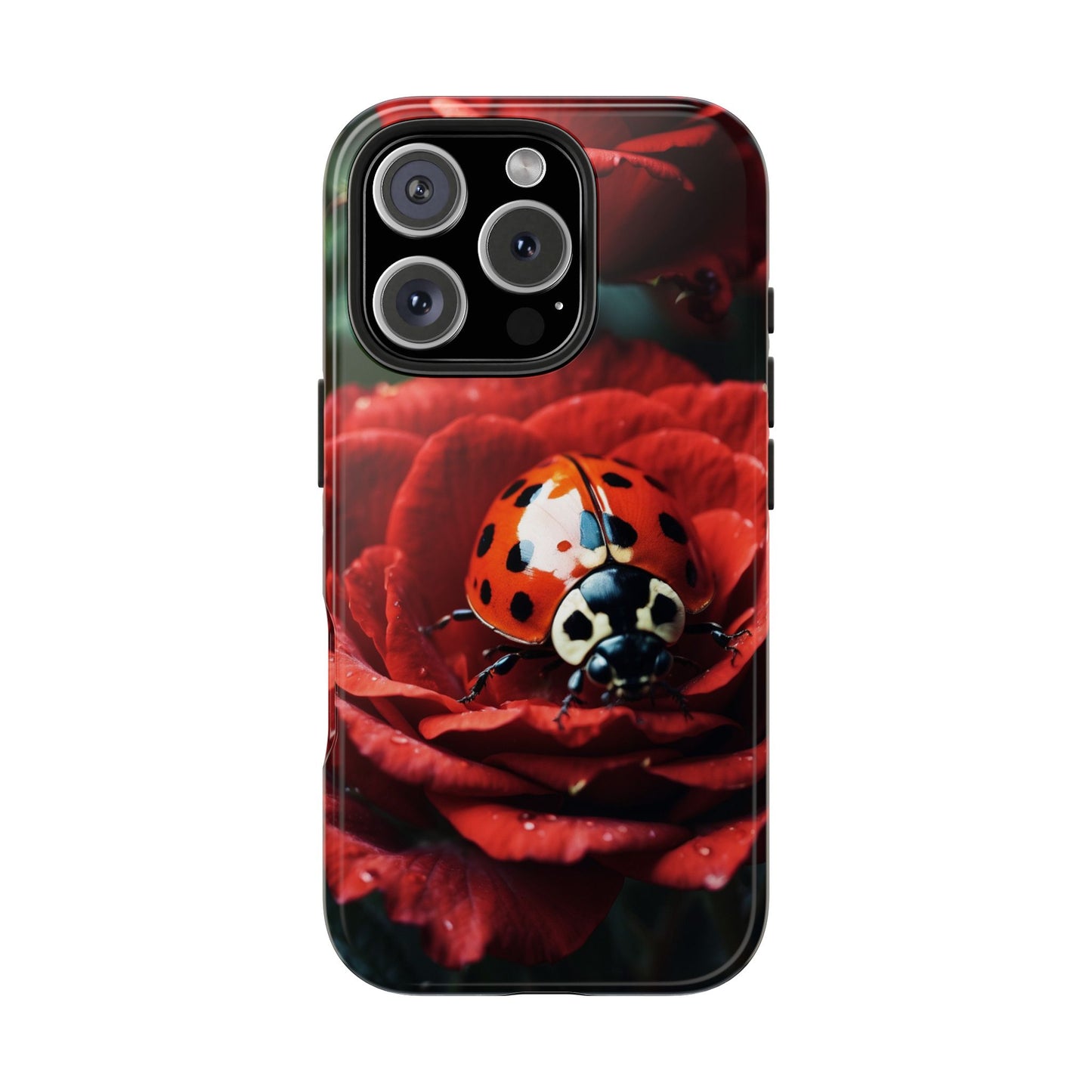 Elevate your iPhone with the Elegant Rose & Ladybug Charm Case, featuring a detailed red rose and an adorable ladybug perched on its petals. Designed to combine protection and aesthetic appeal, this slim yet sturdy case safeguards your phone while adding a chic floral accent. It’s the perfect way to showcase your love for nature and beauty in everyday life.
