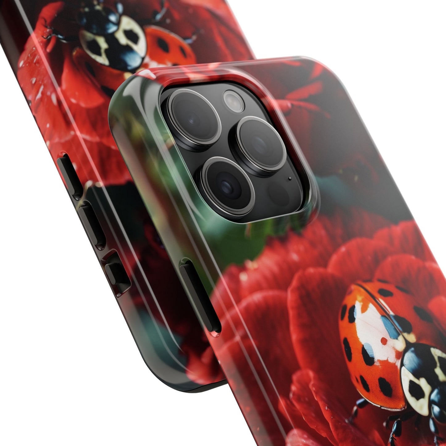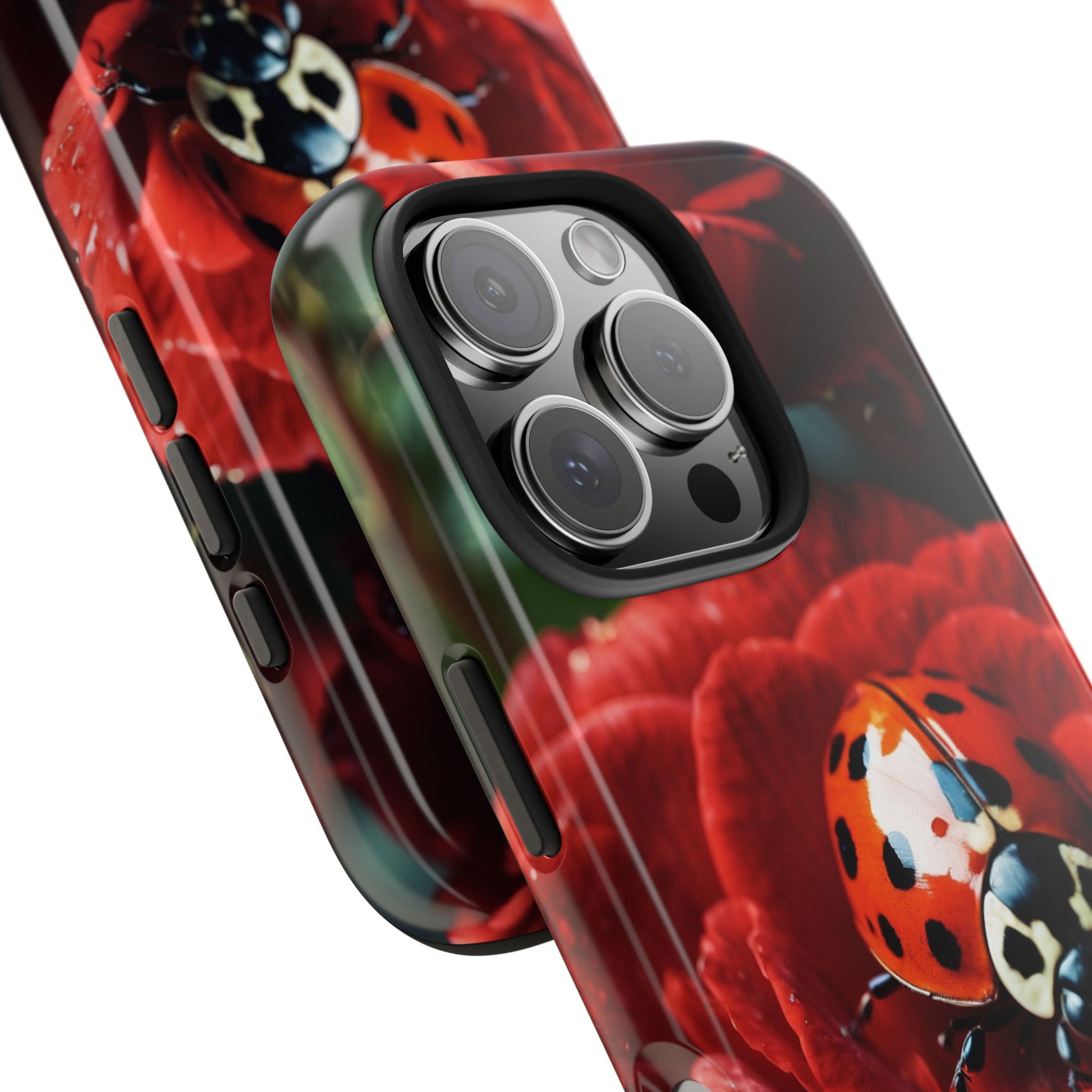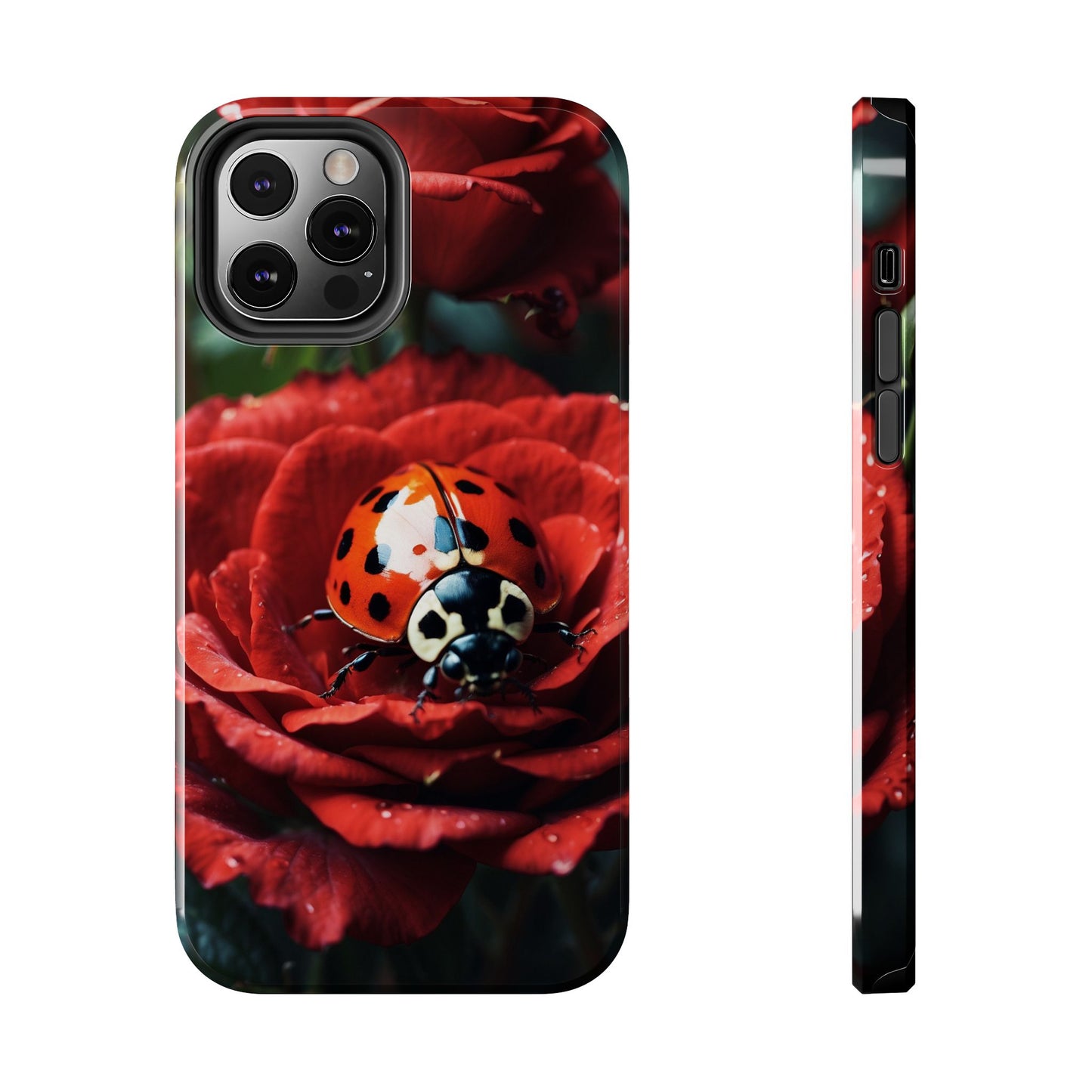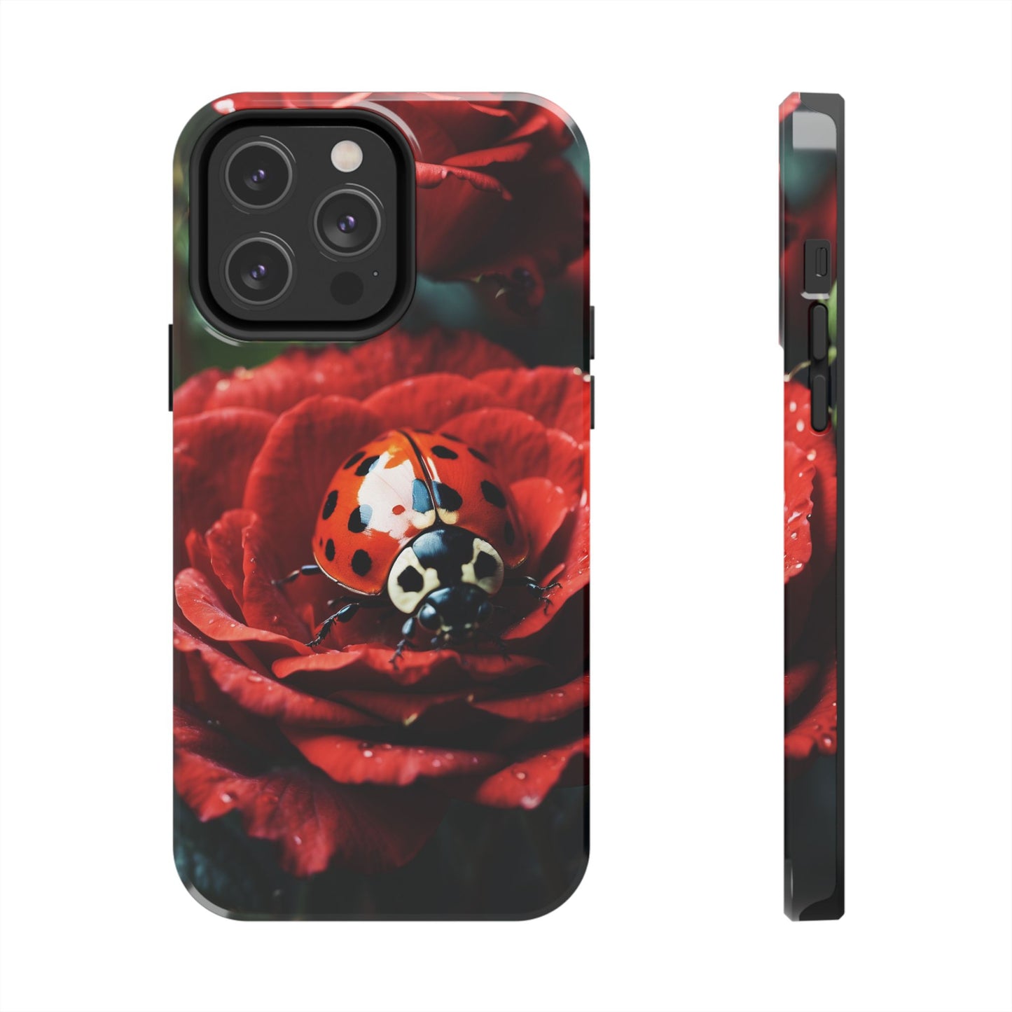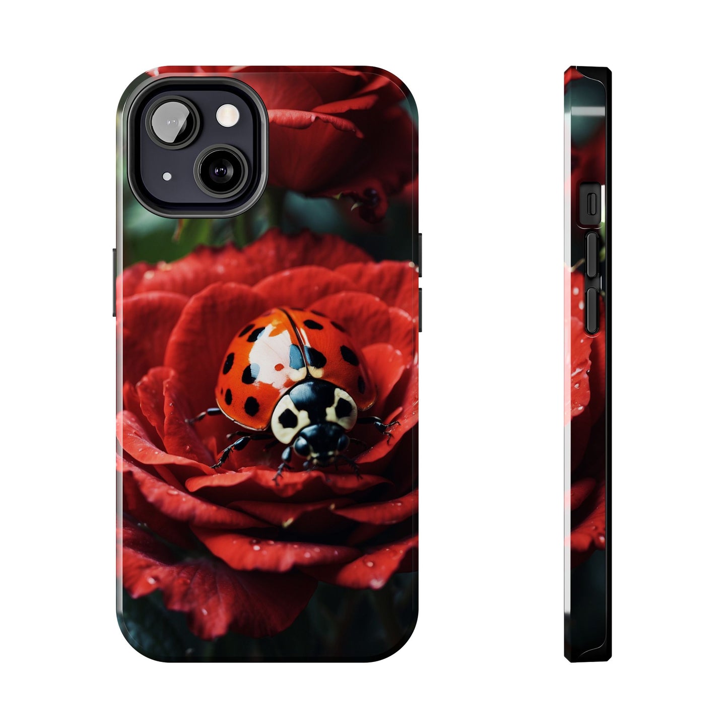 Elevate your iPhone with the Elegant Rose & Ladybug Charm Case, featuring a detailed red rose and an adorable ladybug perched on its petals. Designed to combine protection and aesthetic appeal, this slim yet sturdy case safeguards your phone while adding a chic floral accent. It’s the perfect way to showcase your love for nature and beauty in everyday life.