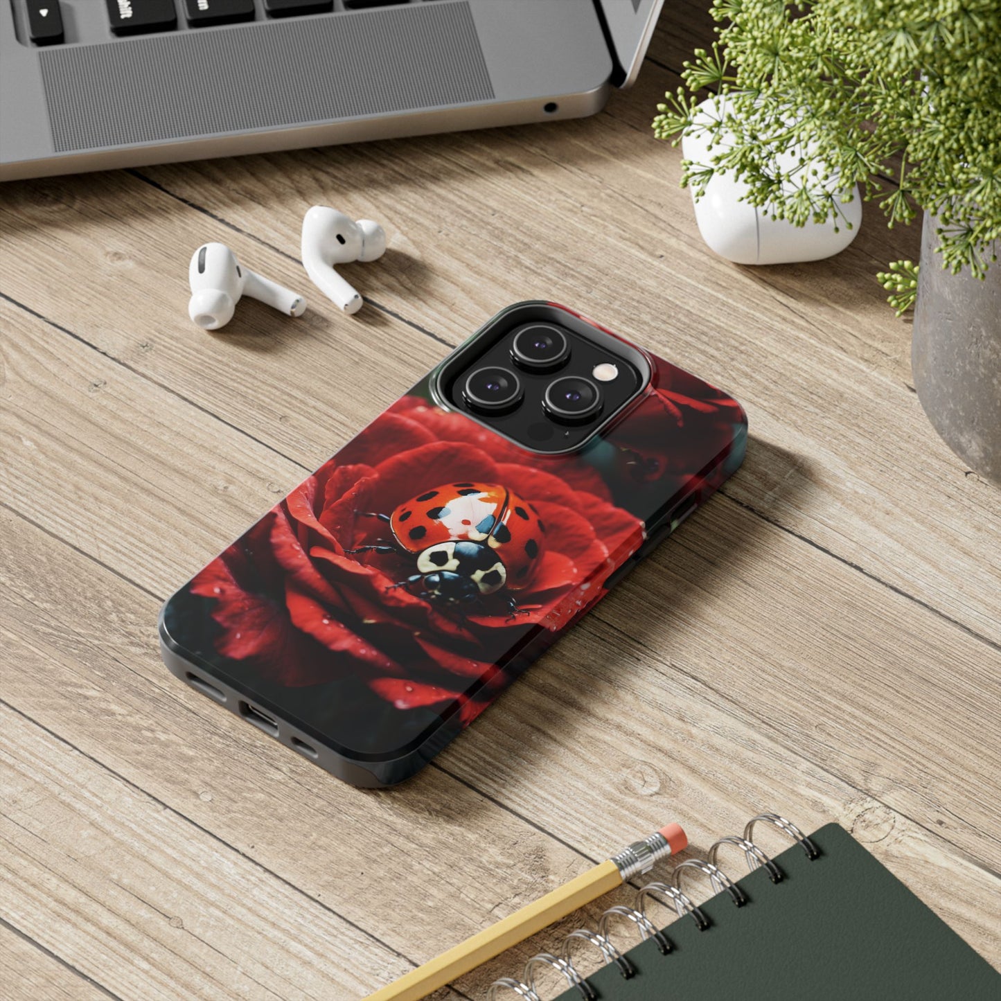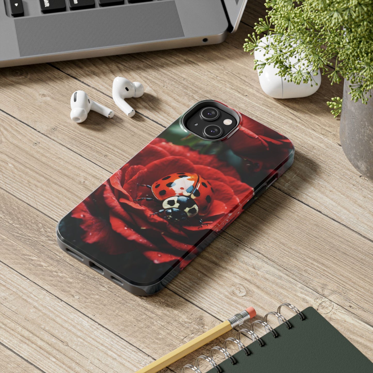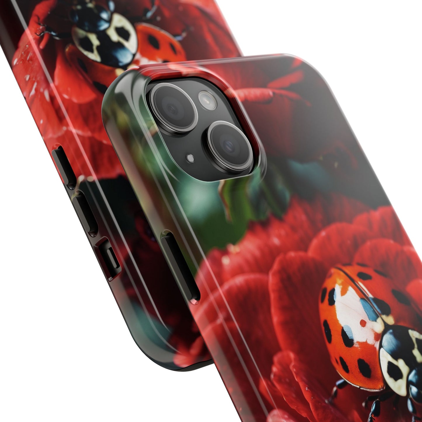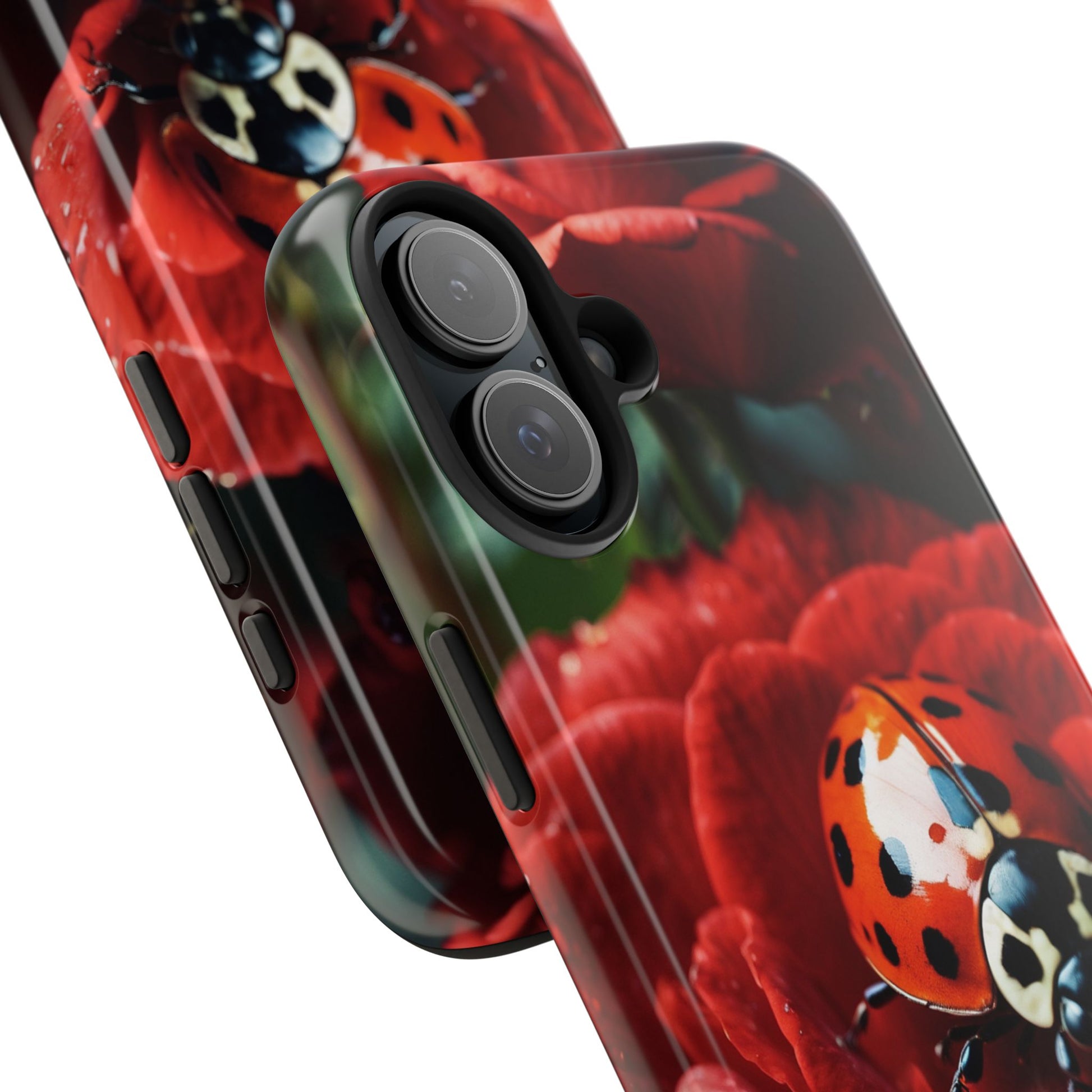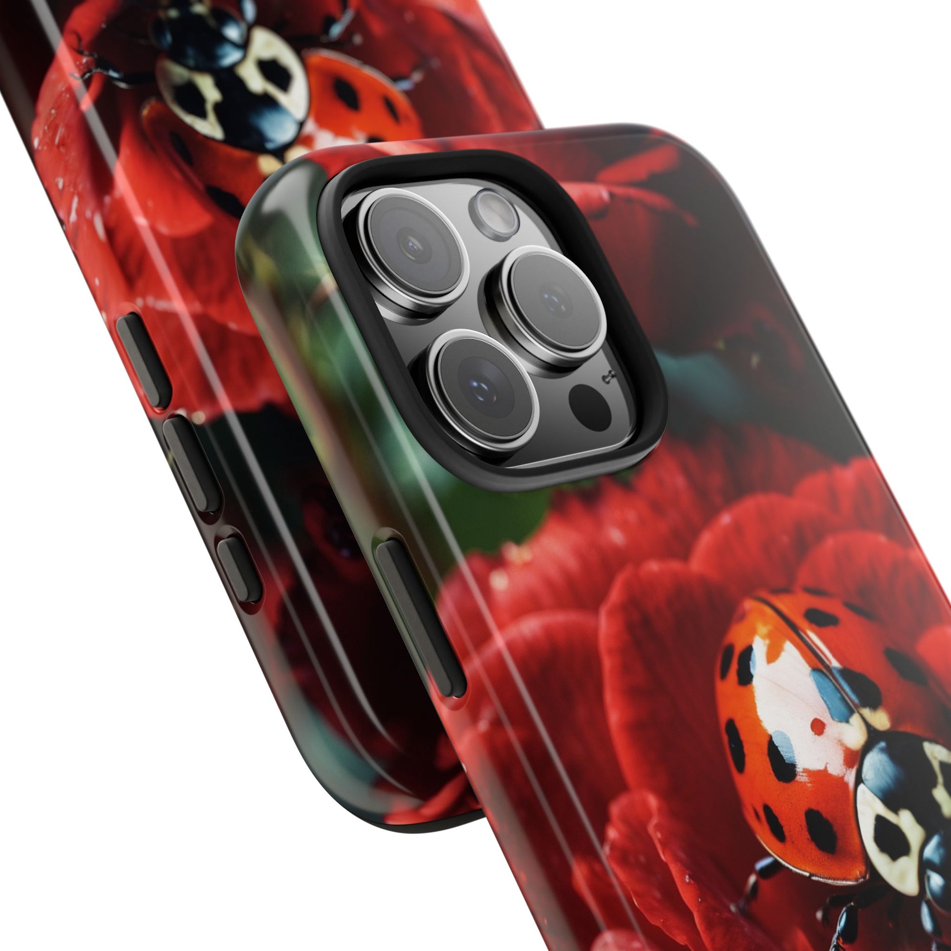 Elevate your iPhone with the Elegant Rose & Ladybug Charm Case, featuring a detailed red rose and an adorable ladybug perched on its petals. Designed to combine protection and aesthetic appeal, this slim yet sturdy case safeguards your phone while adding a chic floral accent. It’s the perfect way to showcase your love for nature and beauty in everyday life.
